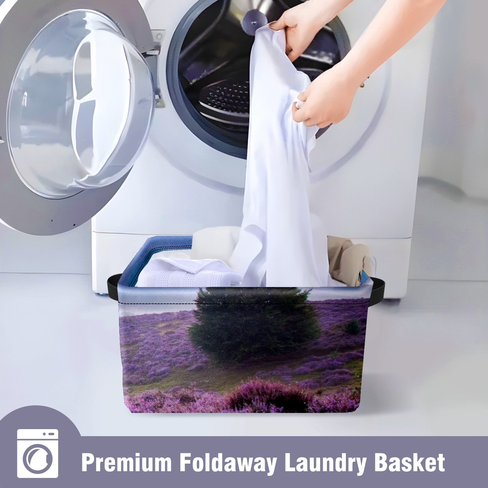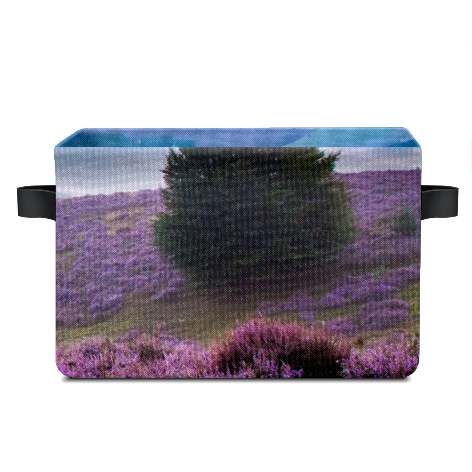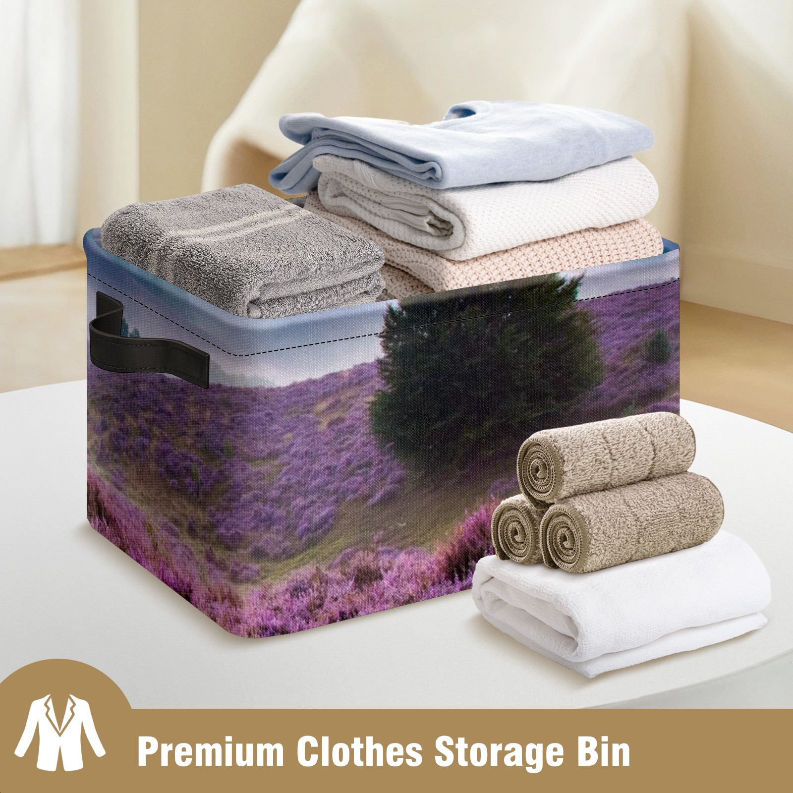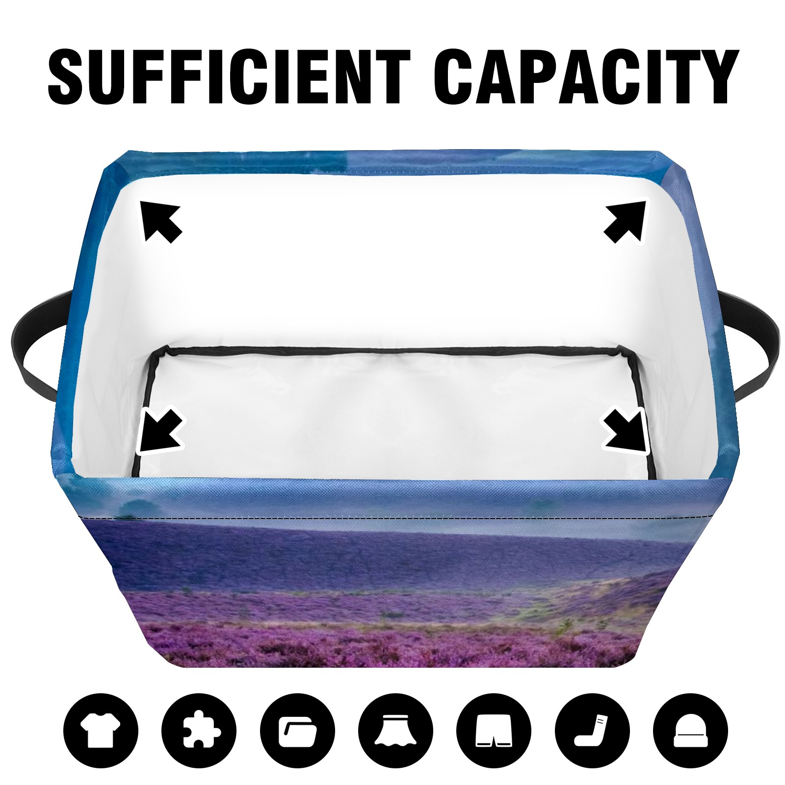 Collapsible 600D Oxford Storage Basket with Lavender Farm Field Purple Foggy Sunset - Metal Frame 10"x14"x8" Reinforced Handles, Multi-Purpose Organizer