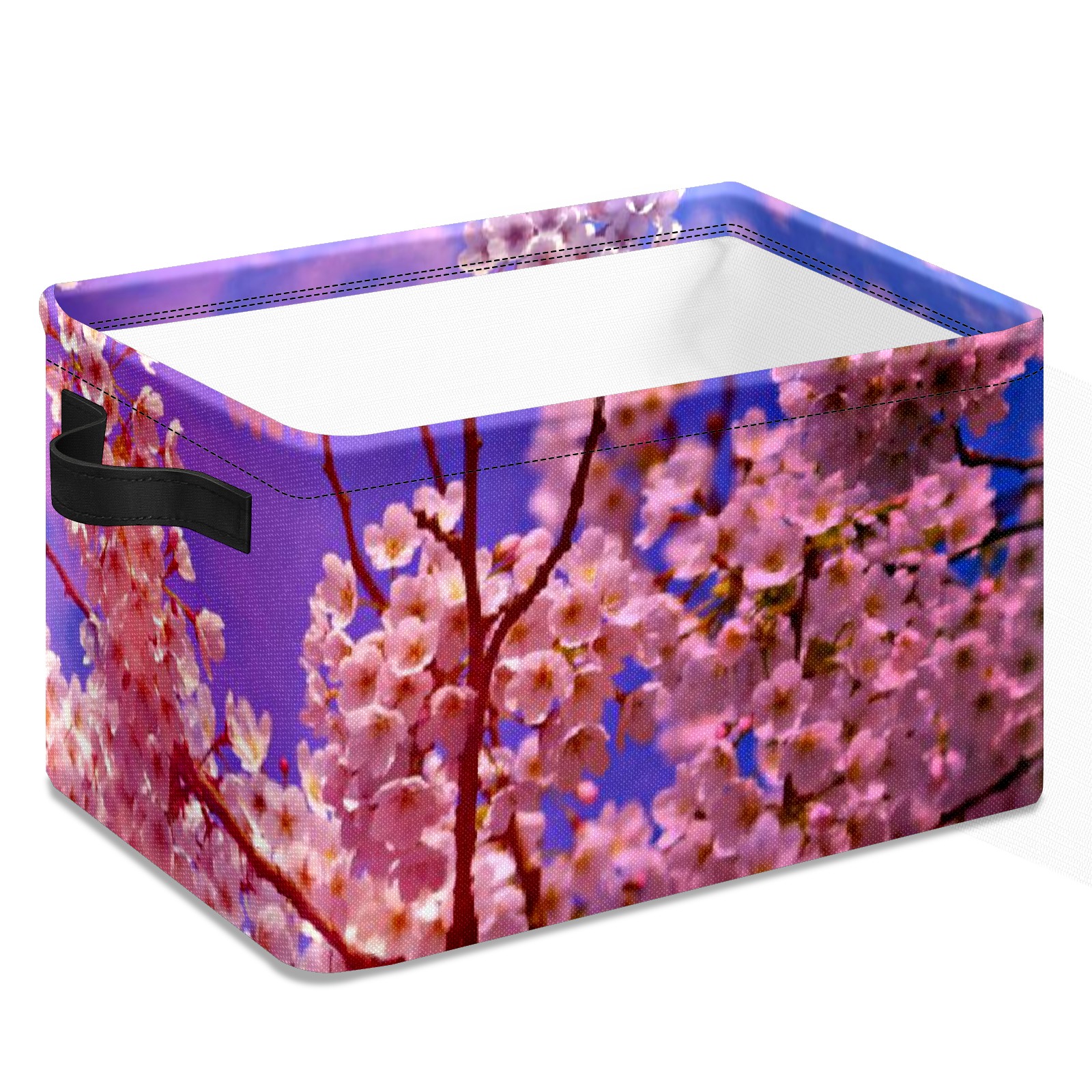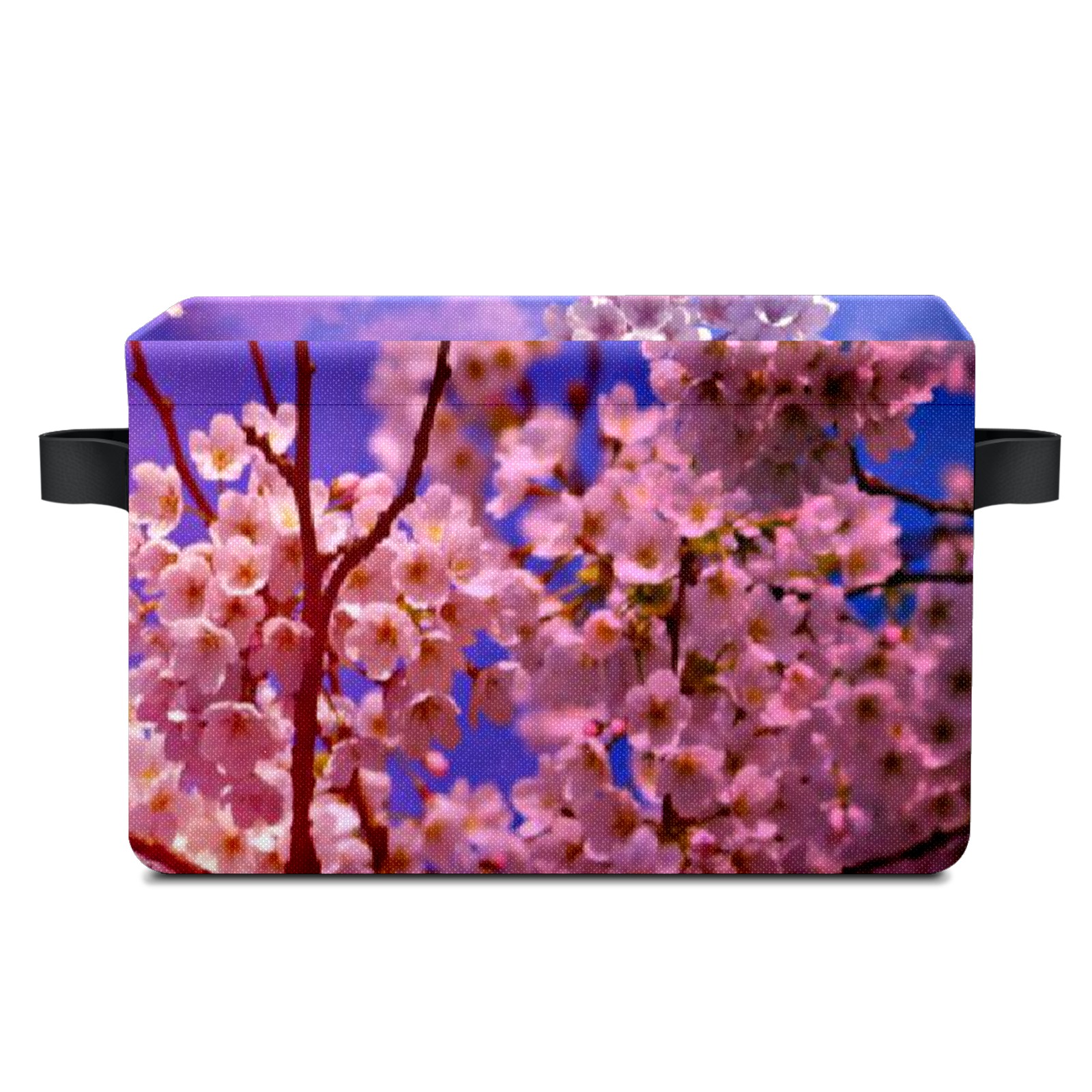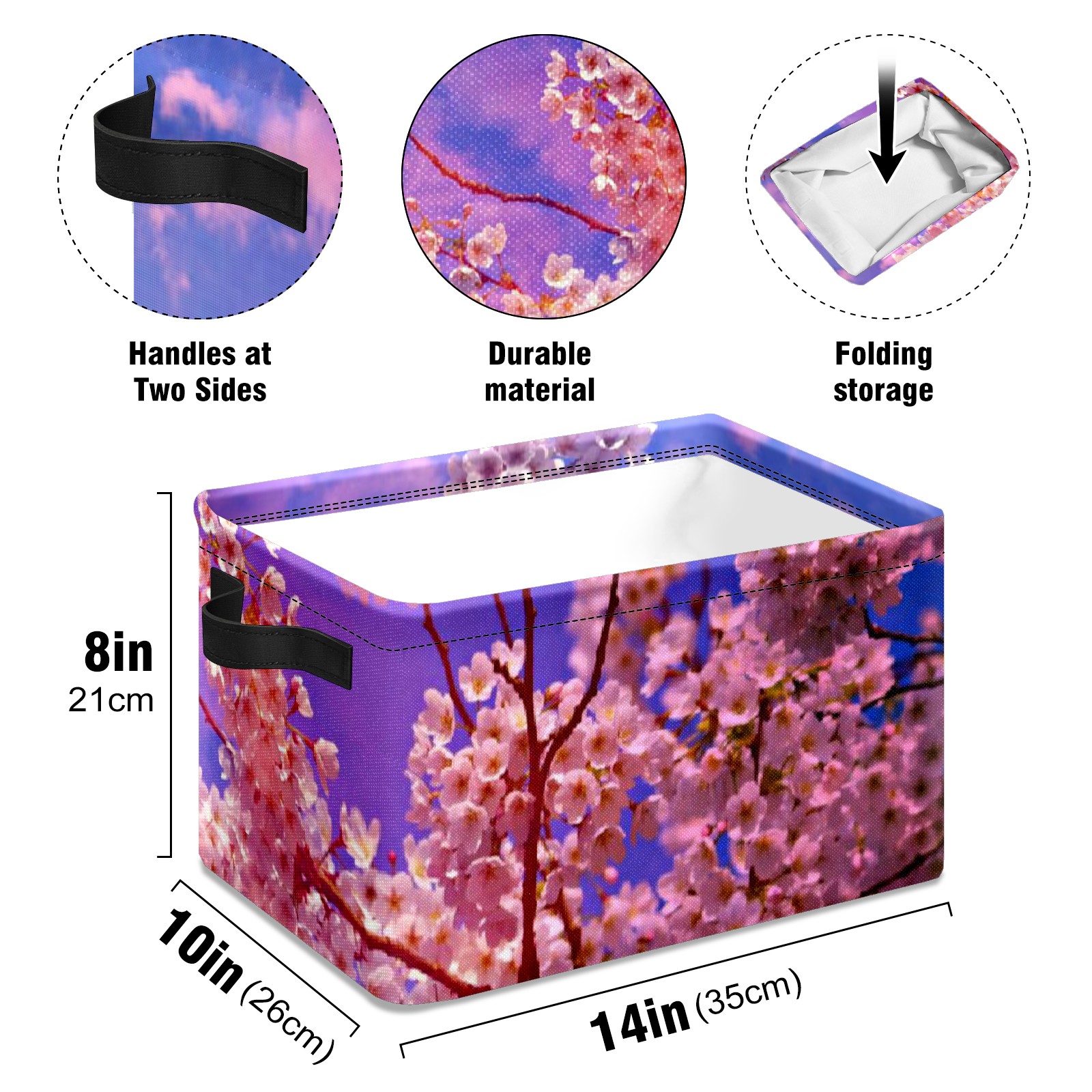 Collapsible 600D Oxford Storage Basket with Pink Cloud Clear Sky Cherry Blossom Tree - Metal Frame 10"x14"x8" Reinforced Handles, Multi-Purpose Organizer