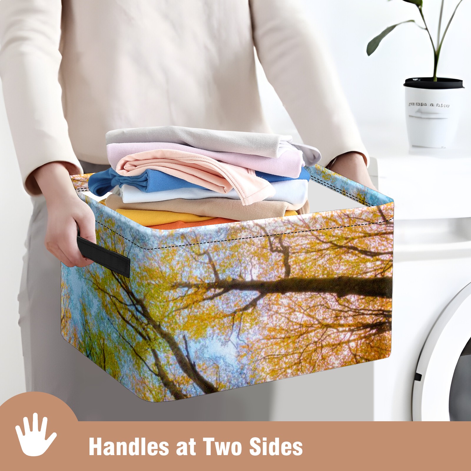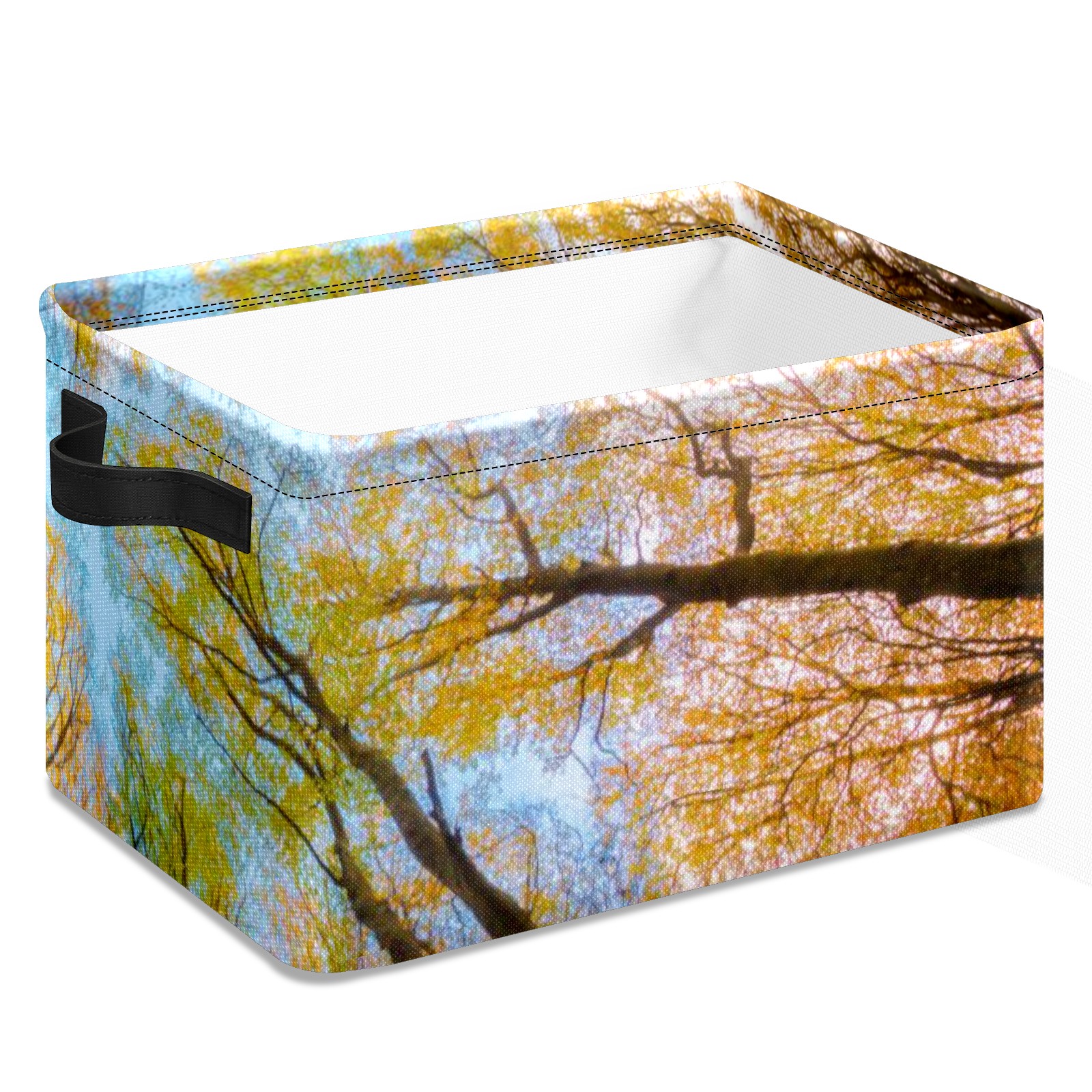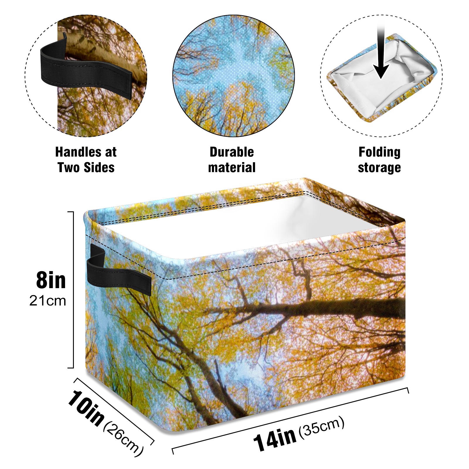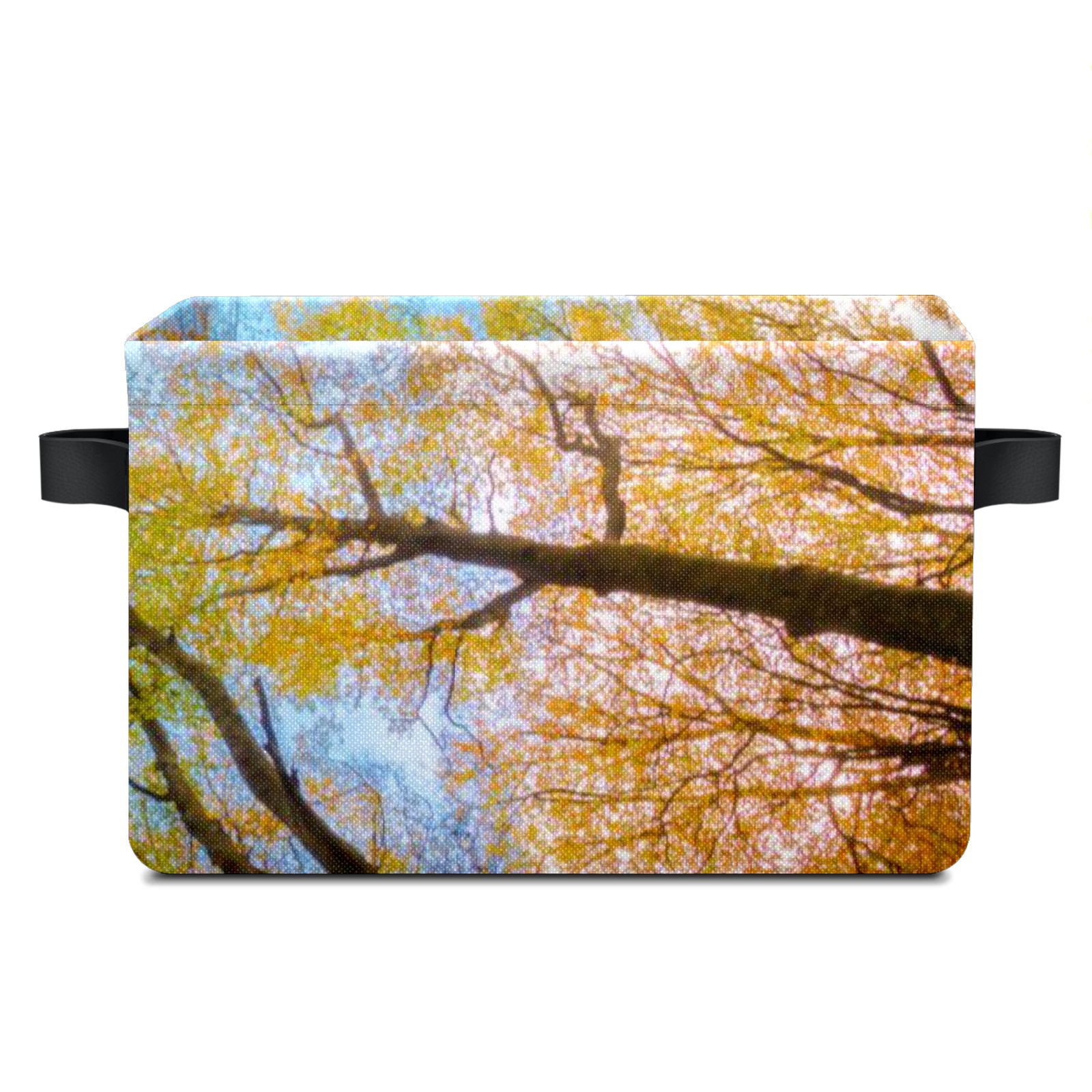 Collapsible 600D Oxford Storage Basket with Forest Tree Canopy Branches Top Foliage - Metal Frame 10"x14"x8" Reinforced Handles, Multi-Purpose Organizer