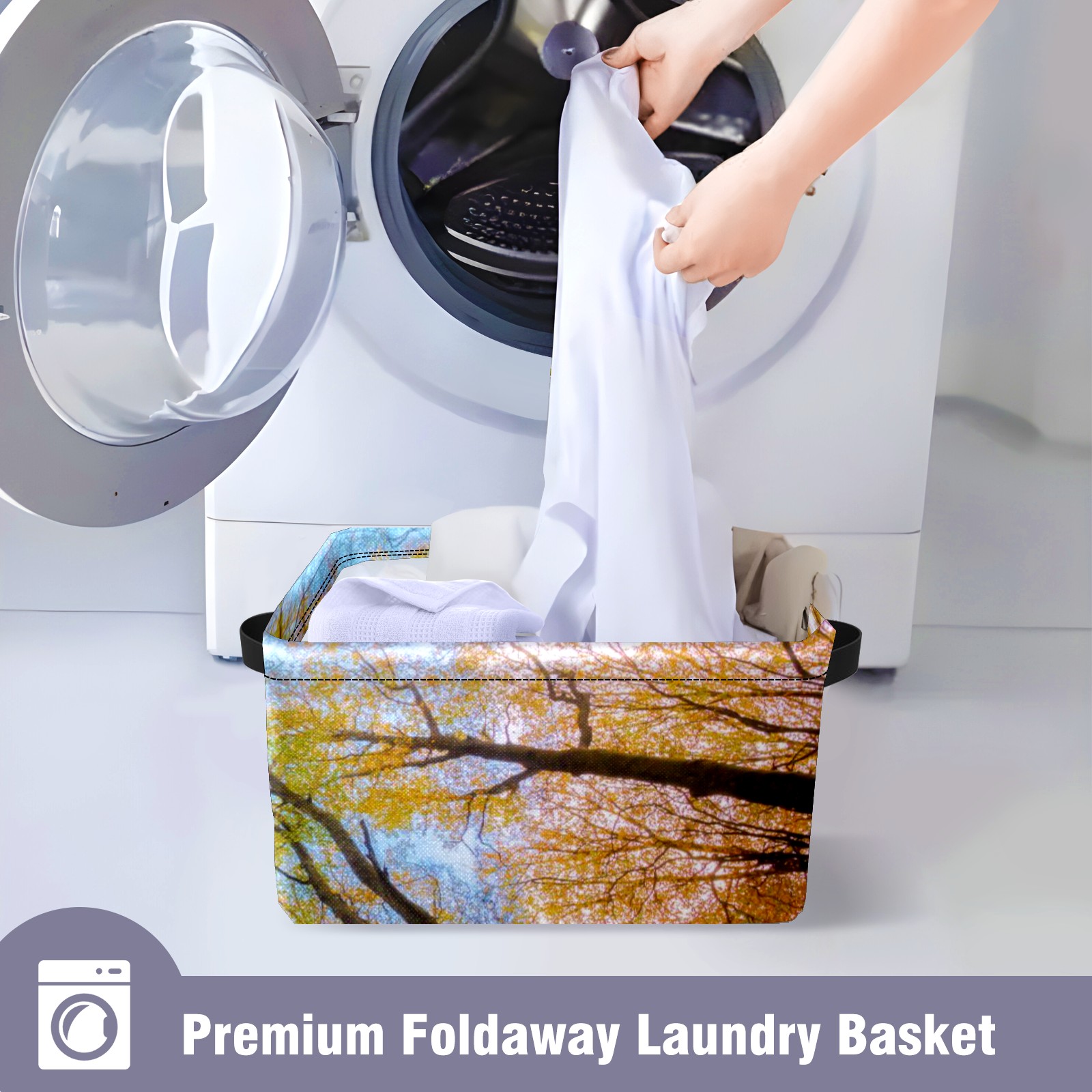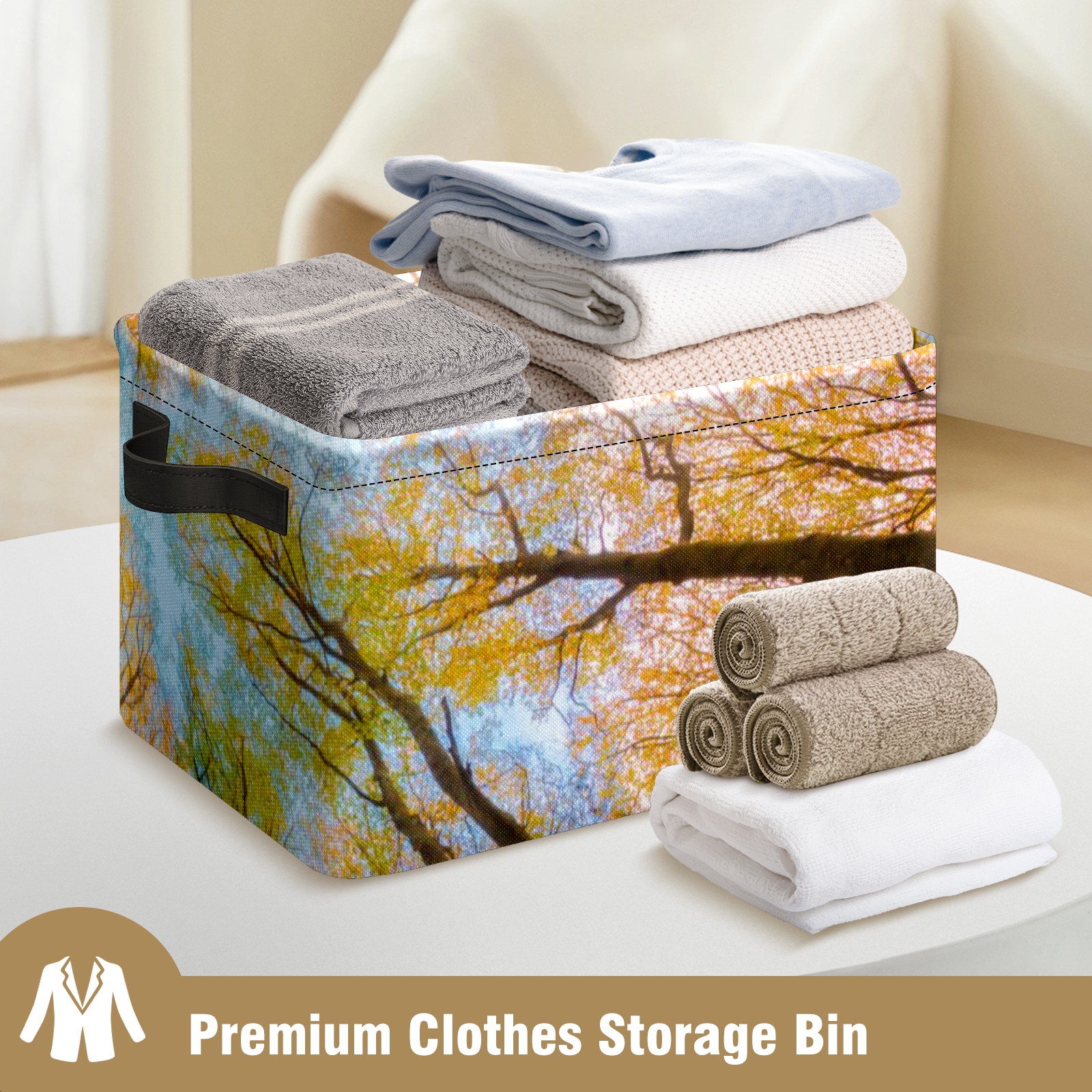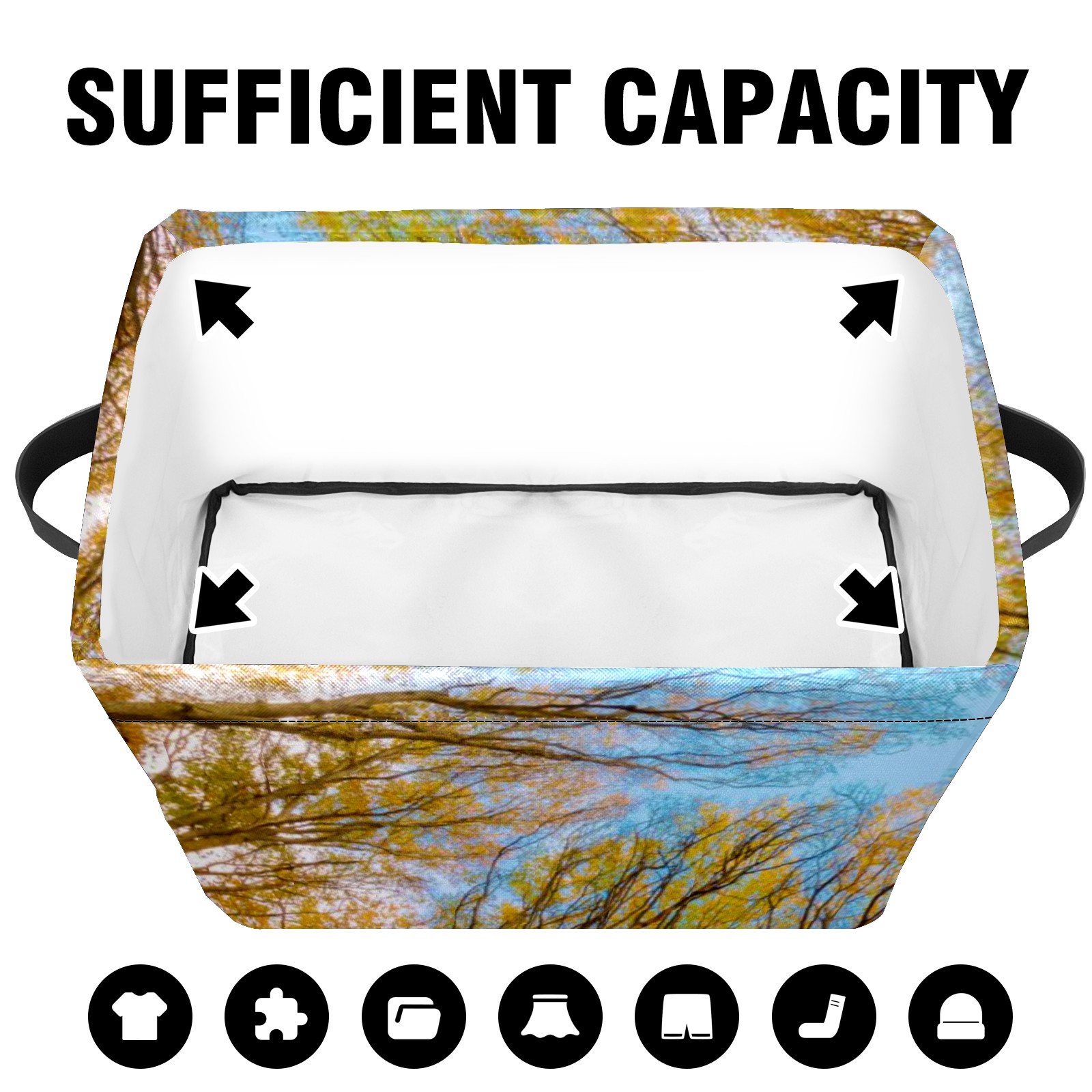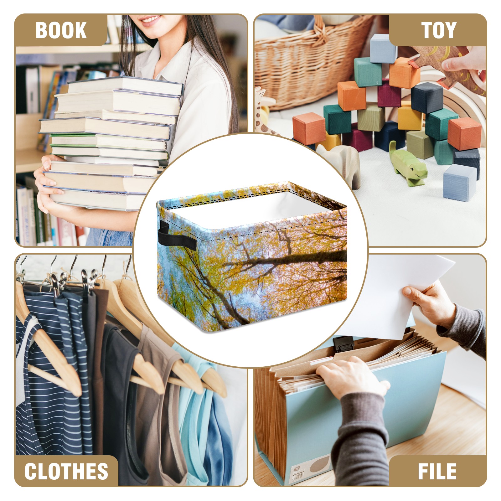 Collapsible 600D Oxford Storage Basket with Forest Tree Canopy Branches Top Foliage - Metal Frame 10"x14"x8" Reinforced Handles, Multi-Purpose Organizer