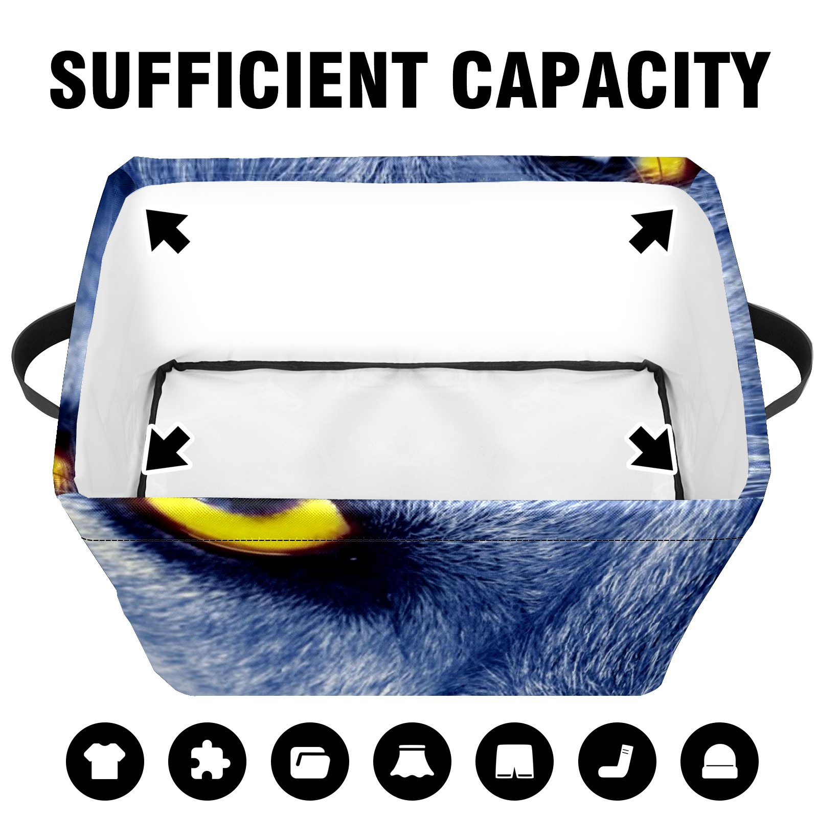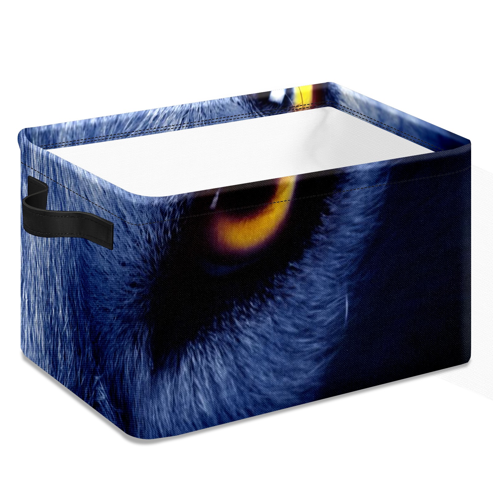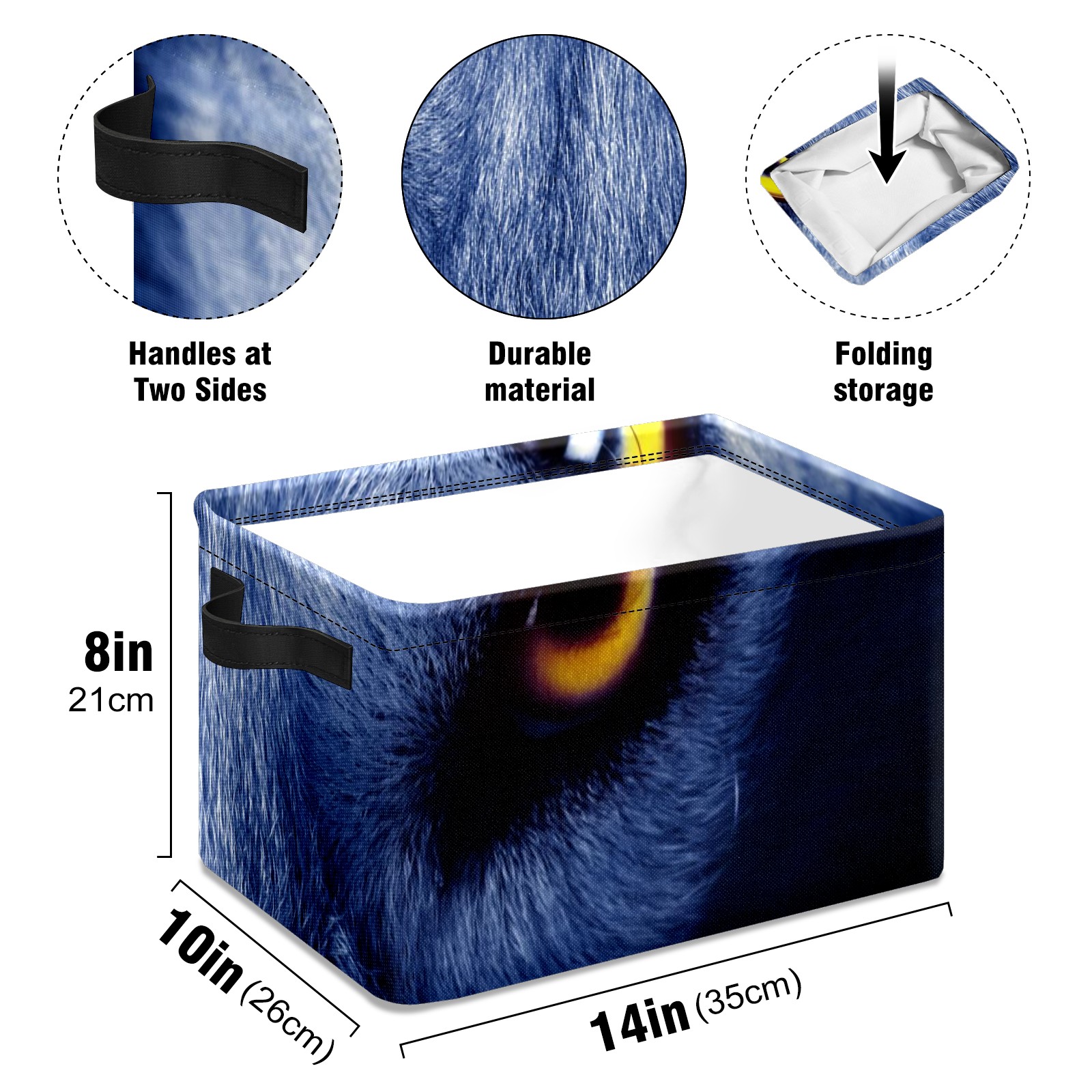 Collapsible 600D Oxford Storage Basket with Wolf Eyes - Metal Frame 10"x14"x8" Reinforced Handles, Multi-Purpose Organizer