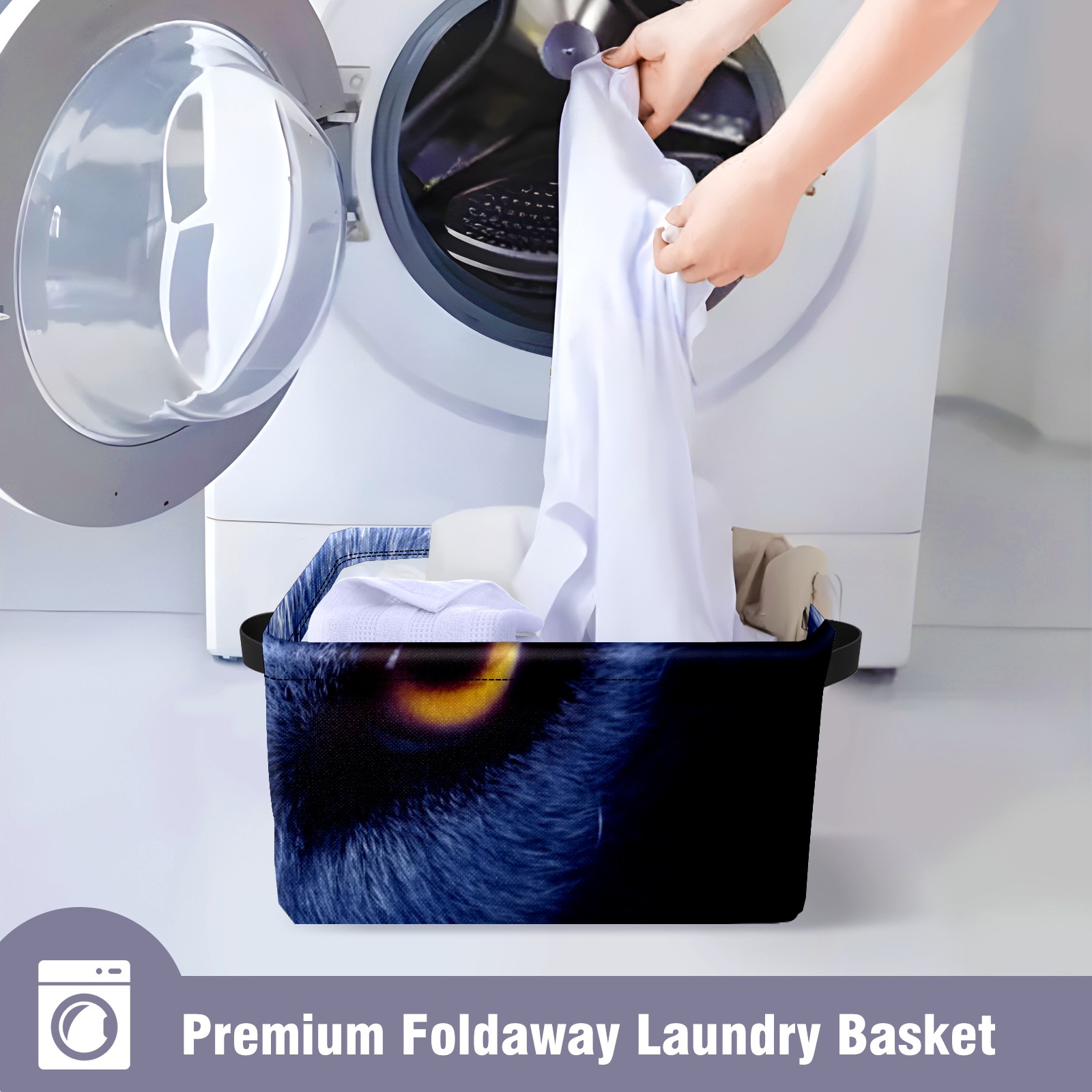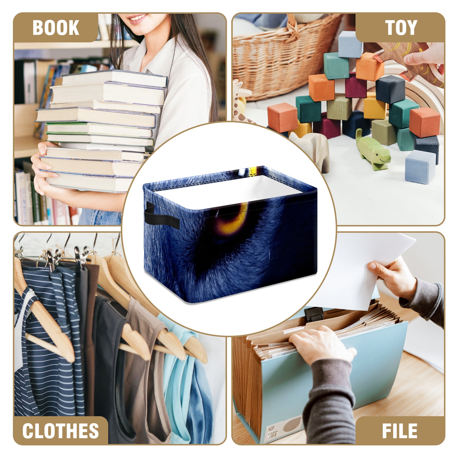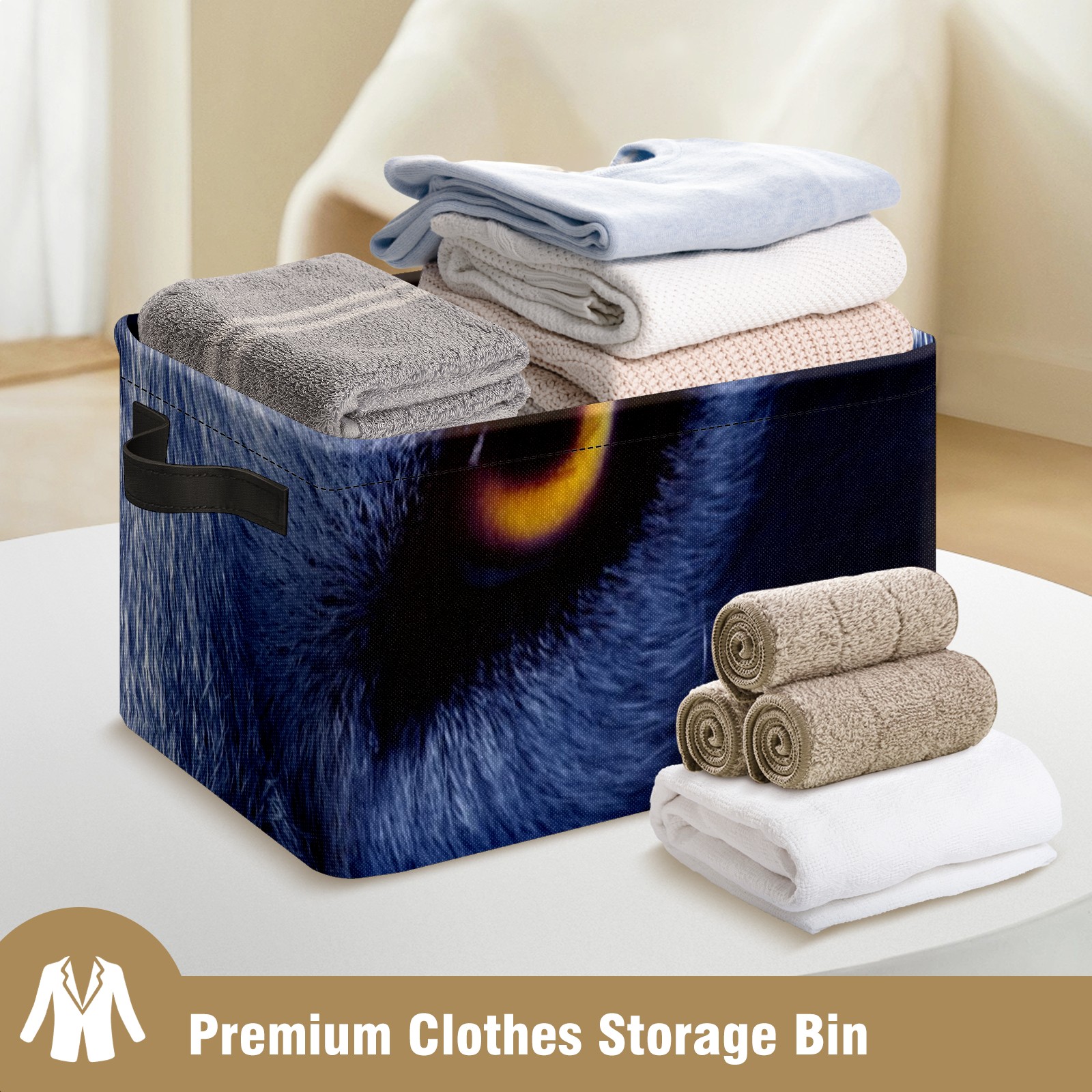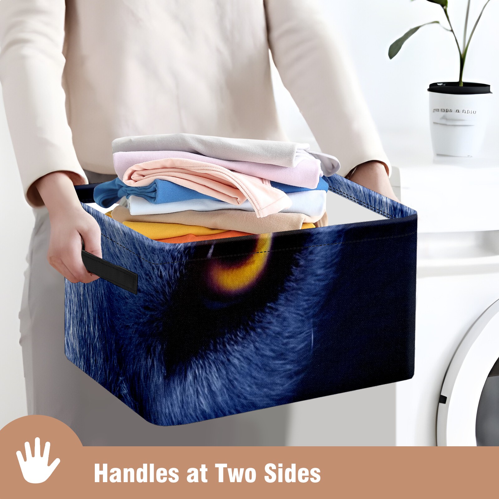 Collapsible 600D Oxford Storage Basket with Wolf Eyes - Metal Frame 10"x14"x8" Reinforced Handles, Multi-Purpose Organizer