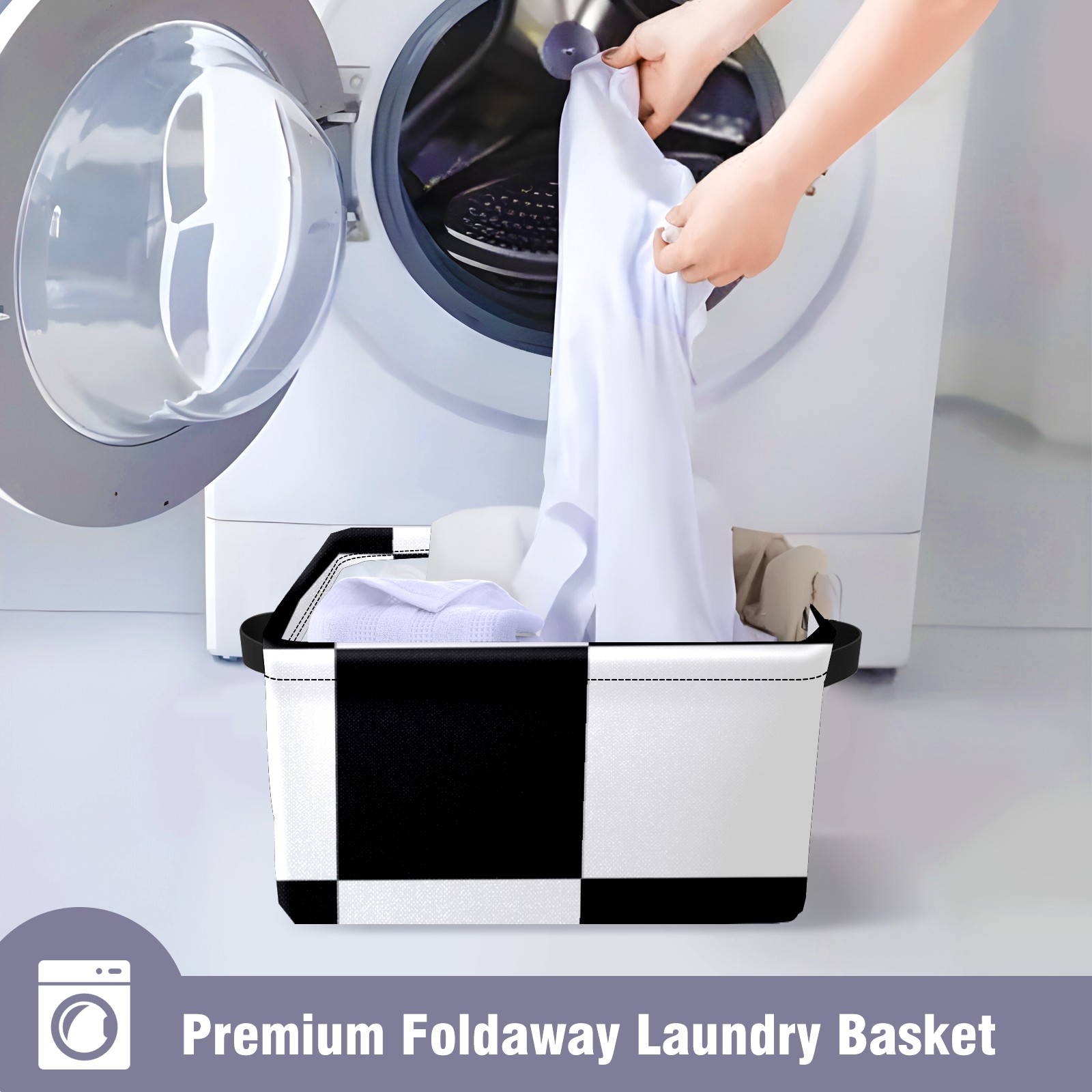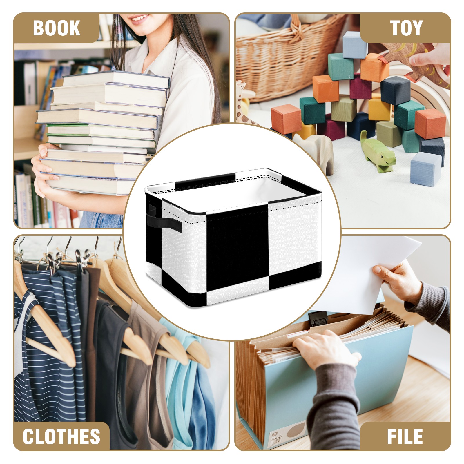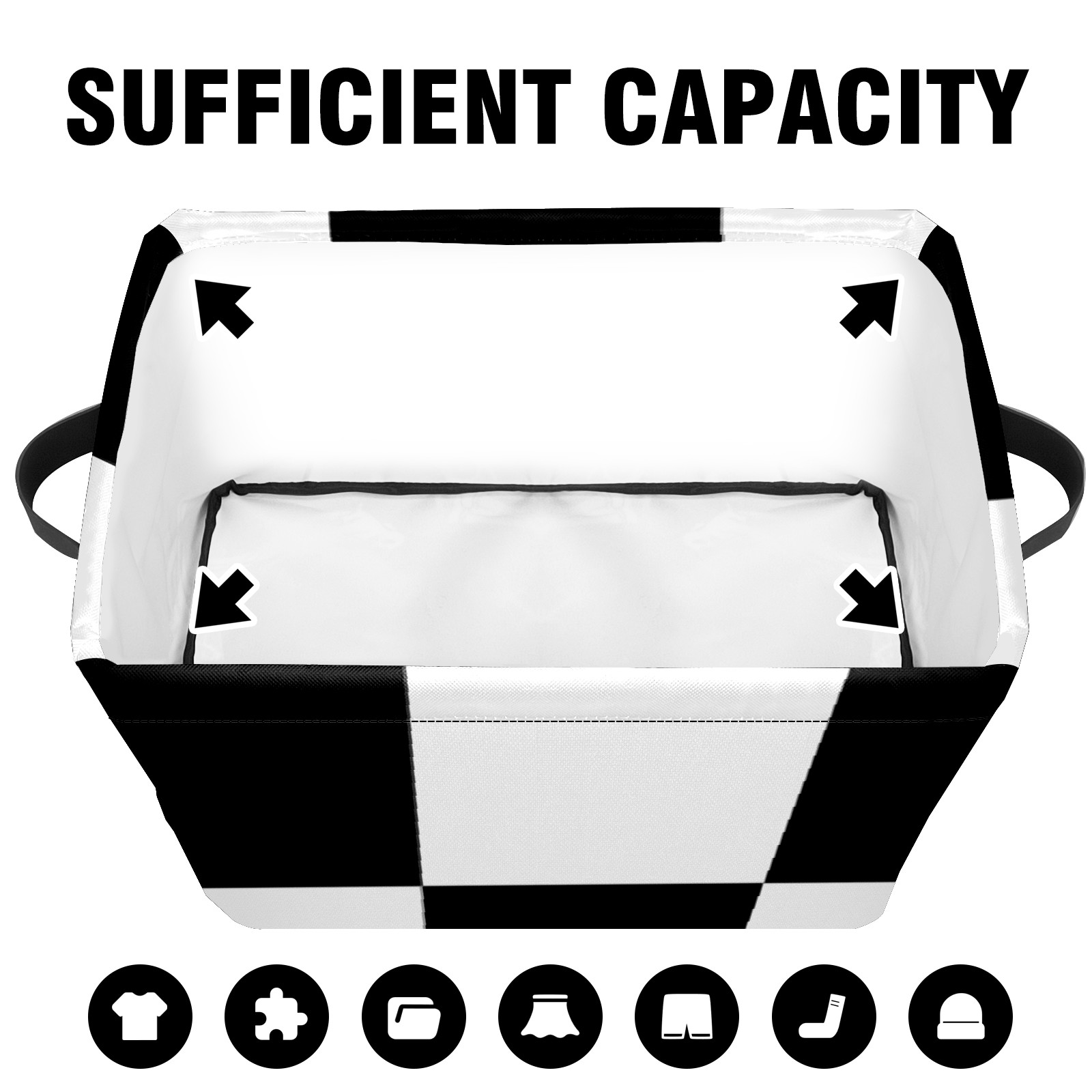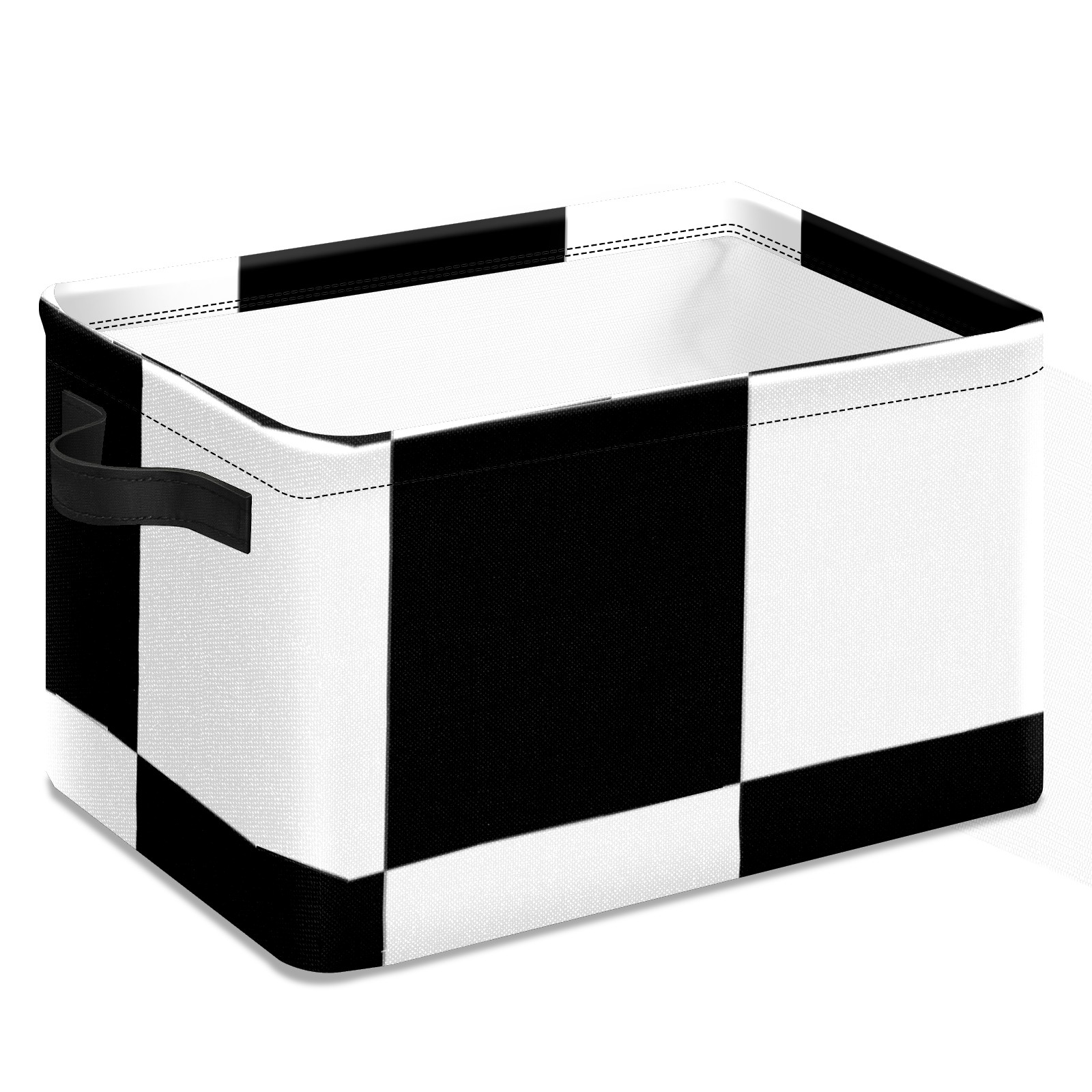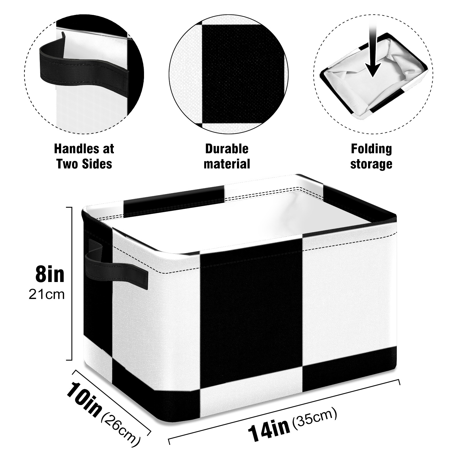 Collapsible 600D Oxford Storage Basket with Black And White Checkered - Metal Frame 10"x14"x8" Reinforced Handles, Multi-Purpose Organizer