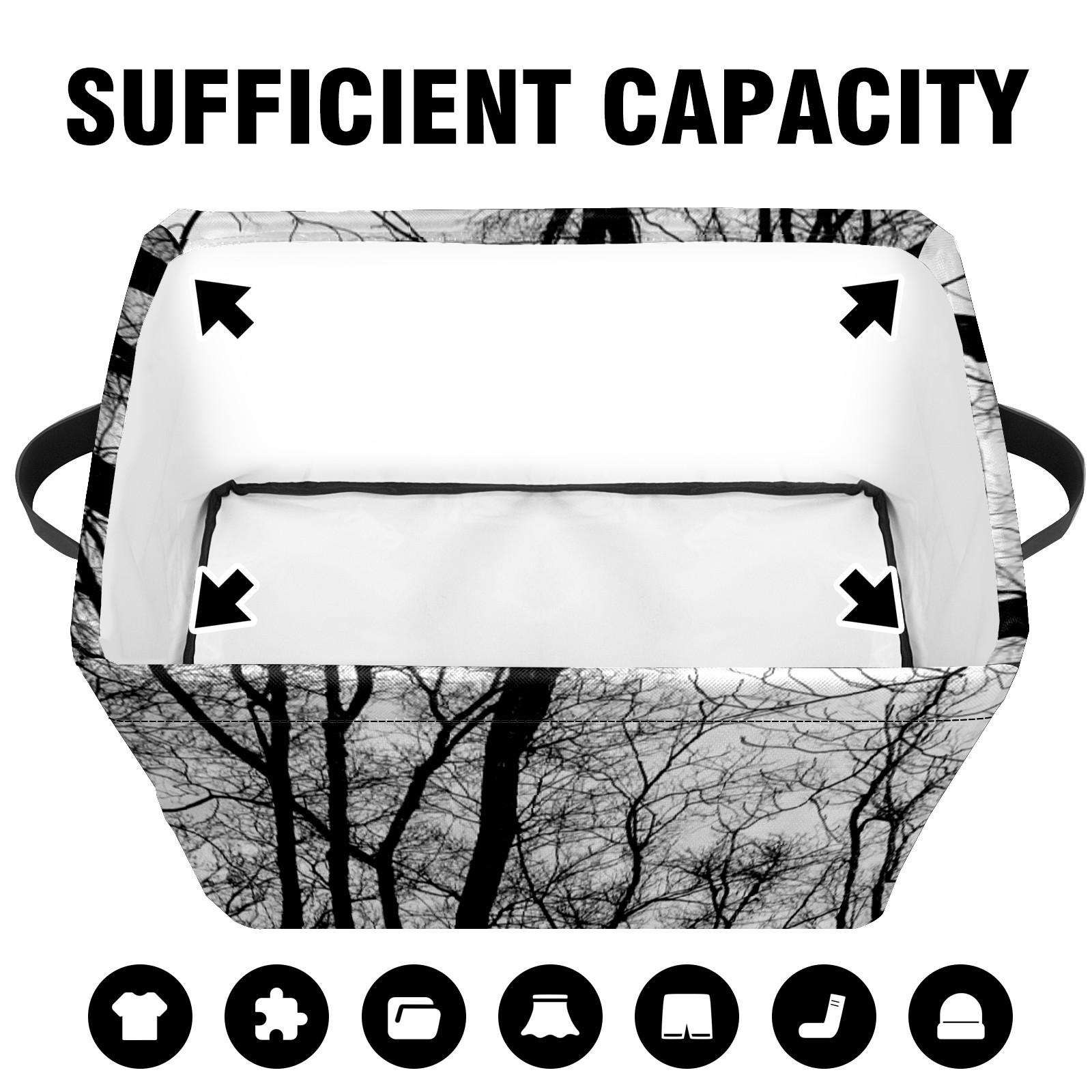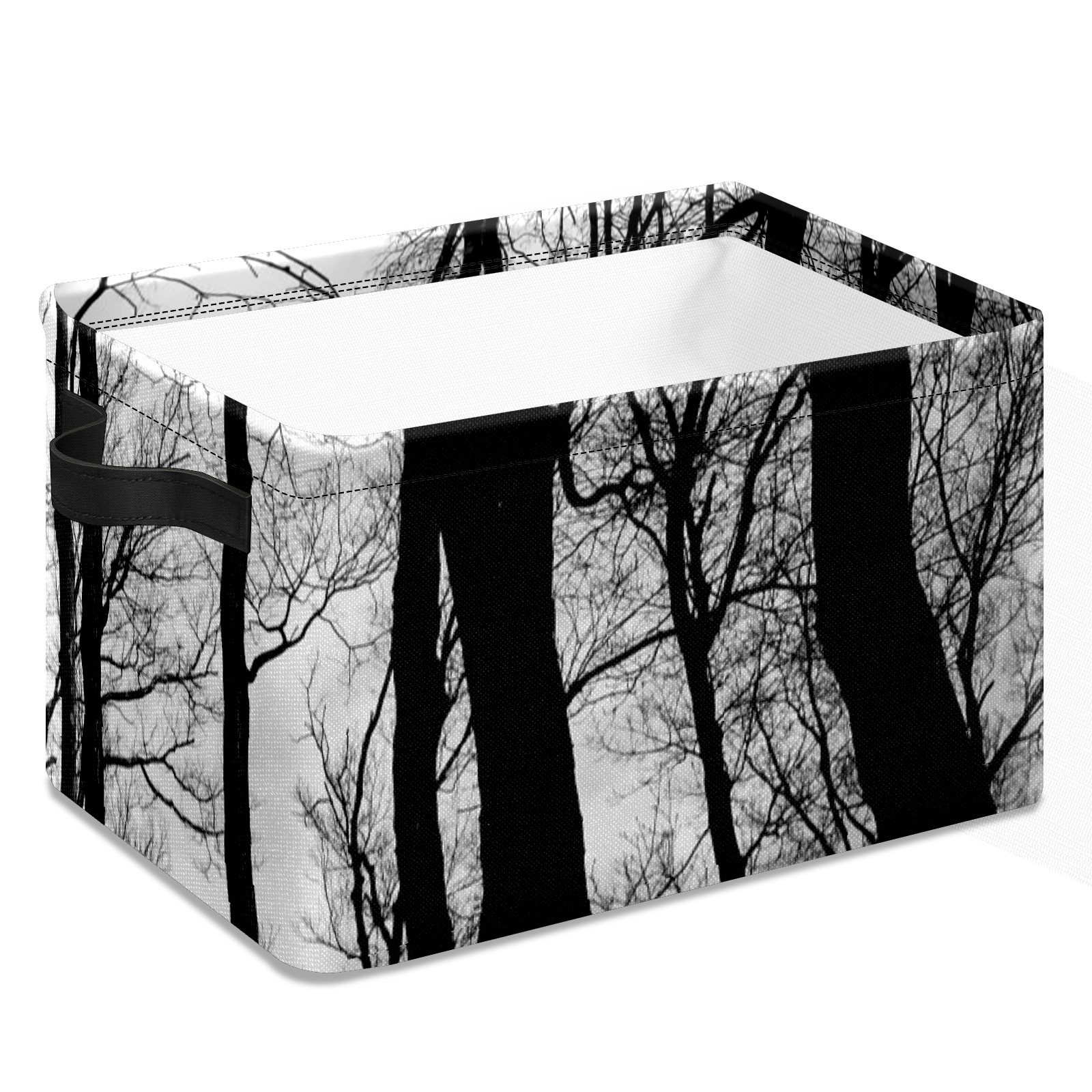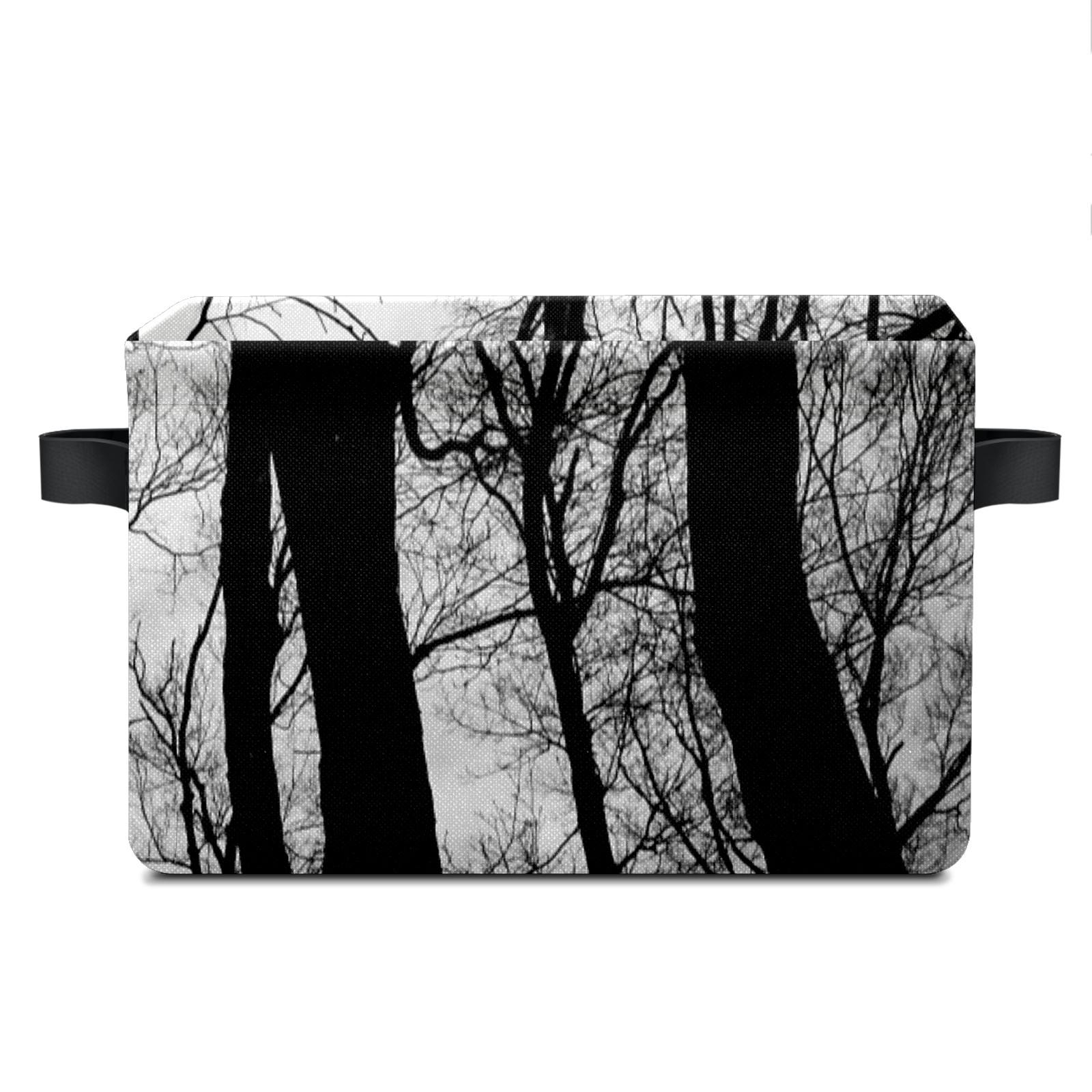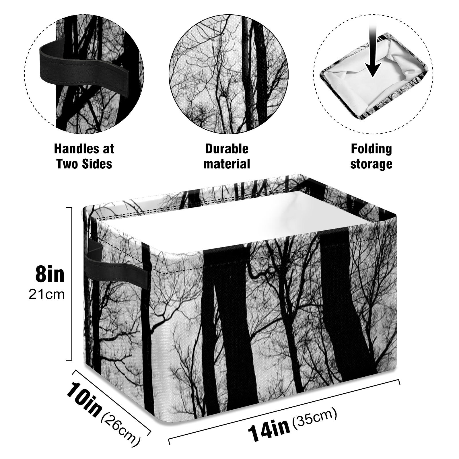 Collapsible 600D Oxford Storage Basket with Forest Trees Without Leaves Black White Dead Branches - Metal Frame 10"x14"x8" Reinforced Handles, Multi-Purpose Organizer