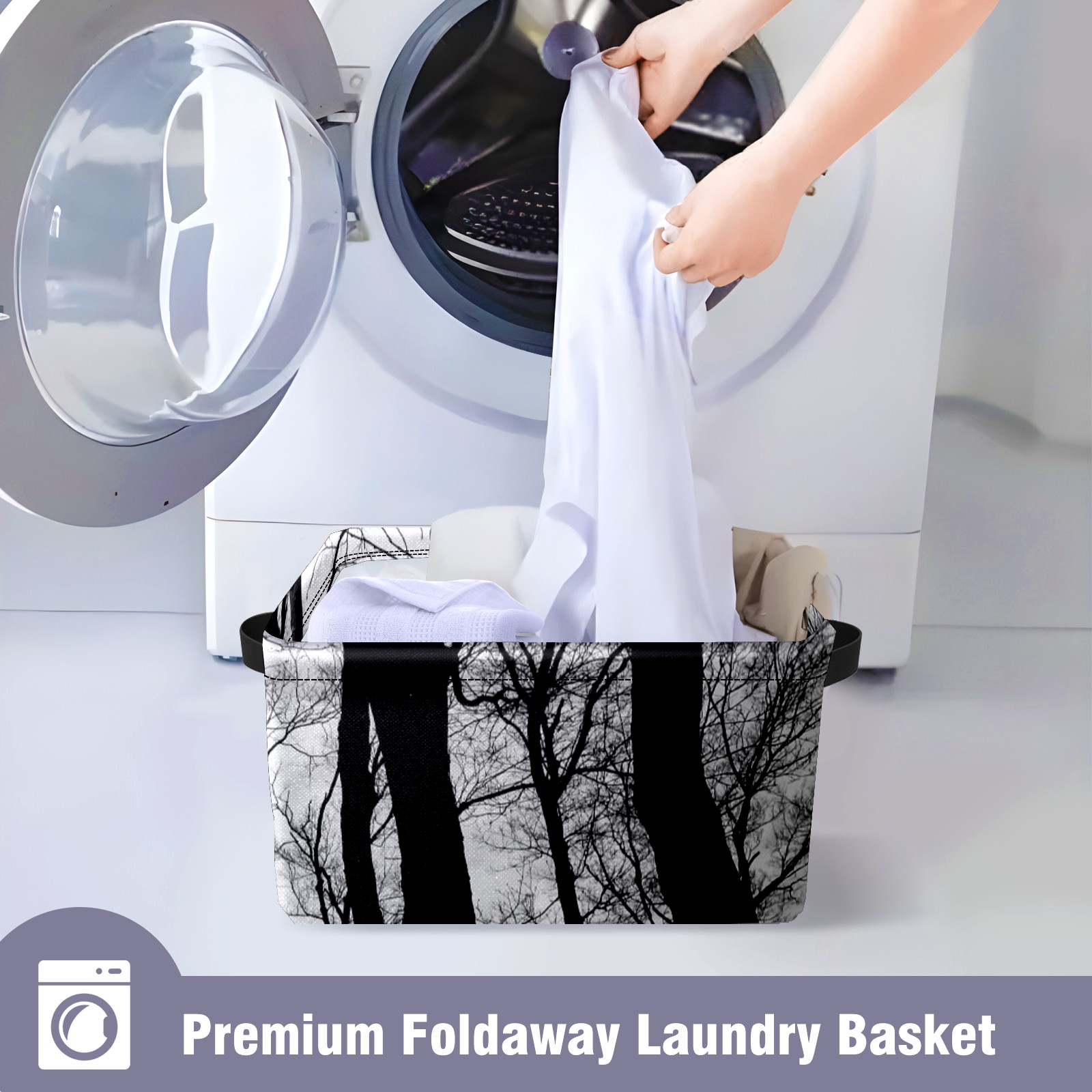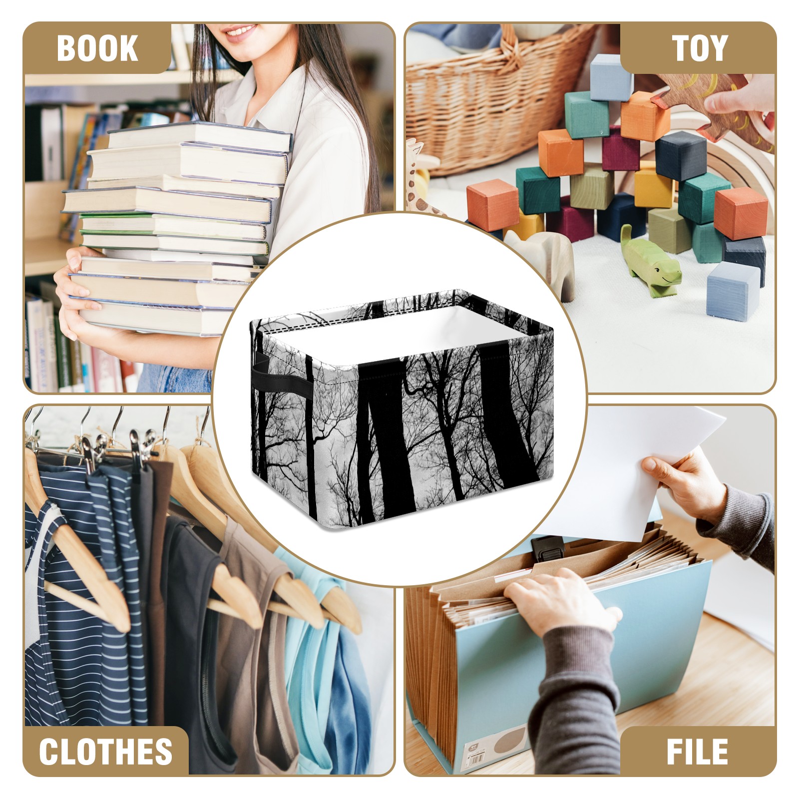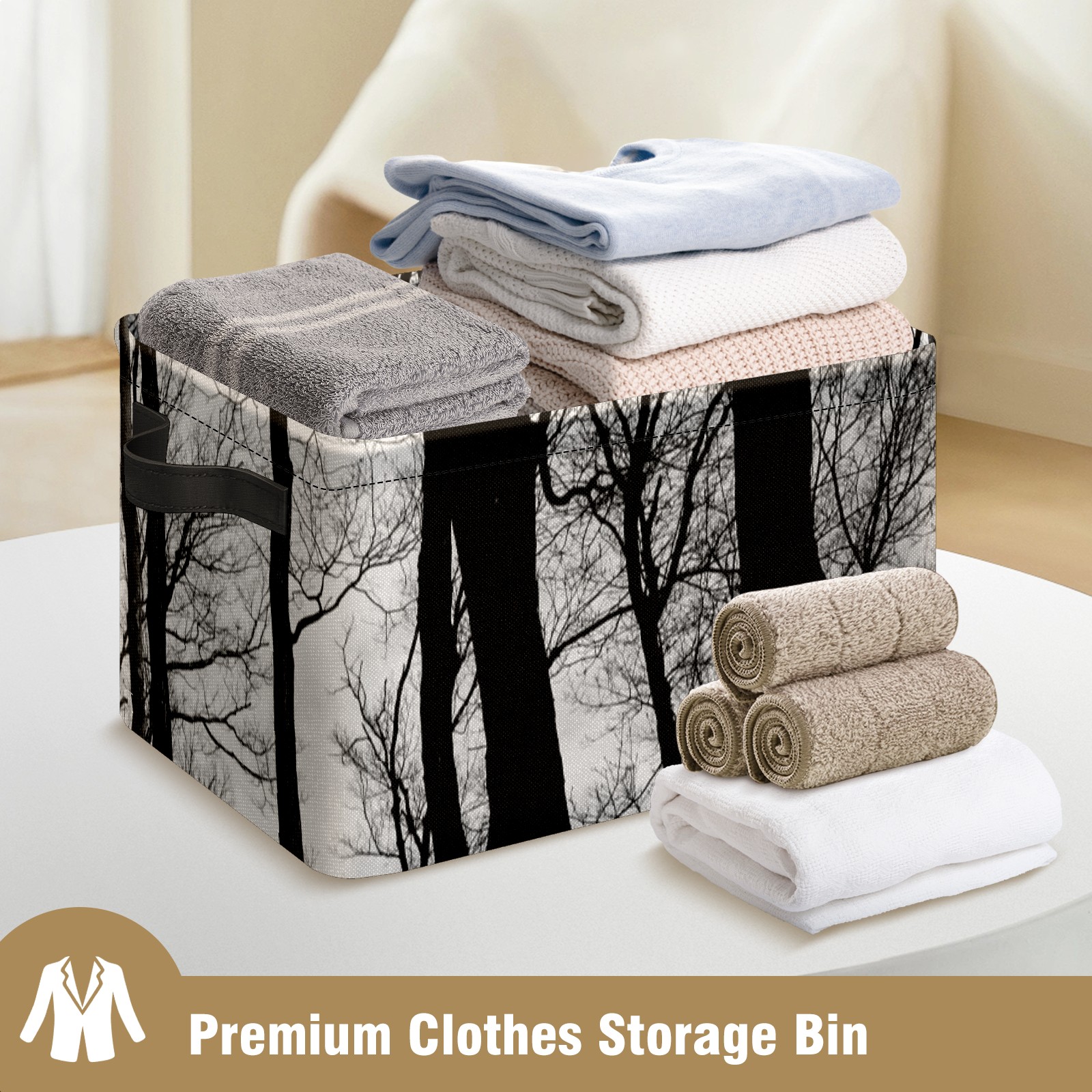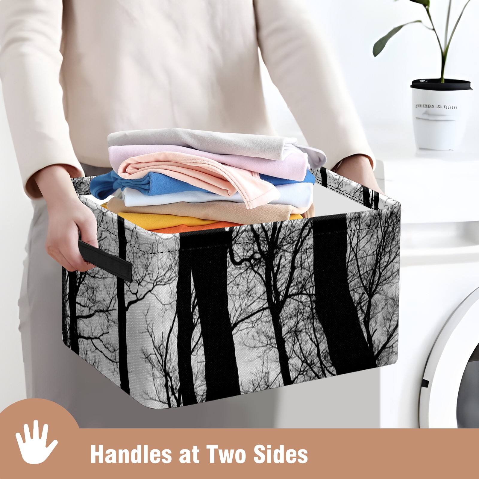 Collapsible 600D Oxford Storage Basket with Forest Trees Without Leaves Black White Dead Branches - Metal Frame 10"x14"x8" Reinforced Handles, Multi-Purpose Organizer