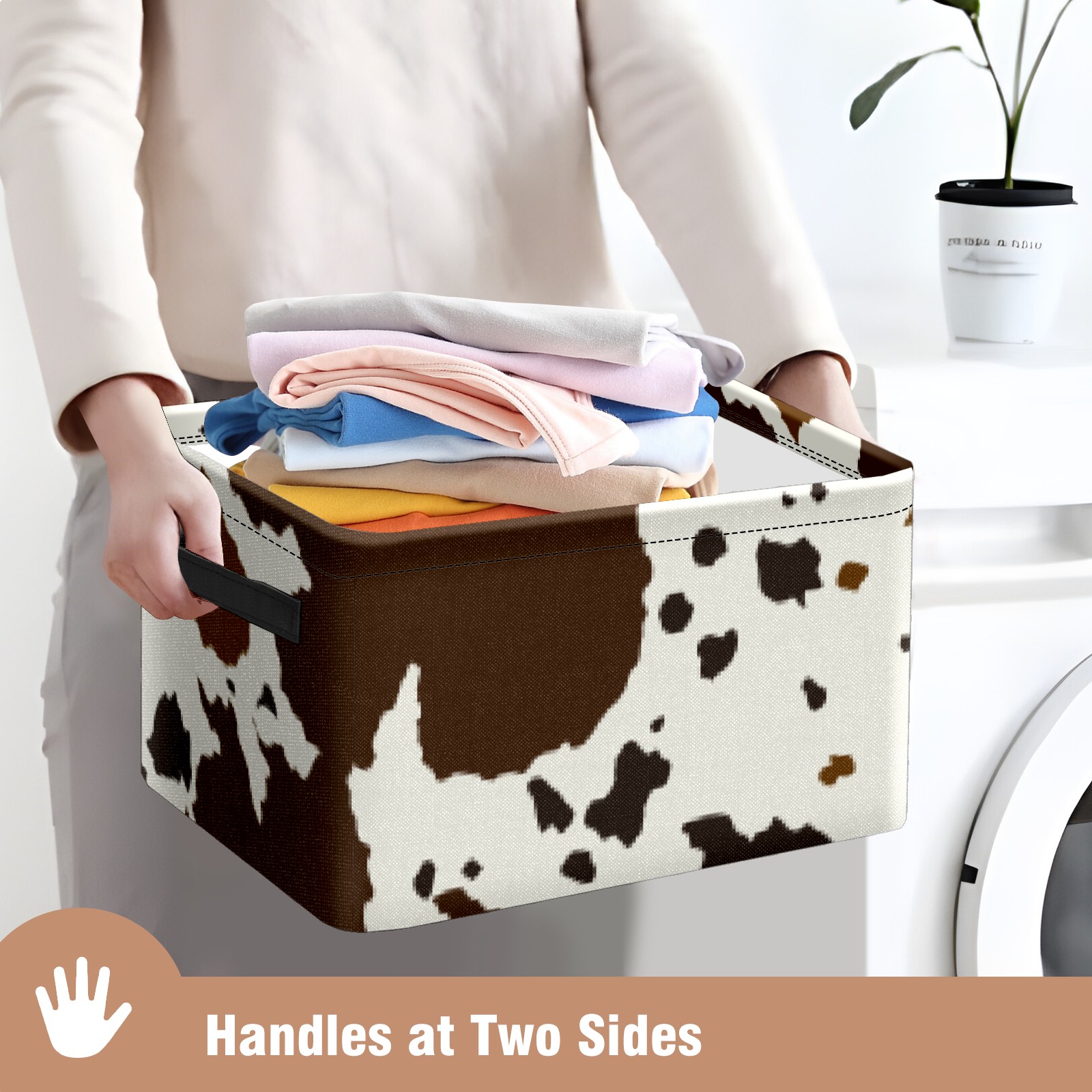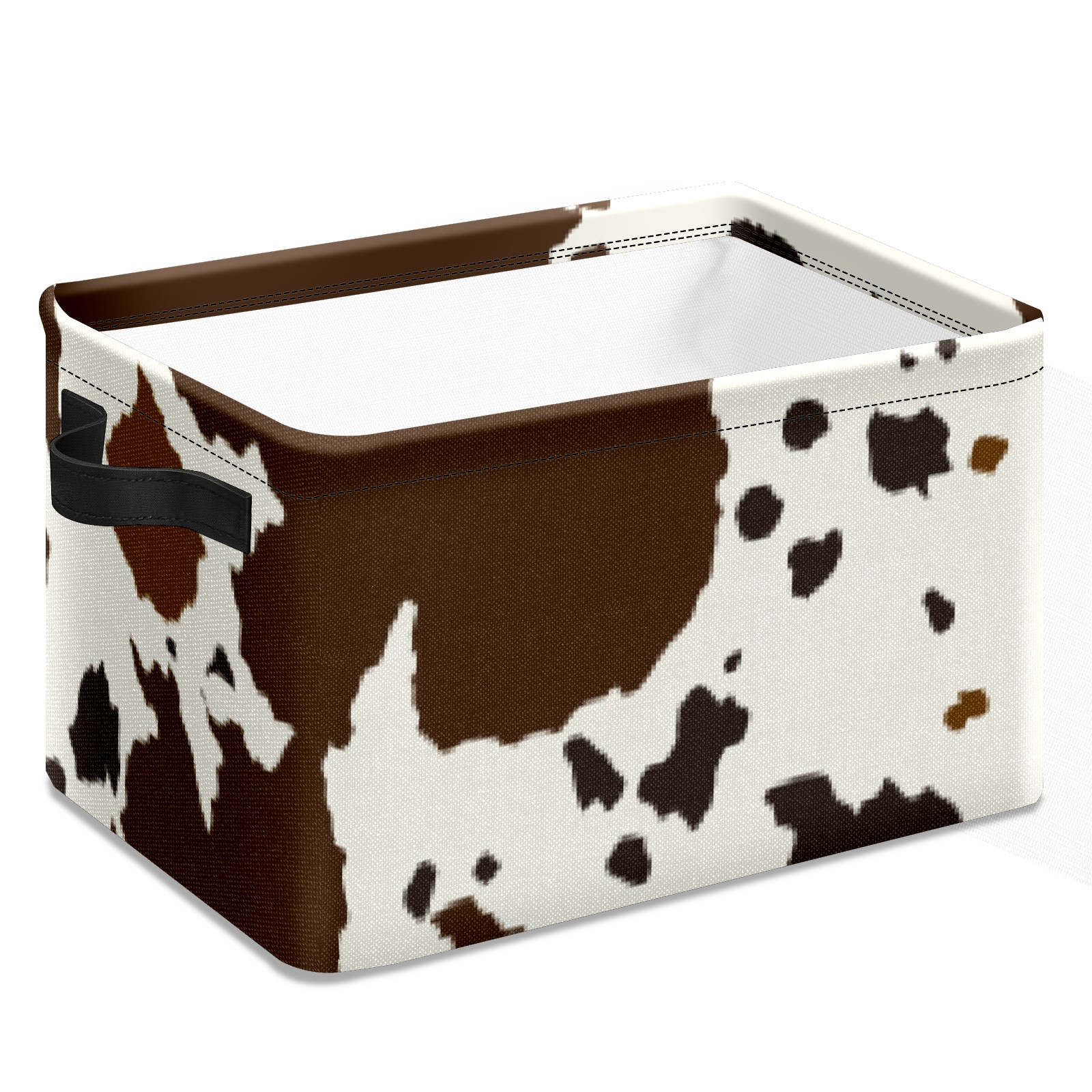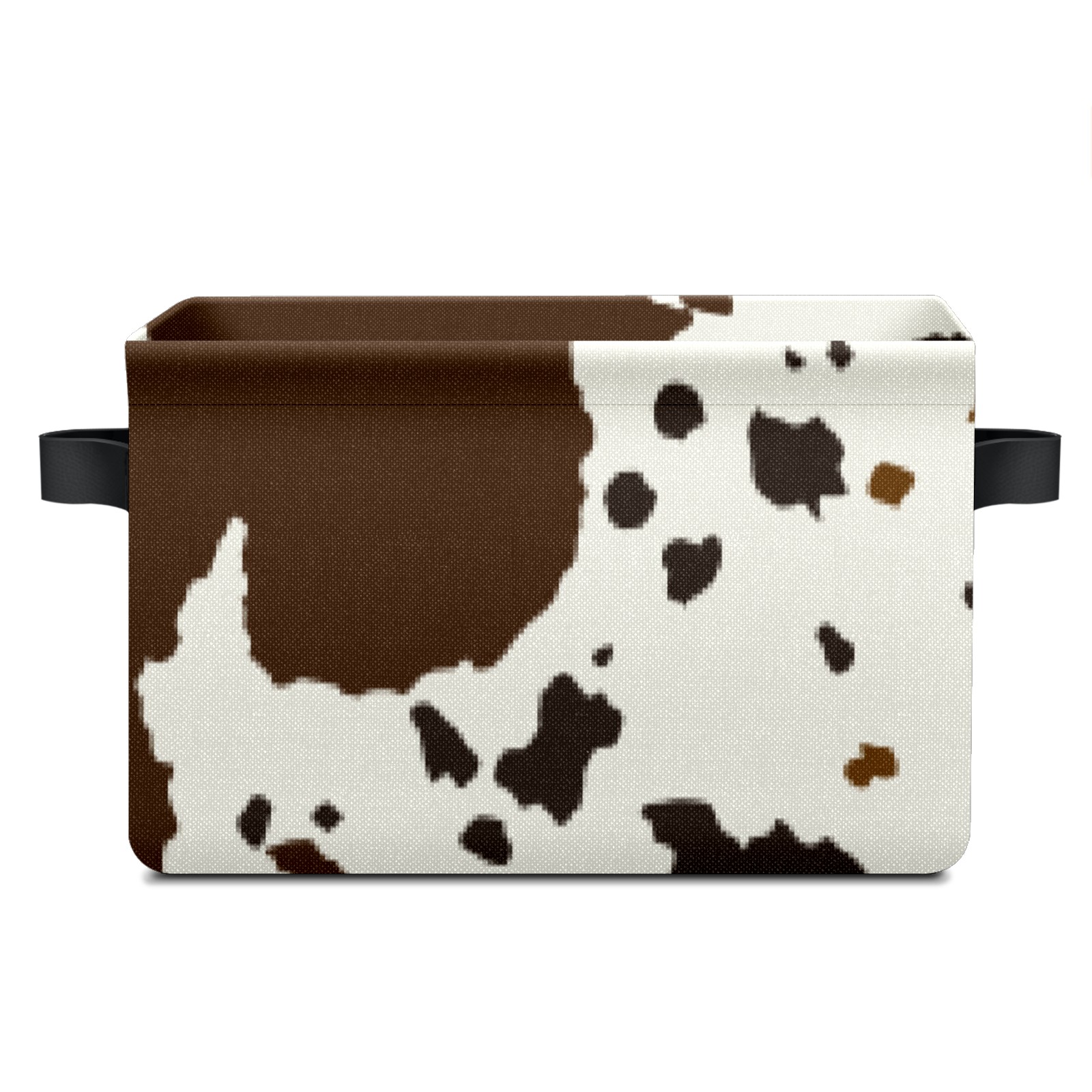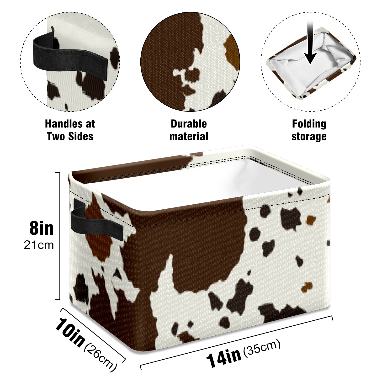 Collapsible 600D Oxford Storage Basket with Western Brown Black Cow Print - Metal Frame 10"x14"x8" Reinforced Handles, Multi-Purpose Organizer