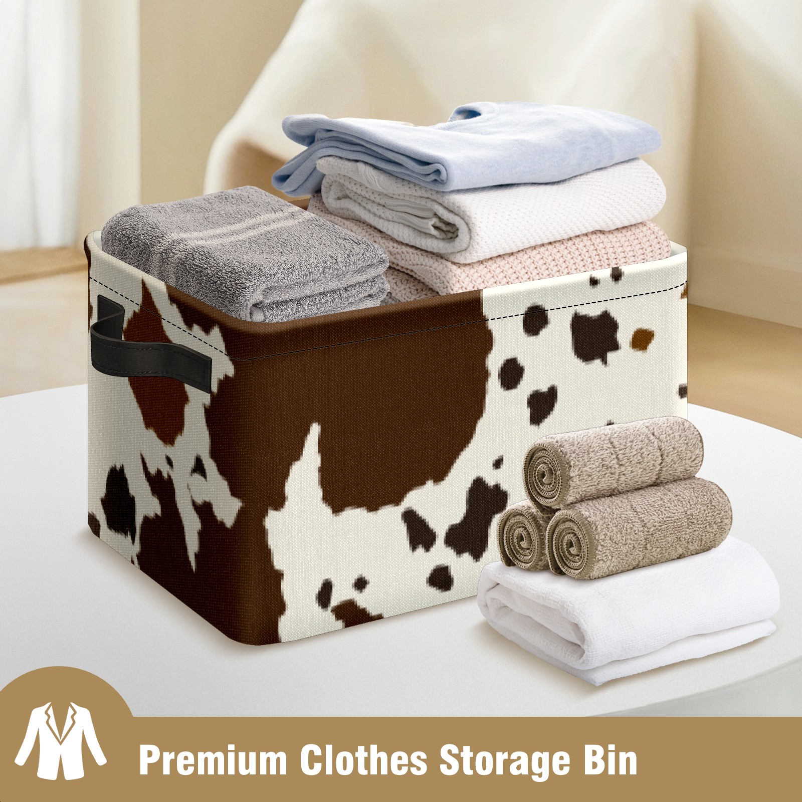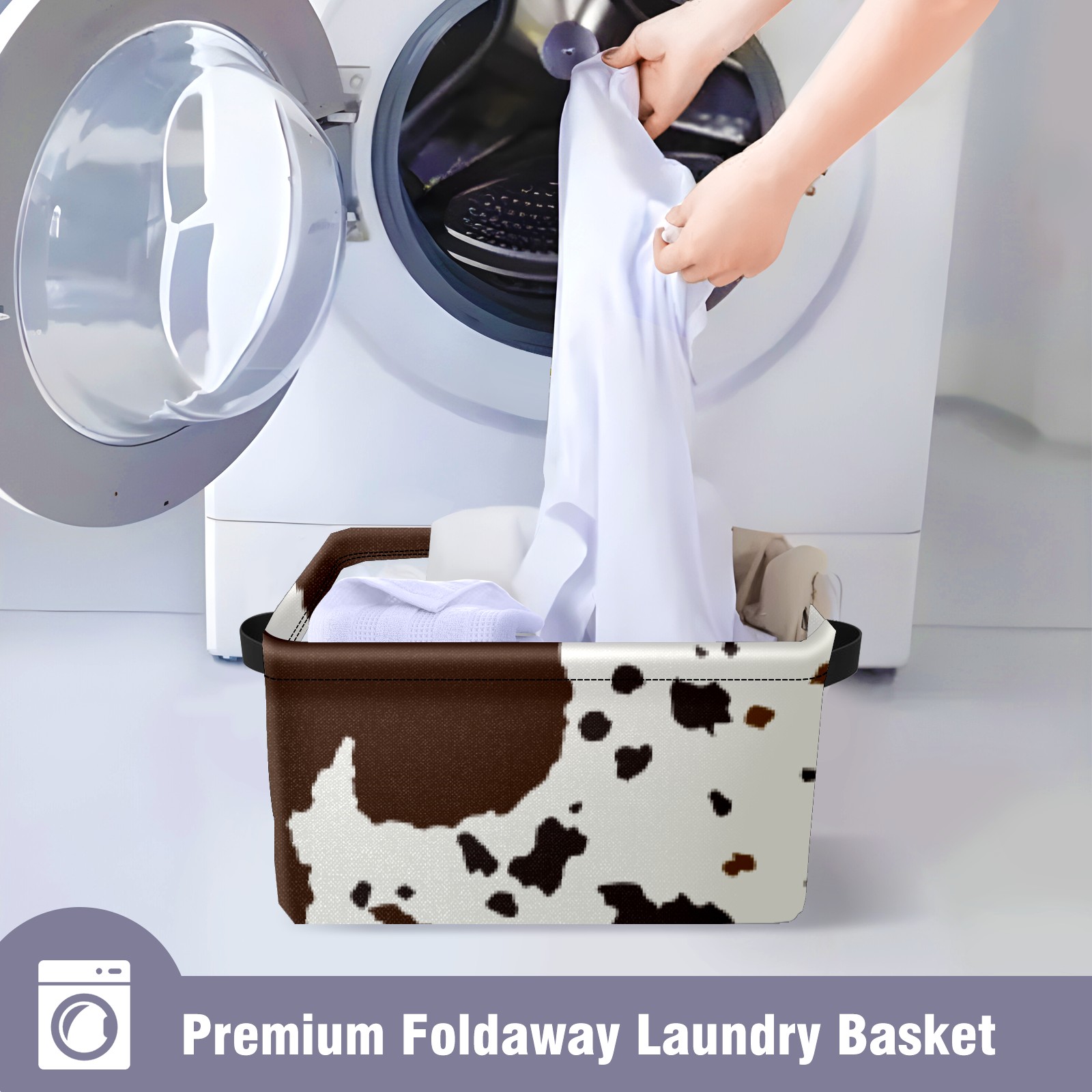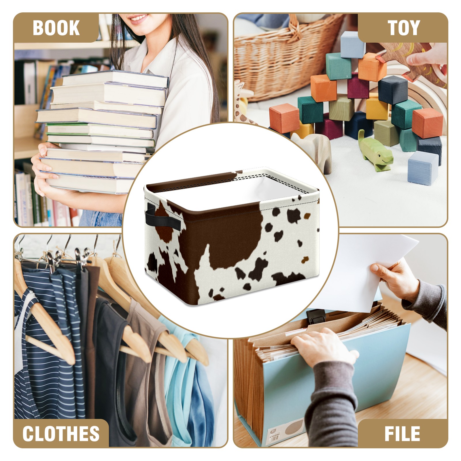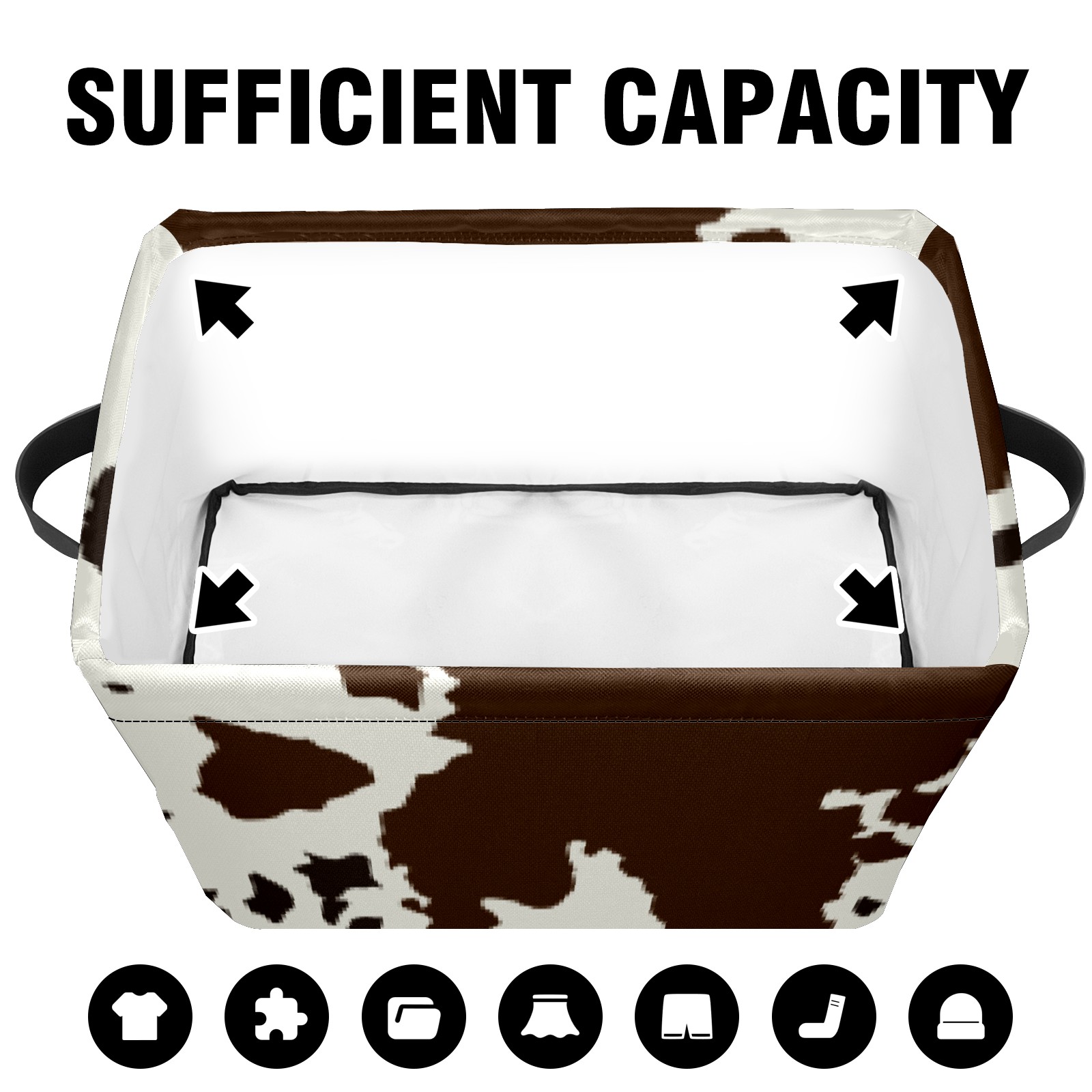 Collapsible 600D Oxford Storage Basket with Western Brown Black Cow Print - Metal Frame 10"x14"x8" Reinforced Handles, Multi-Purpose Organizer