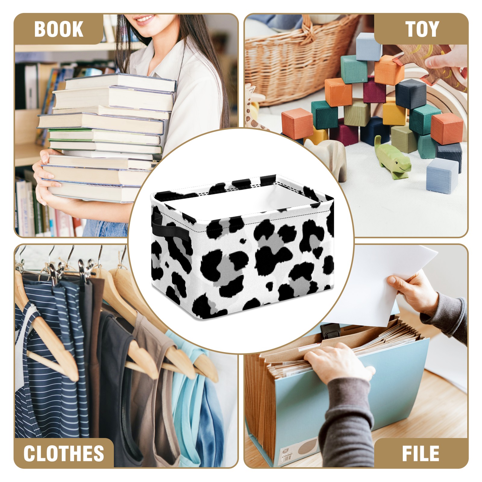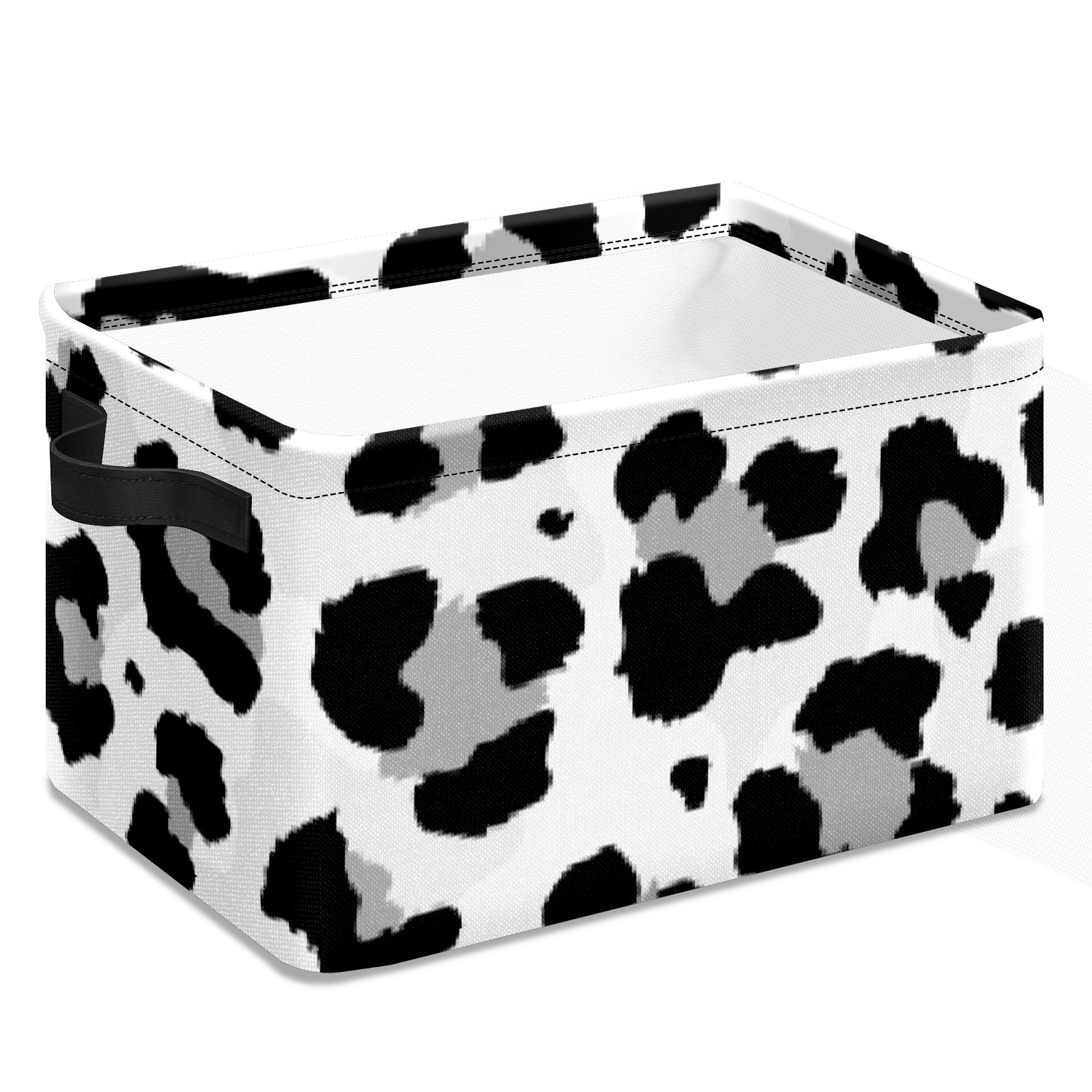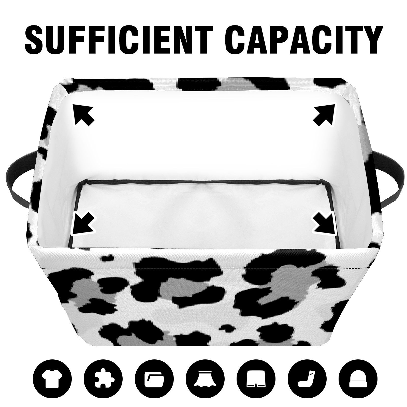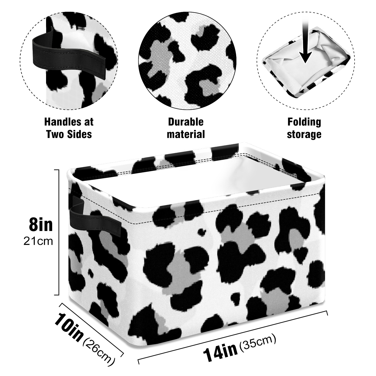 Collapsible 600D Oxford Storage Basket with Black And Grey Leopard - Metal Frame 10"x14"x8" Reinforced Handles, Multi-Purpose Organizer