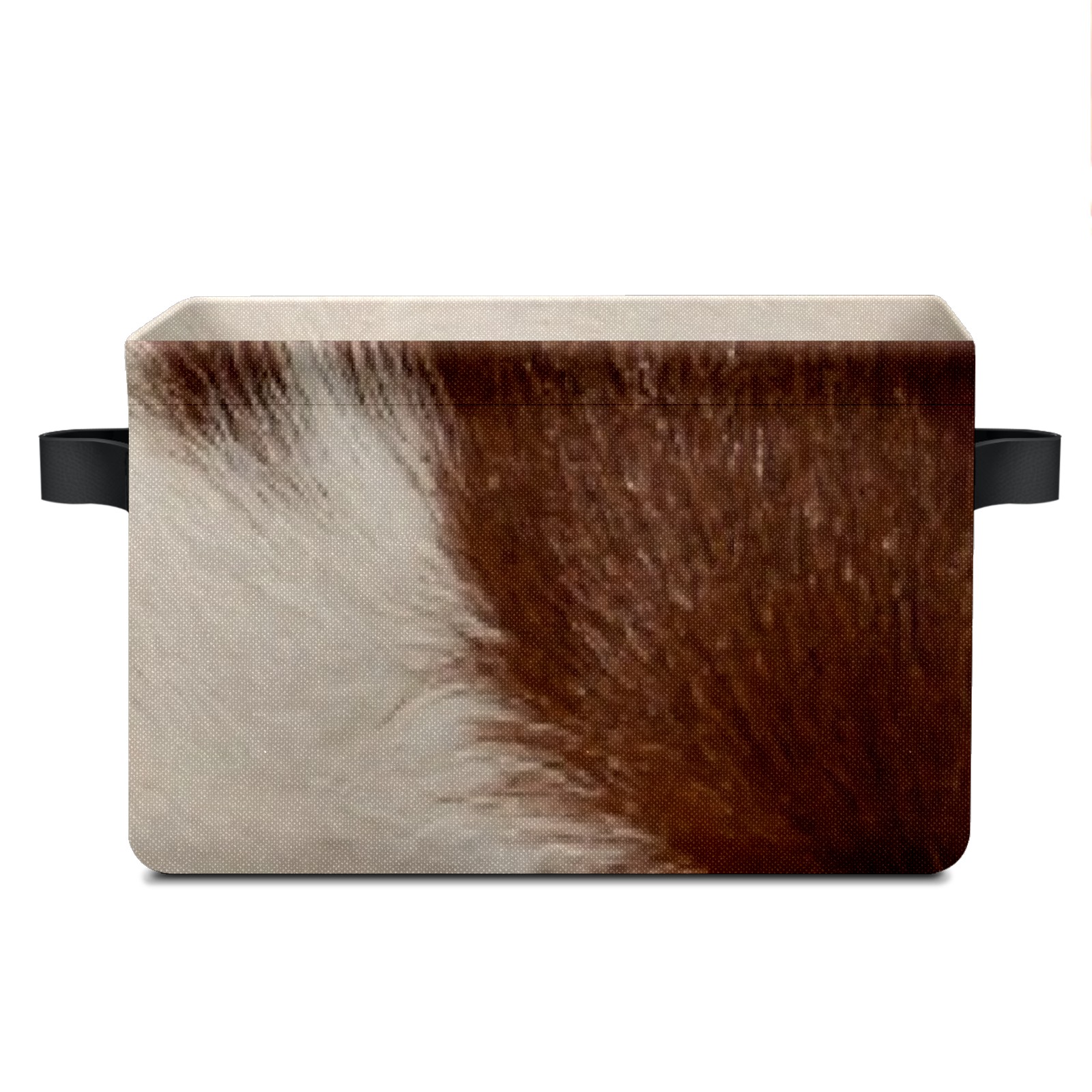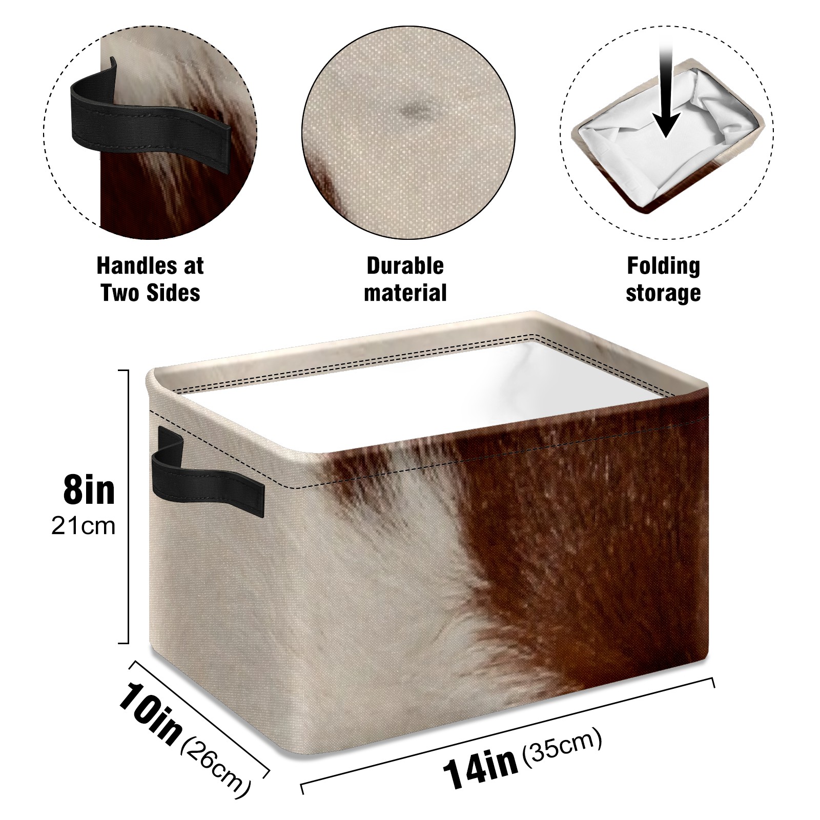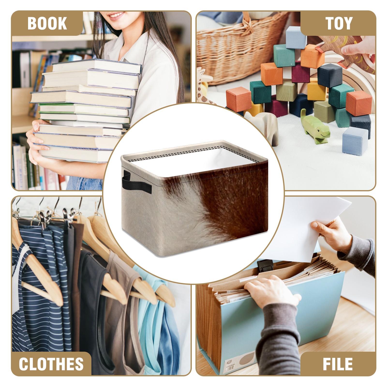Collapsible 600D Oxford Storage Basket with Cowhide - Metal Frame 10"x14"x8" Reinforced Handles, Multi-Purpose Organizer
