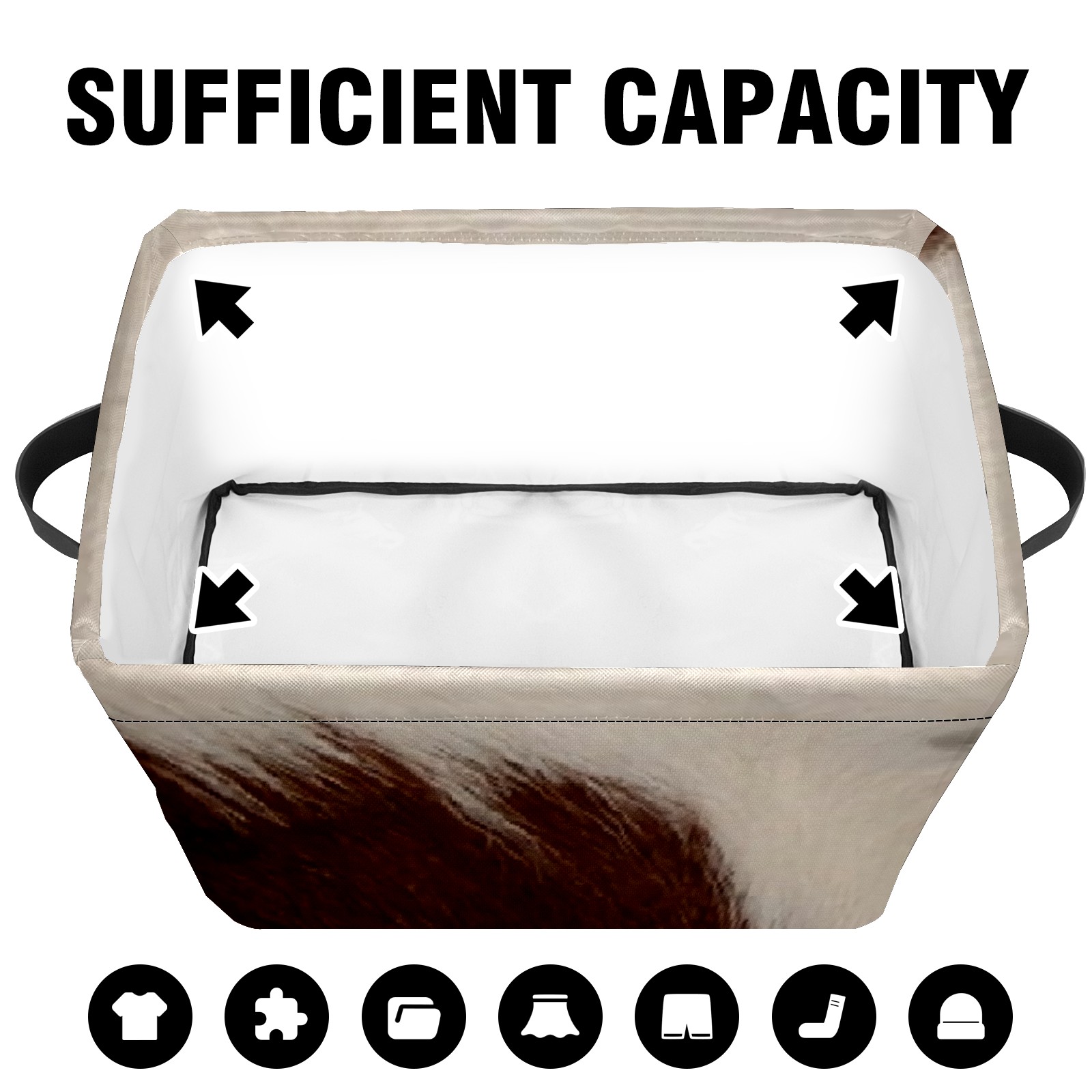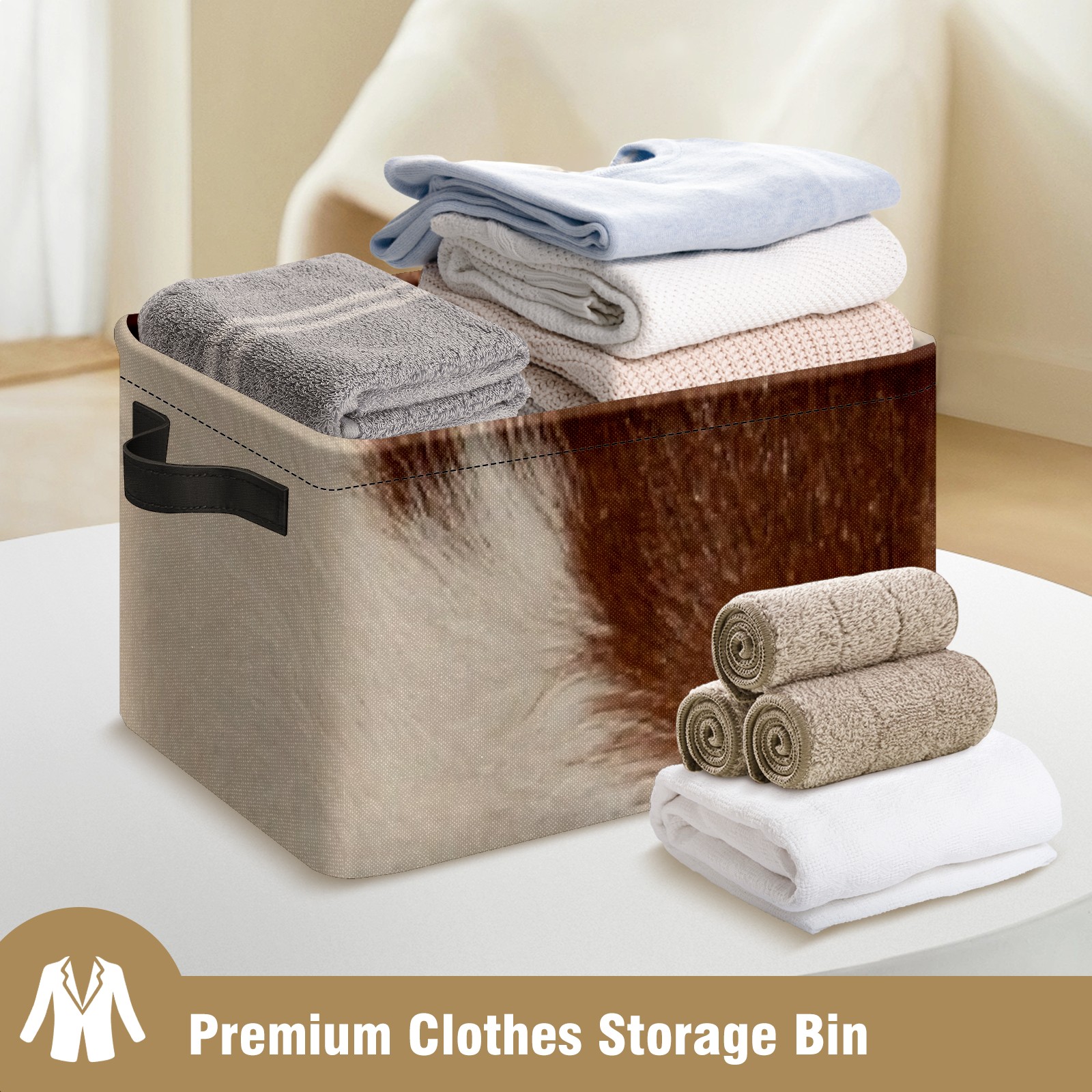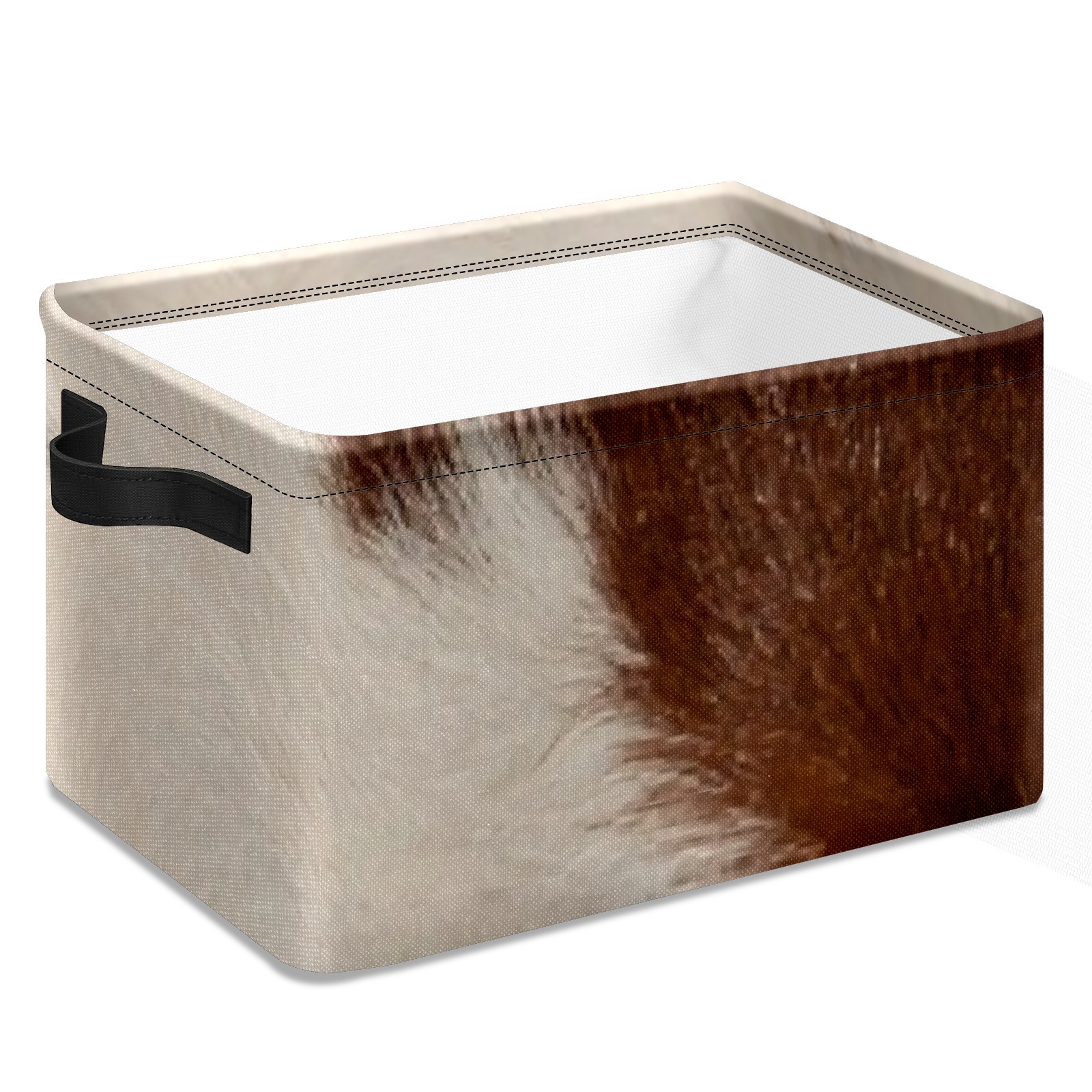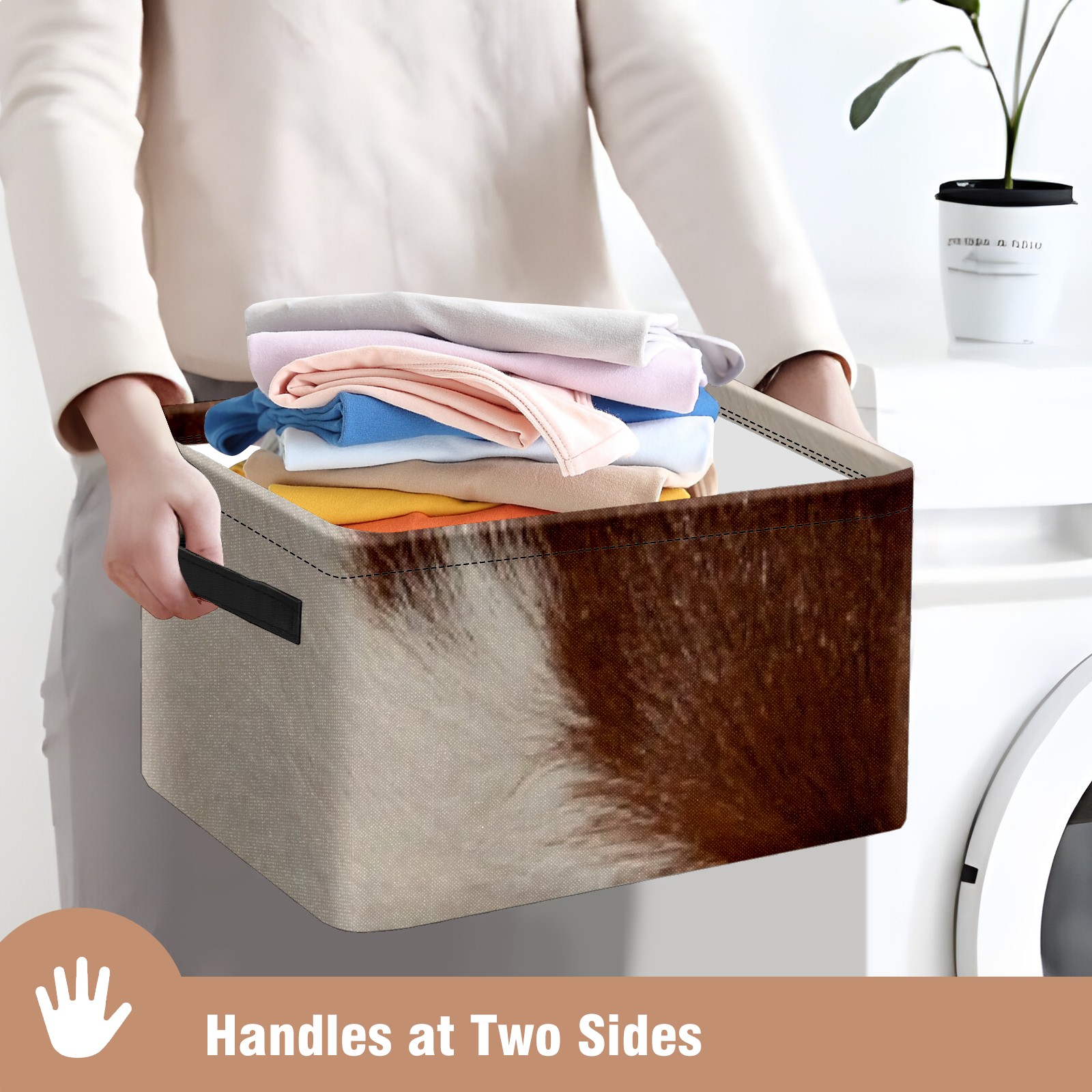 Collapsible 600D Oxford Storage Basket with Cowhide - Metal Frame 10"x14"x8" Reinforced Handles, Multi-Purpose Organizer