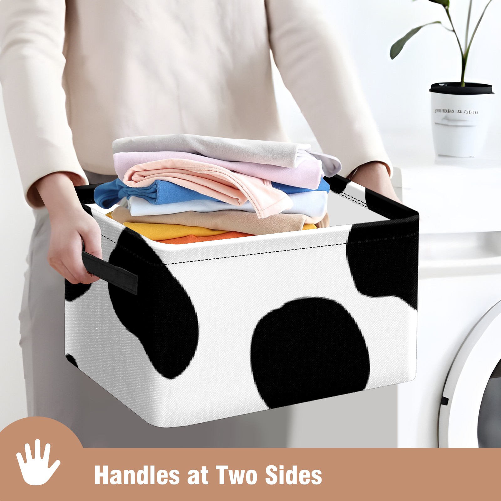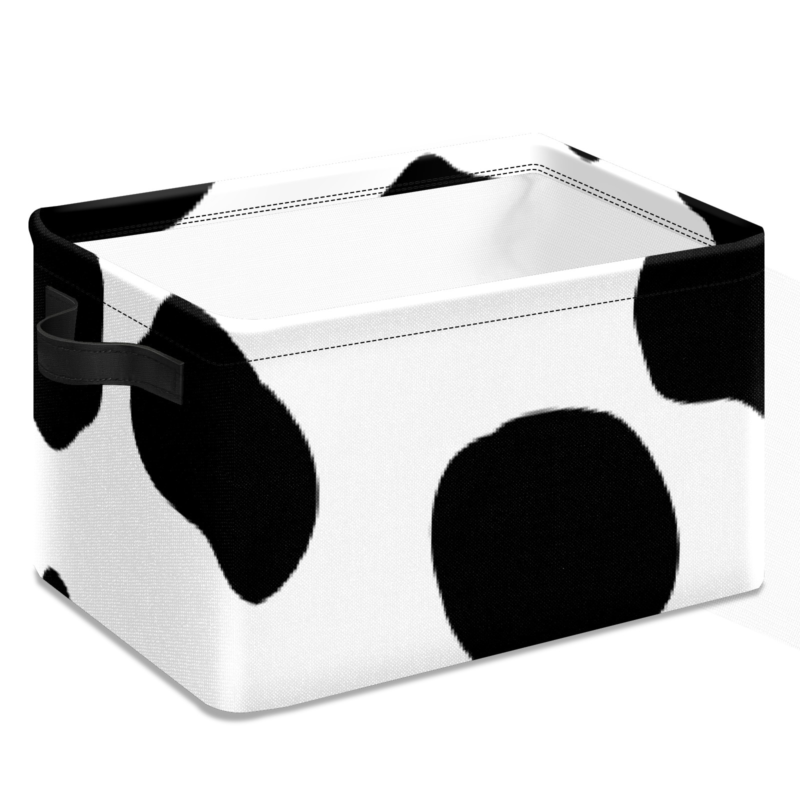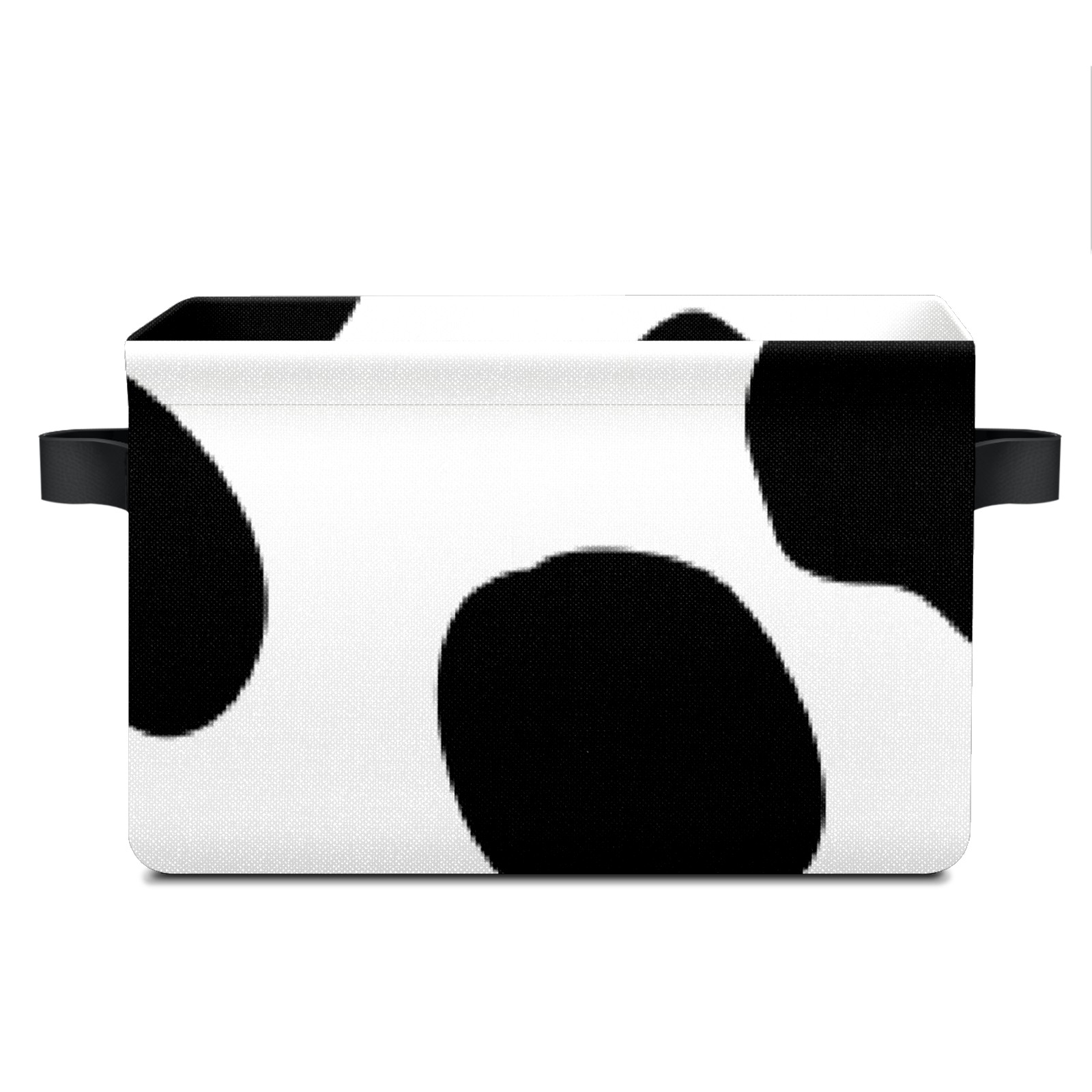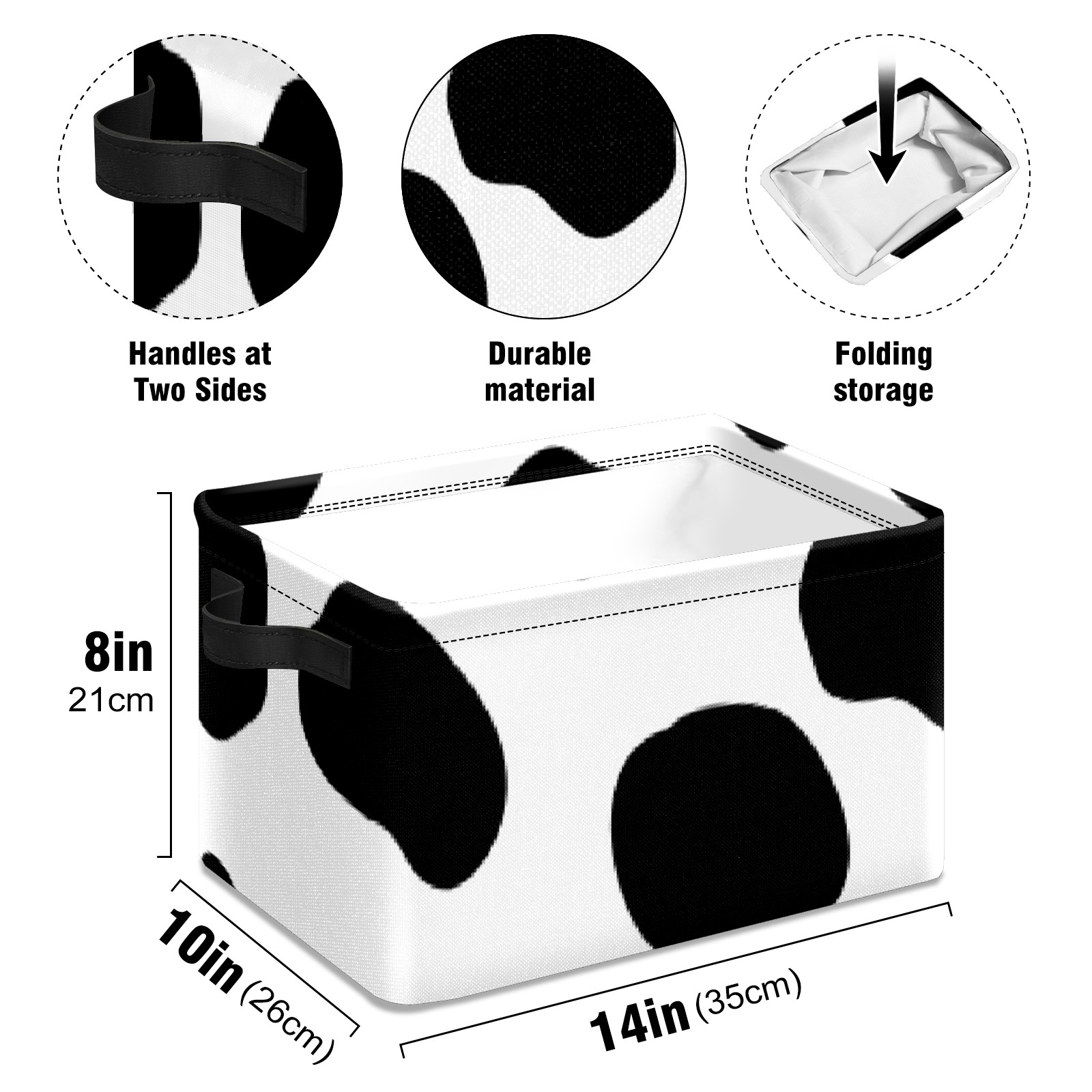 Collapsible 600D Oxford Storage Basket with Black And White Cow Print - Metal Frame 10"x14"x8" Reinforced Handles, Multi-Purpose Organizer