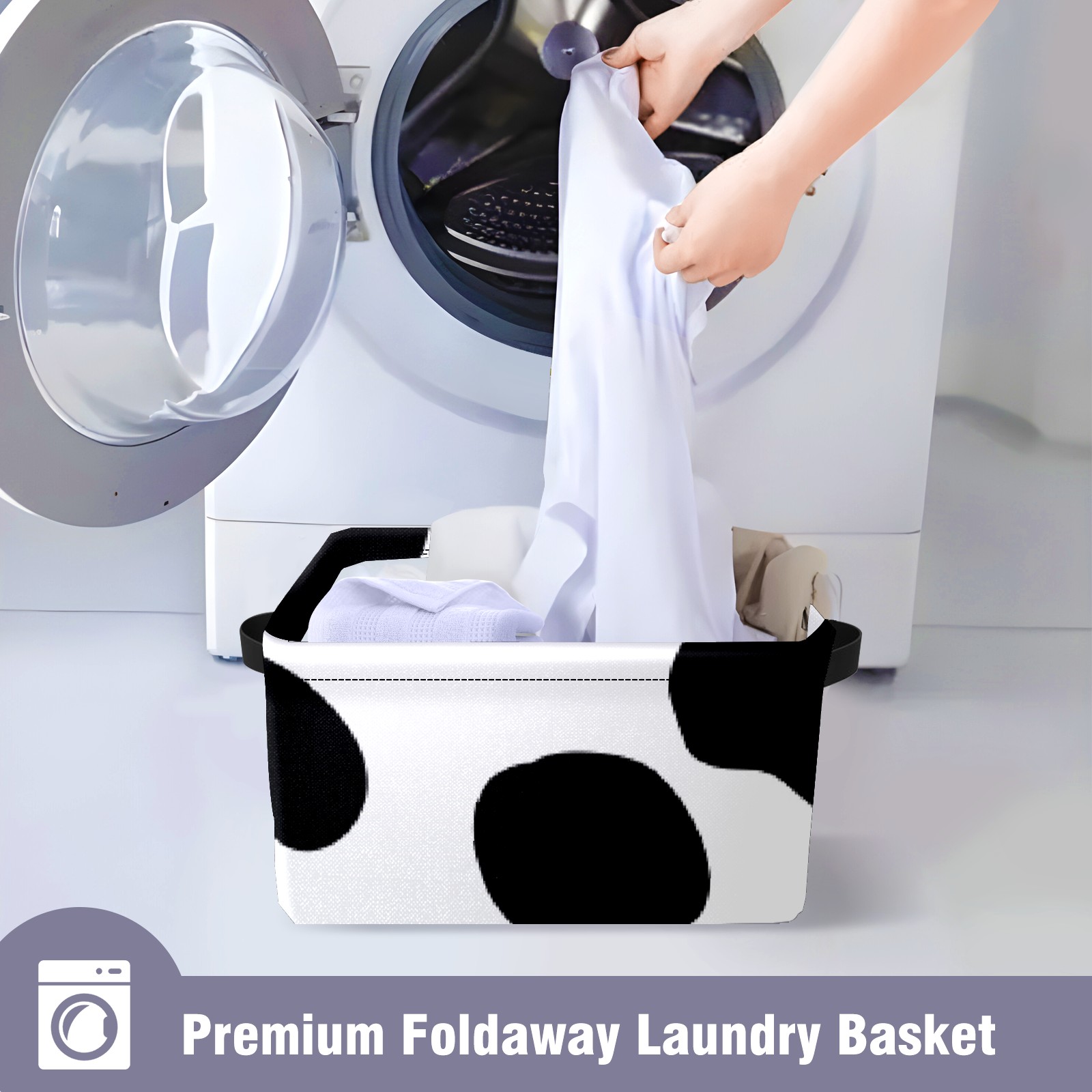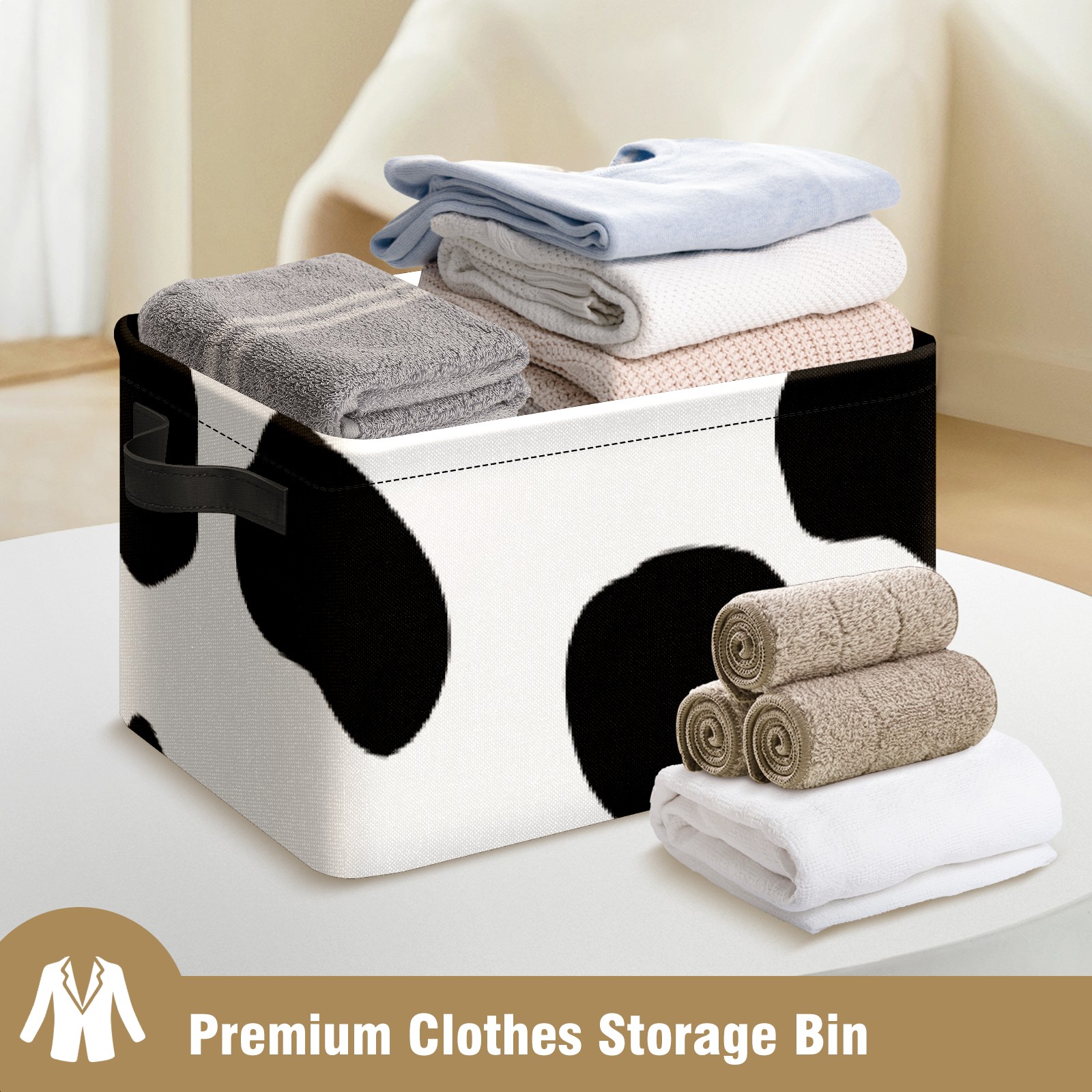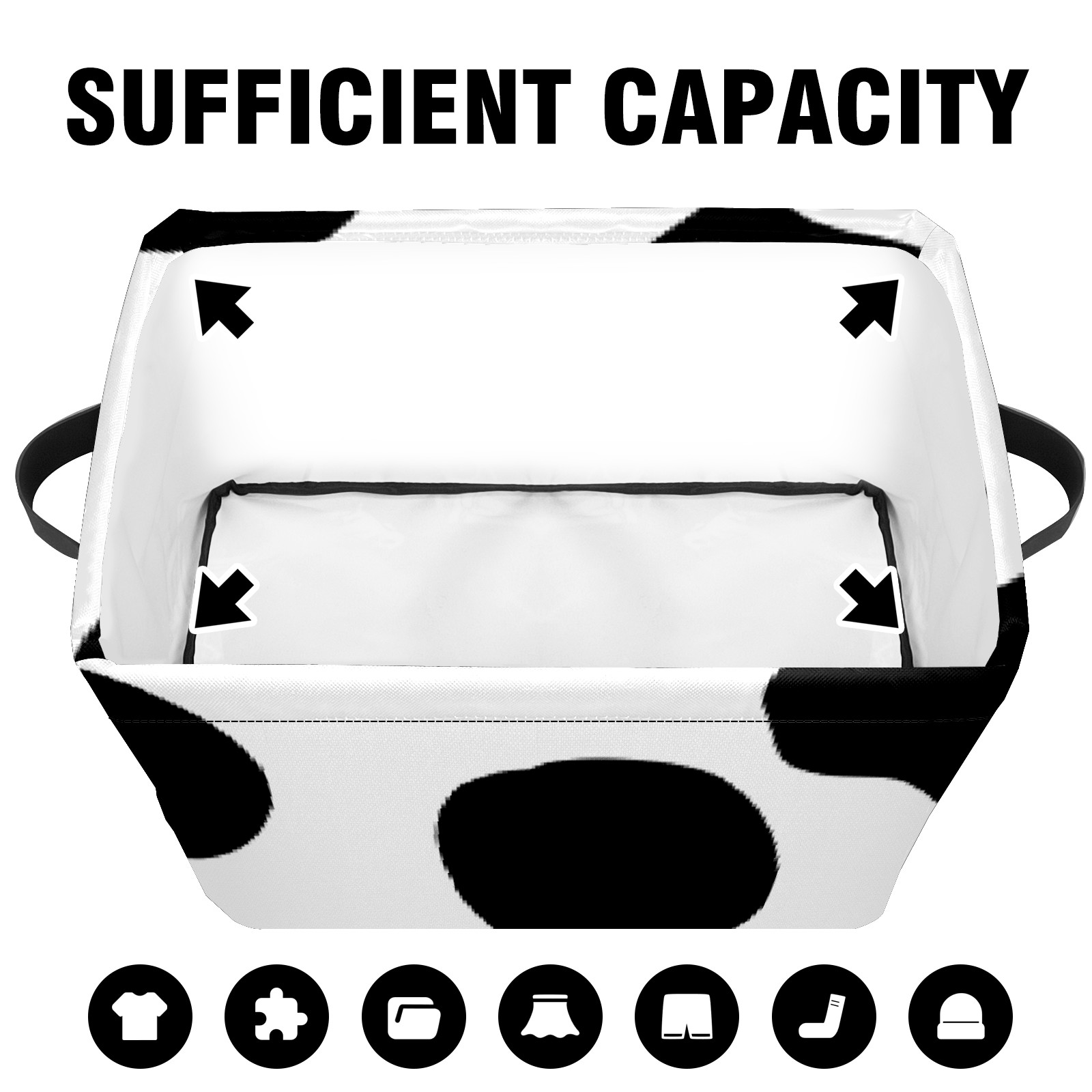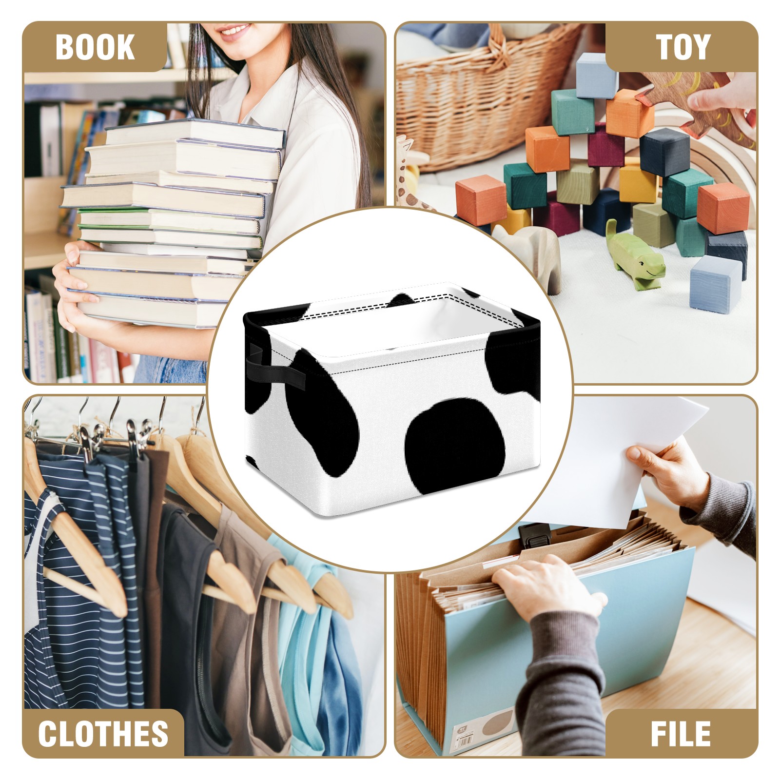 Collapsible 600D Oxford Storage Basket with Black And White Cow Print - Metal Frame 10"x14"x8" Reinforced Handles, Multi-Purpose Organizer