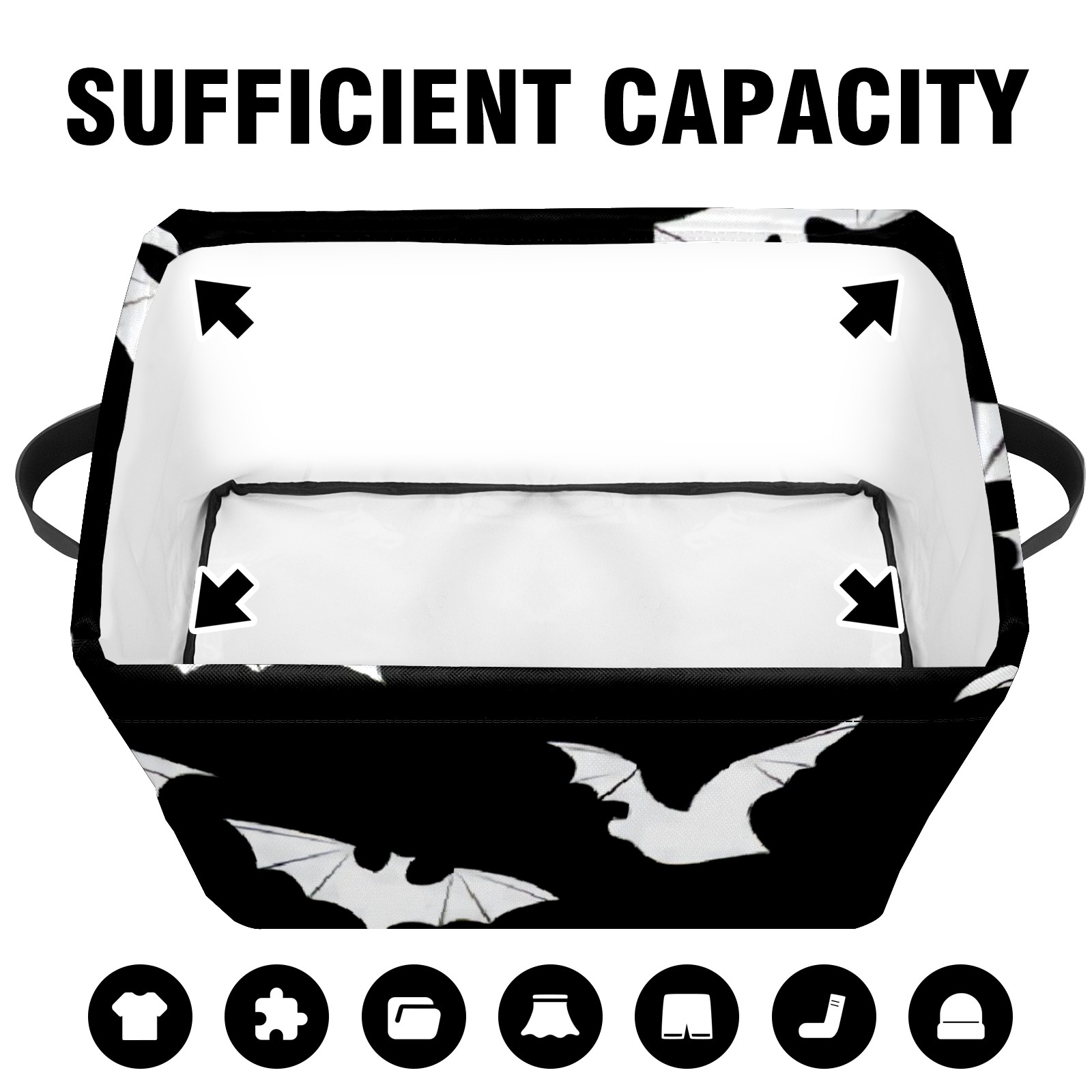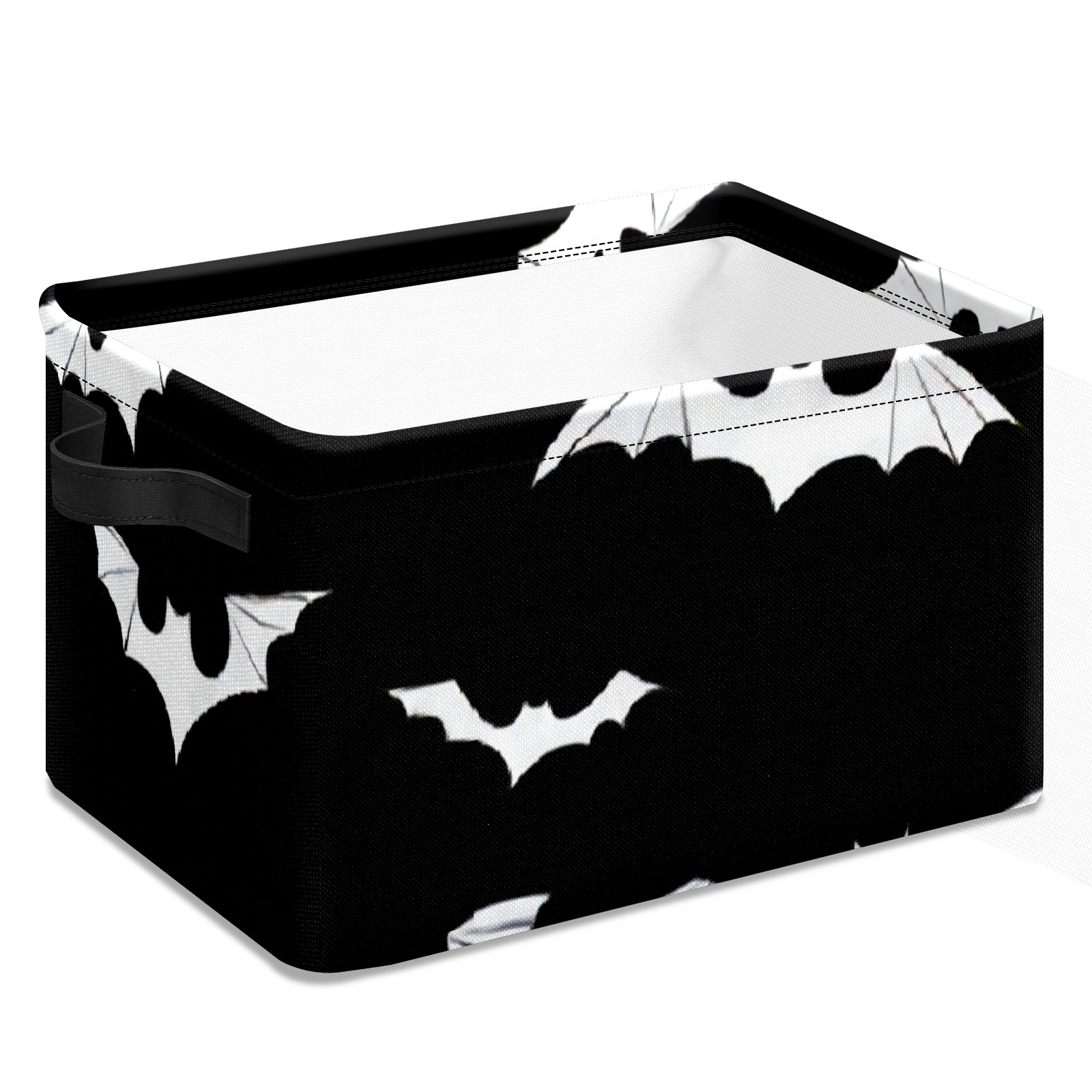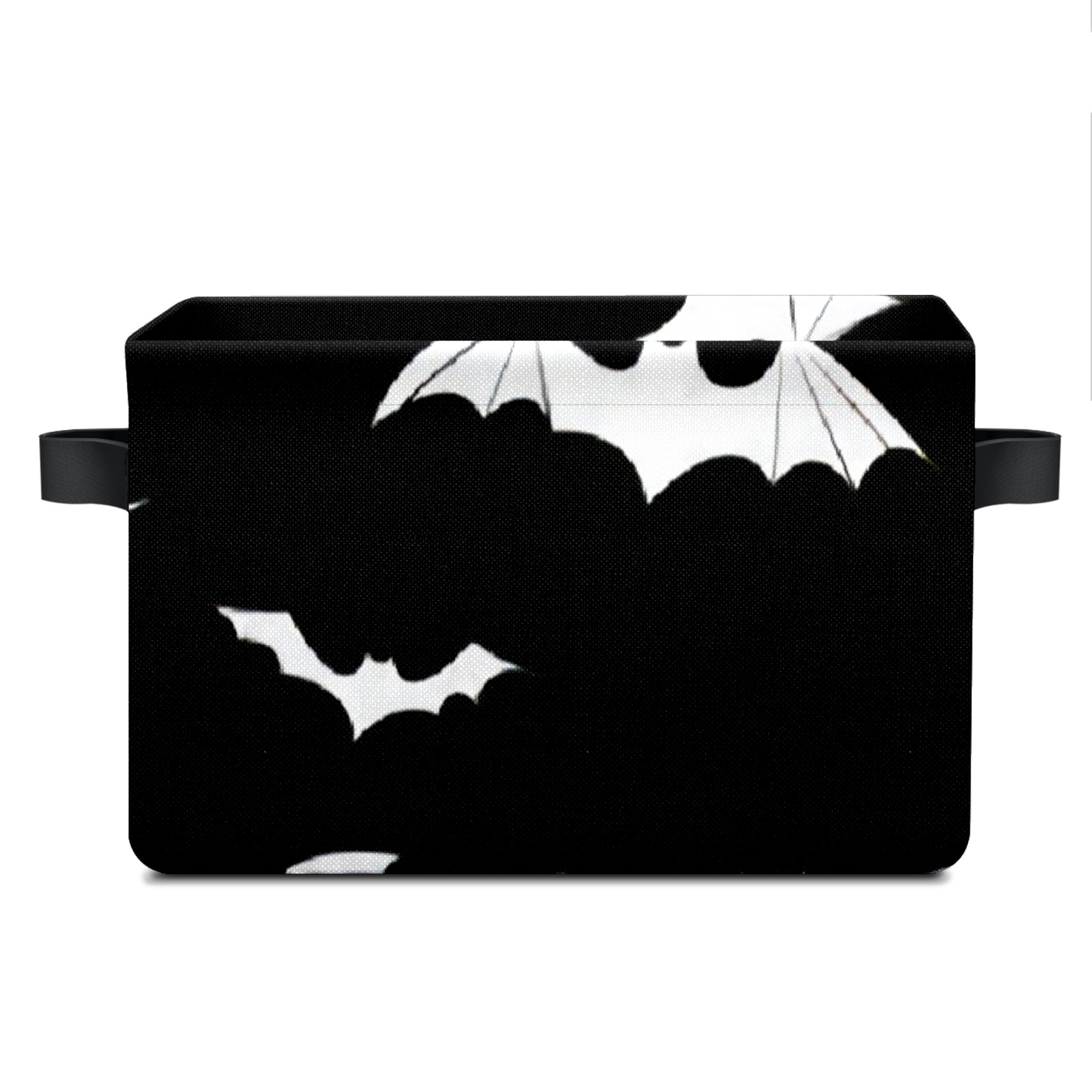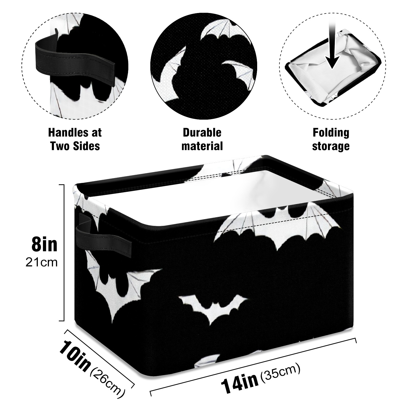 Collapsible 600D Oxford Storage Basket with Black And White Goth Bats - Metal Frame 10"x14"x8" Reinforced Handles, Multi-Purpose Organizer