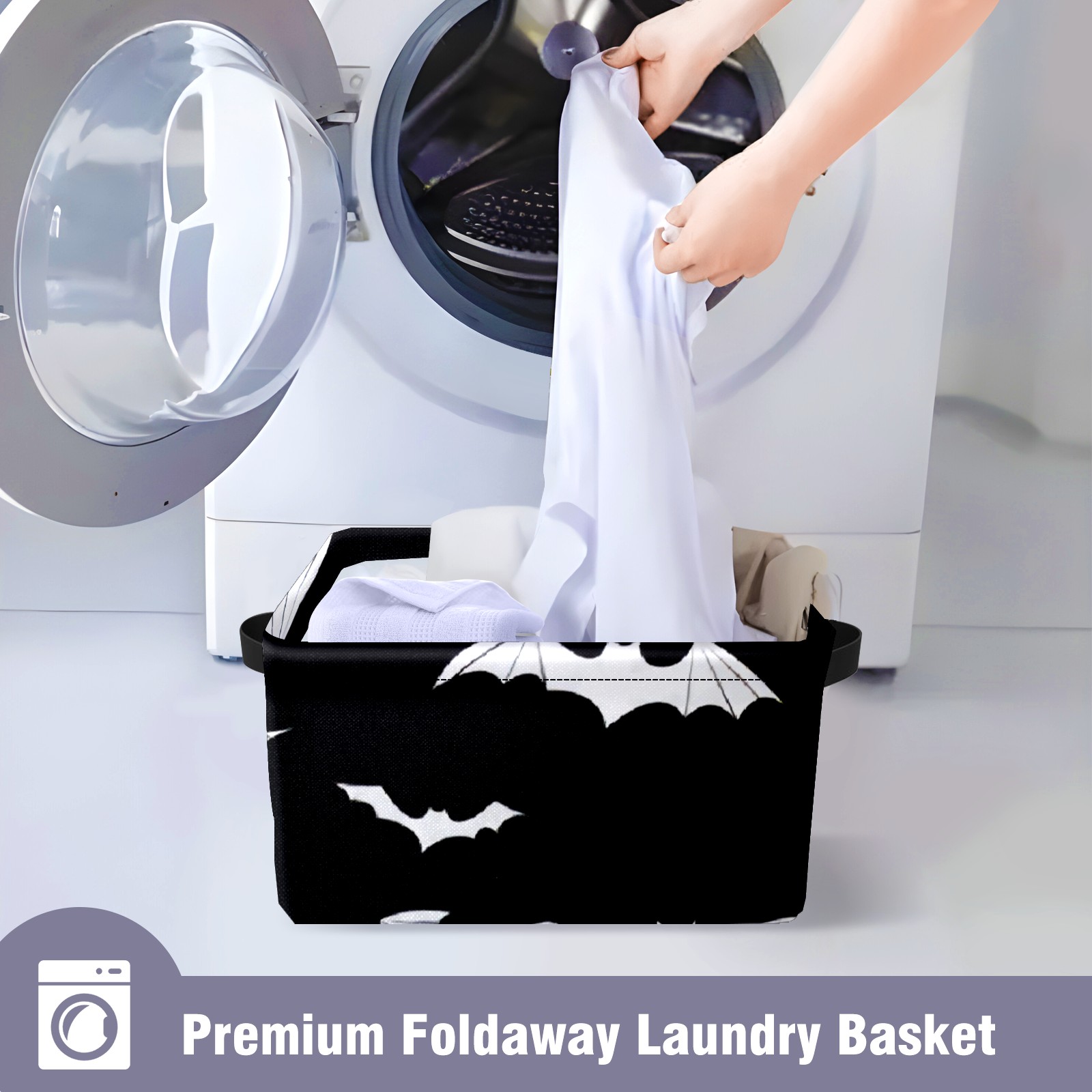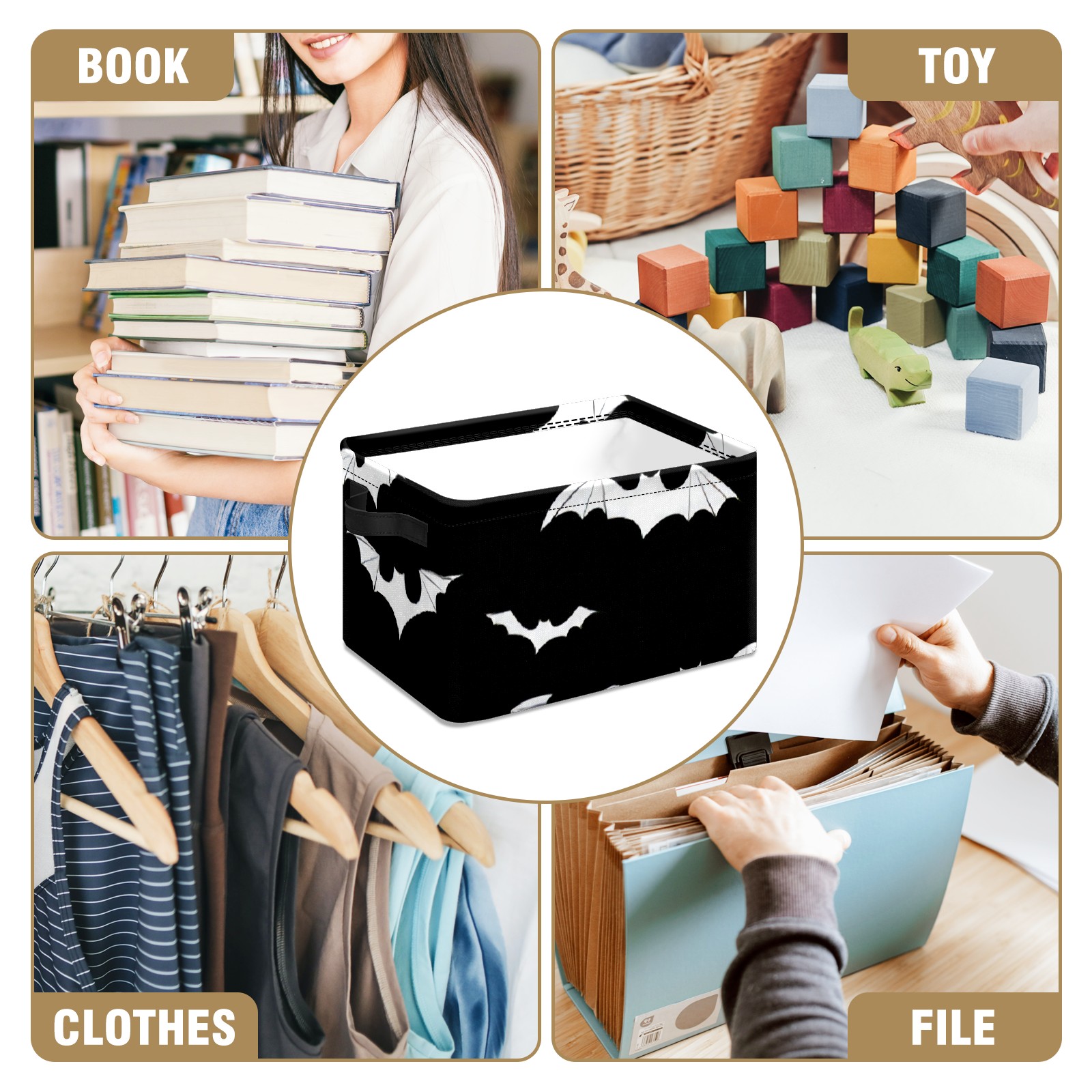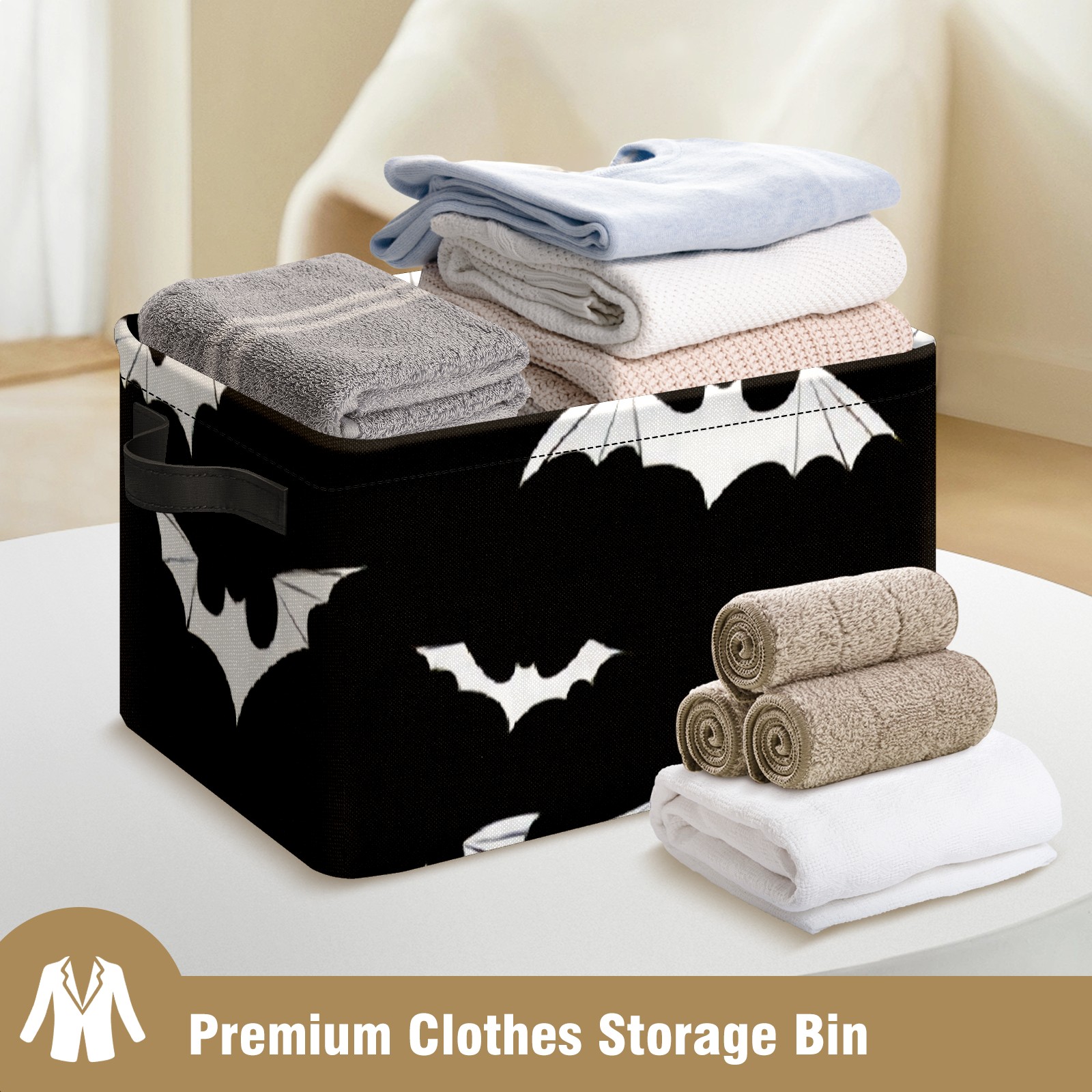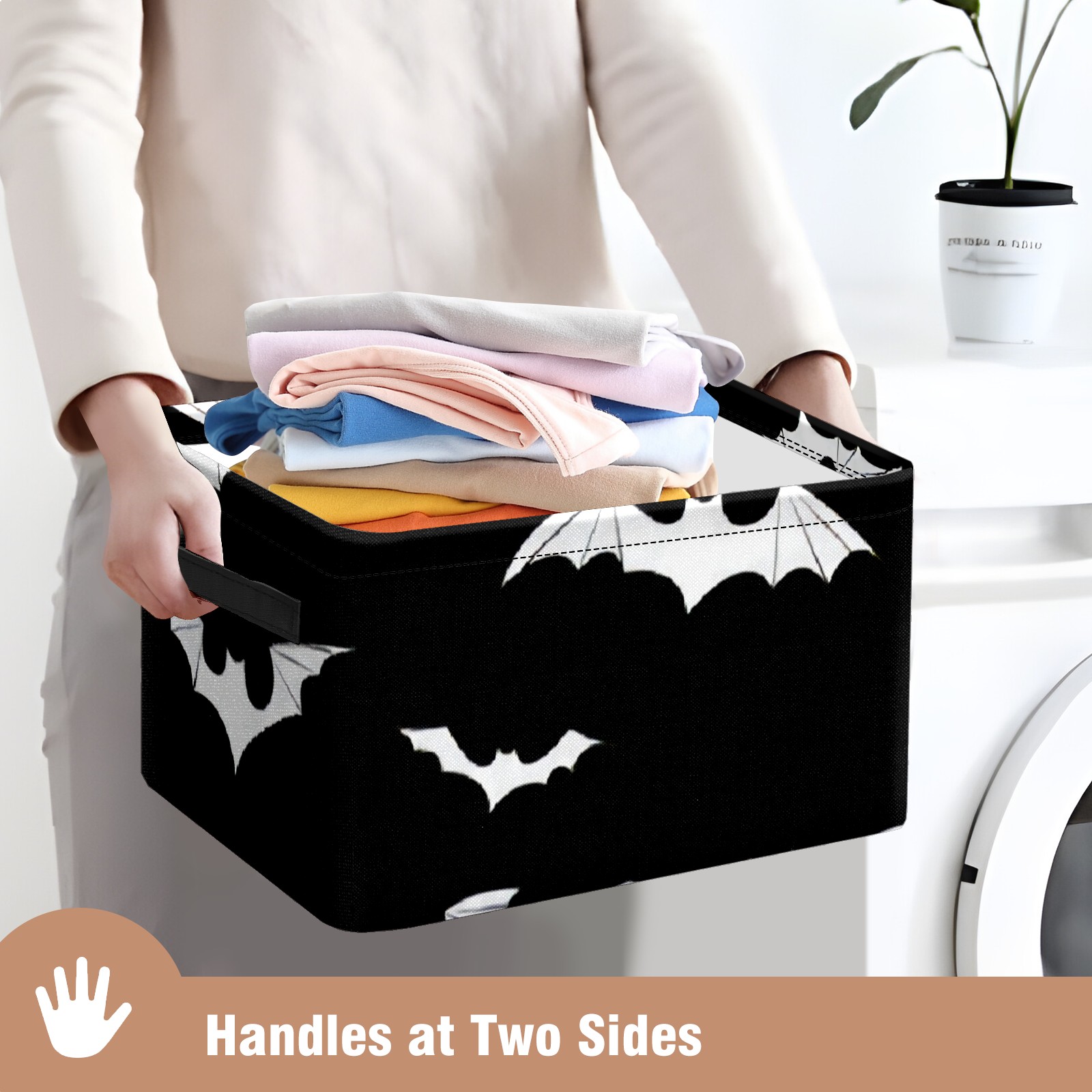 Collapsible 600D Oxford Storage Basket with Black And White Goth Bats - Metal Frame 10"x14"x8" Reinforced Handles, Multi-Purpose Organizer