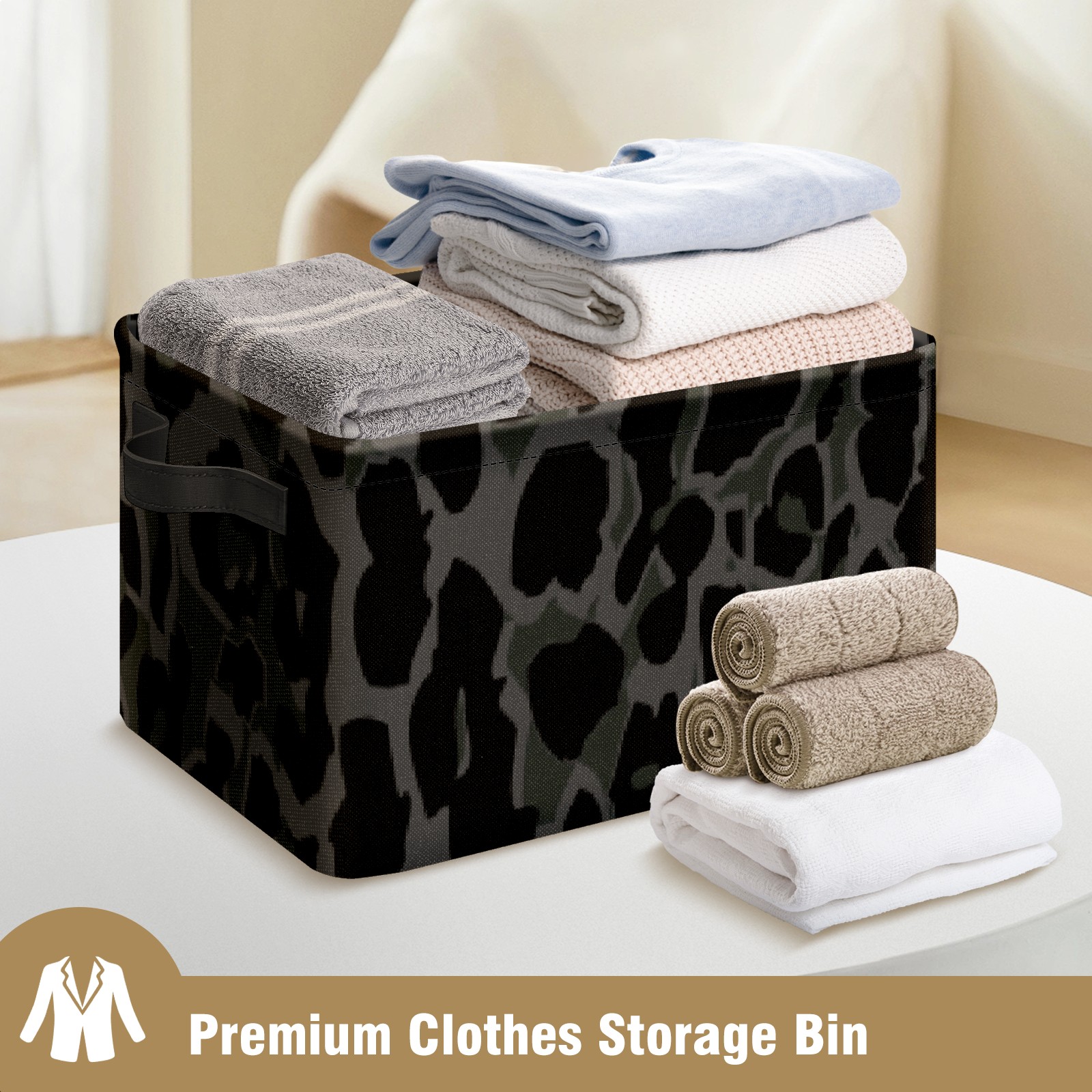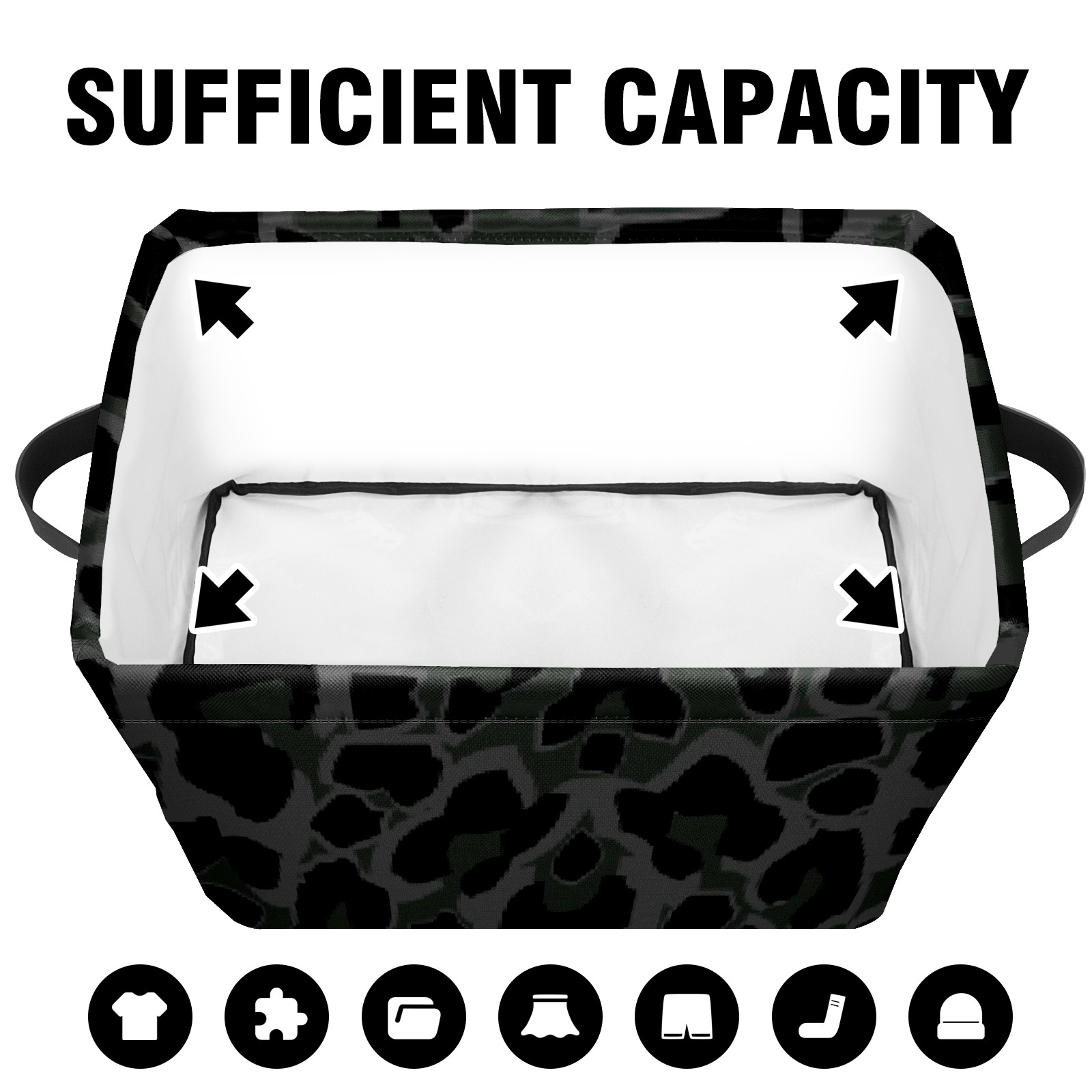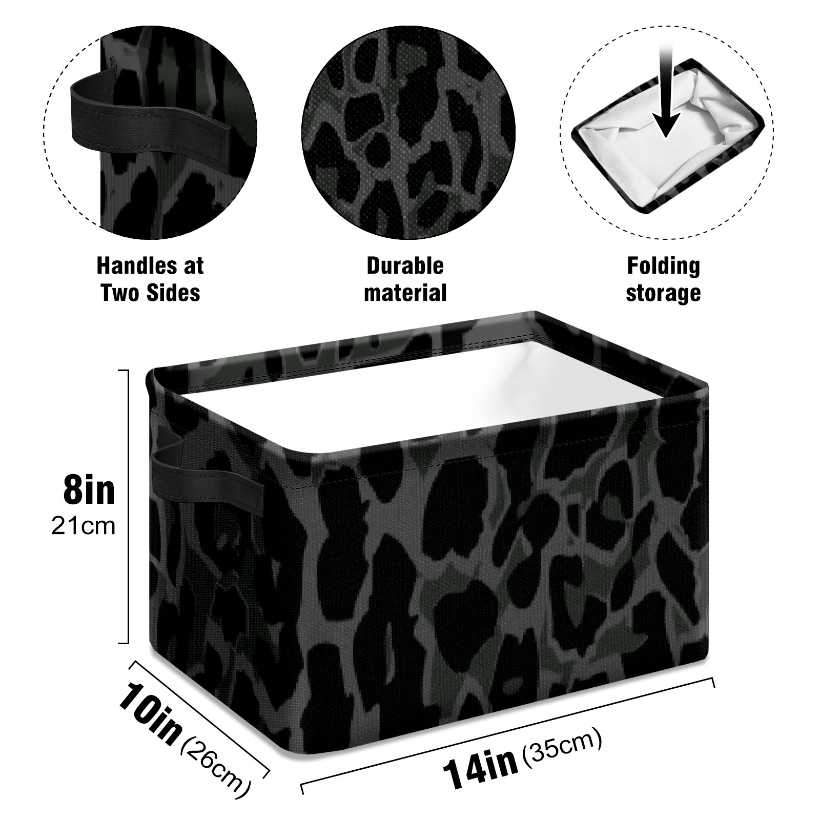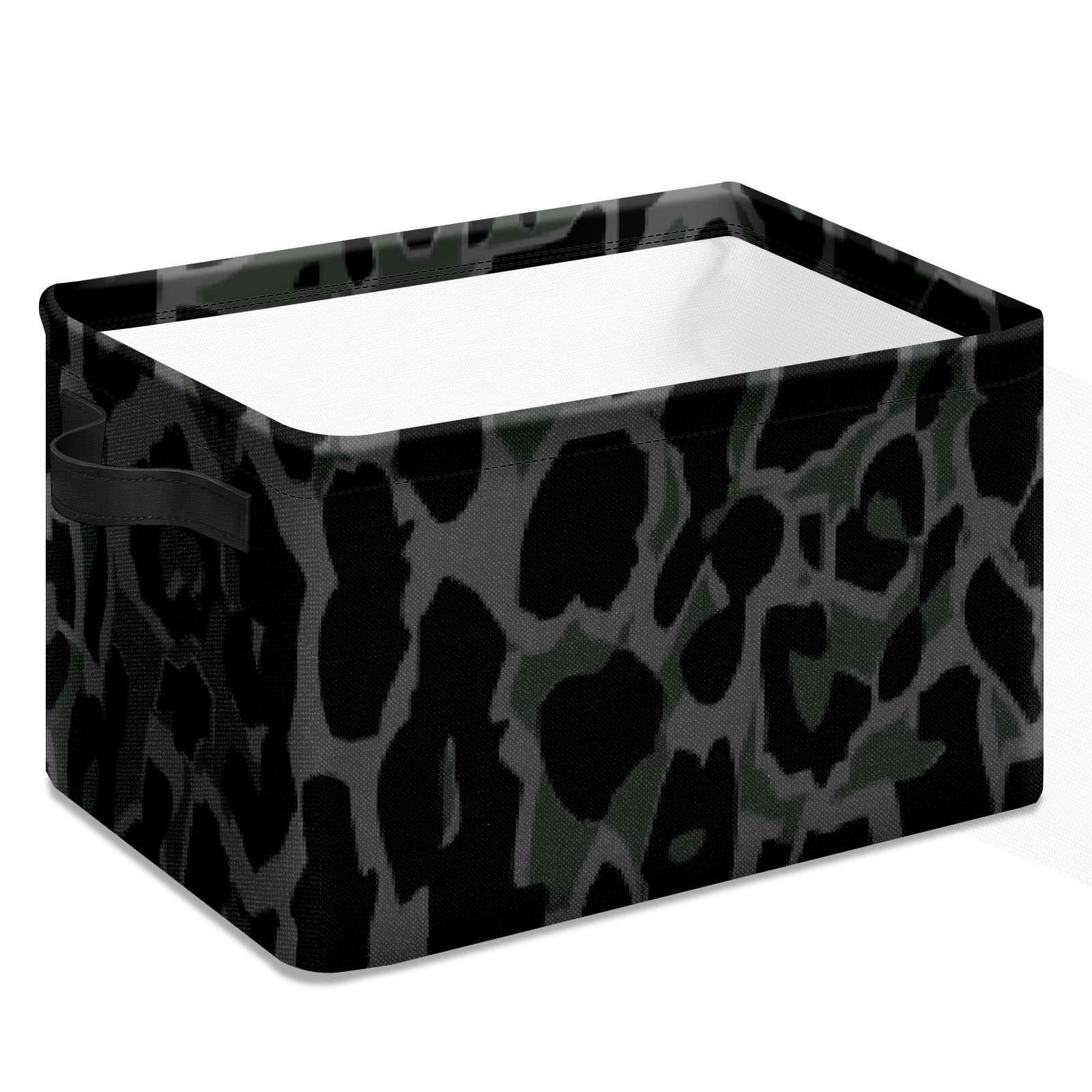 Collapsible 600D Oxford Storage Basket with Black Leopard - Metal Frame 10"x14"x8" Reinforced Handles, Multi-Purpose Organizer