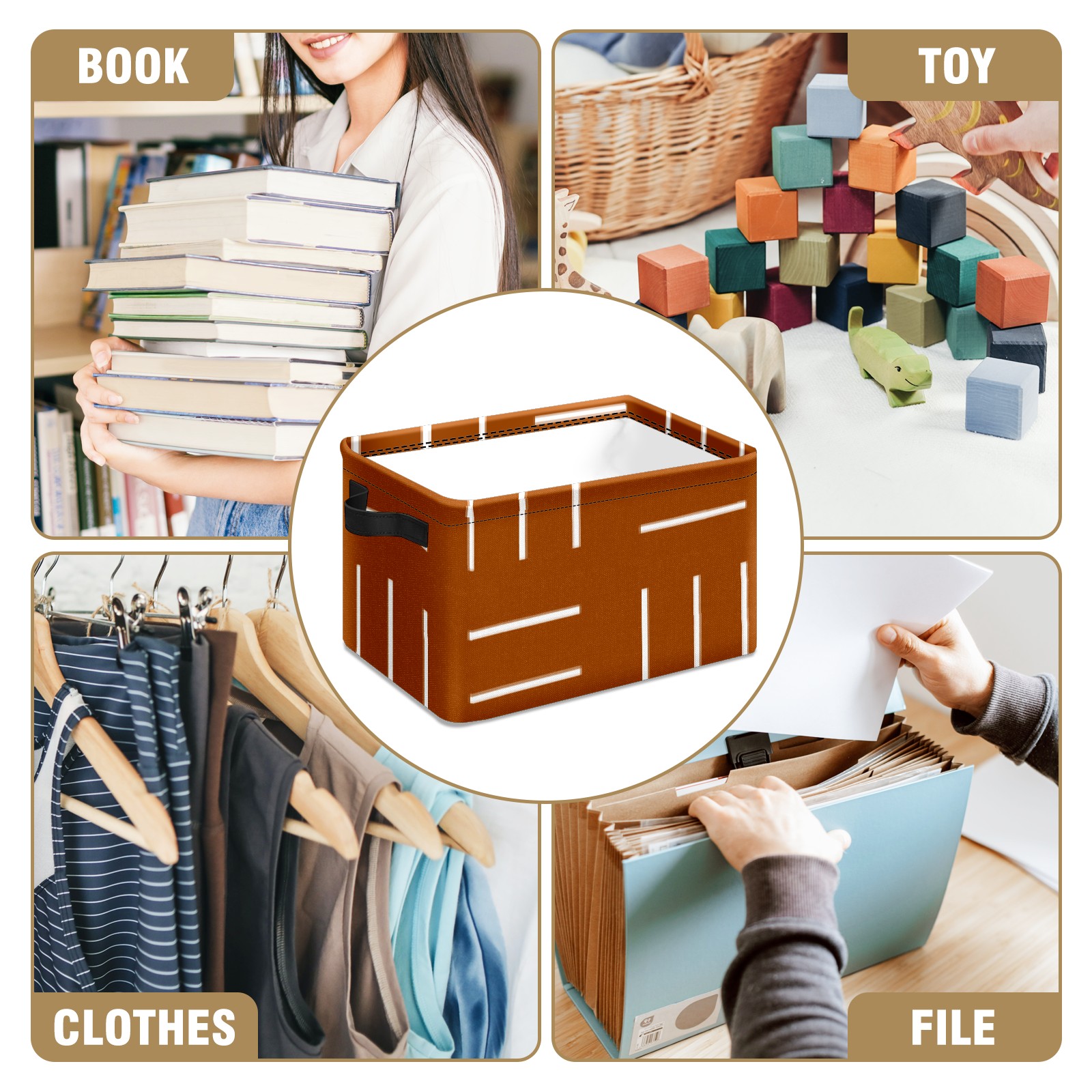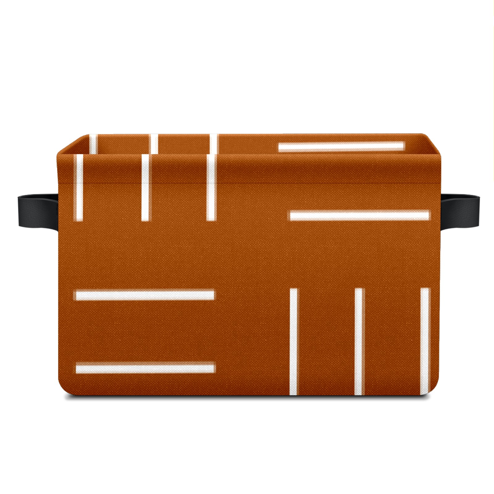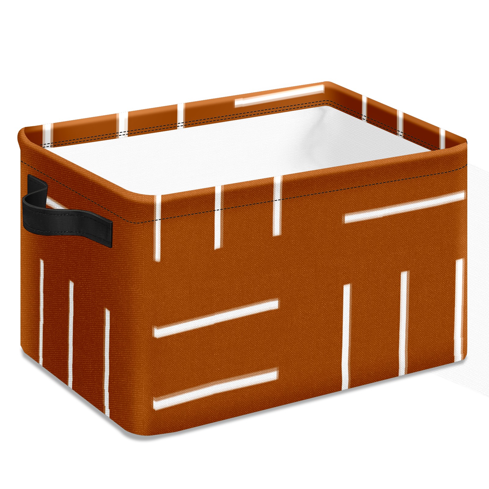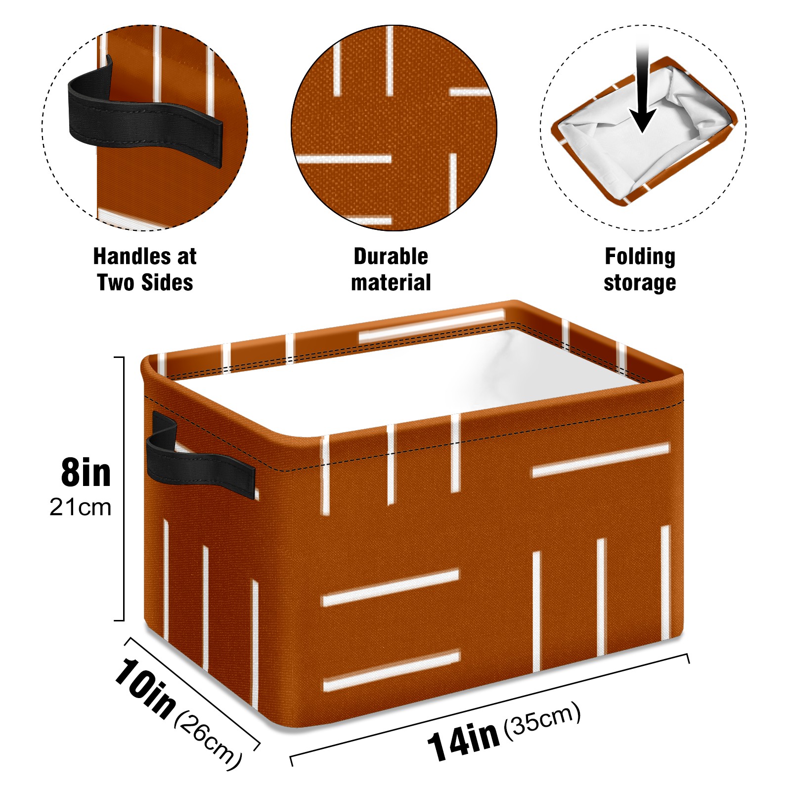 Collapsible 600D Oxford Storage Basket with Ethnic Burnt Orange White Tribal - Metal Frame 10"x14"x8" Reinforced Handles, Multi-Purpose Organizer