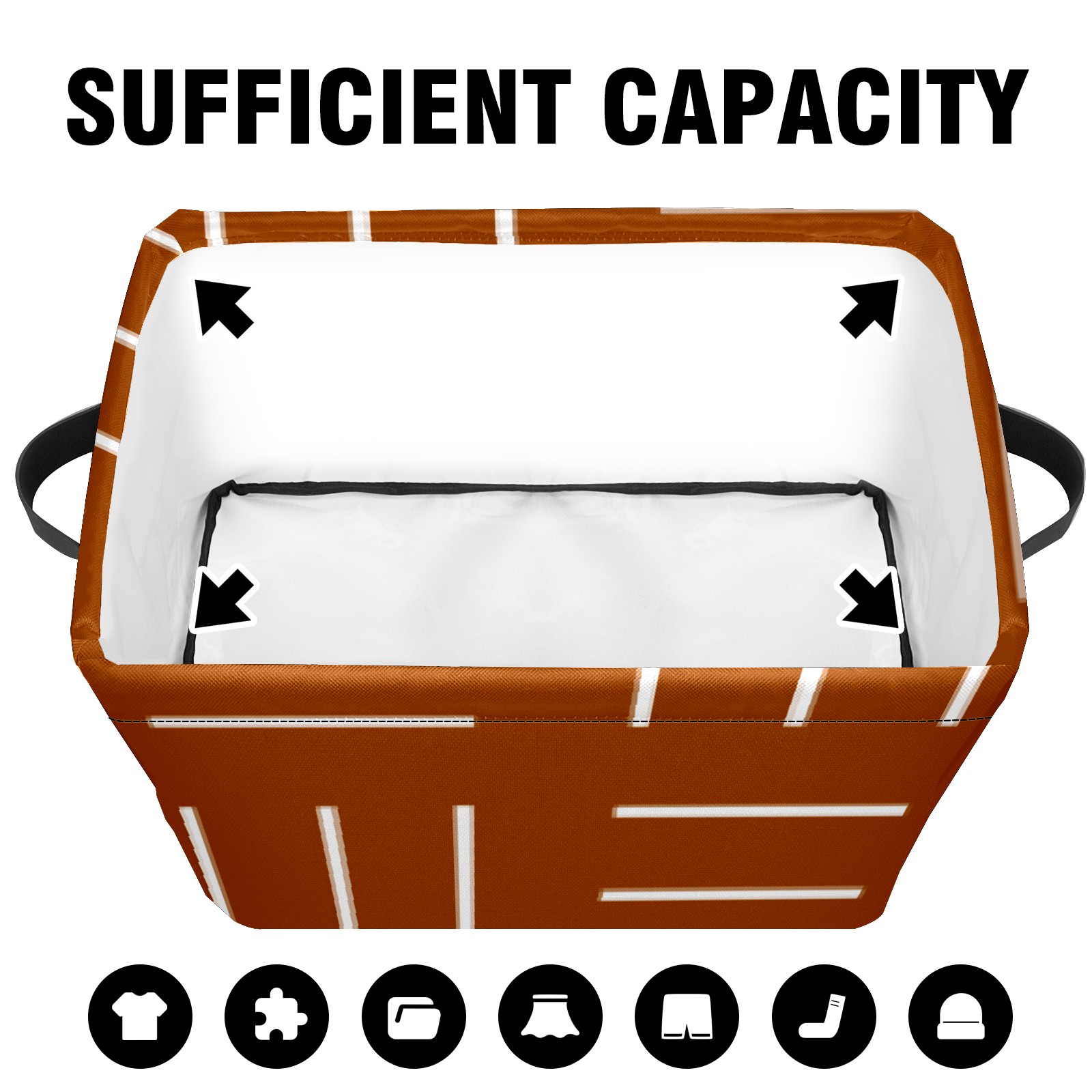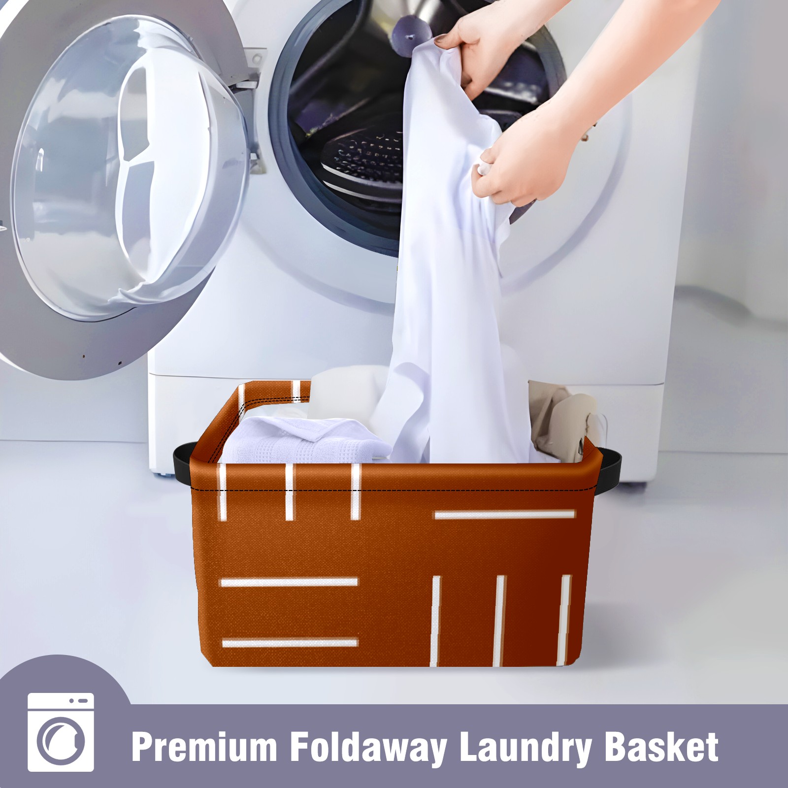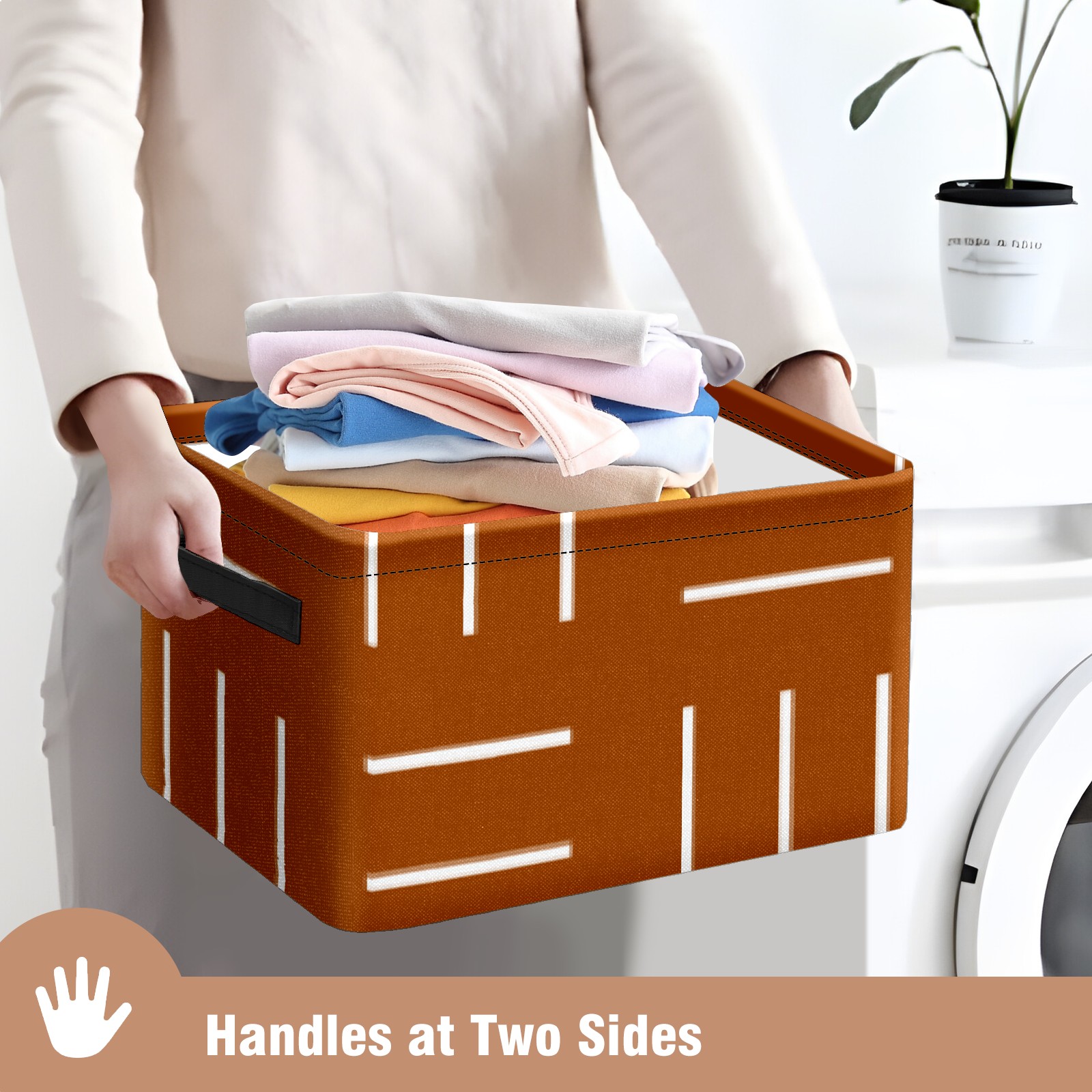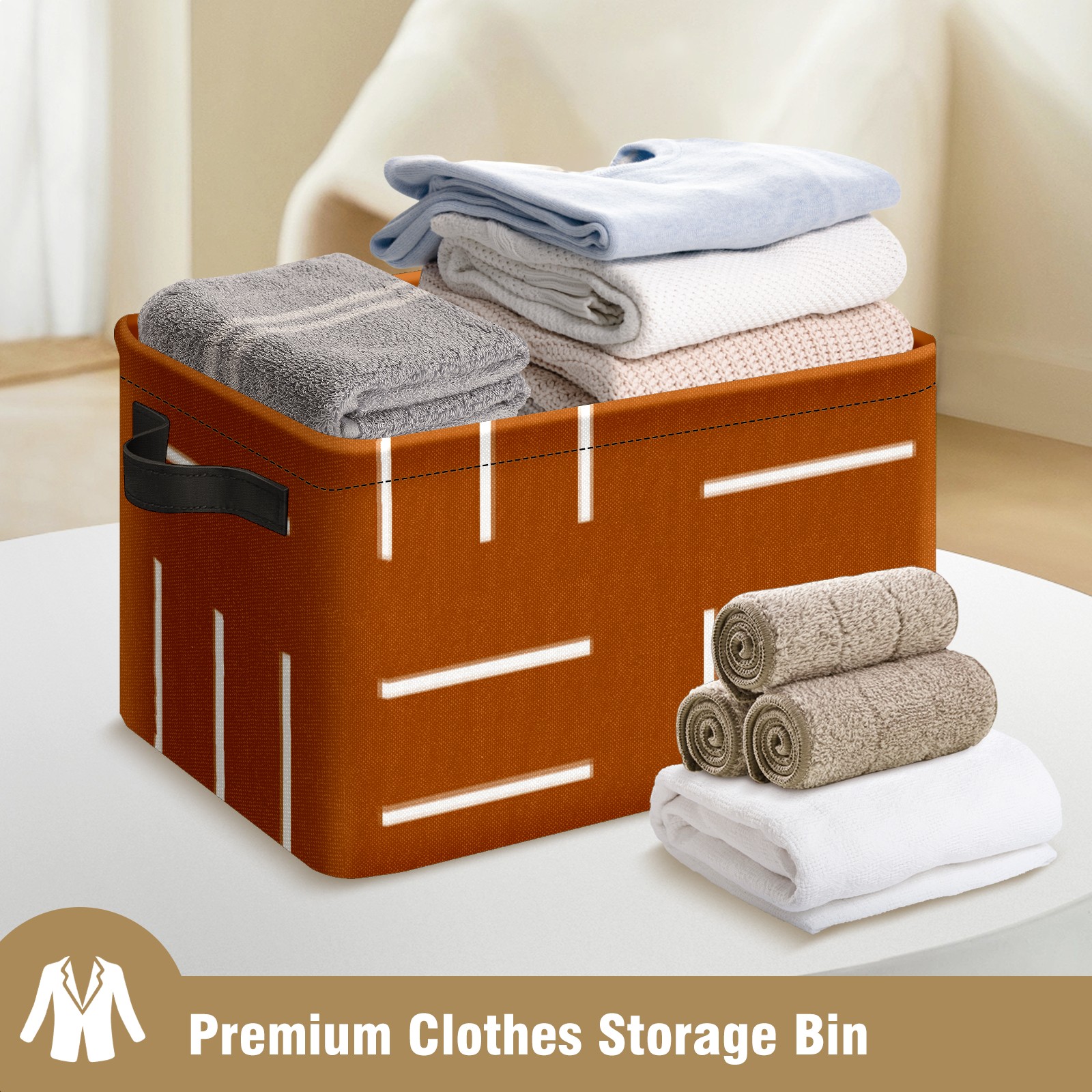 Collapsible 600D Oxford Storage Basket with Ethnic Burnt Orange White Tribal - Metal Frame 10"x14"x8" Reinforced Handles, Multi-Purpose Organizer