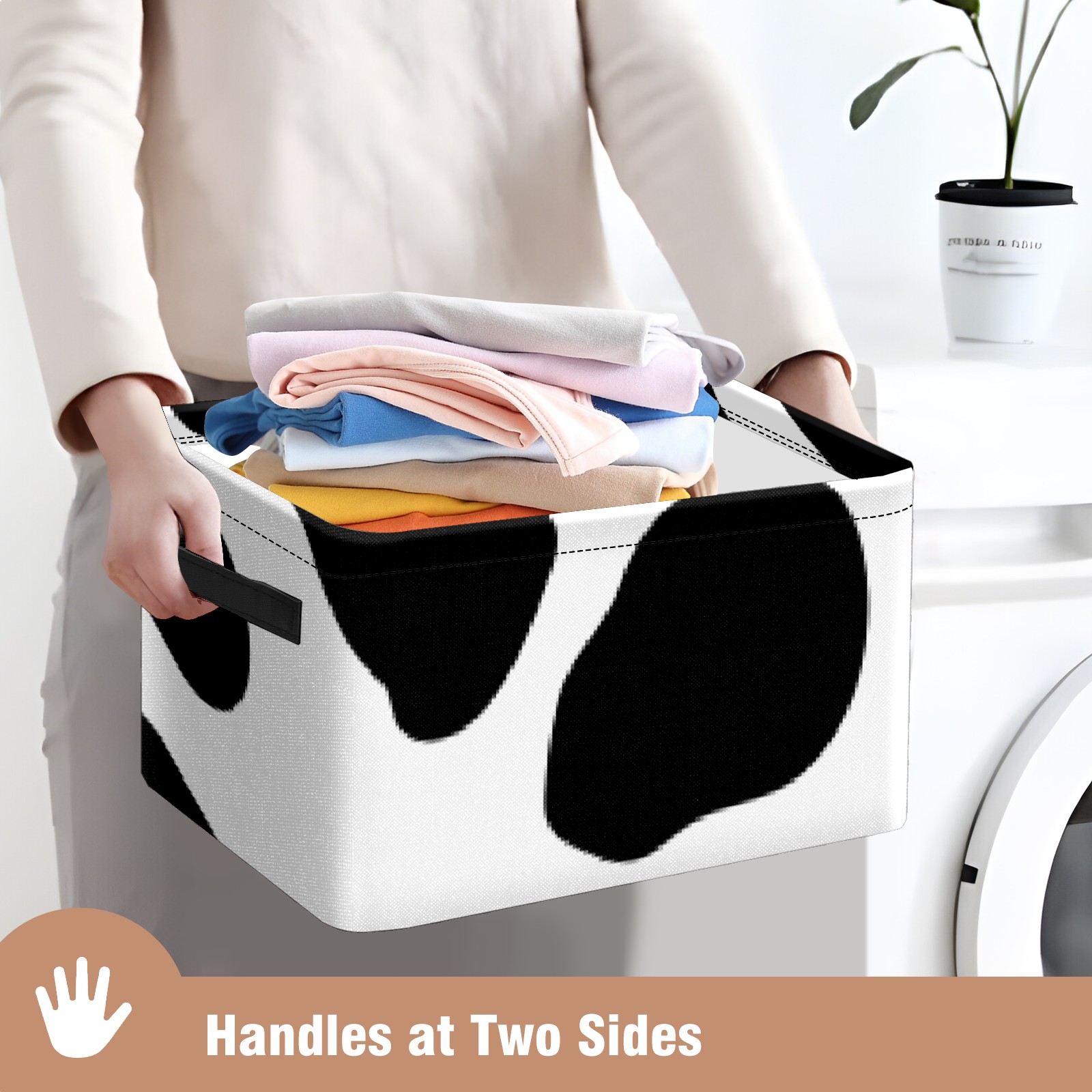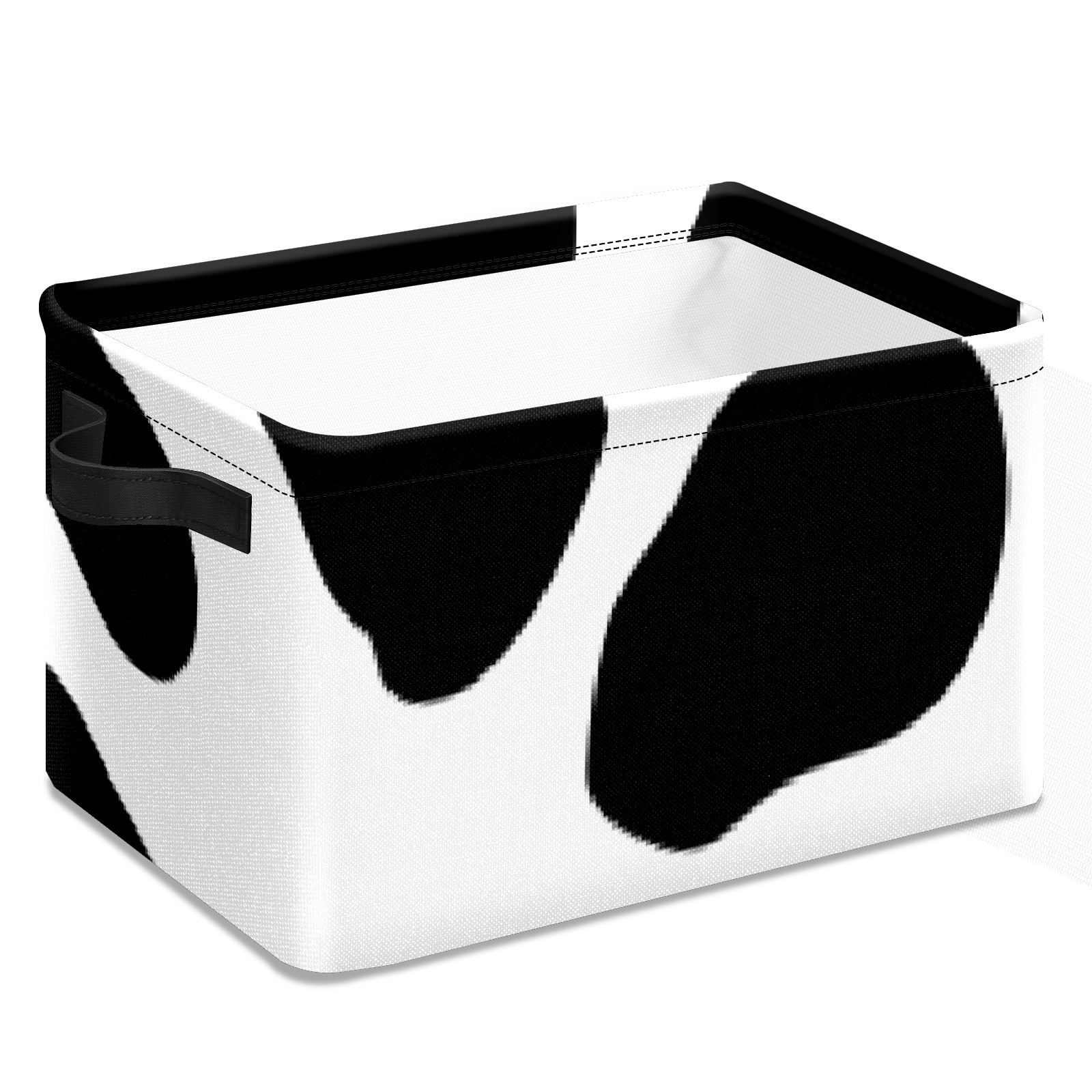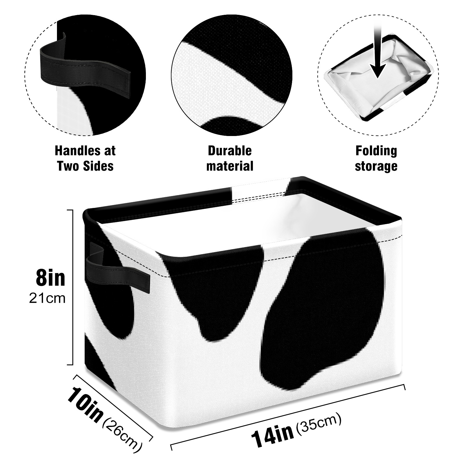 Collapsible 600D Oxford Storage Basket with Western Black White Cow Print - Metal Frame 10"x14"x8" Reinforced Handles, Multi-Purpose Organizer