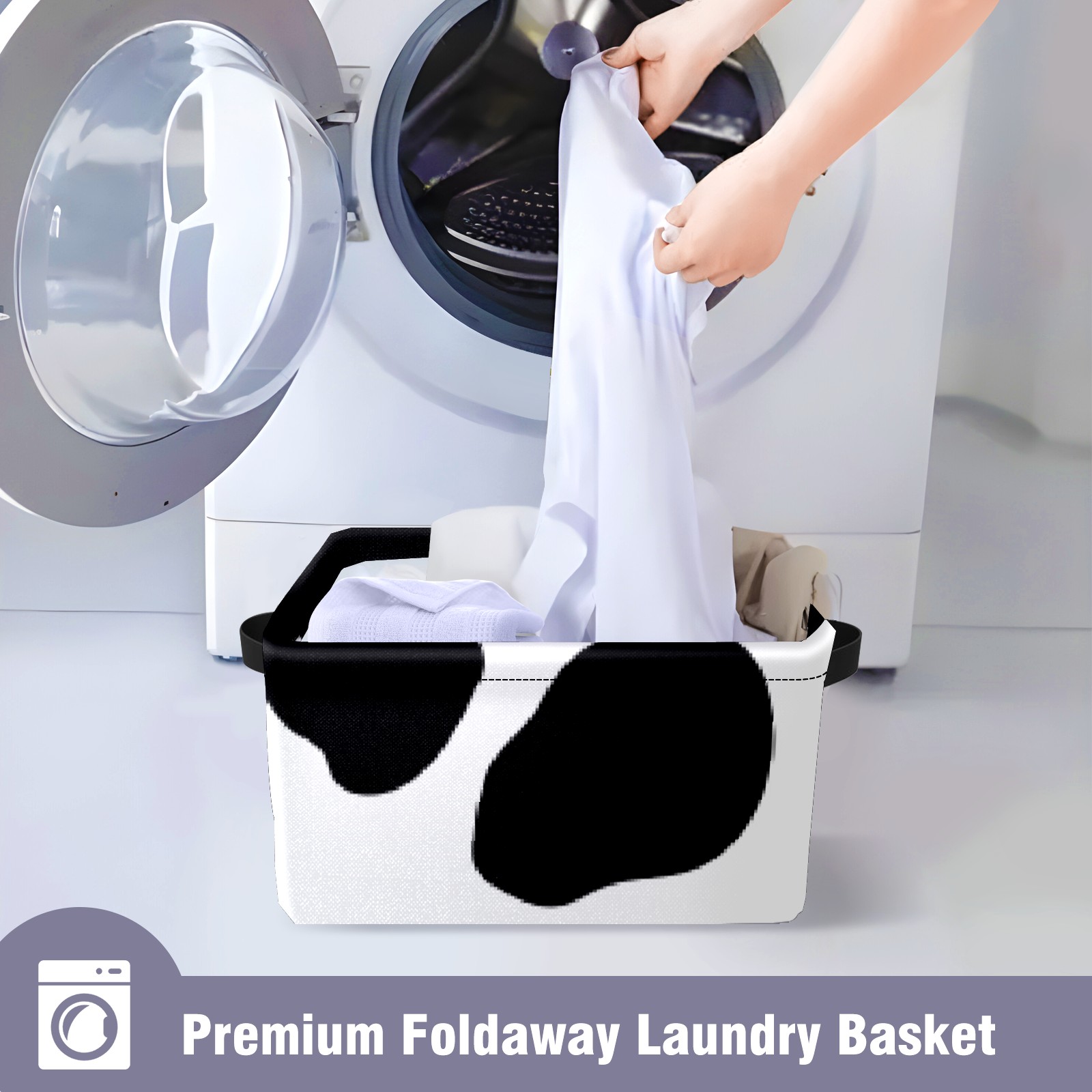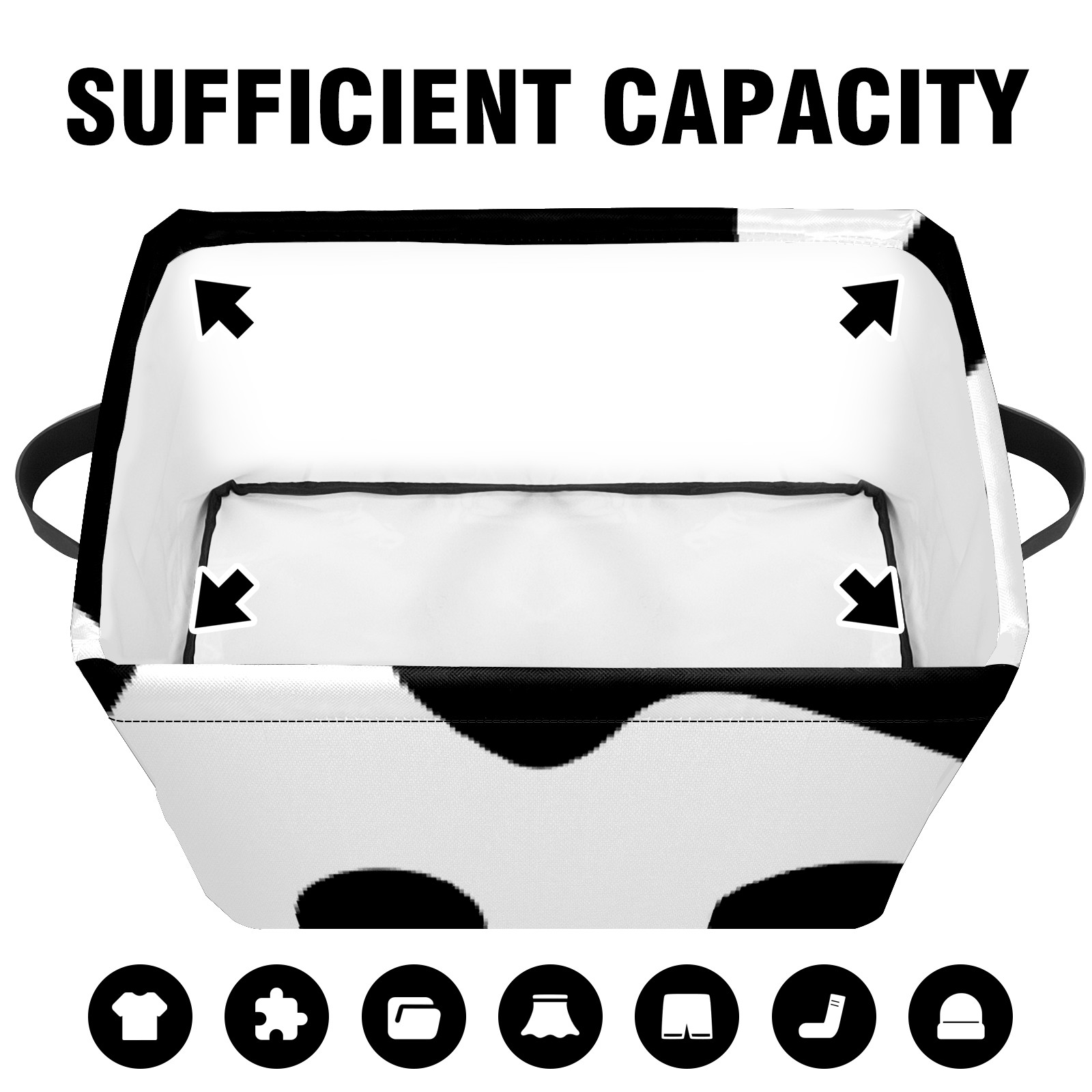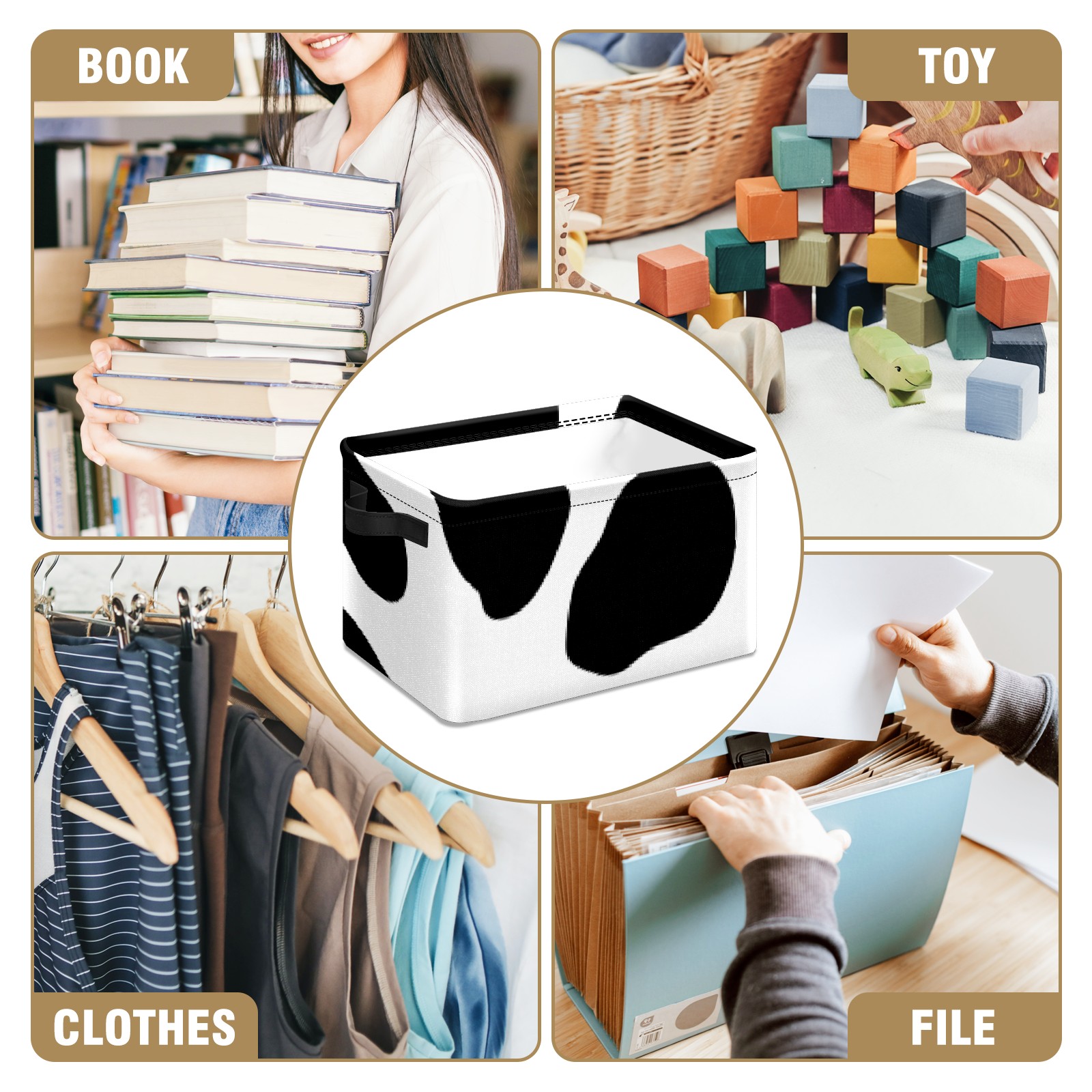 Collapsible 600D Oxford Storage Basket with Western Black White Cow Print - Metal Frame 10"x14"x8" Reinforced Handles, Multi-Purpose Organizer
