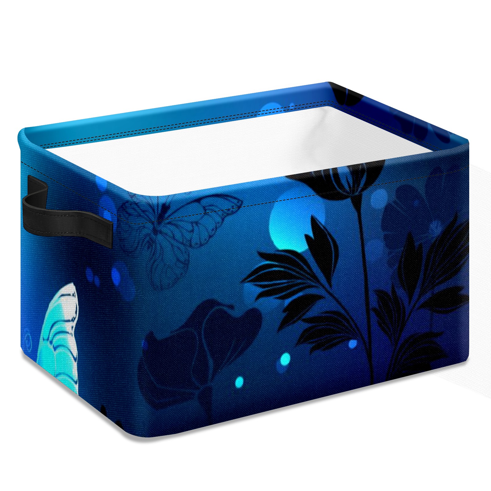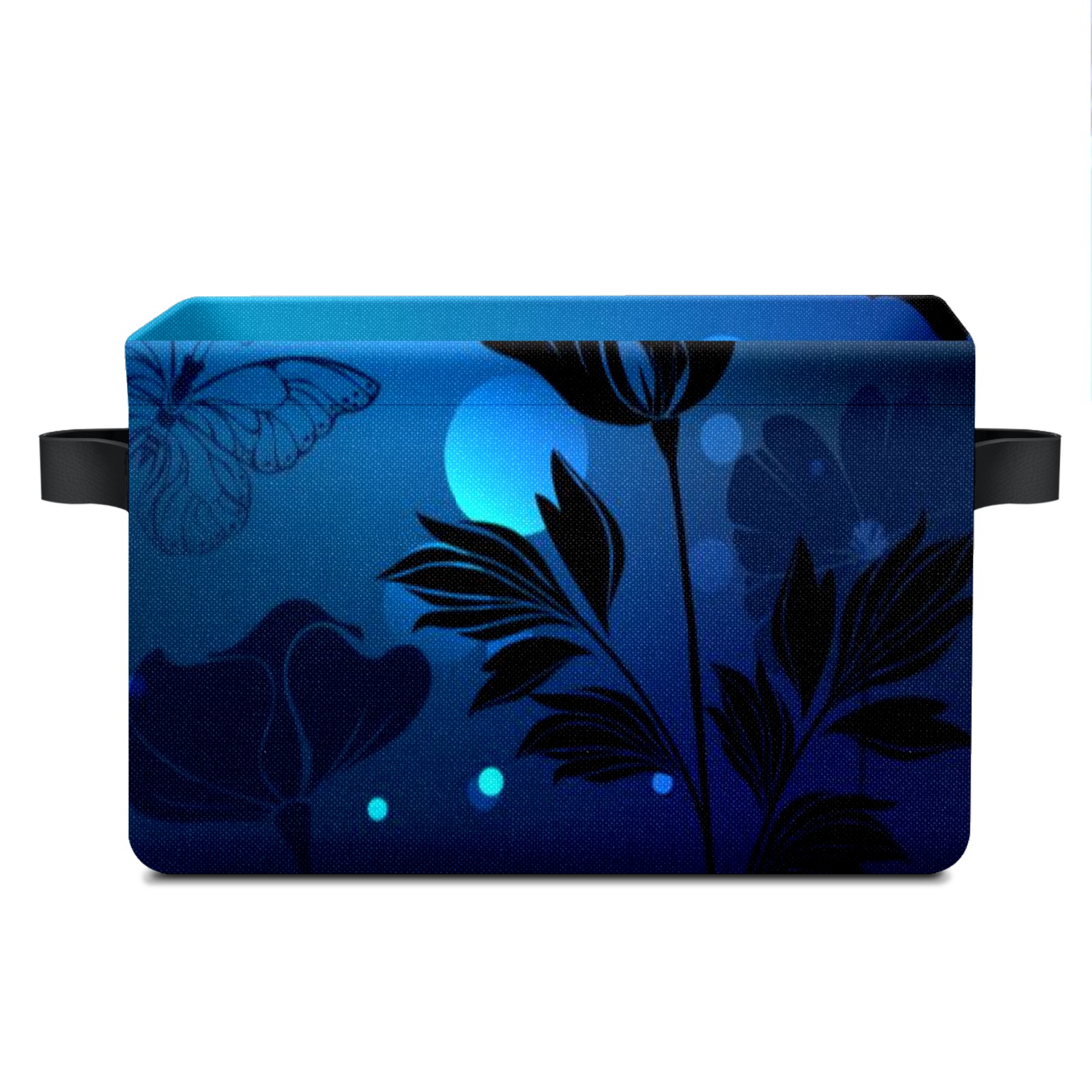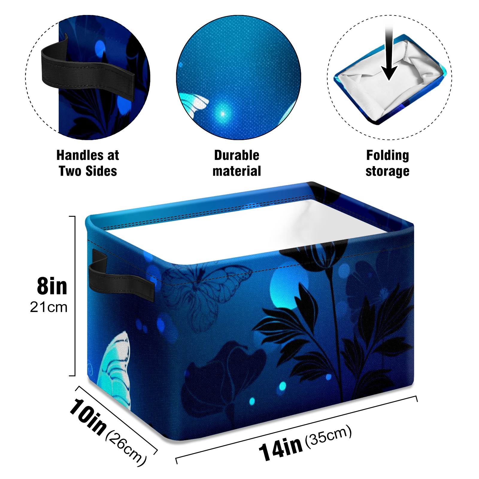 Collapsible 600D Oxford Storage Basket with Blue Butterfly Glowing - Metal Frame 10"x14"x8" Reinforced Handles, Multi-Purpose Organizer