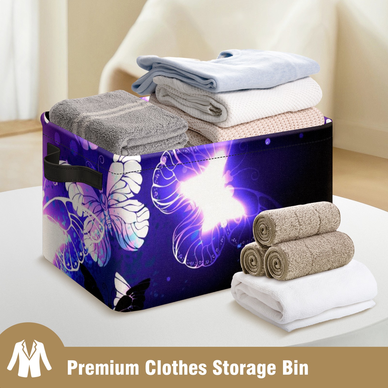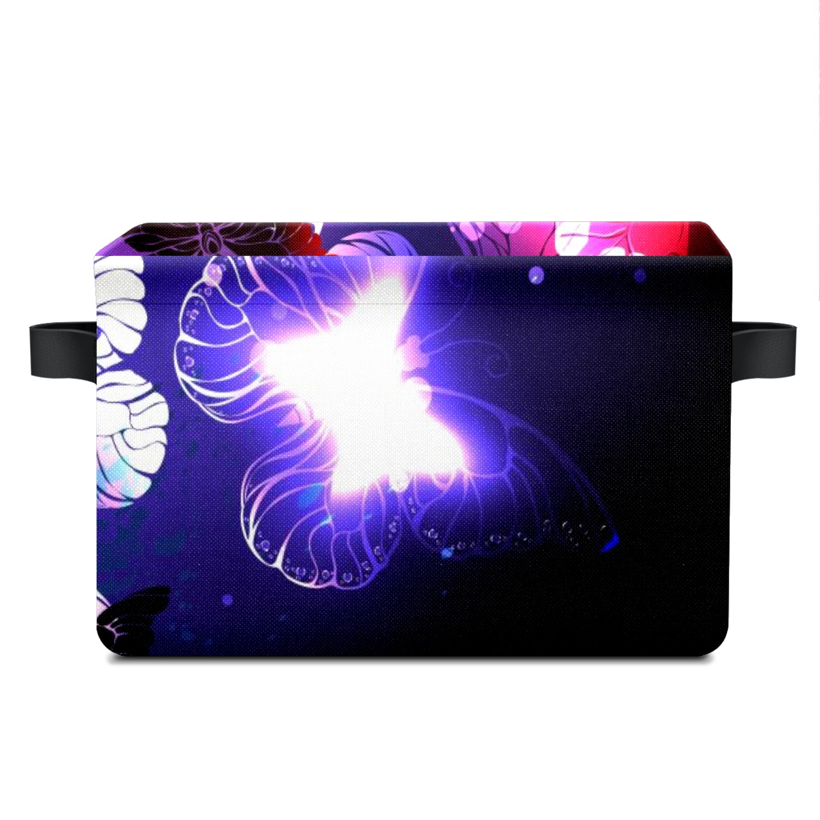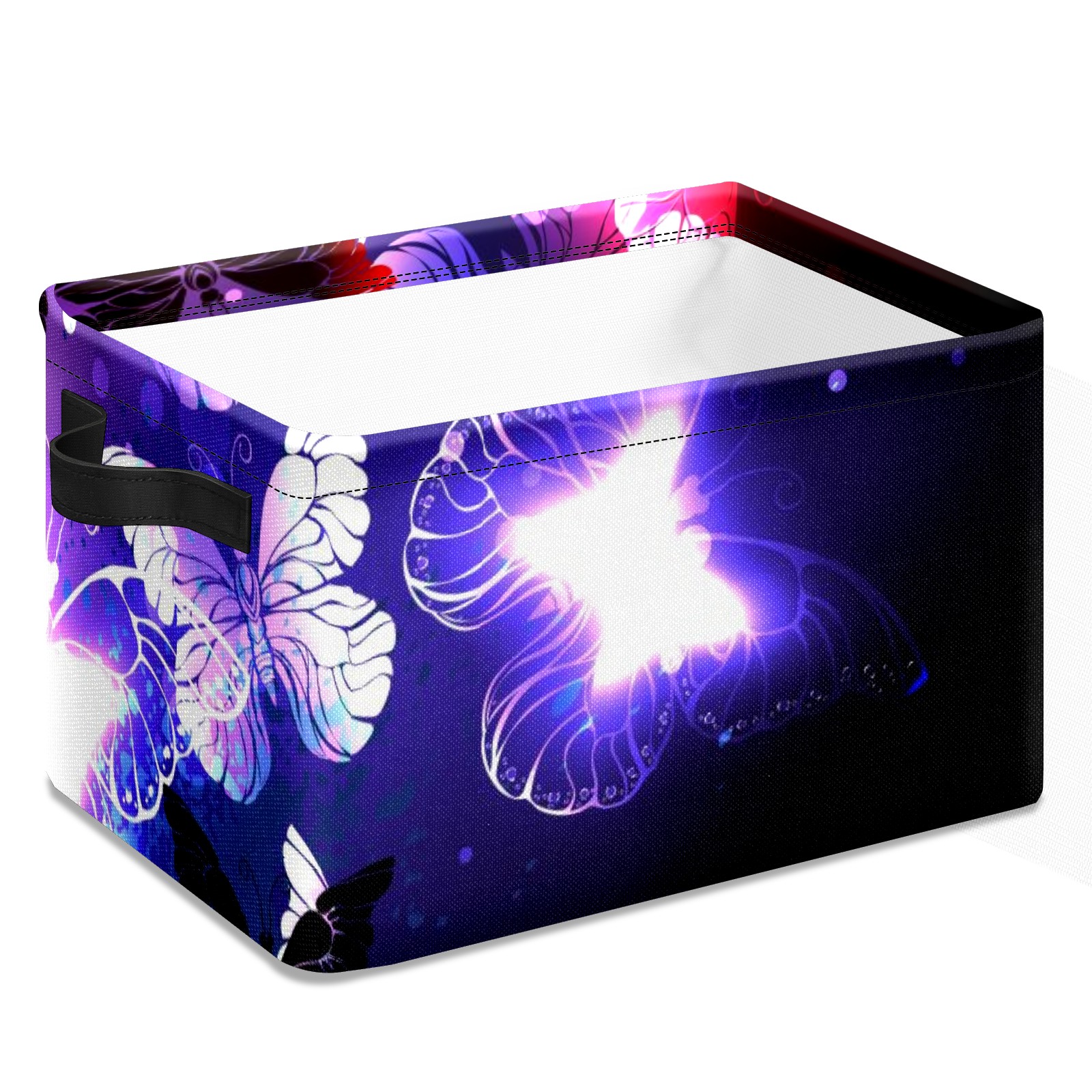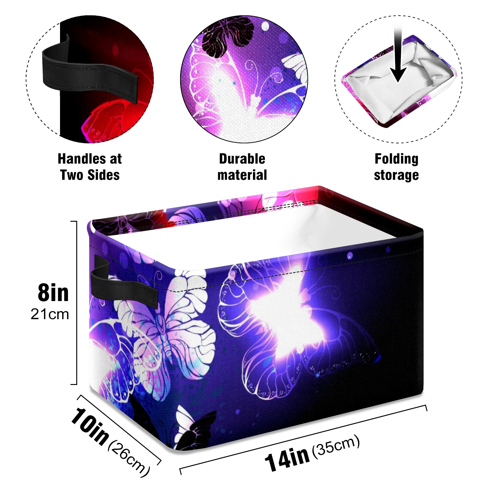 Collapsible 600D Oxford Storage Basket with Purple Butterfly - Metal Frame 10"x14"x8" Reinforced Handles, Multi-Purpose Organizer
