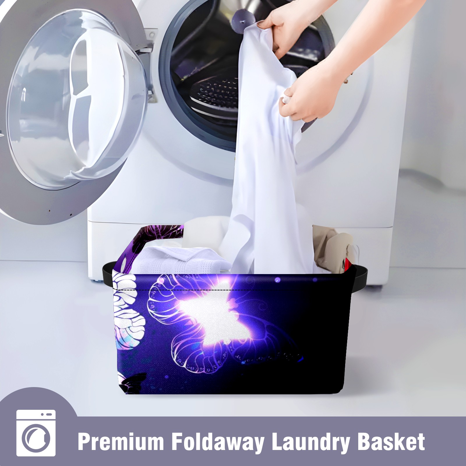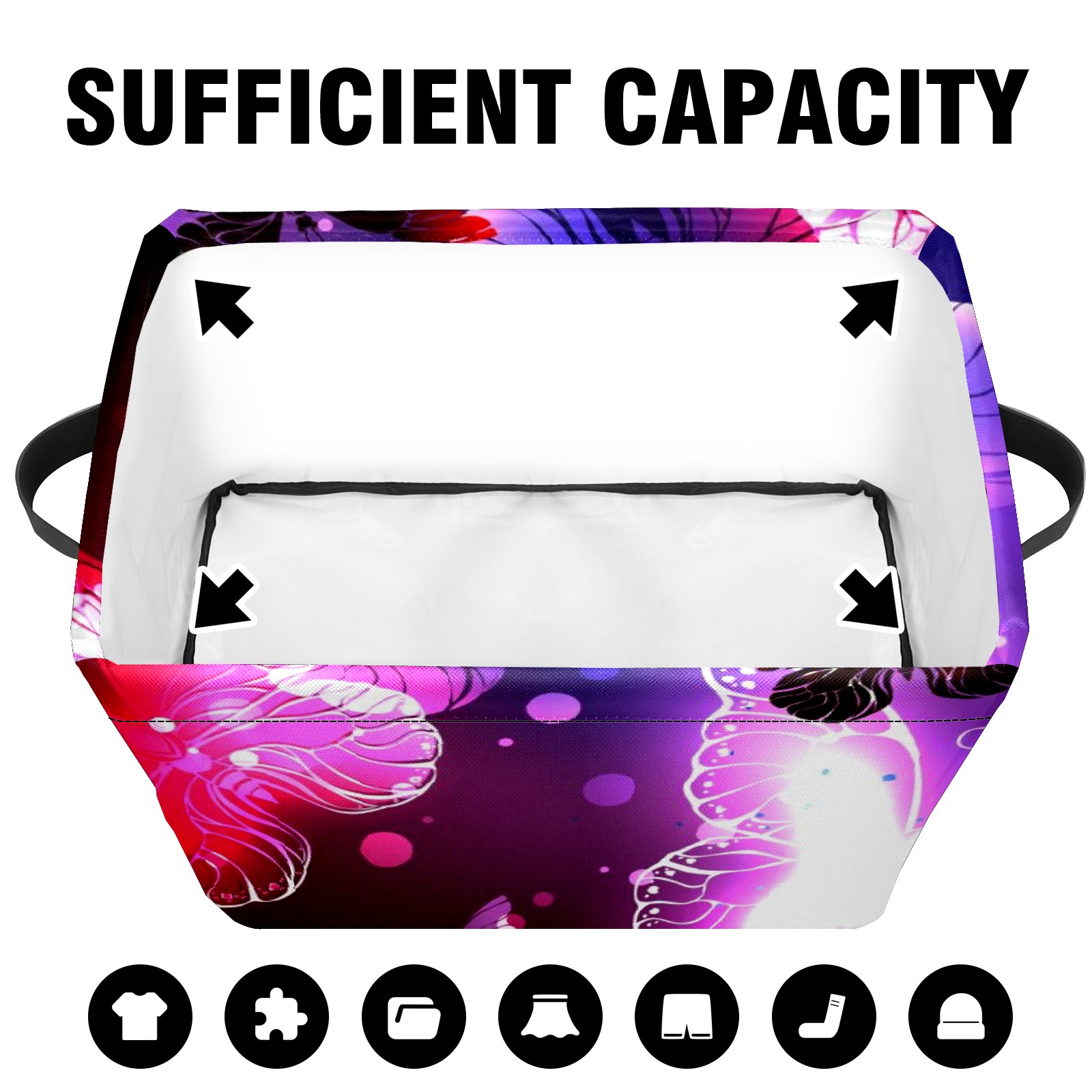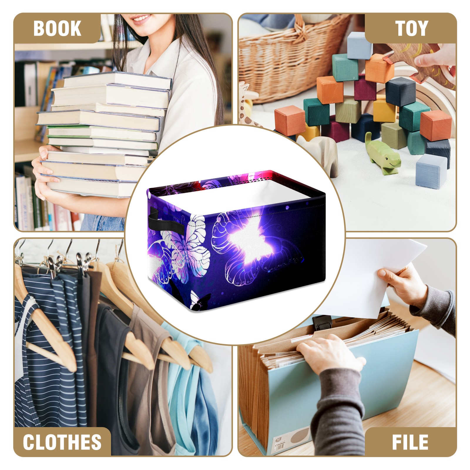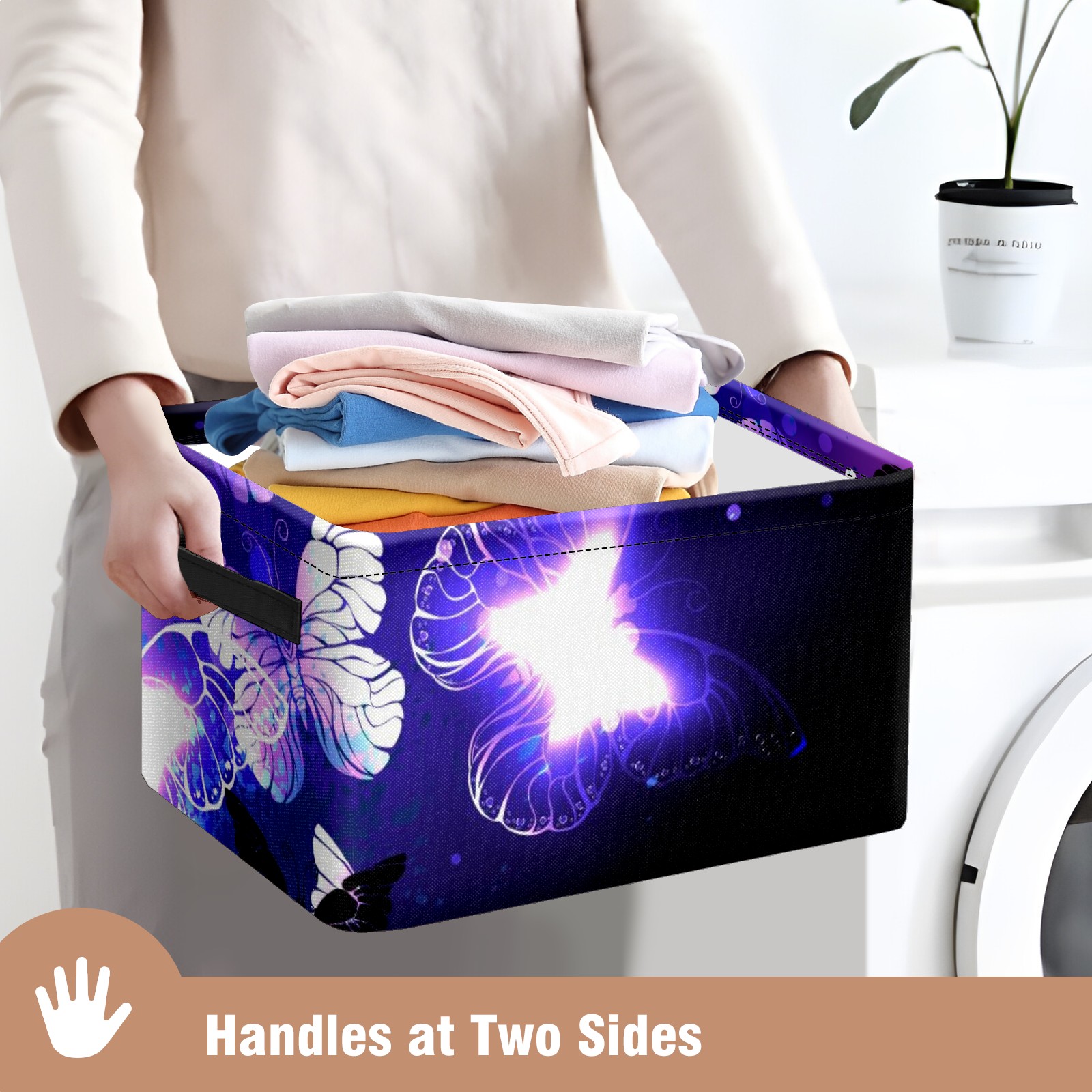 Collapsible 600D Oxford Storage Basket with Purple Butterfly - Metal Frame 10"x14"x8" Reinforced Handles, Multi-Purpose Organizer