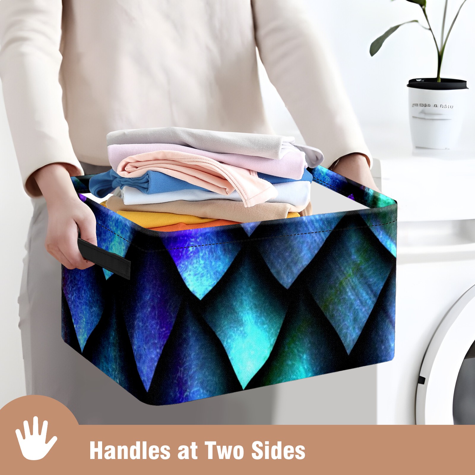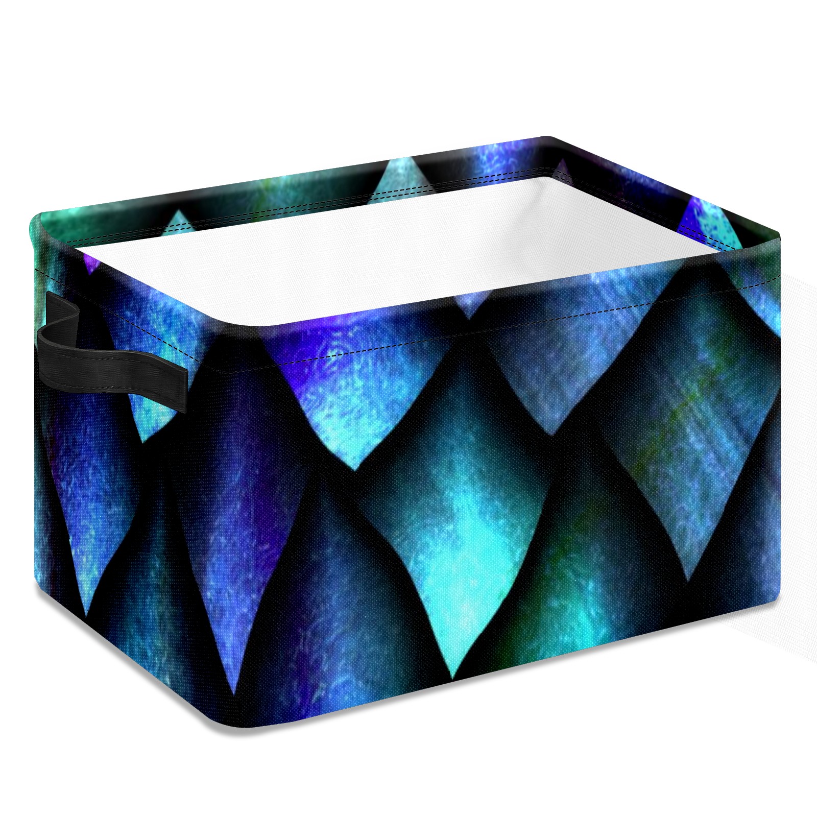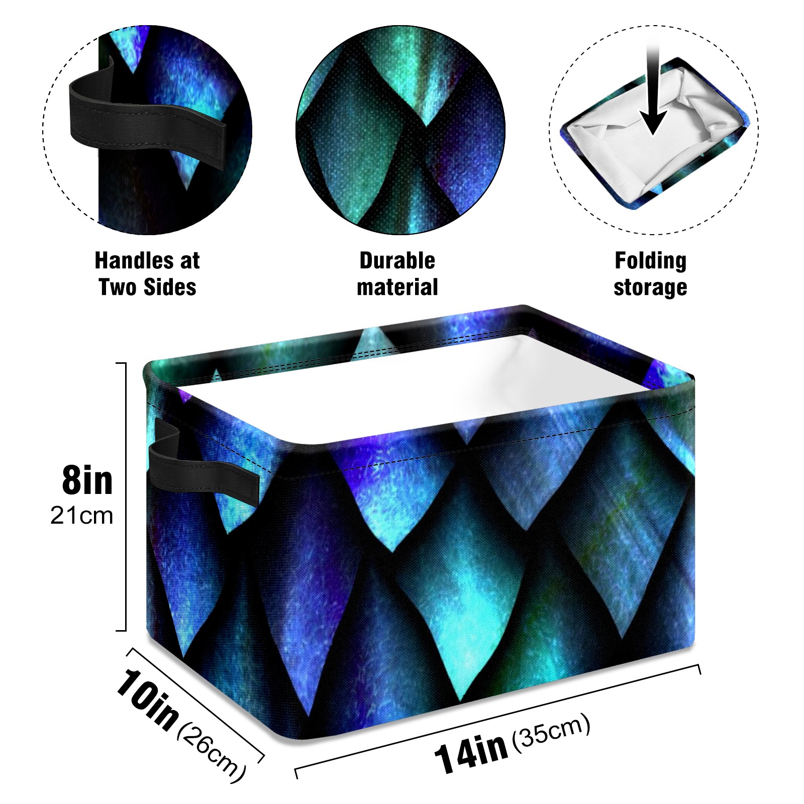 Collapsible 600D Oxford Storage Basket with 3D Blue Green Dragon Scales - Metal Frame 10"x14"x8" Reinforced Handles, Multi-Purpose Organizer