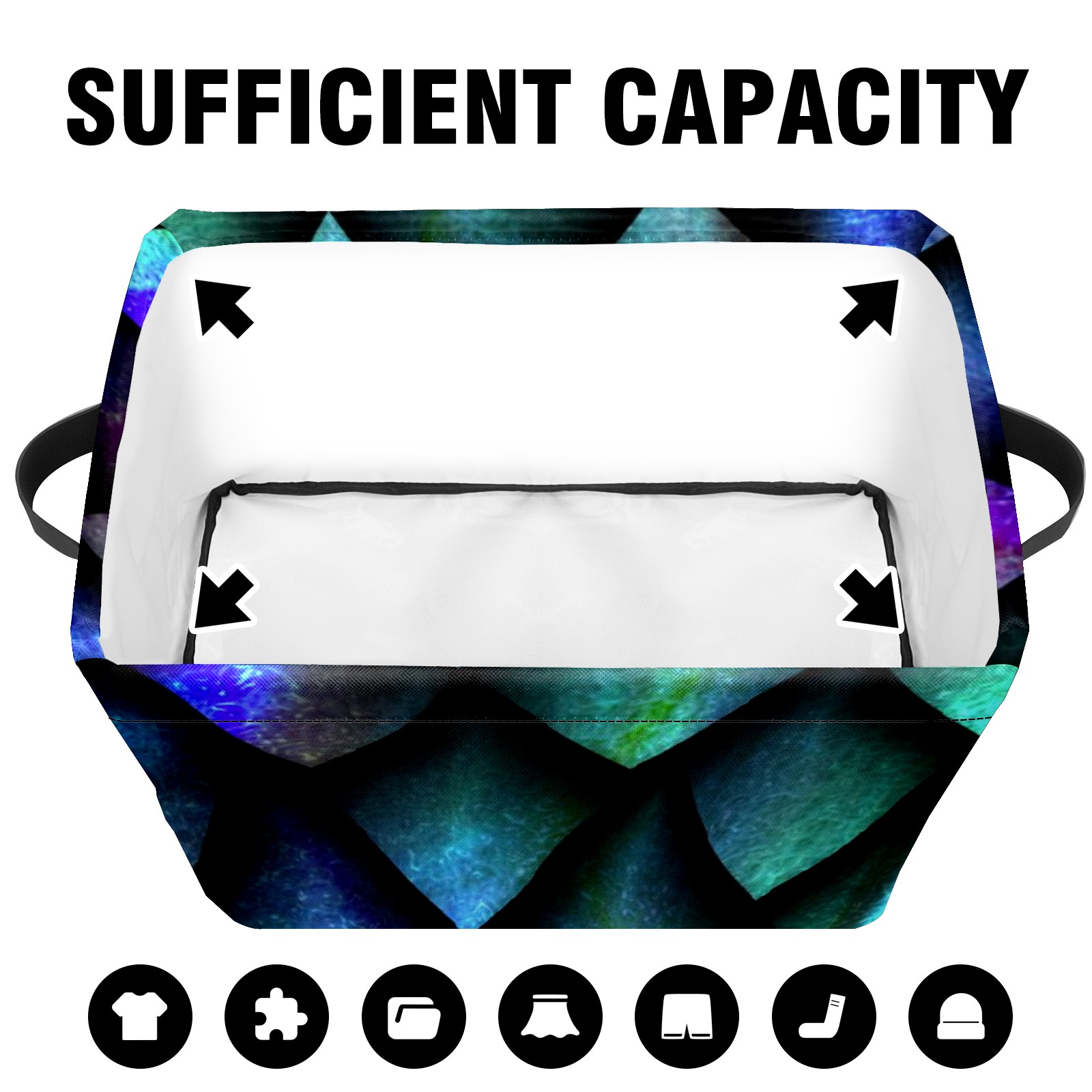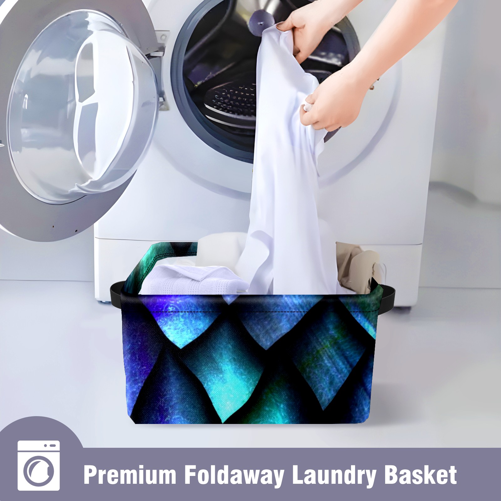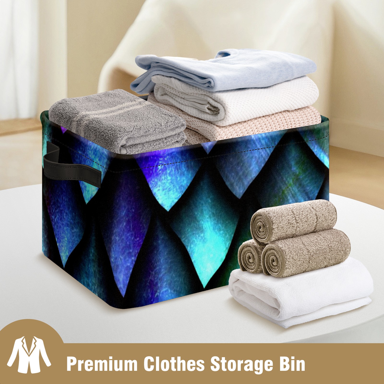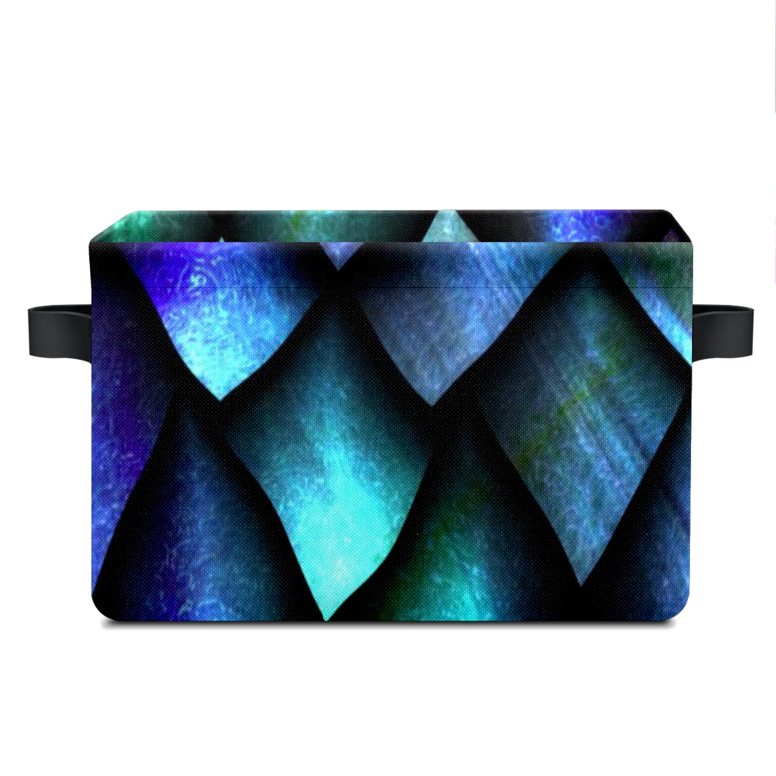 Collapsible 600D Oxford Storage Basket with 3D Blue Green Dragon Scales - Metal Frame 10"x14"x8" Reinforced Handles, Multi-Purpose Organizer
