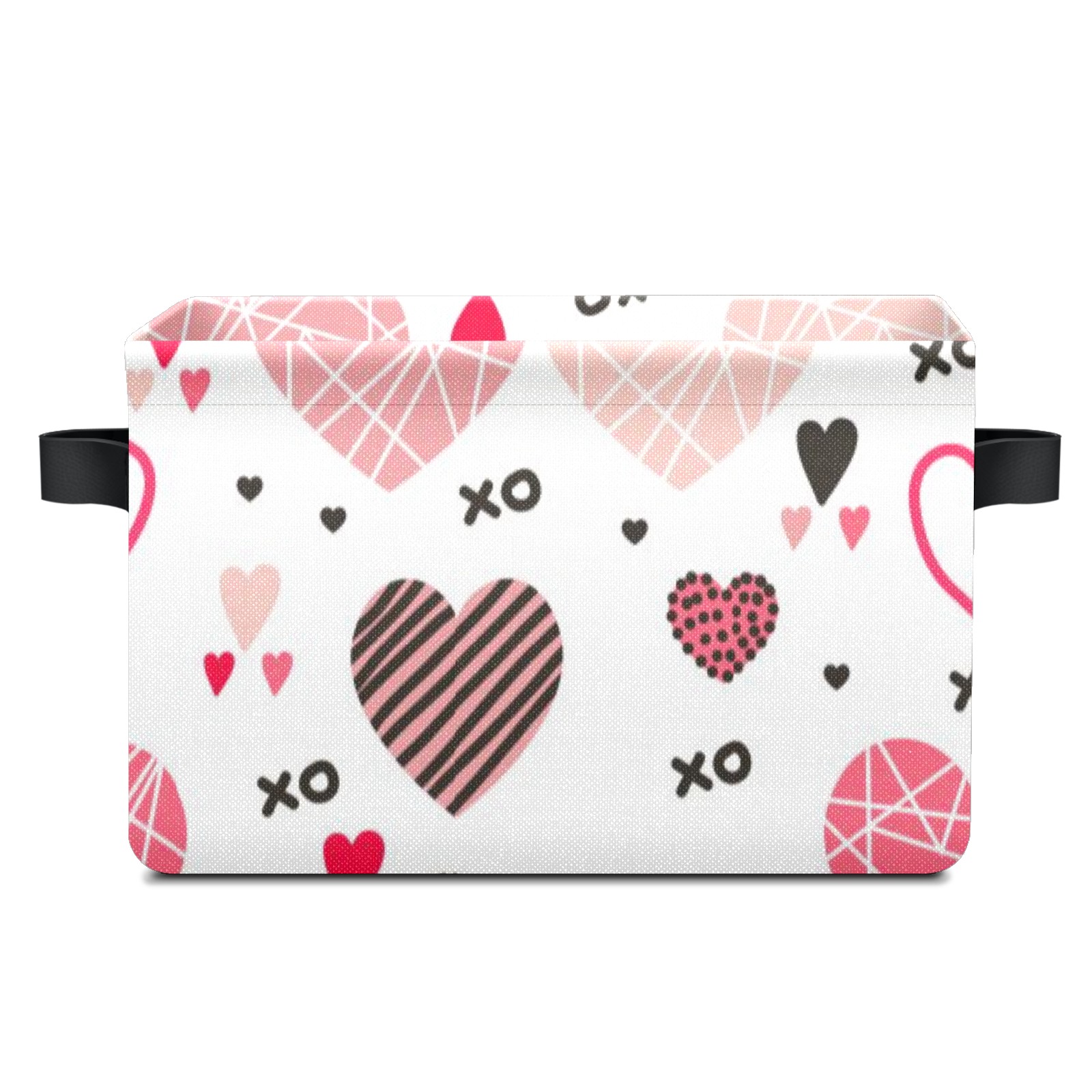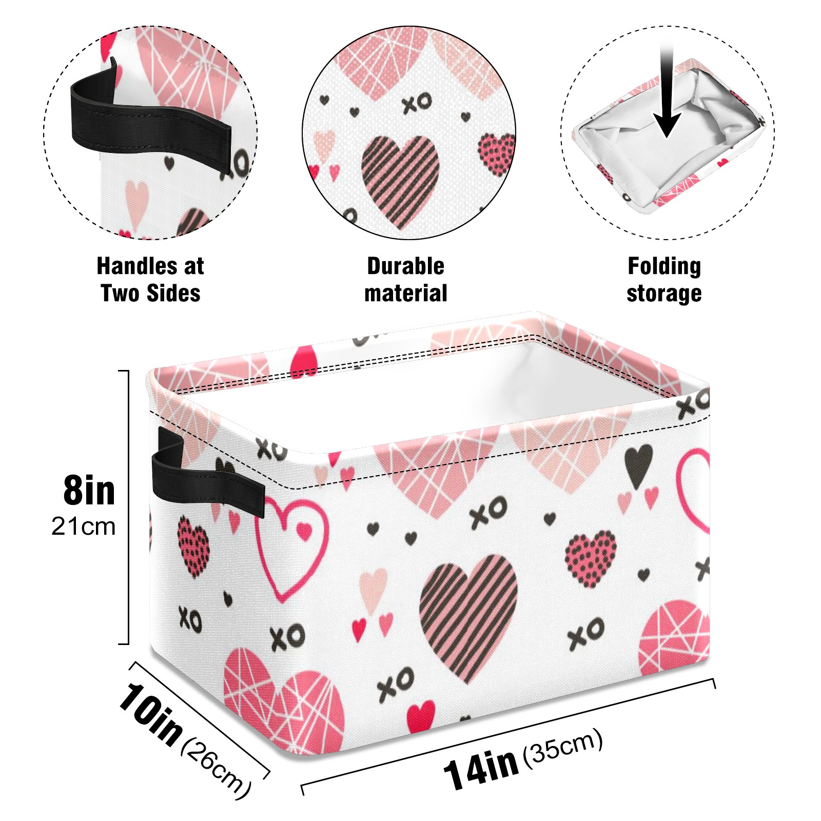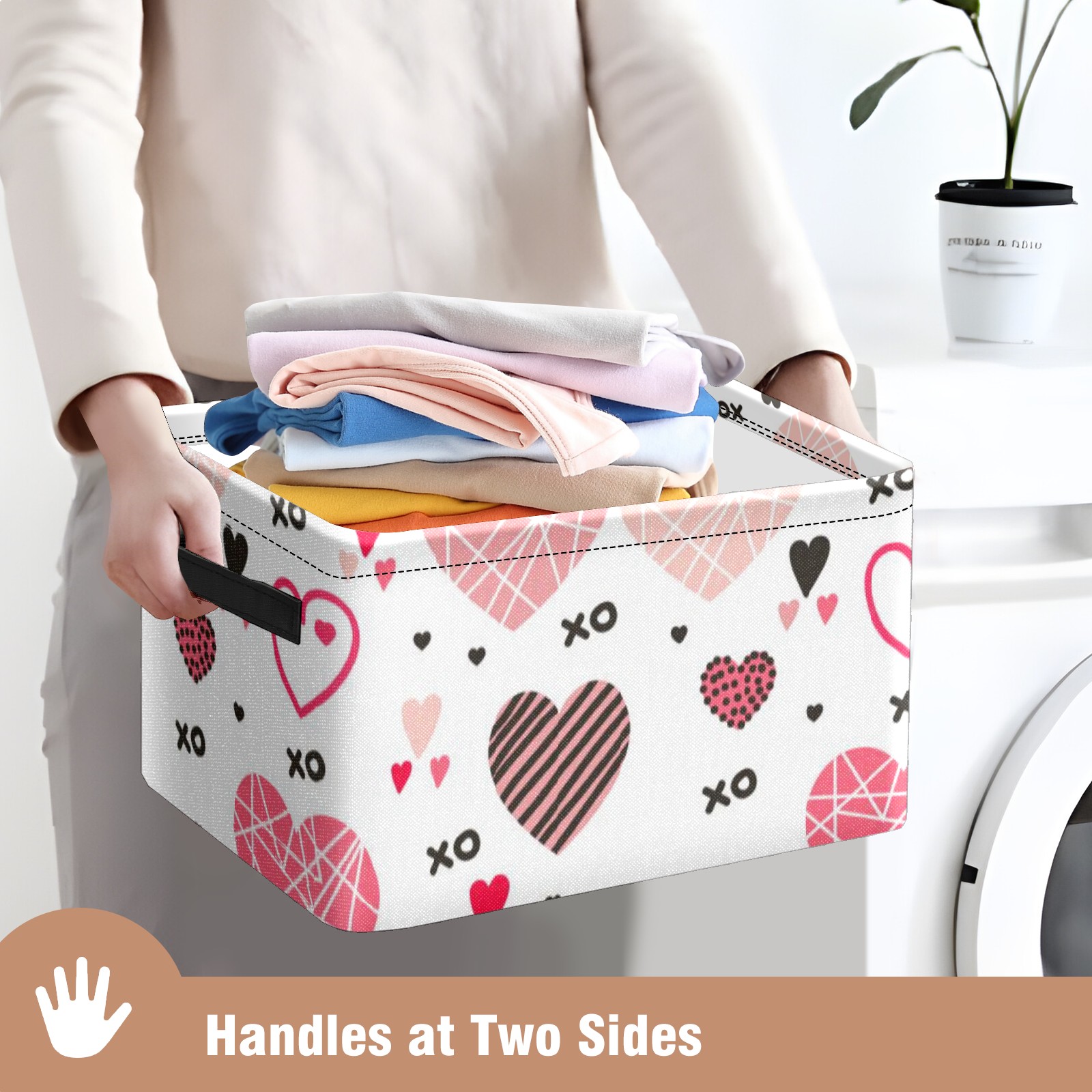 Collapsible 600D Oxford Storage Basket with Valentine Hearts Love - Metal Frame 10"x14"x8" Reinforced Handles, Multi-Purpose Organizer