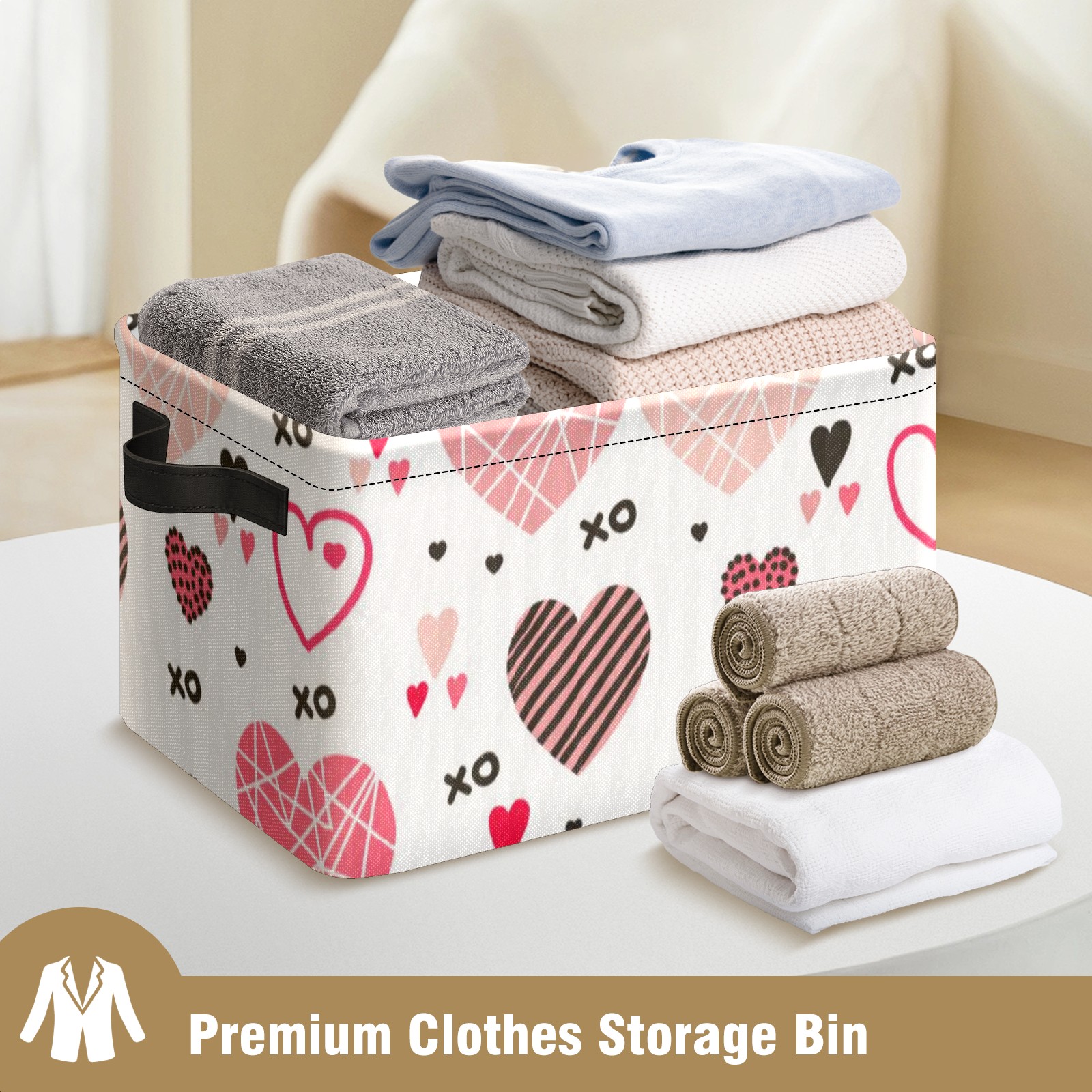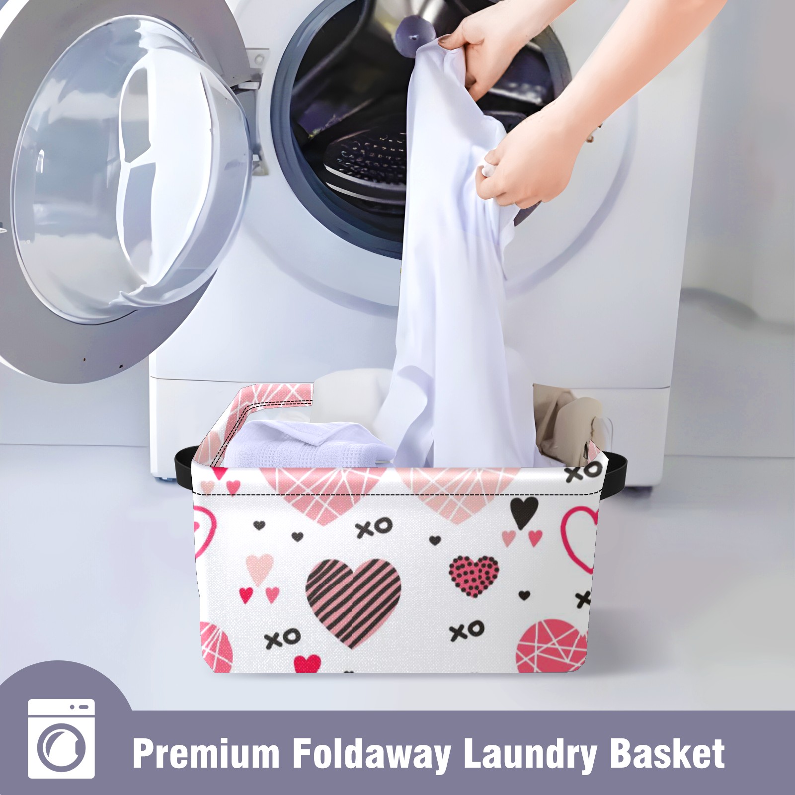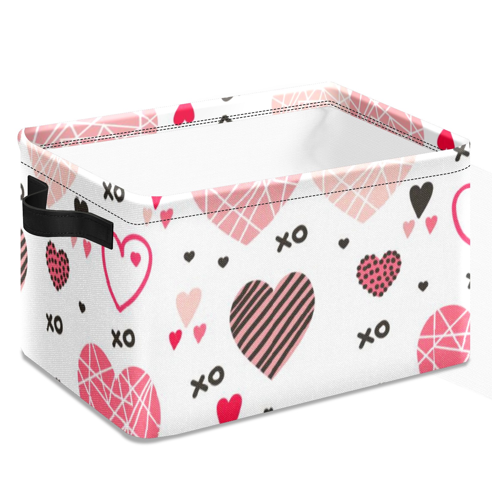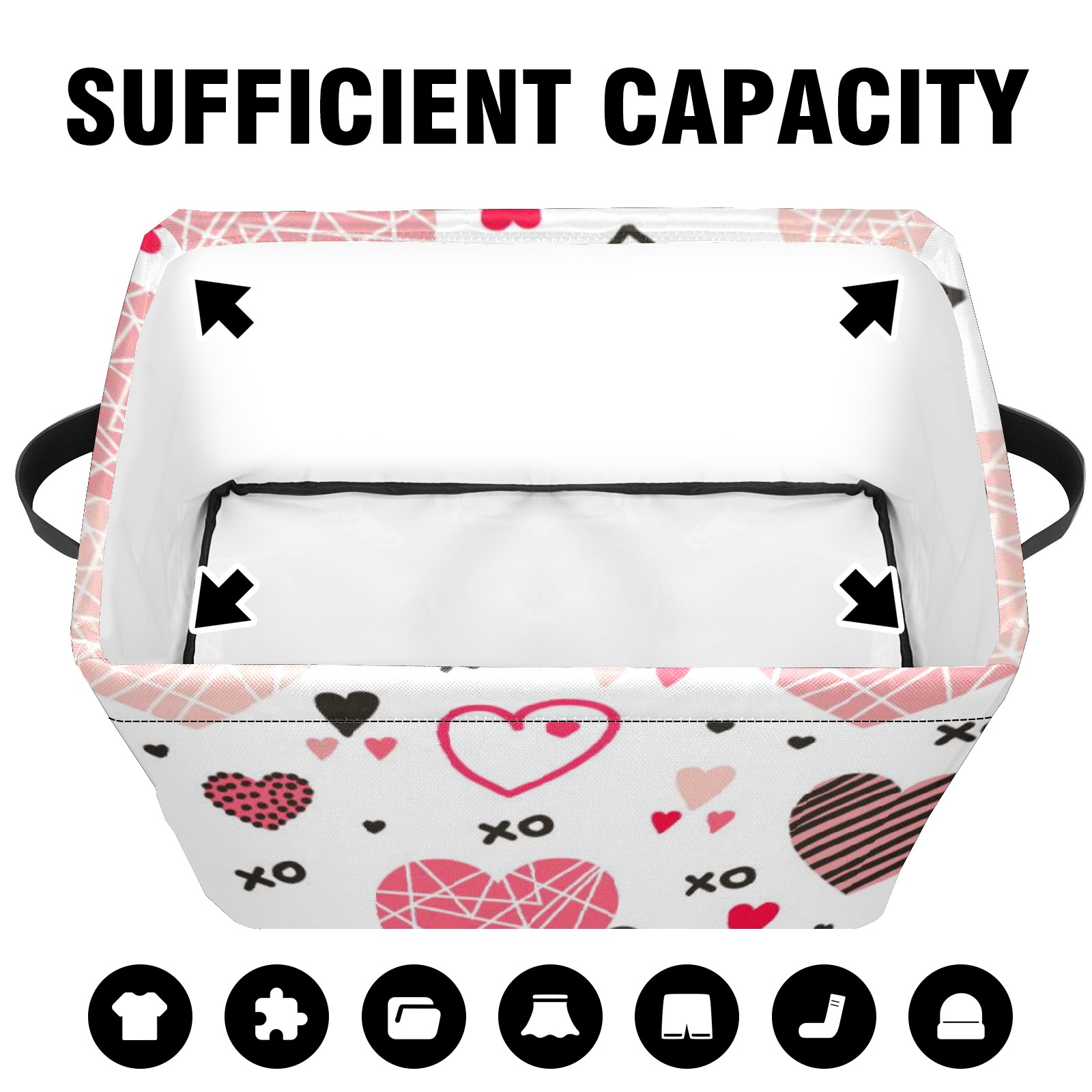 Collapsible 600D Oxford Storage Basket with Valentine Hearts Love - Metal Frame 10"x14"x8" Reinforced Handles, Multi-Purpose Organizer