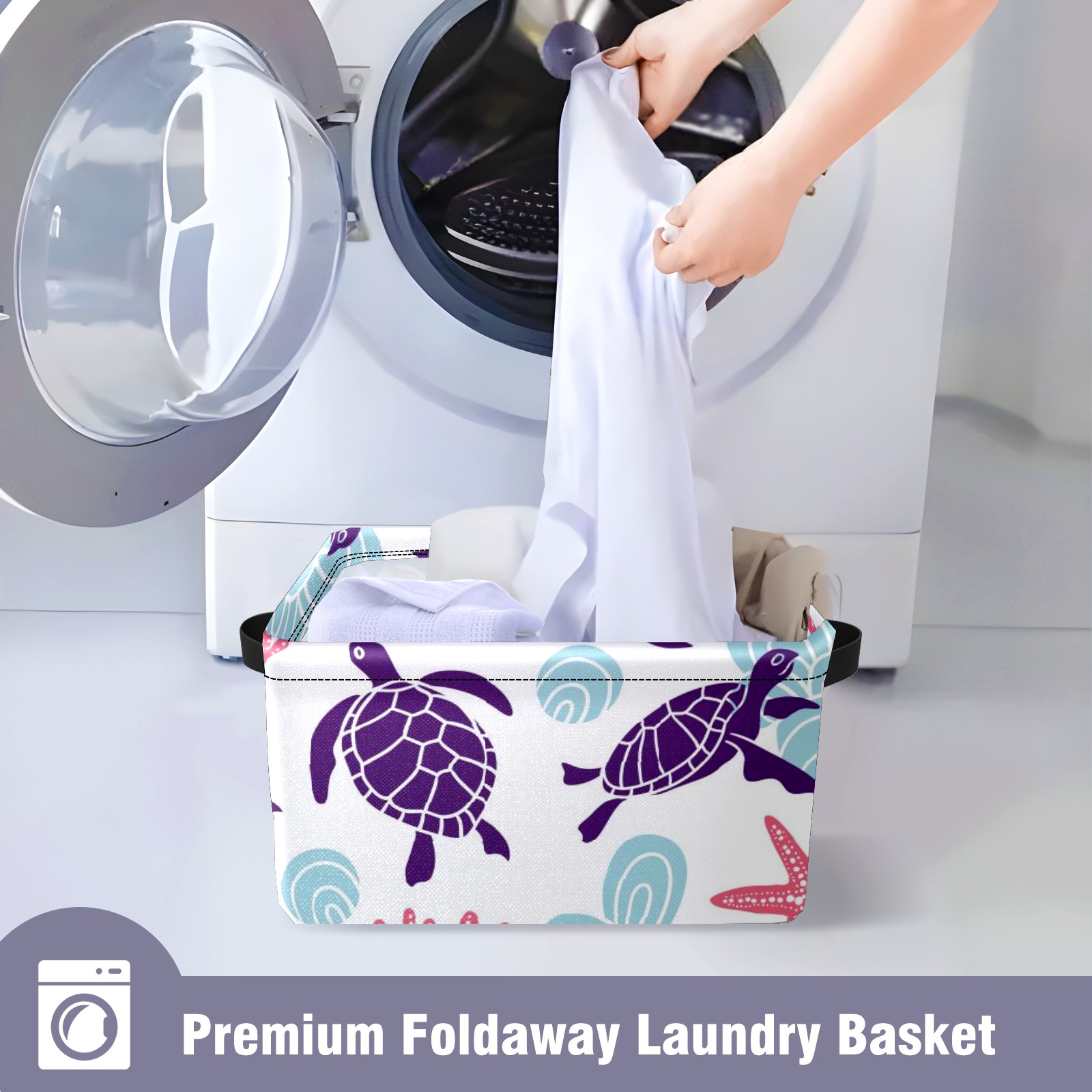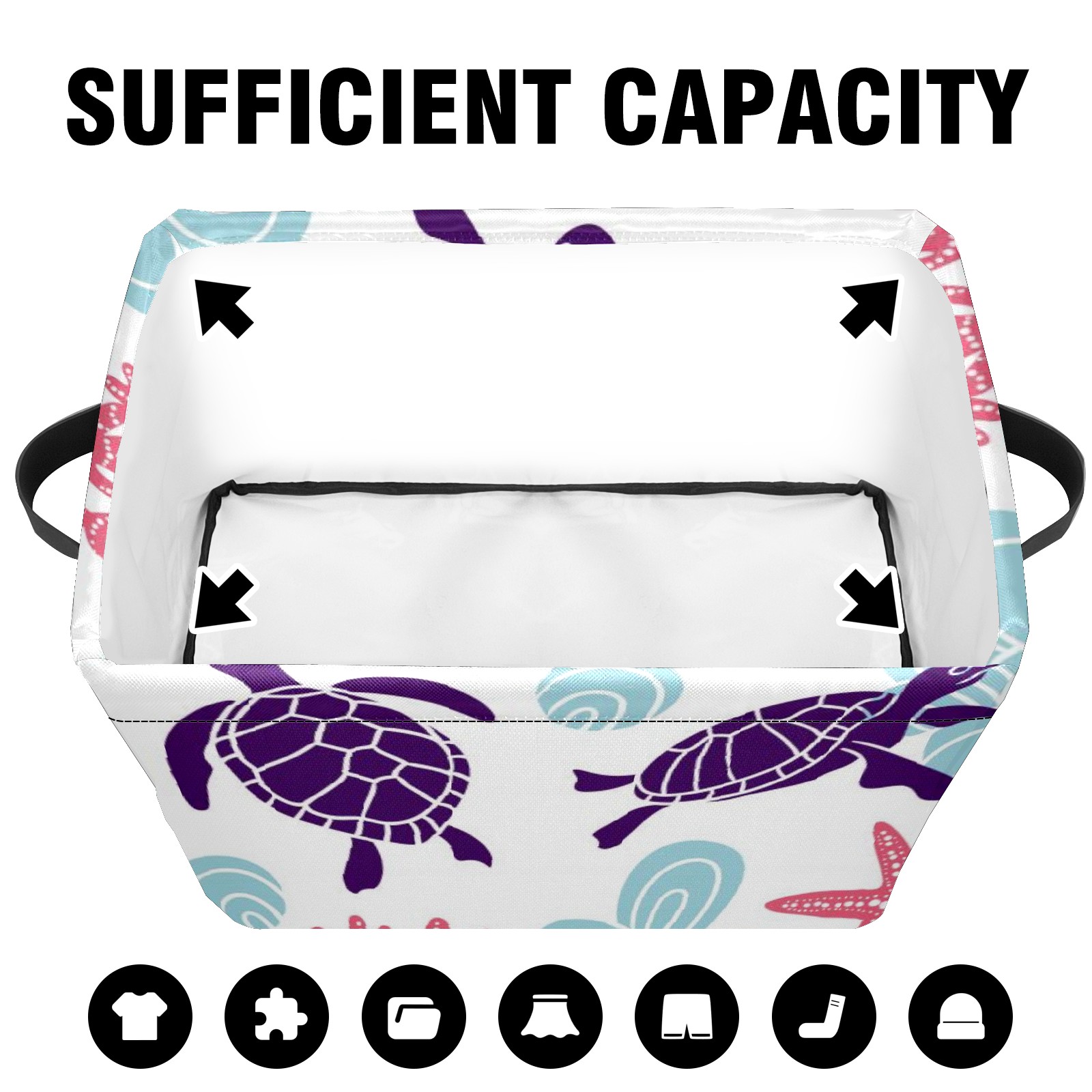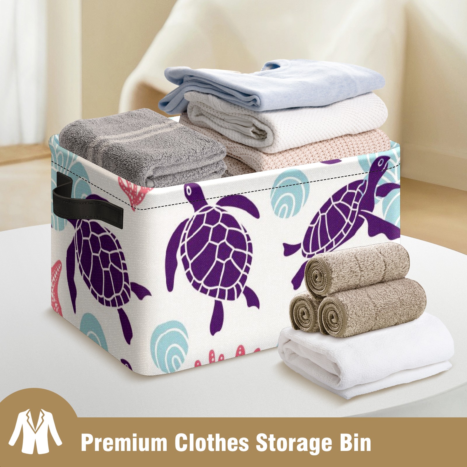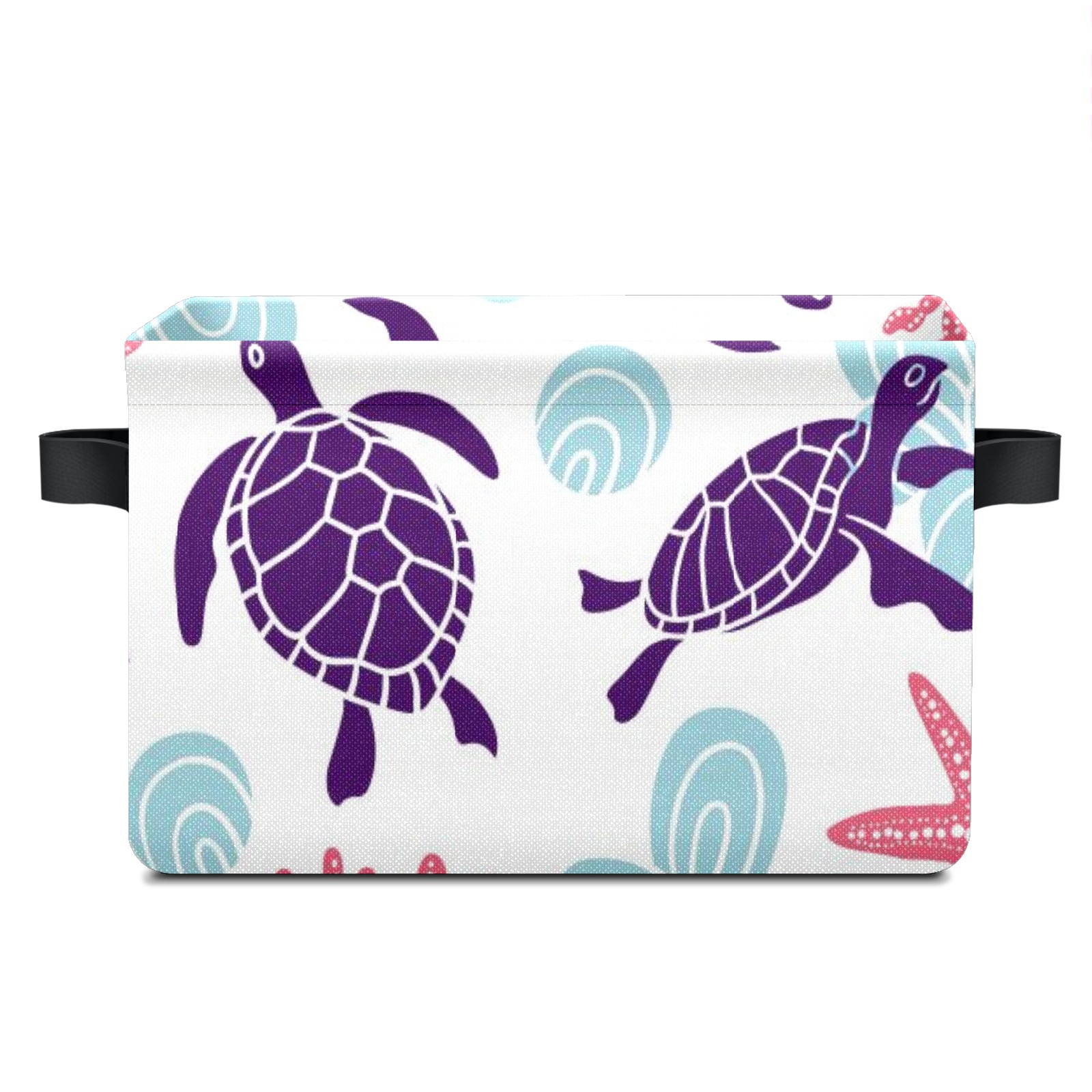 Collapsible 600D Oxford Storage Basket with Purple Turtle Starfish - Metal Frame 10"x14"x8" Reinforced Handles, Multi-Purpose Organizer