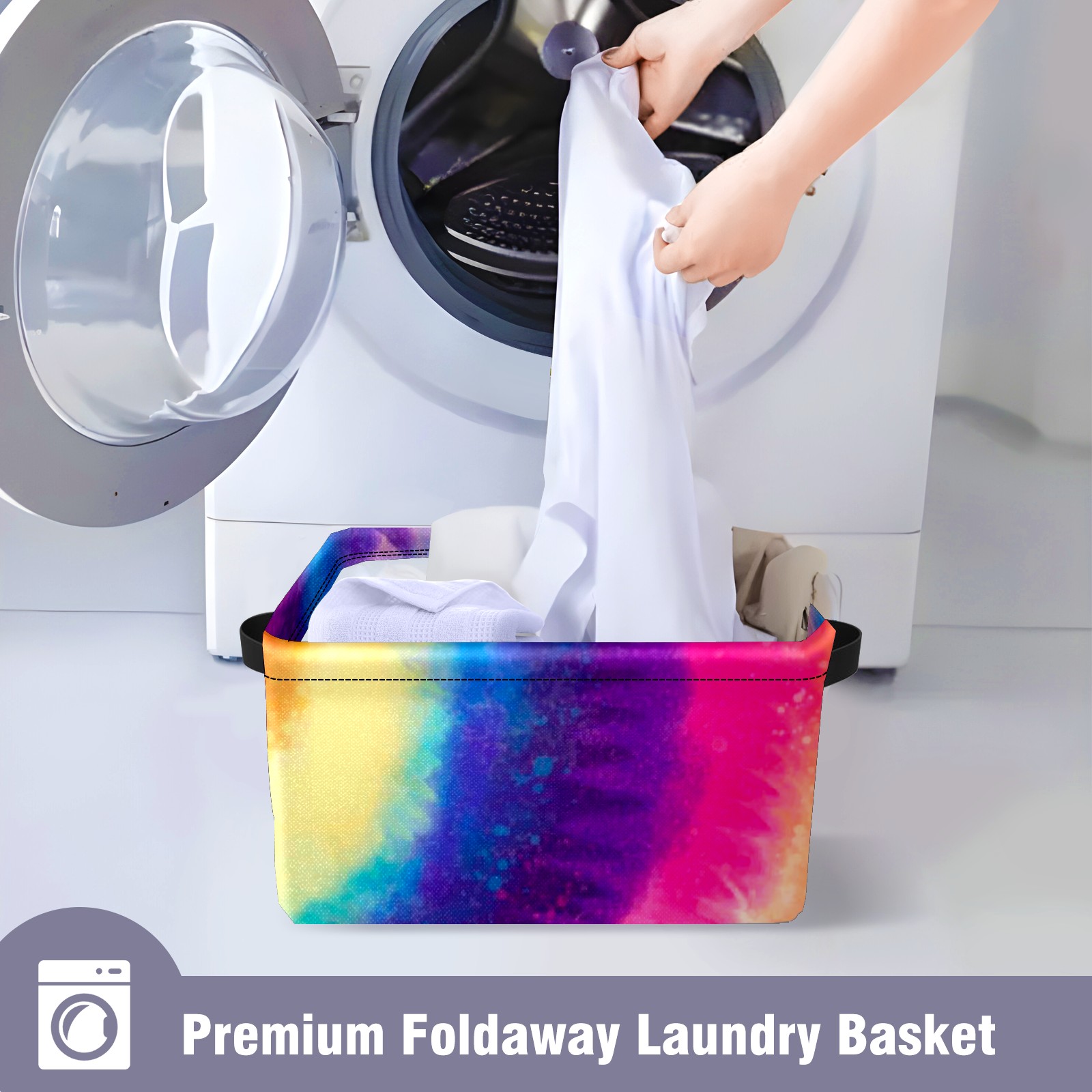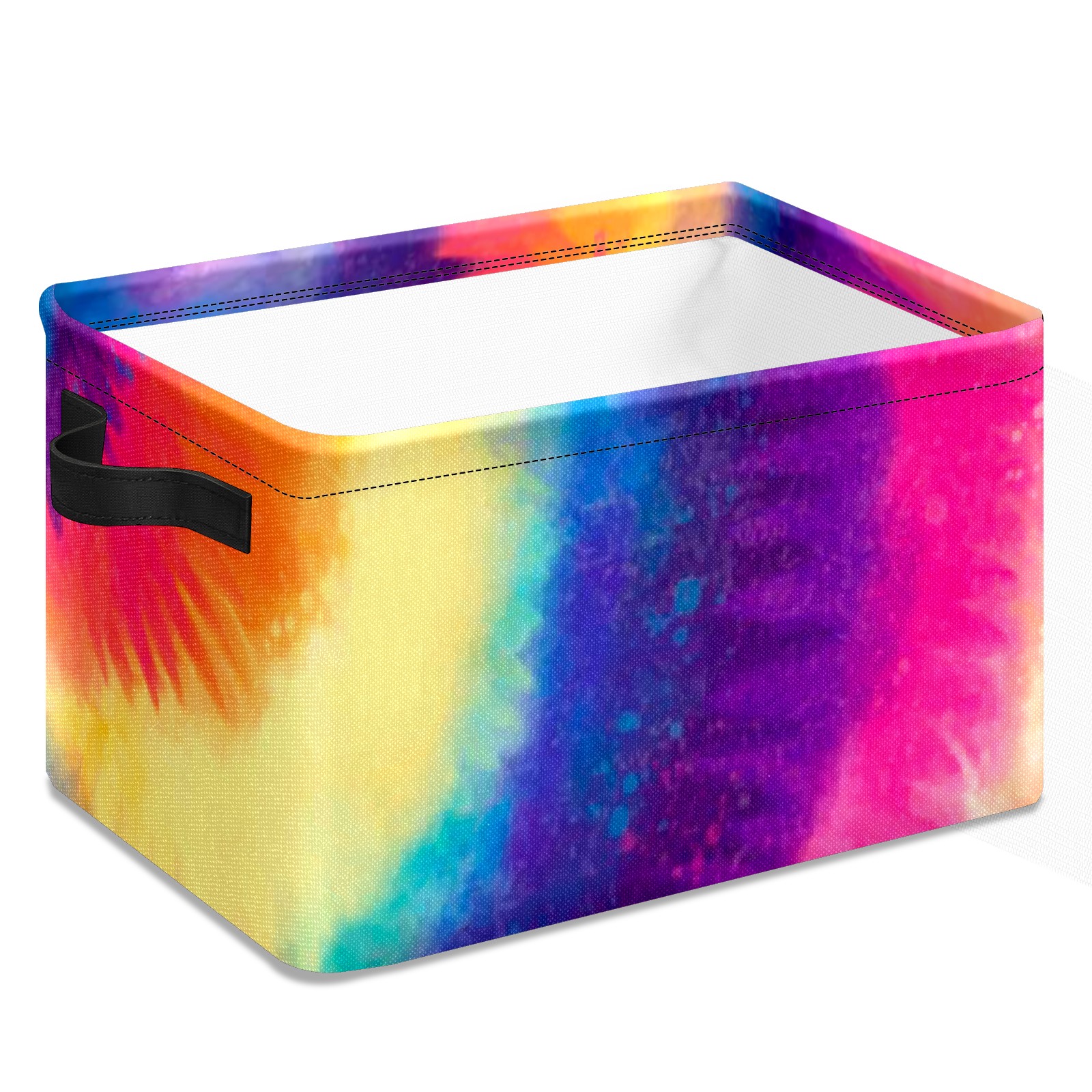 Collapsible 600D Oxford Storage Basket with Rainbow Tie Dye Style - Metal Frame 10"x14"x8" Reinforced Handles, Multi-Purpose Organizer