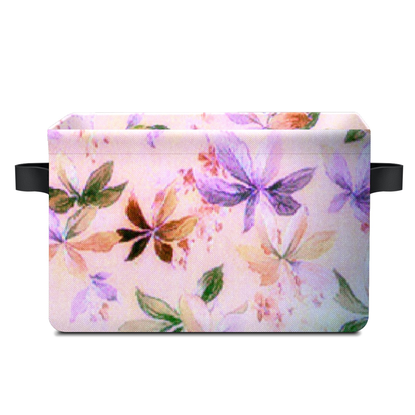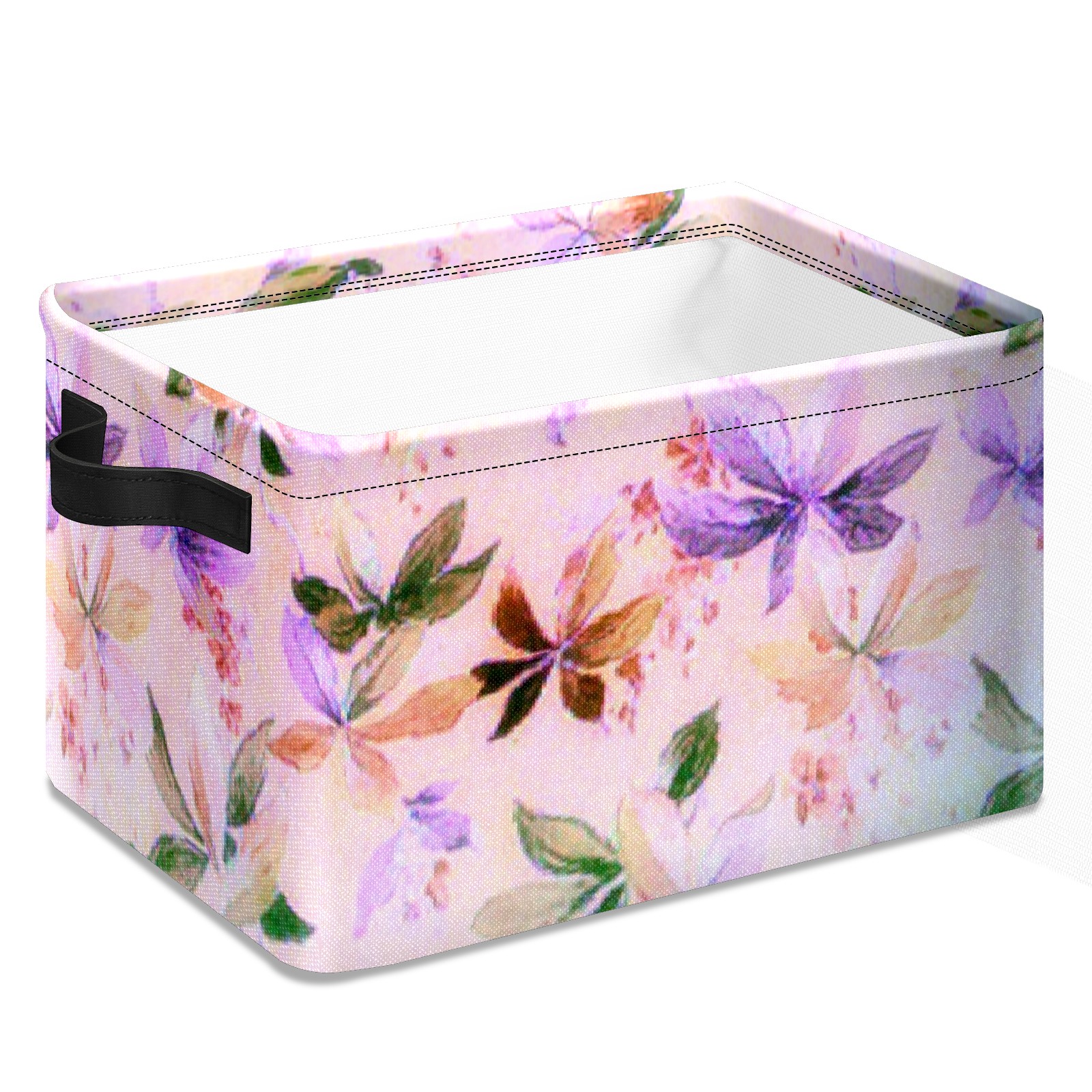 Collapsible 600D Oxford Storage Basket with Purple Butterfly Plant Leaves Retro - Metal Frame 10"x14"x8" Reinforced Handles, Multi-Purpose Organizer
