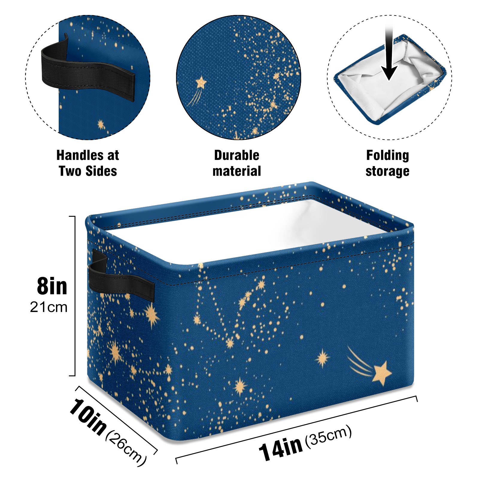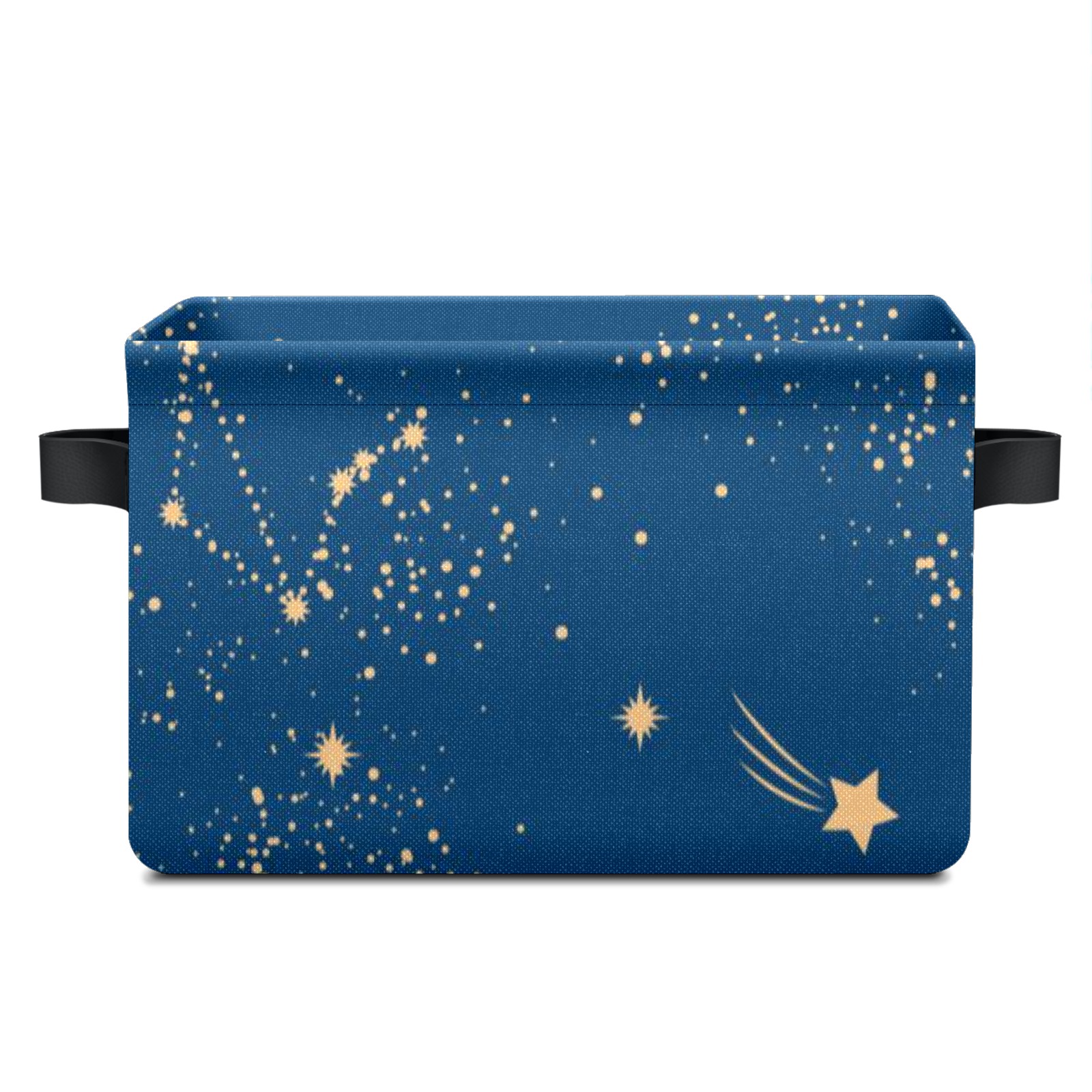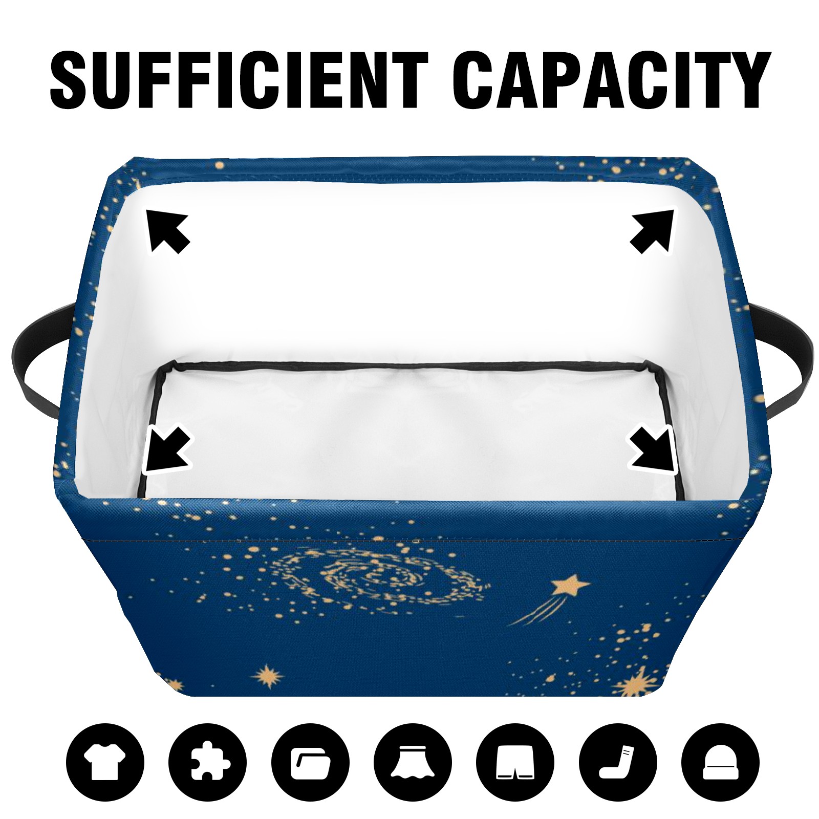 Collapsible 600D Oxford Storage Basket with Outer Space - Metal Frame 10"x14"x8" Reinforced Handles, Multi-Purpose Organizer