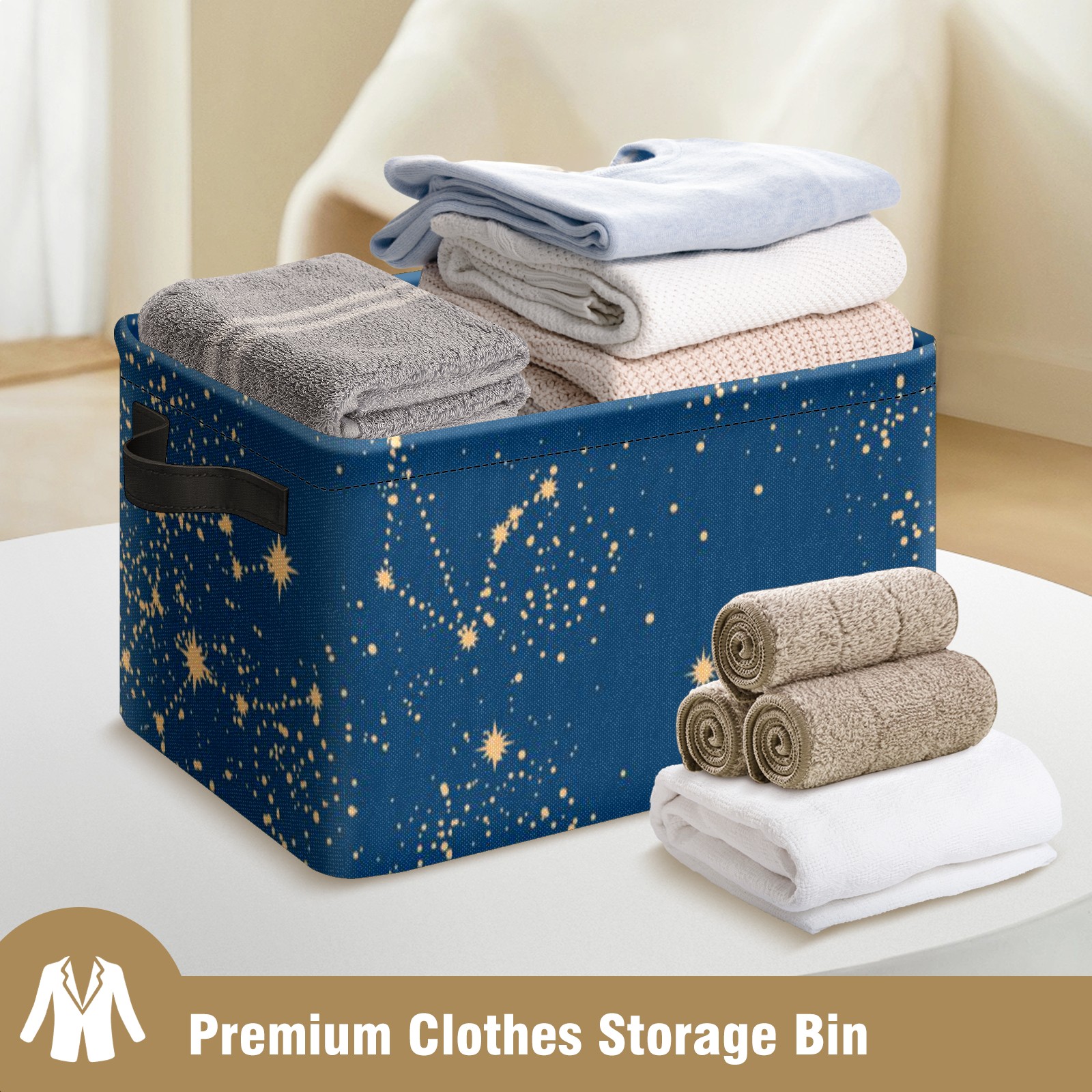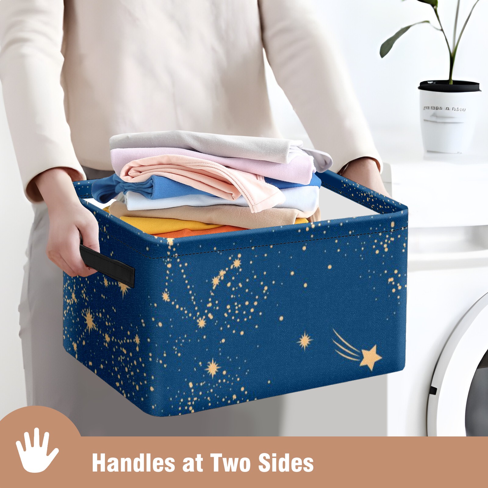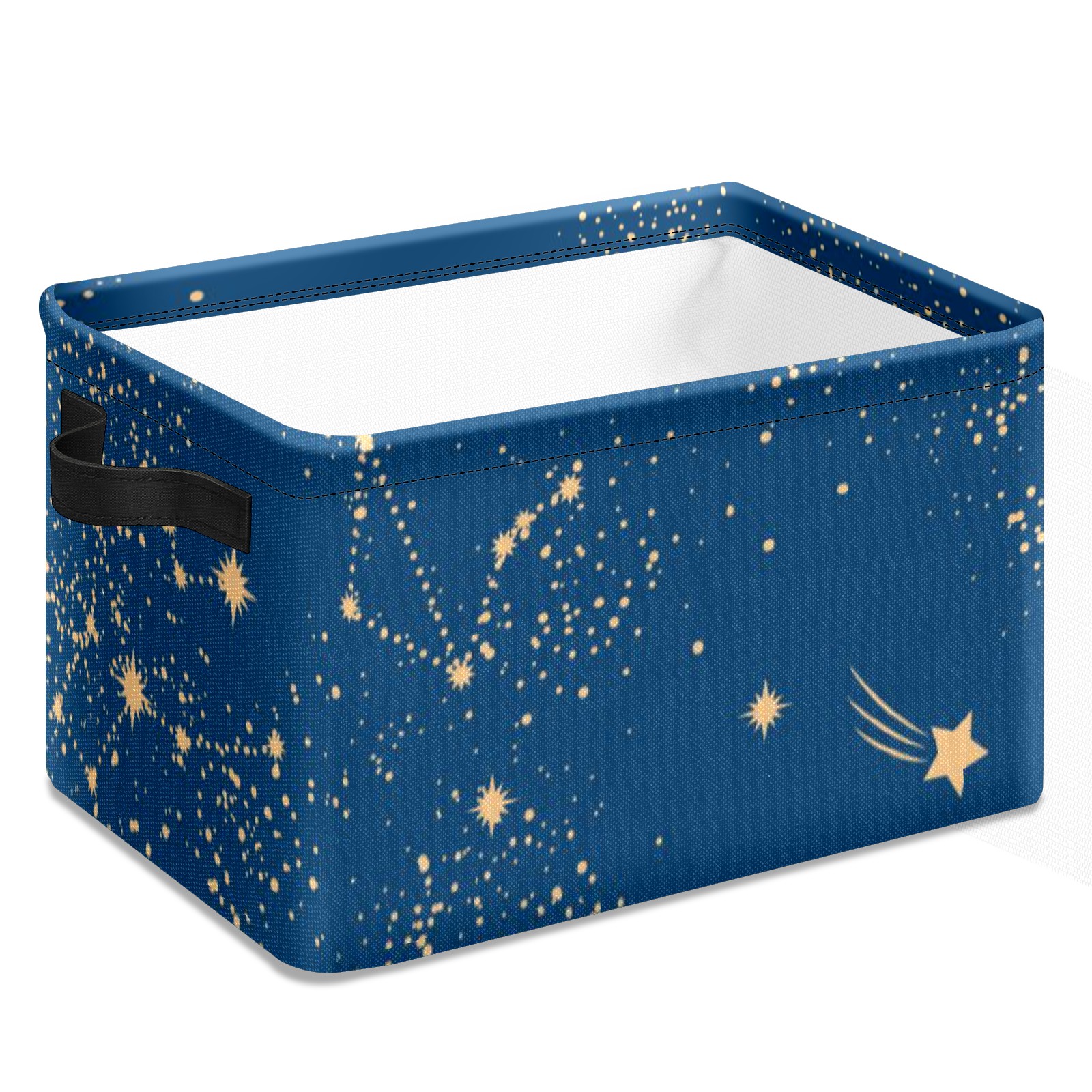 Collapsible 600D Oxford Storage Basket with Outer Space - Metal Frame 10"x14"x8" Reinforced Handles, Multi-Purpose Organizer