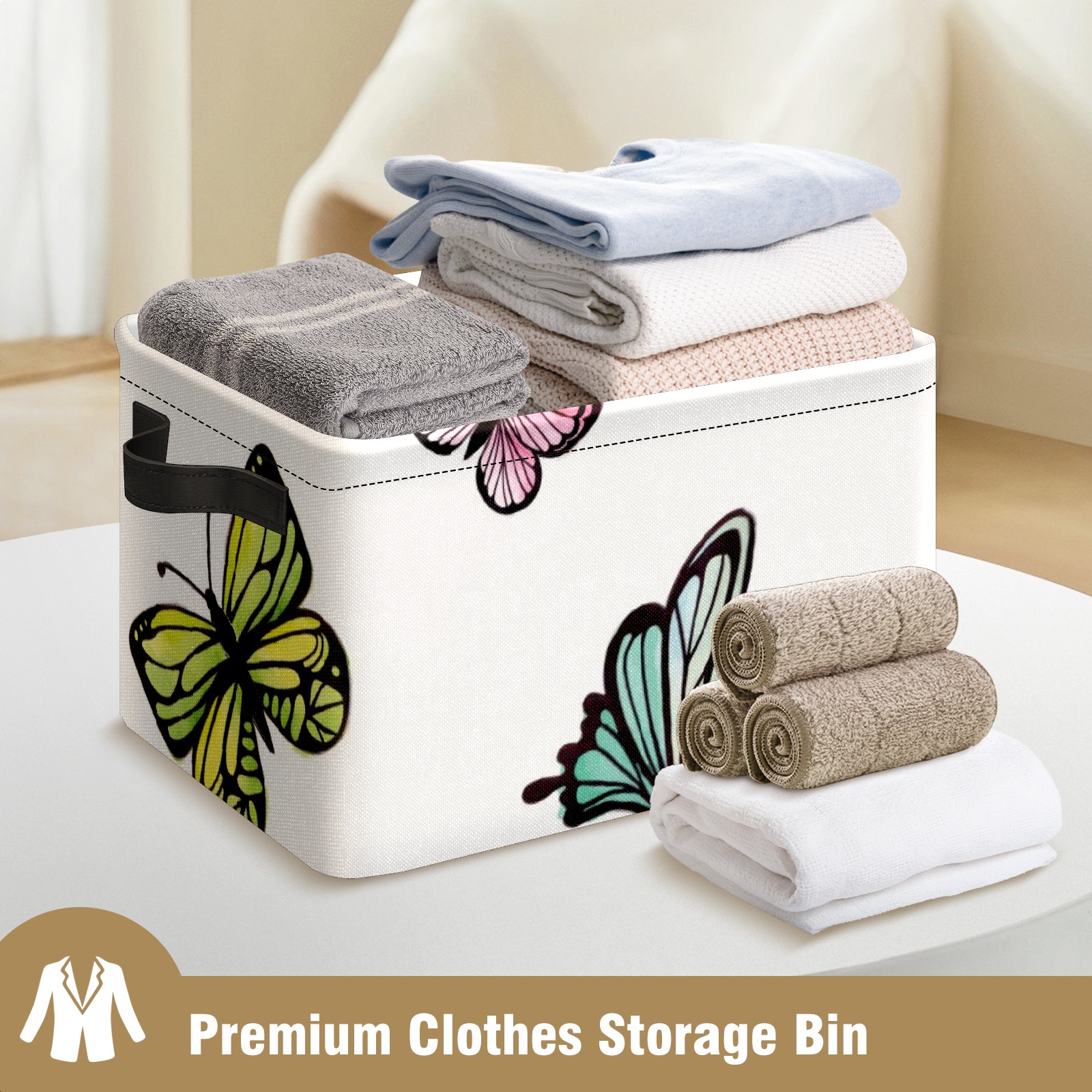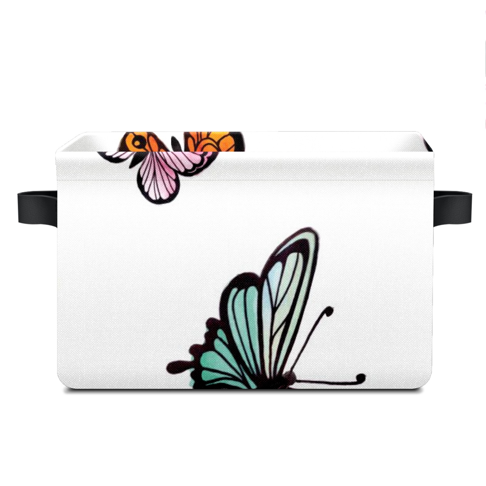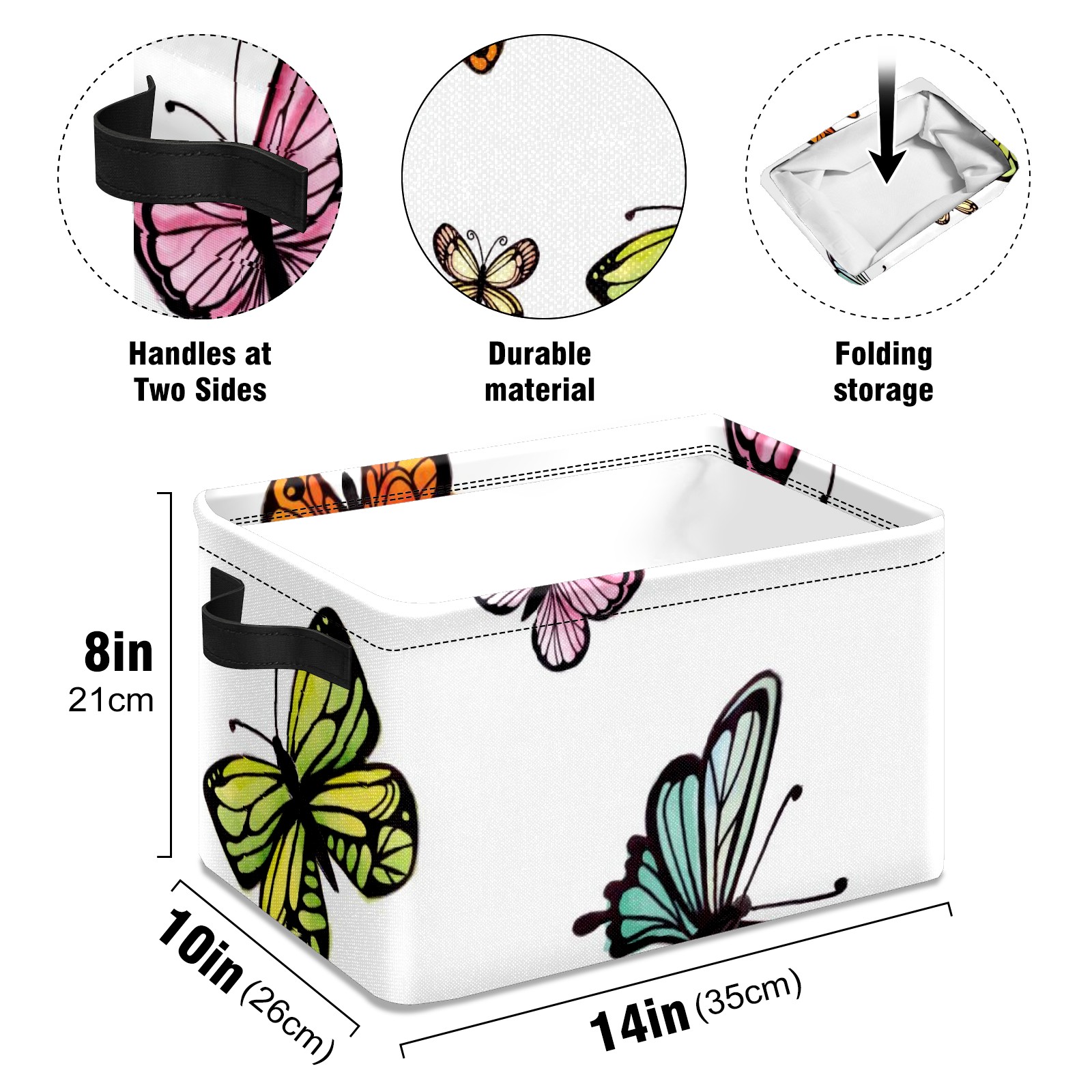 Collapsible 600D Oxford Storage Basket with Colorful Butterflies Print - Metal Frame 10"x14"x8" Reinforced Handles, Multi-Purpose Organizer