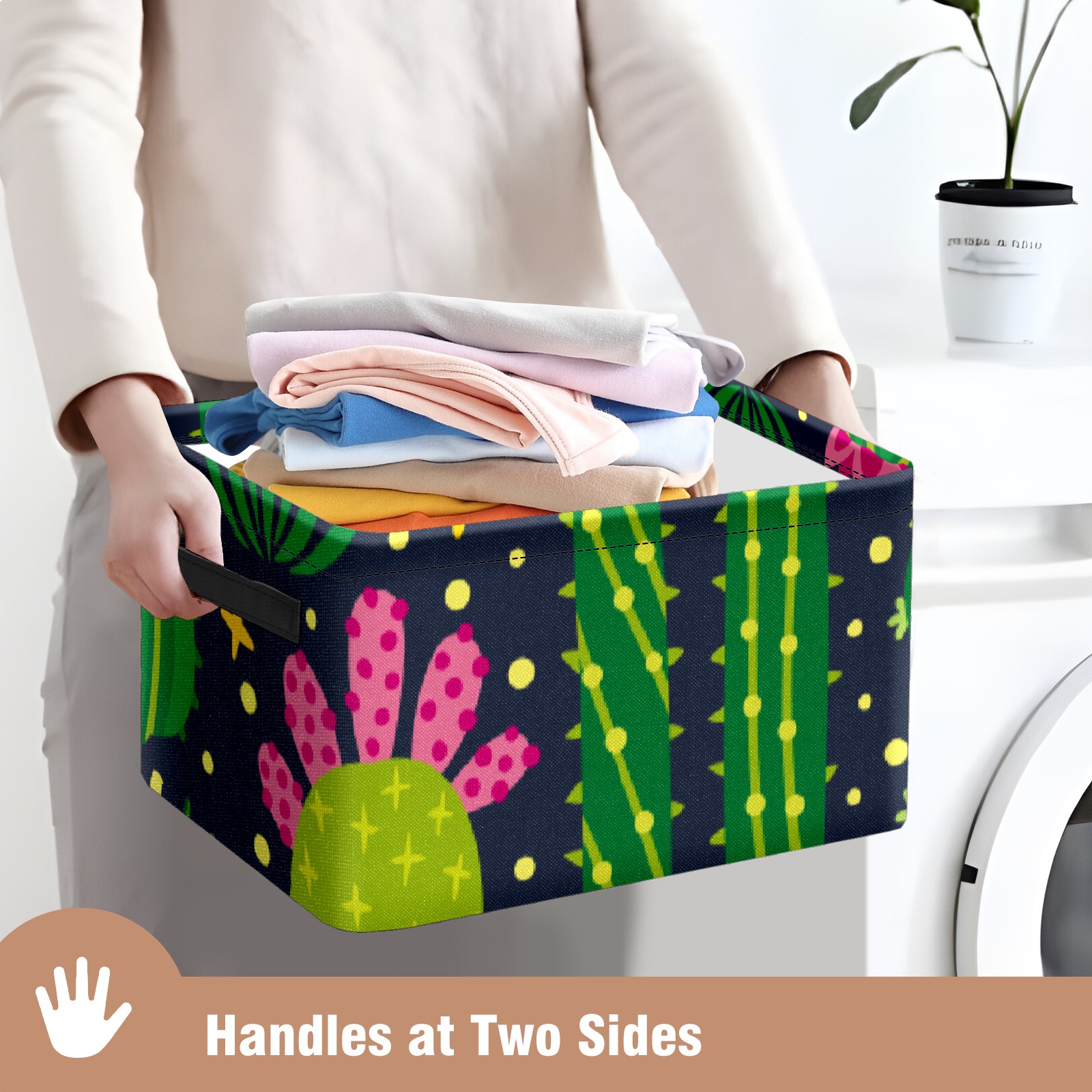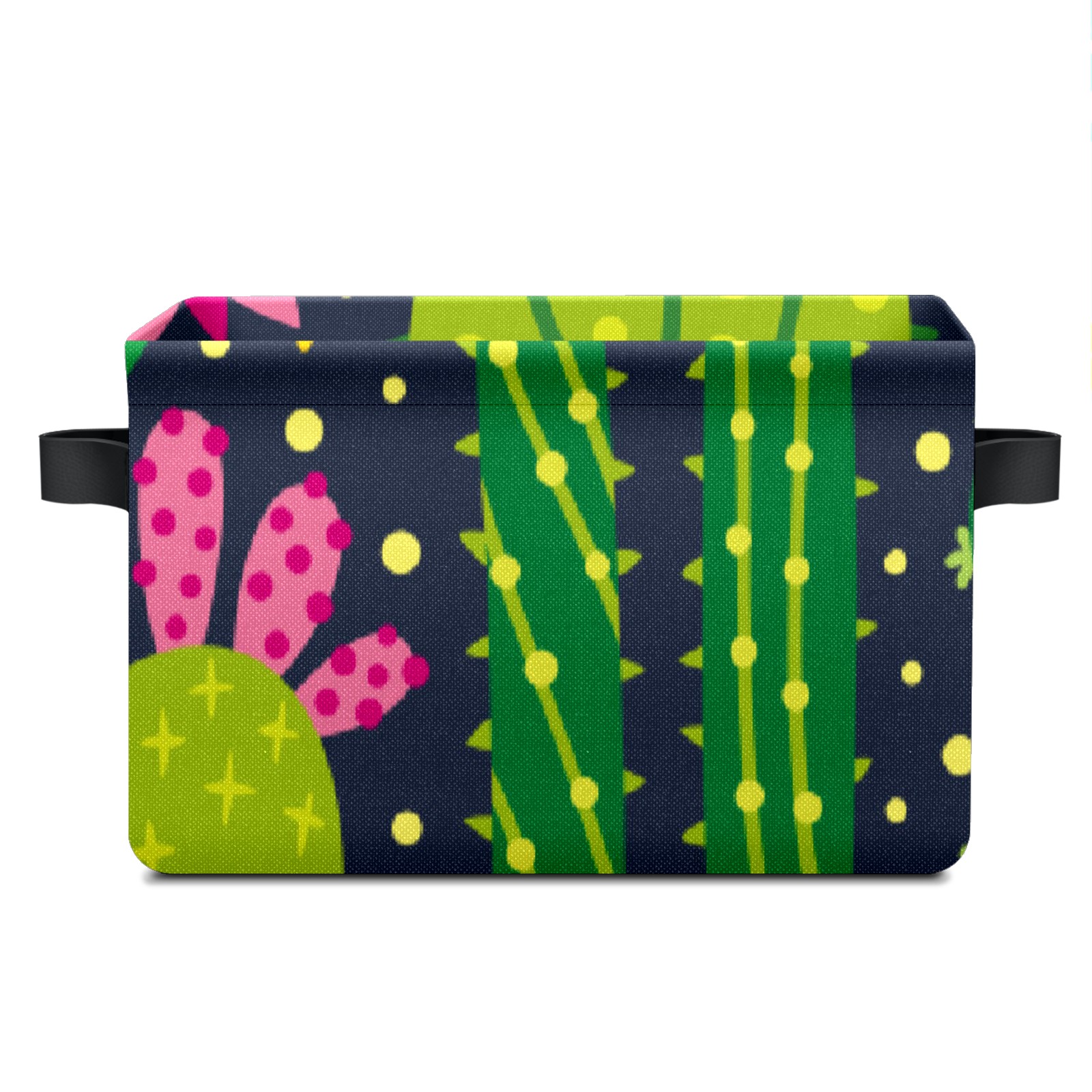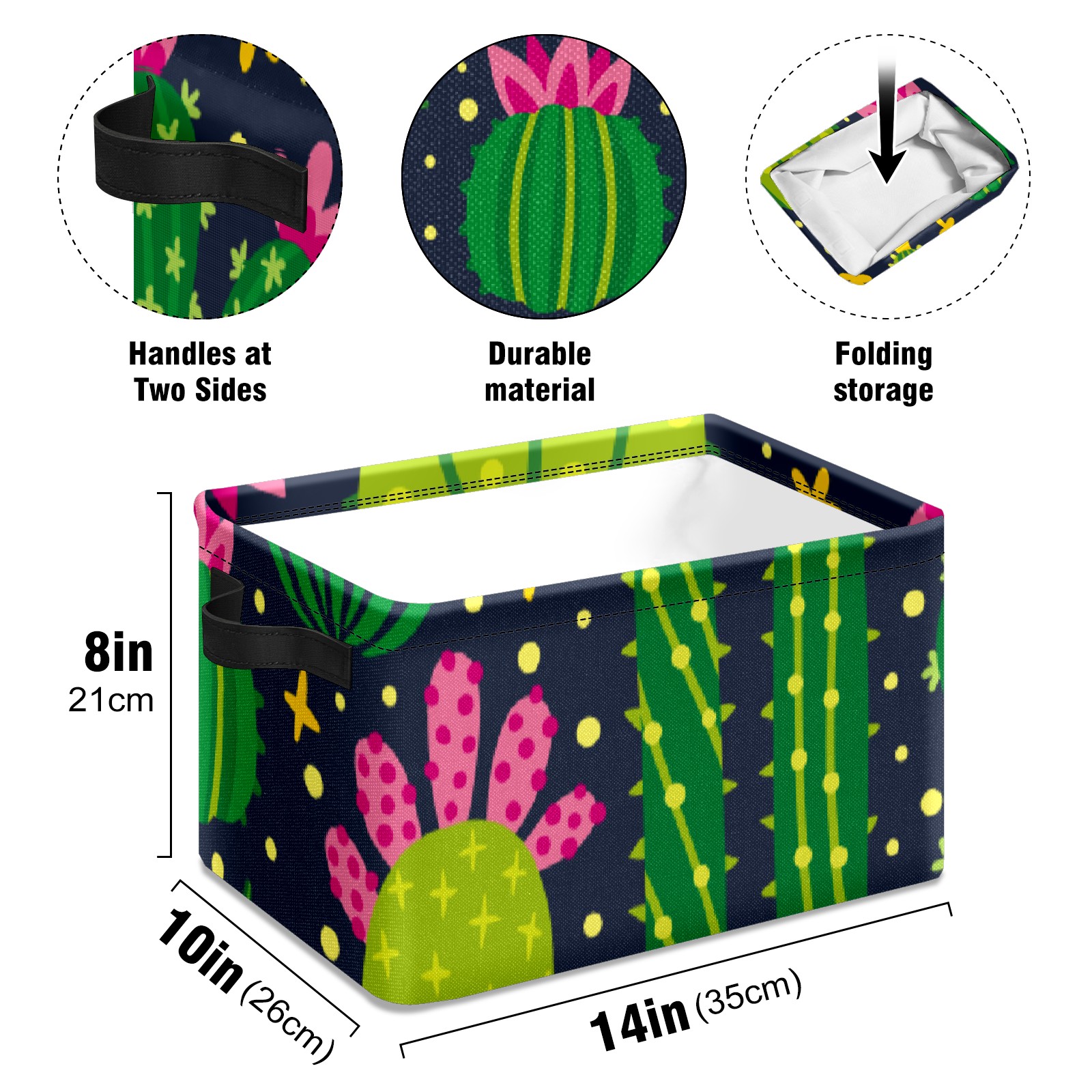 Collapsible 600D Oxford Storage Basket with Cartoon Cute Cactus - Metal Frame 10"x14"x8" Reinforced Handles, Multi-Purpose Organizer