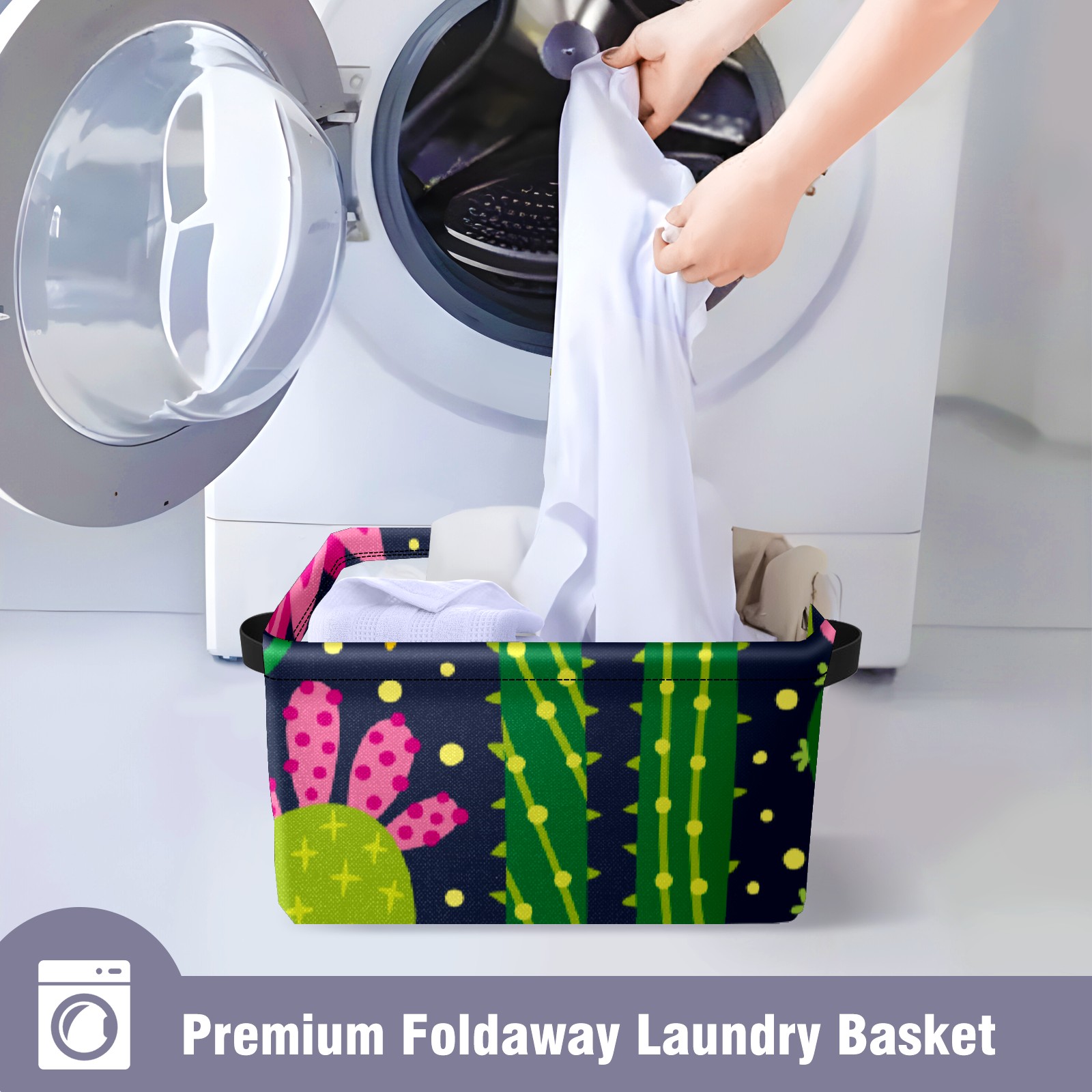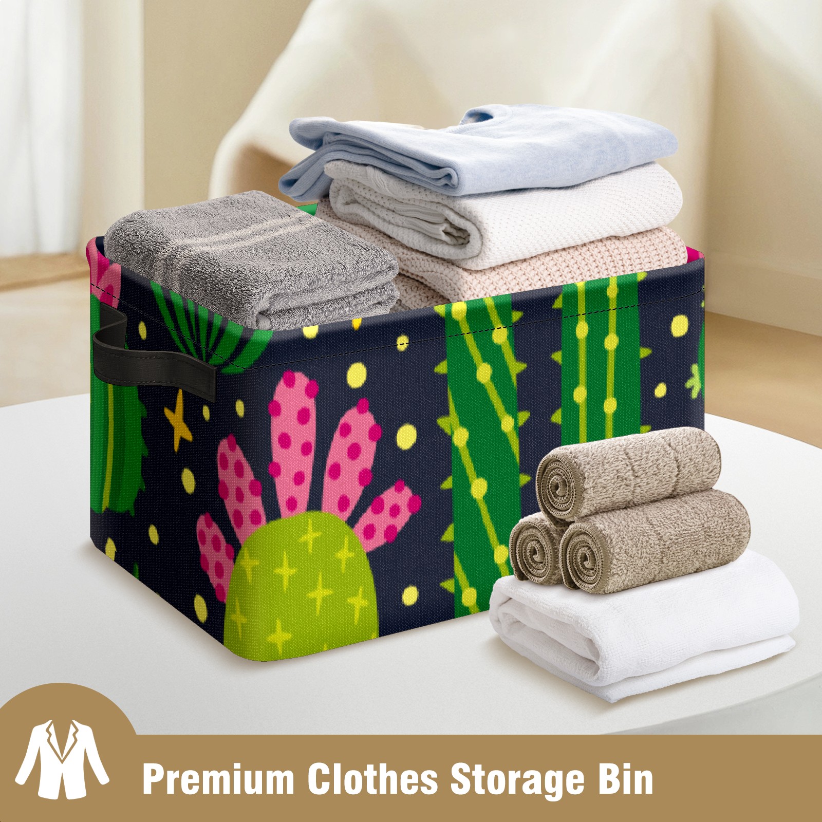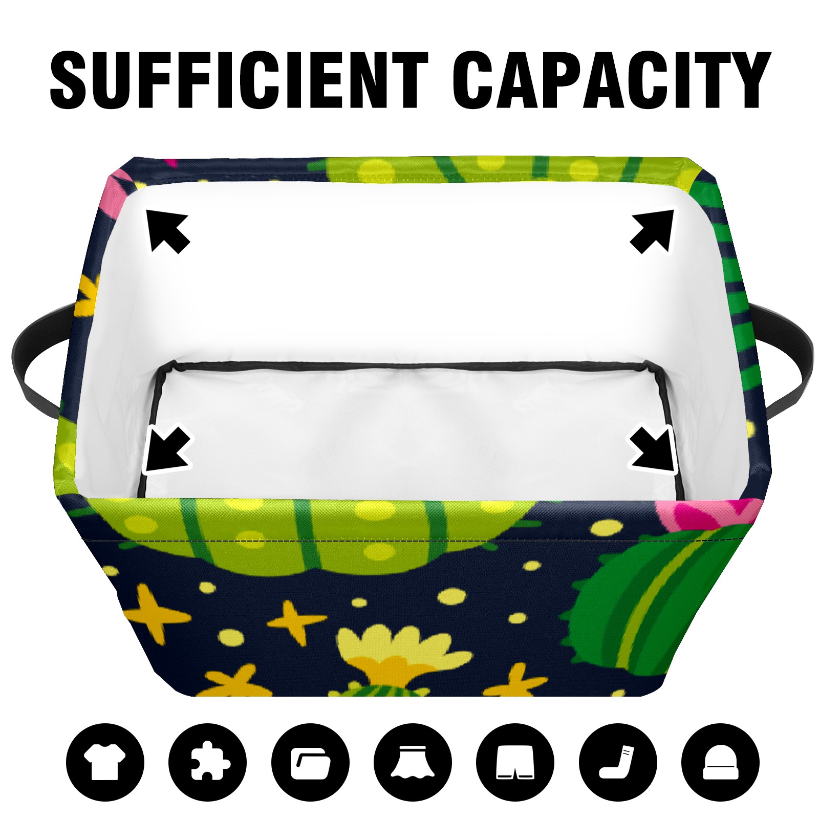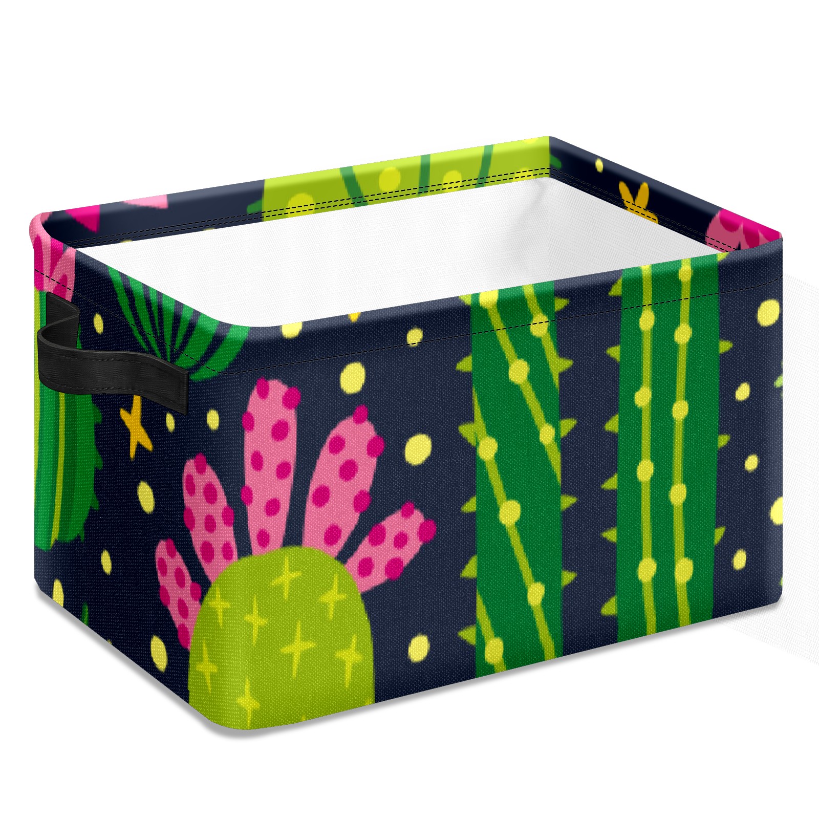Collapsible 600D Oxford Storage Basket with Cartoon Cute Cactus - Metal Frame 10"x14"x8" Reinforced Handles, Multi-Purpose Organizer