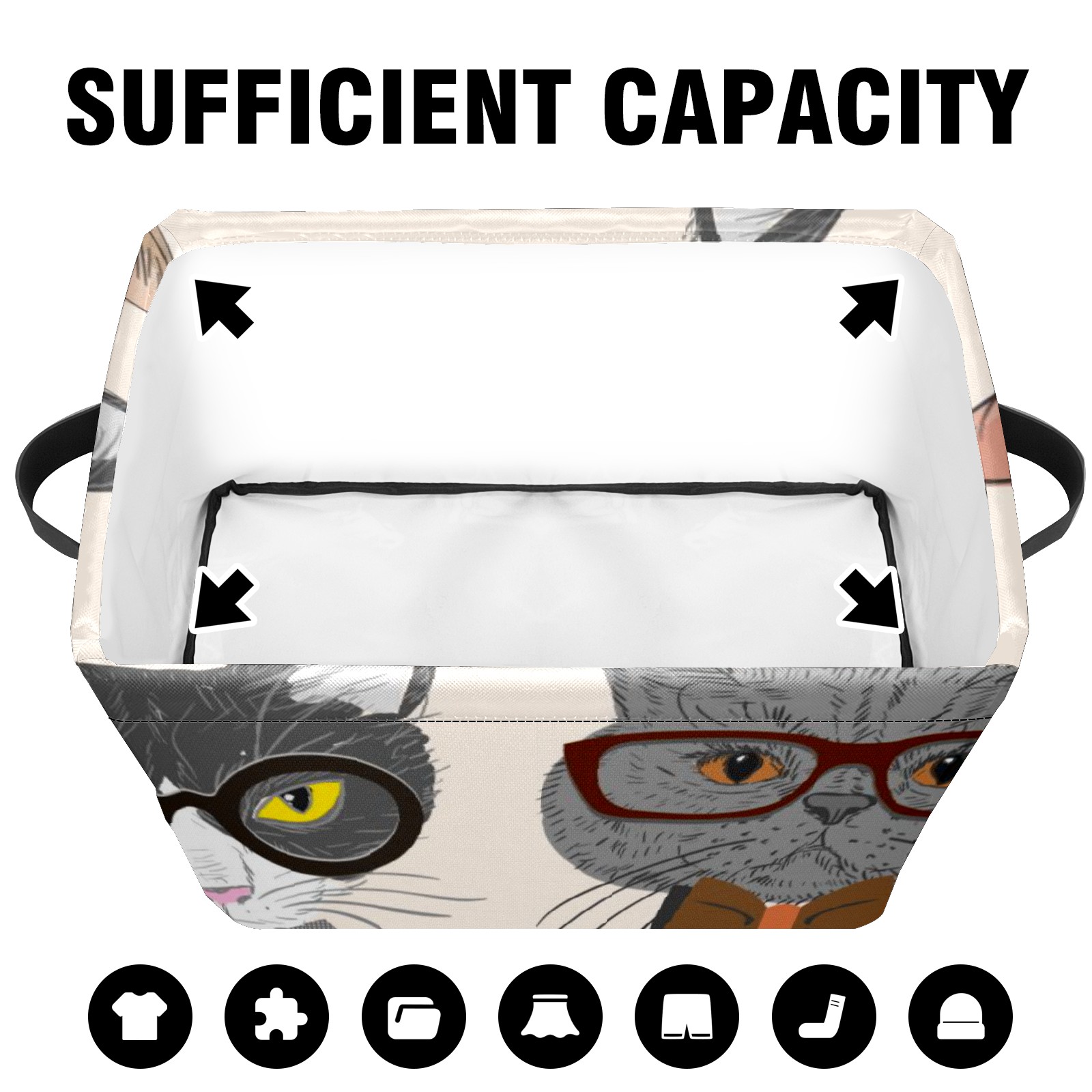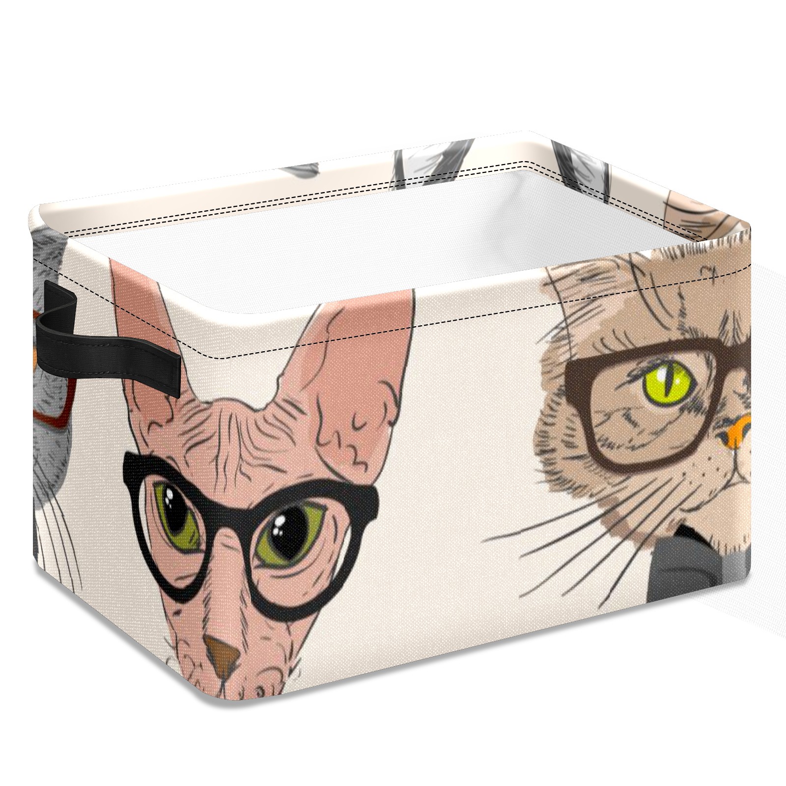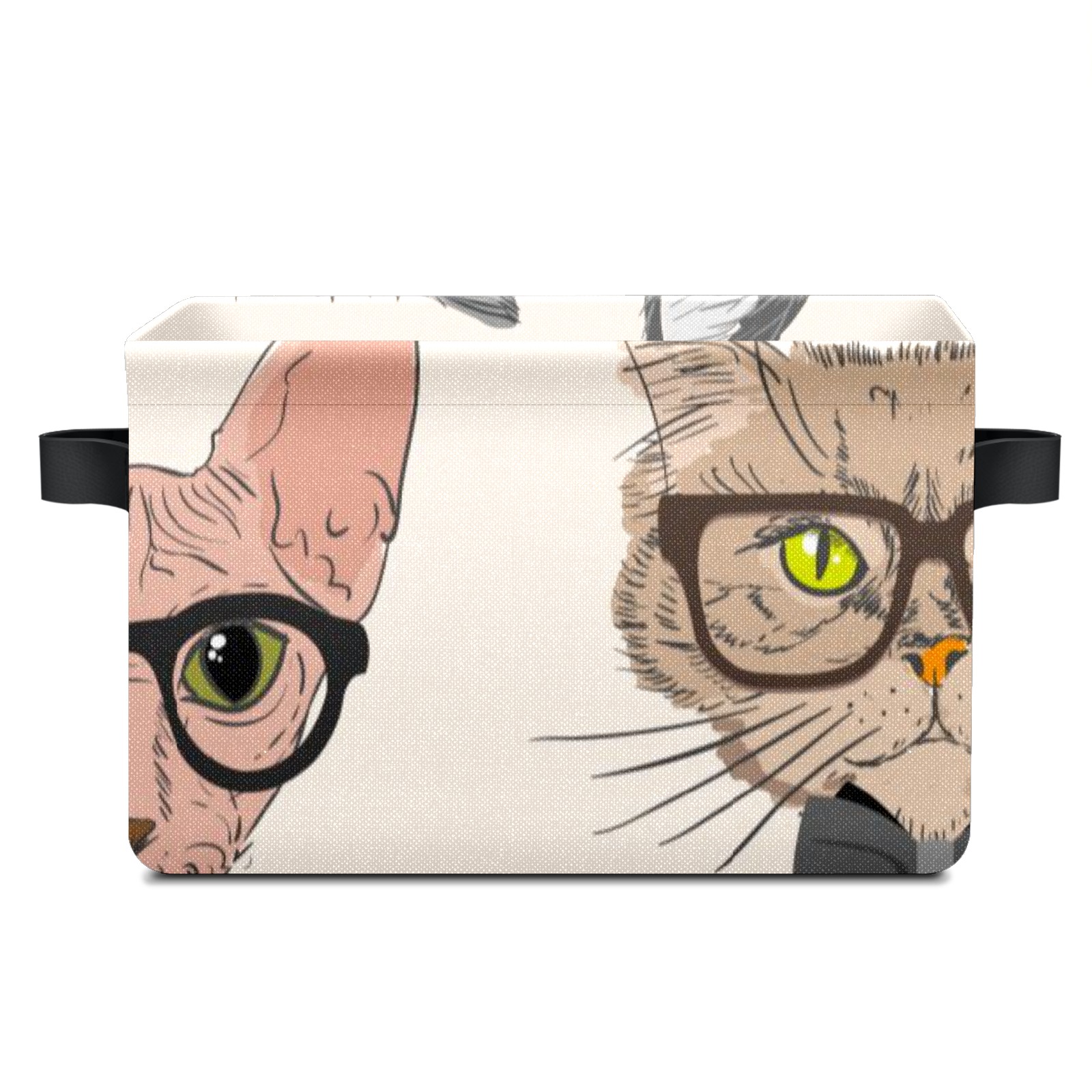 Collapsible 600D Oxford Storage Basket with Cartoon Cats - Metal Frame 10"x14"x8" Reinforced Handles, Multi-Purpose Organizer