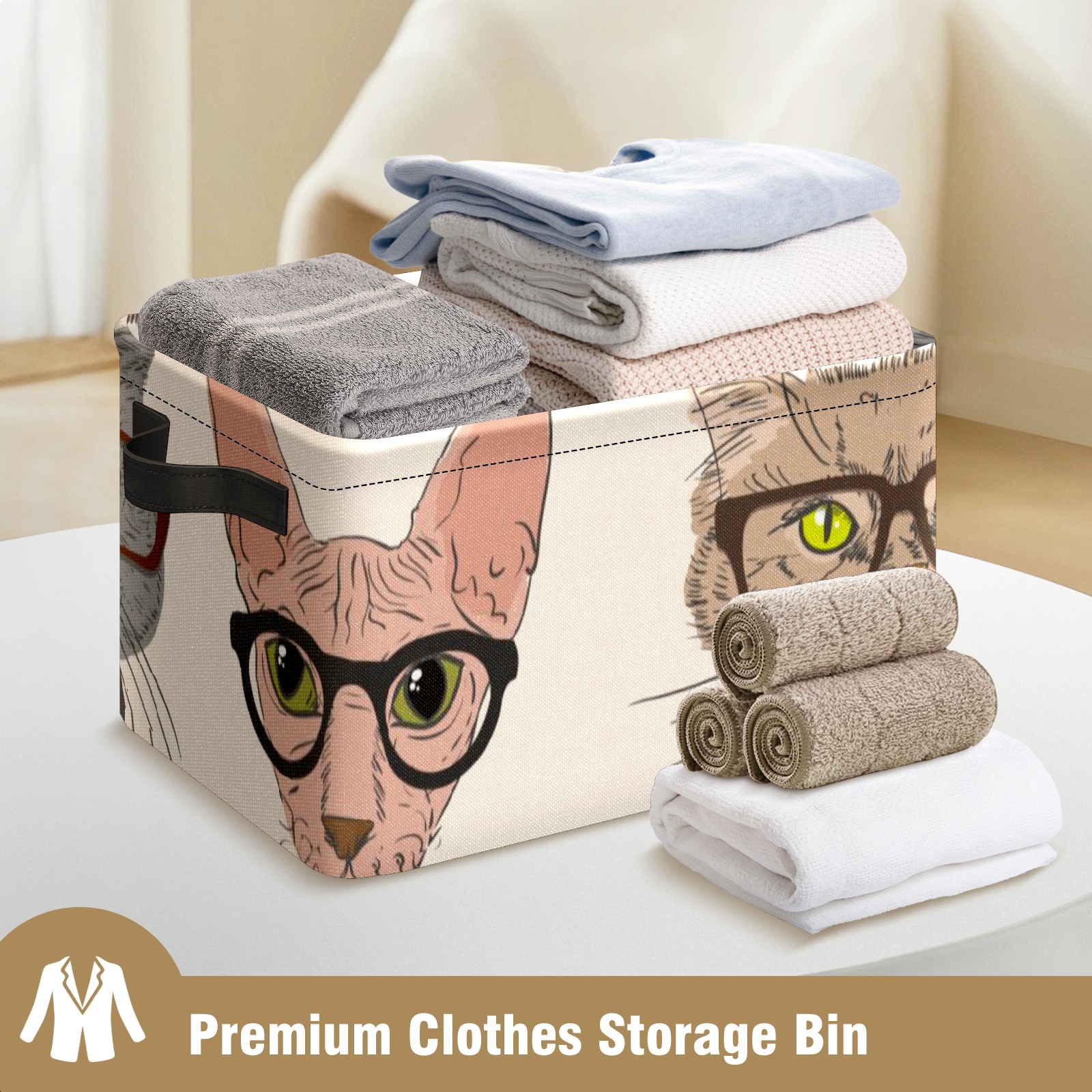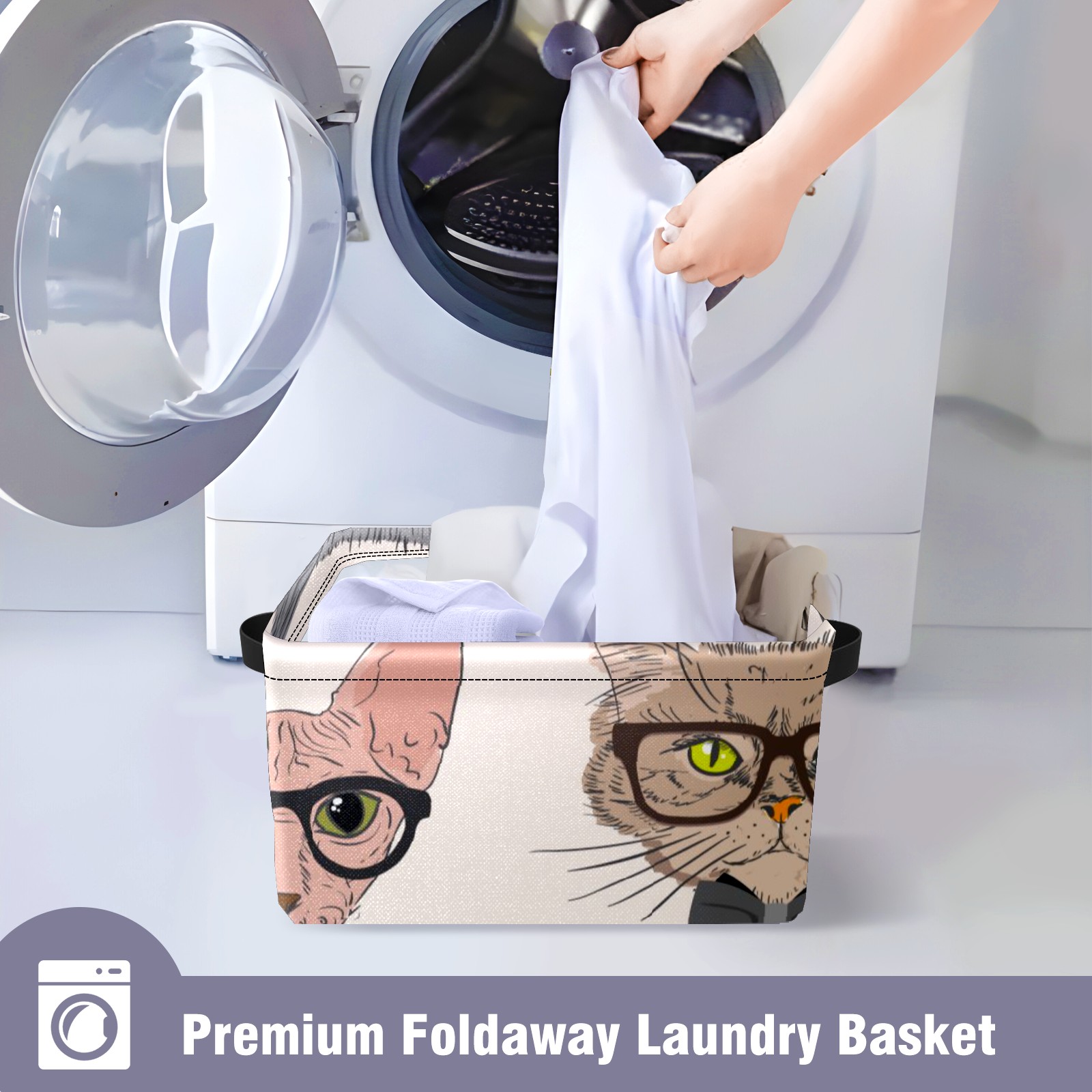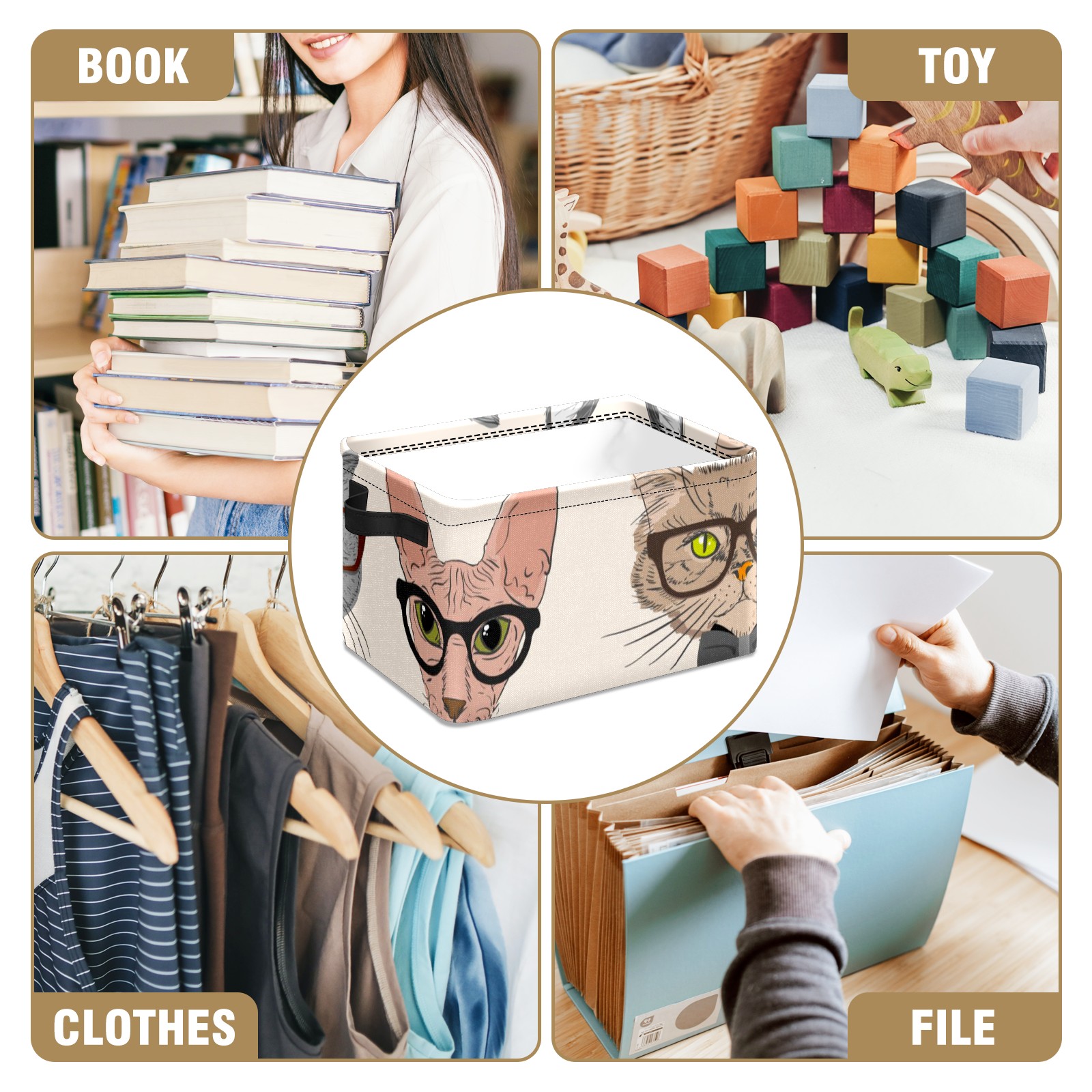 Collapsible 600D Oxford Storage Basket with Cartoon Cats - Metal Frame 10"x14"x8" Reinforced Handles, Multi-Purpose Organizer