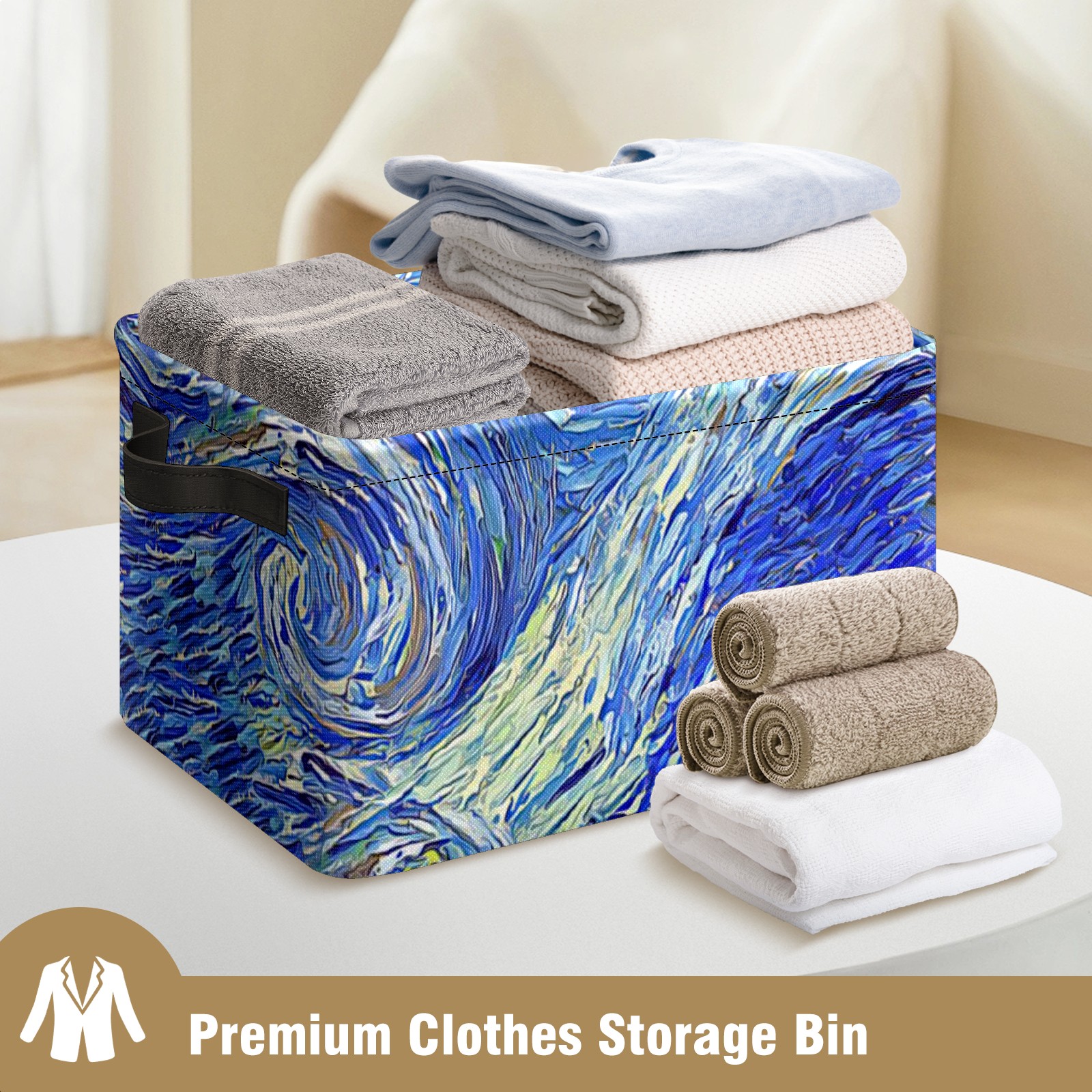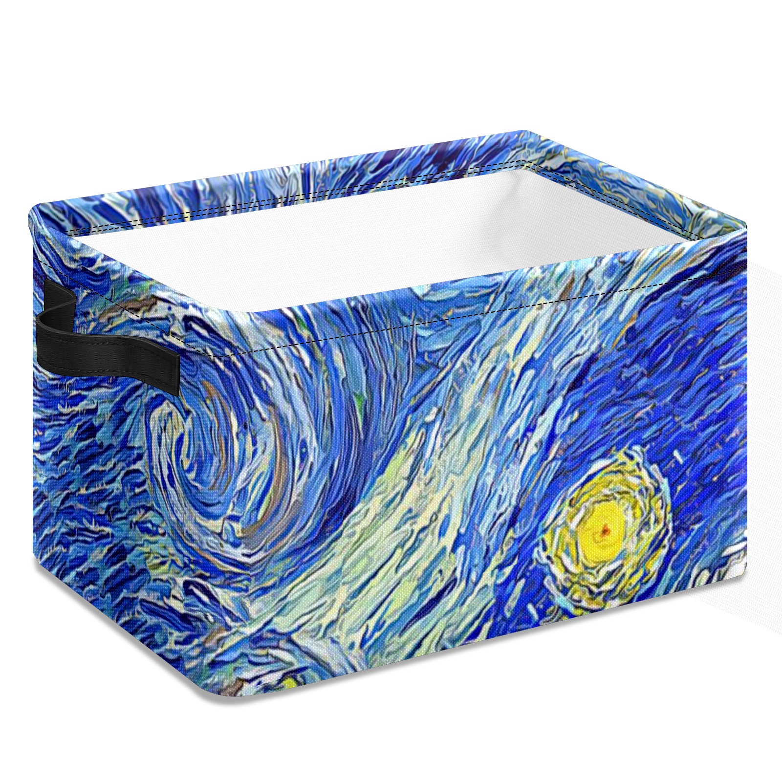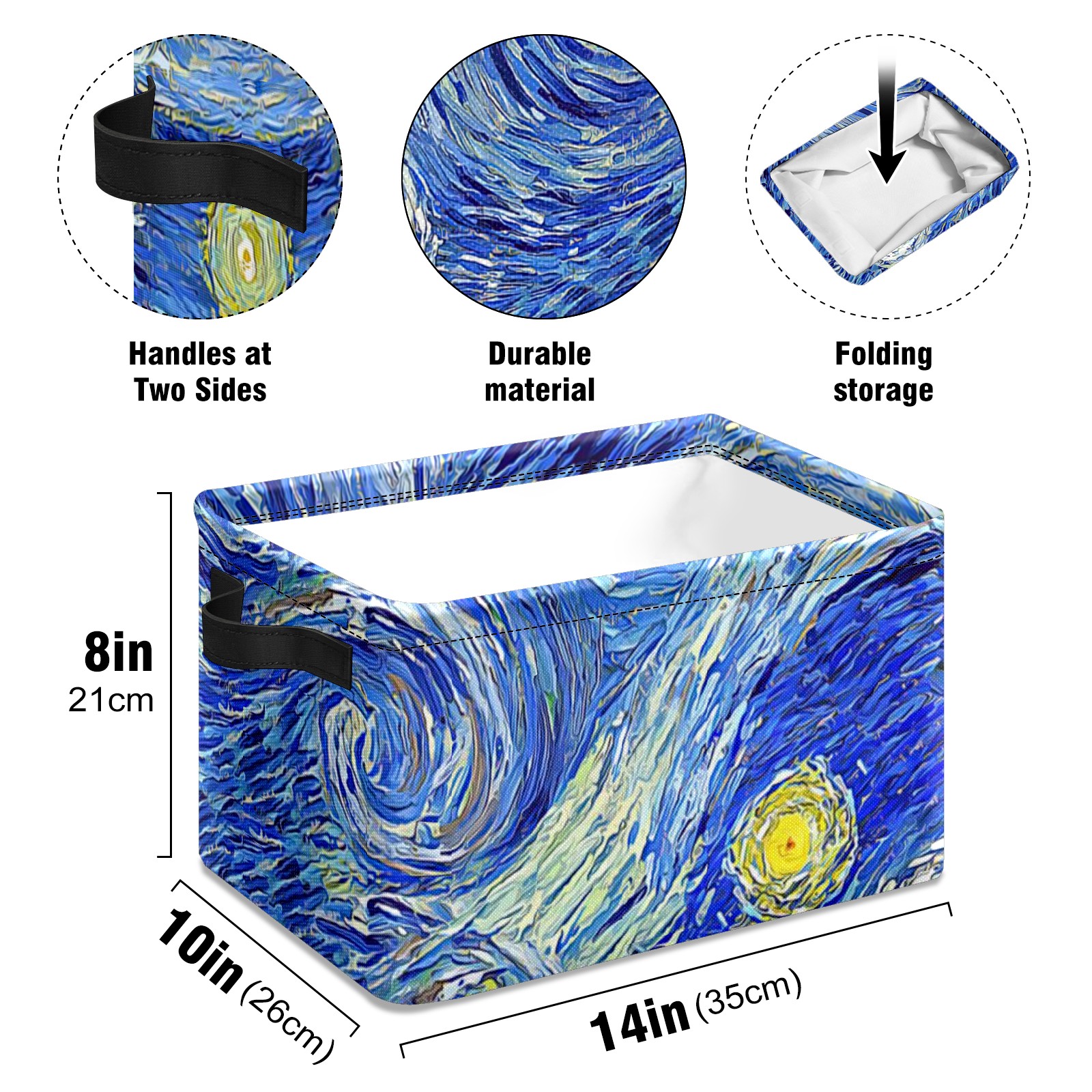 Collapsible 600D Oxford Storage Basket with Oil Painting Retro Art Starry Night - Metal Frame 10"x14"x8" Reinforced Handles, Multi-Purpose Organizer