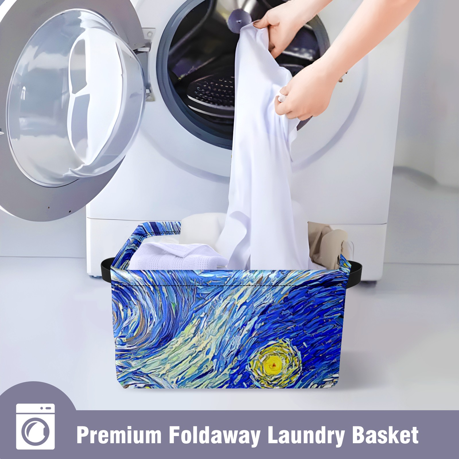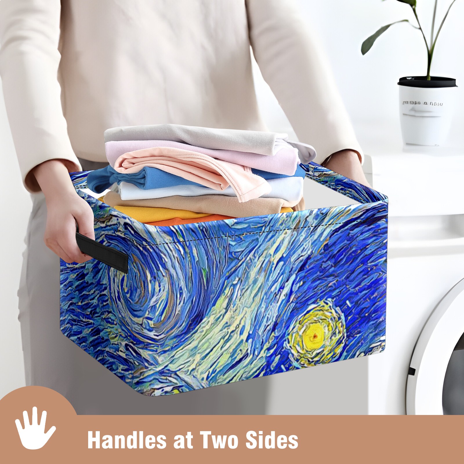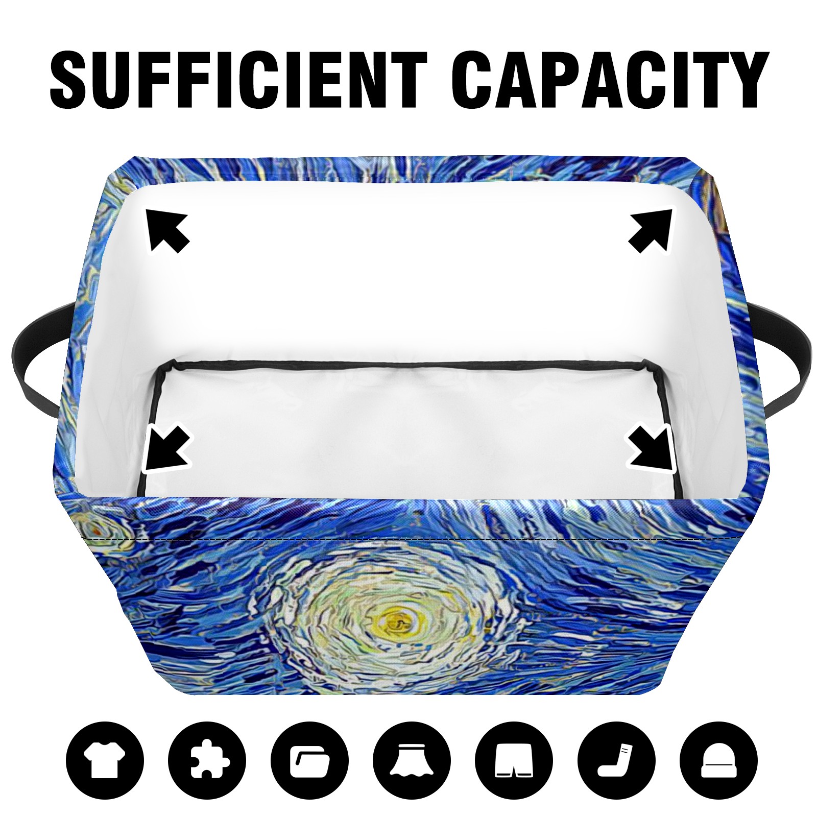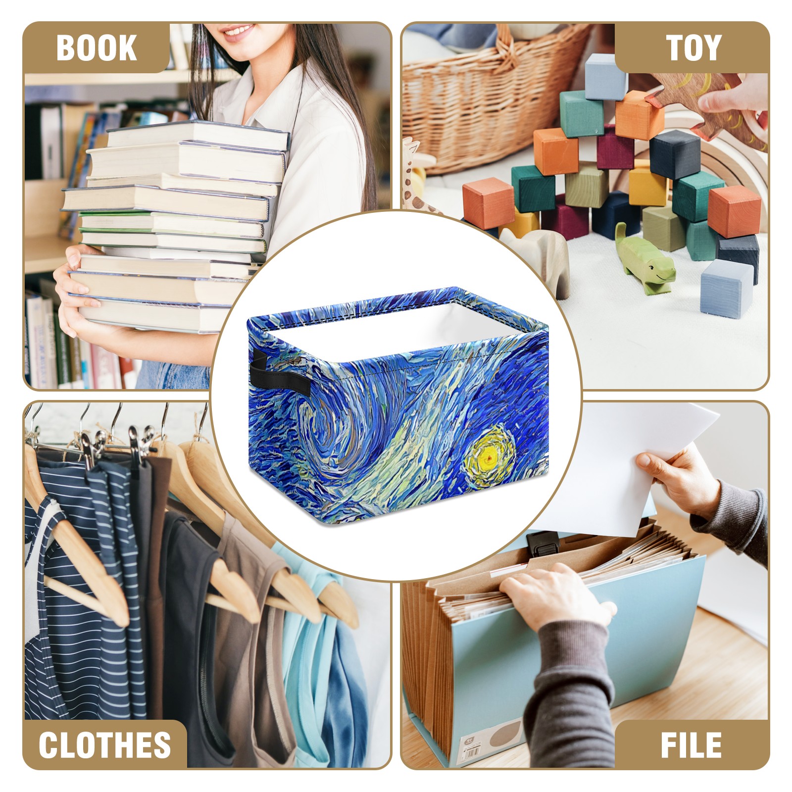 Collapsible 600D Oxford Storage Basket with Oil Painting Retro Art Starry Night - Metal Frame 10"x14"x8" Reinforced Handles, Multi-Purpose Organizer