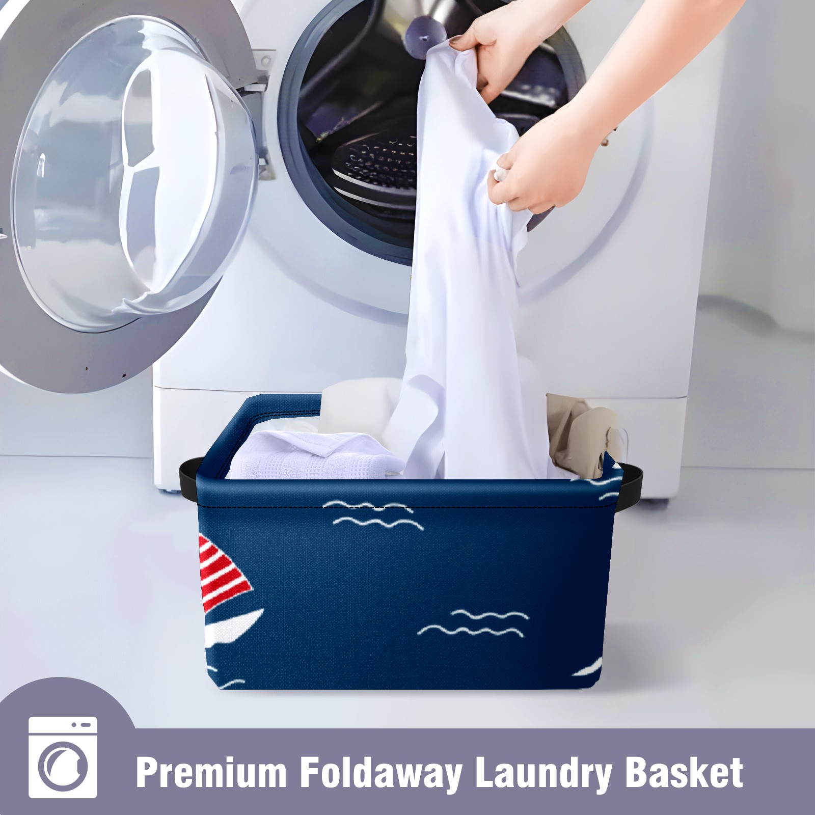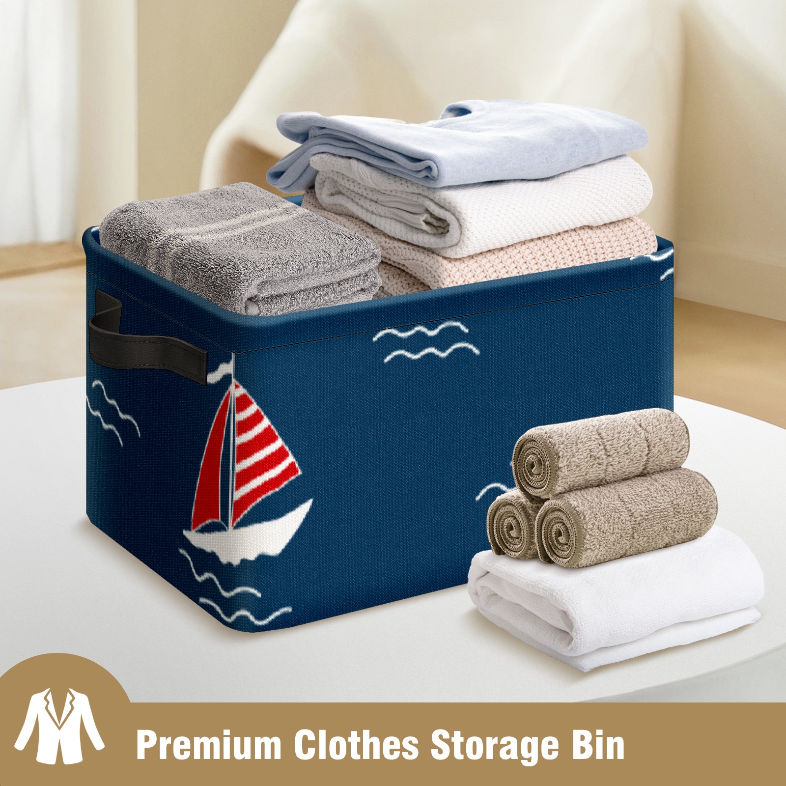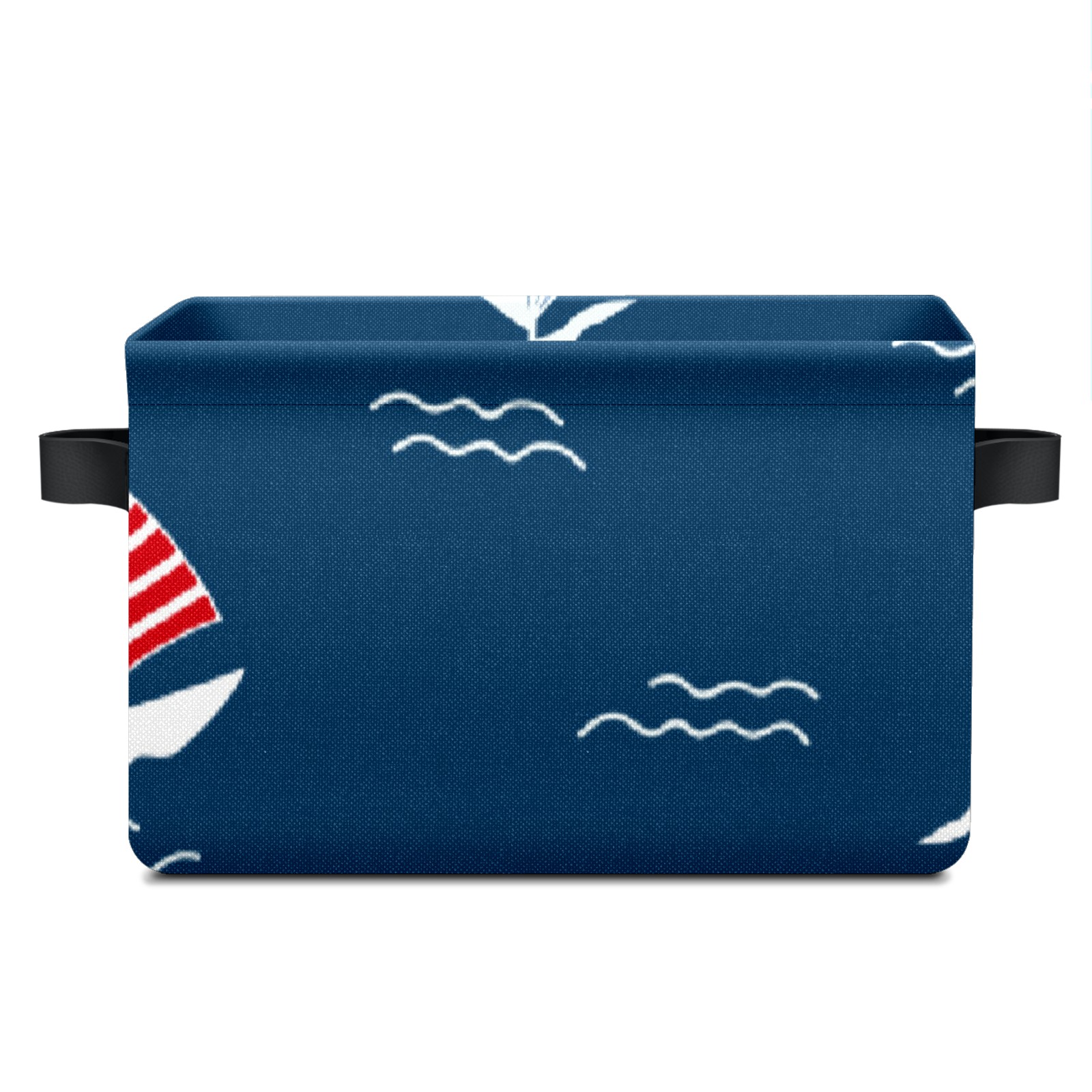 Collapsible 600D Oxford Storage Basket with Nautical Ocean Sea Sail Boat Pattern - Metal Frame 10"x14"x8" Reinforced Handles, Multi-Purpose Organizer