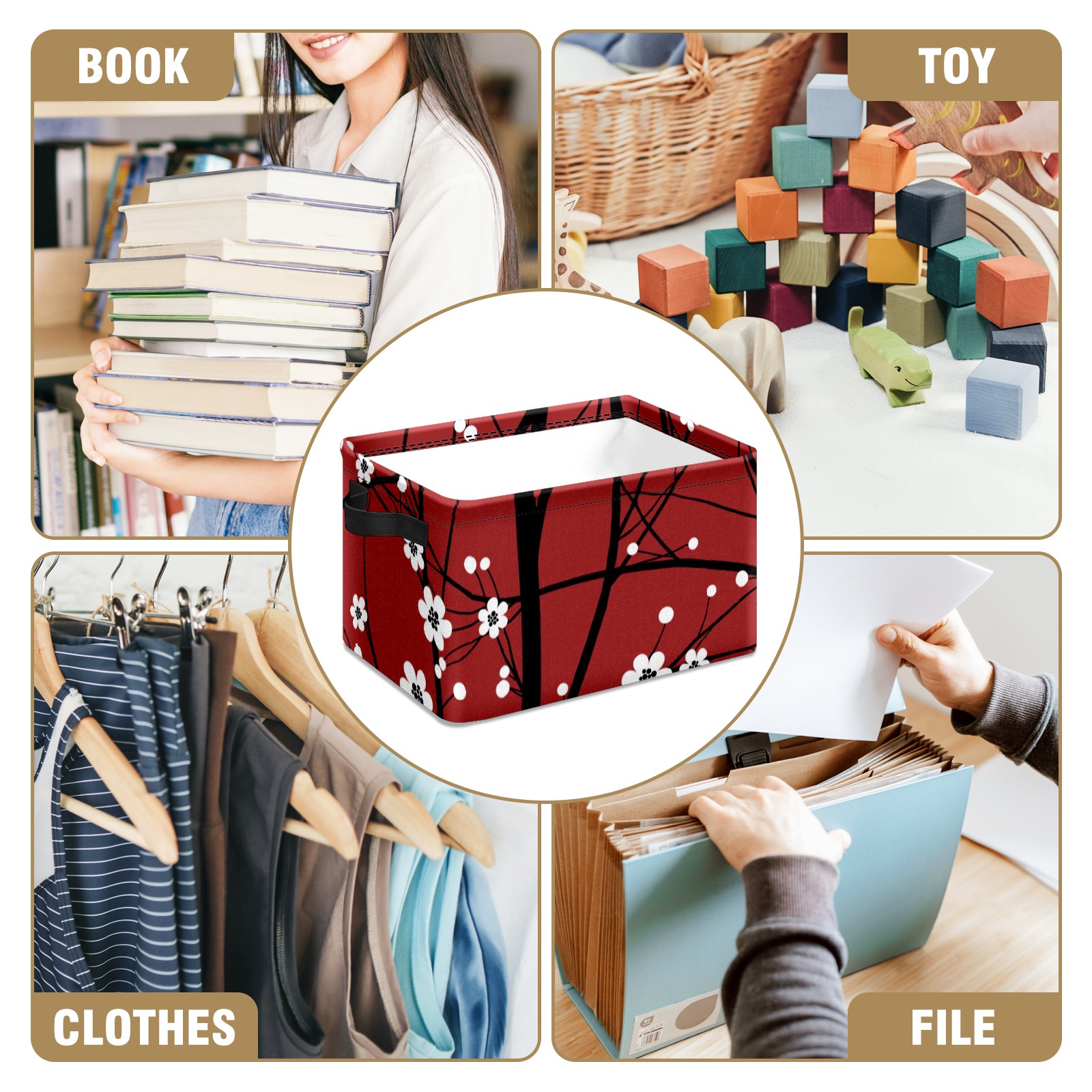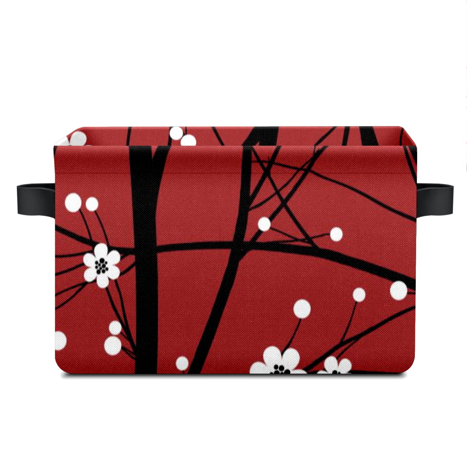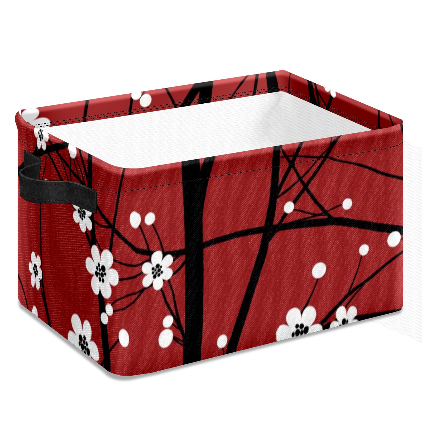 Collapsible 600D Oxford Storage Basket with Japanese Cherry Blossom Tree Red - Metal Frame 10"x14"x8" Reinforced Handles, Multi-Purpose Organizer
