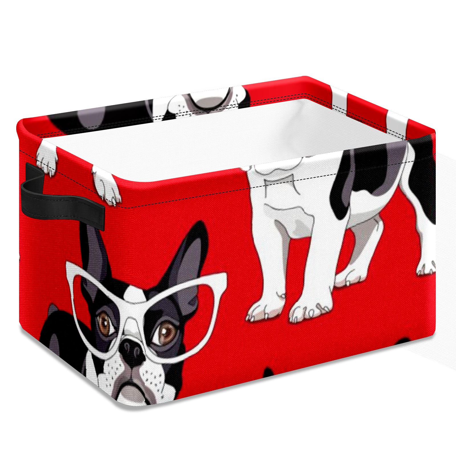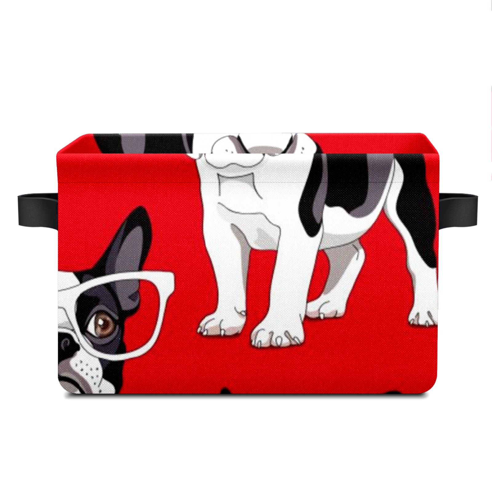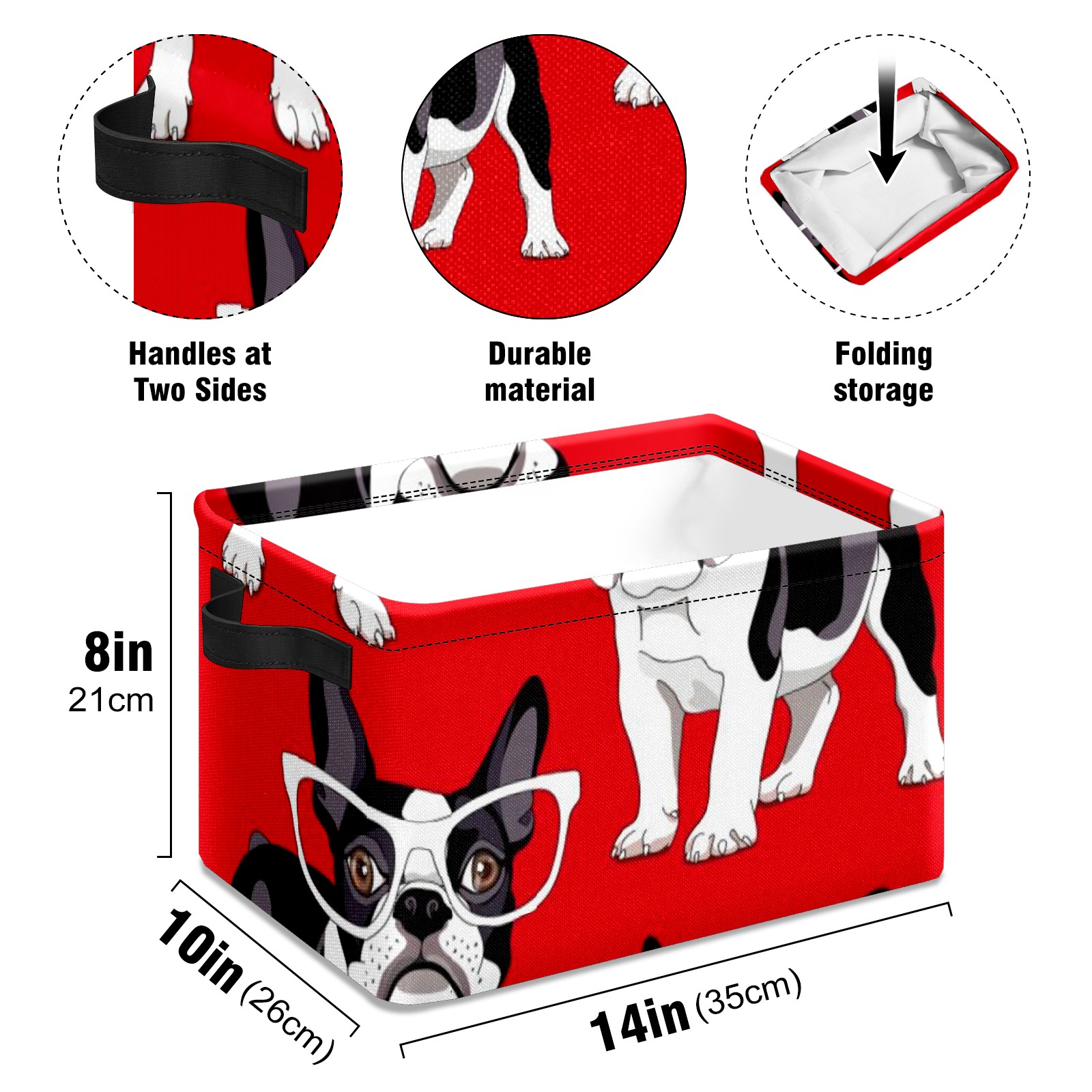 Collapsible 600D Oxford Storage Basket with Funny French Bulldog Glasses - Metal Frame 10"x14"x8" Reinforced Handles, Multi-Purpose Organizer