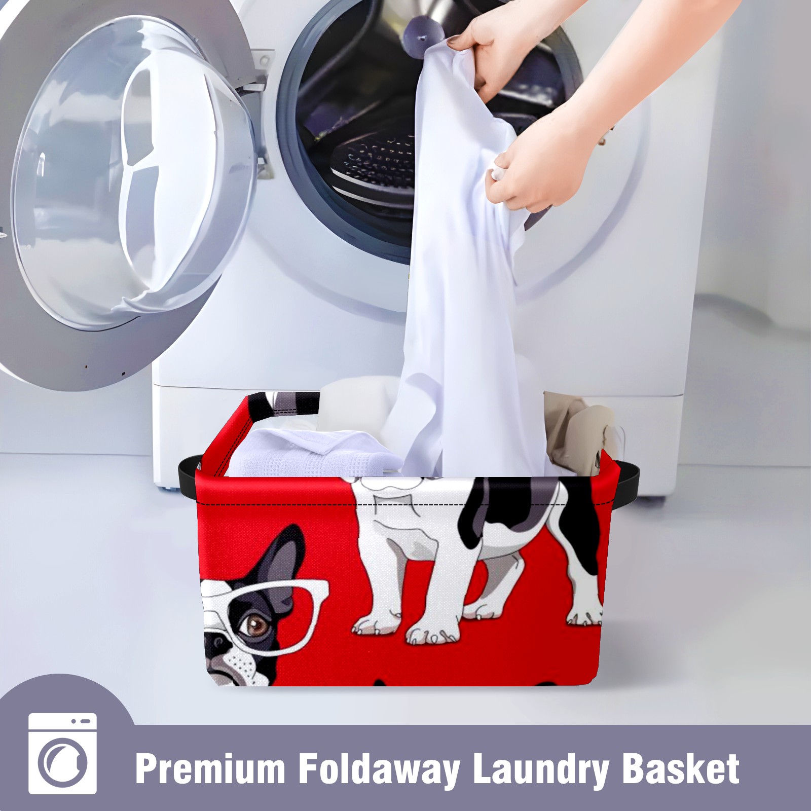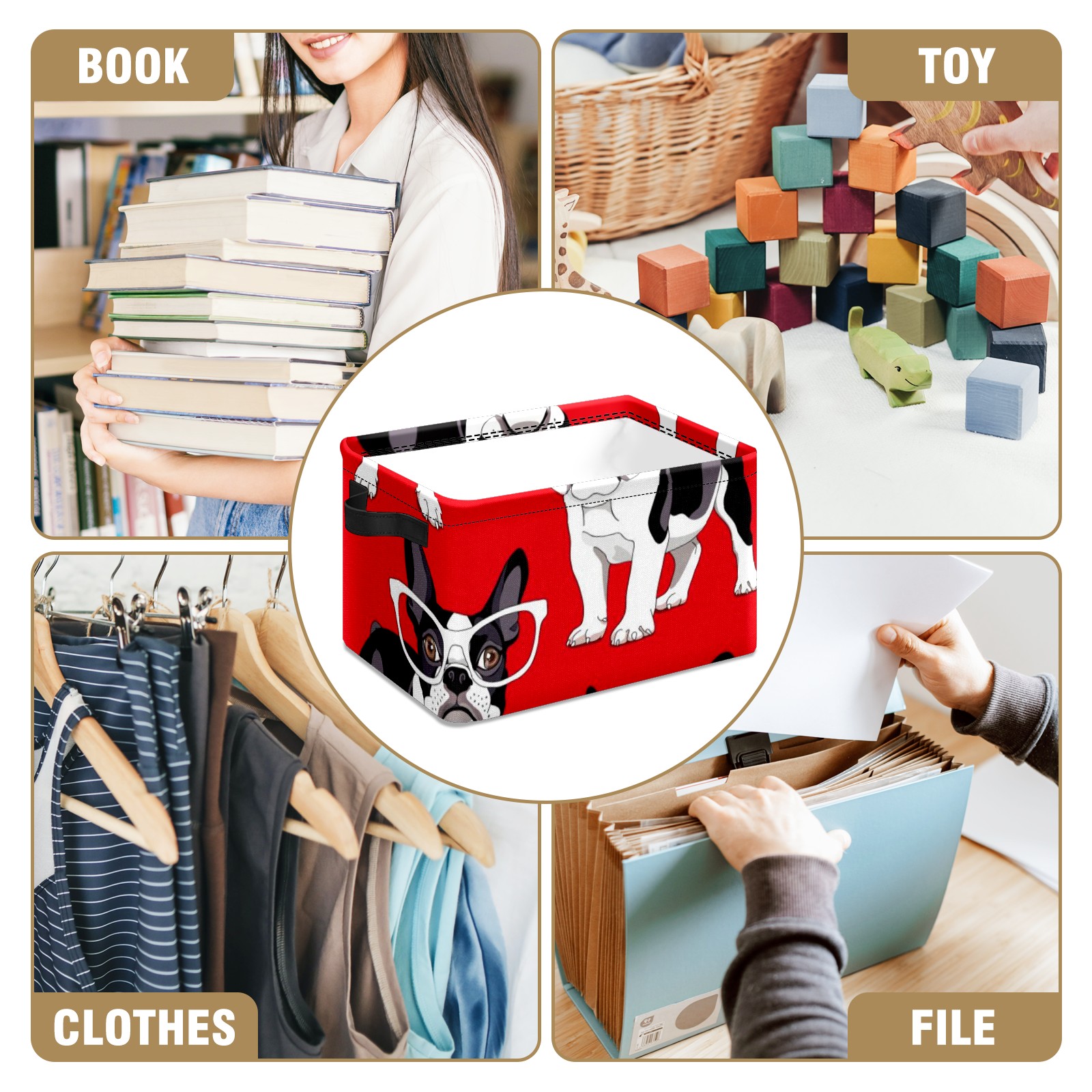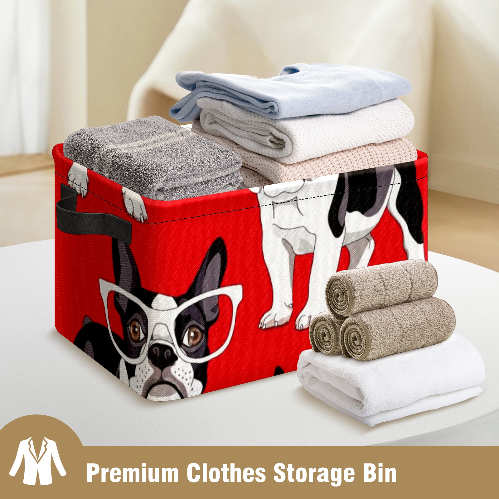 Collapsible 600D Oxford Storage Basket with Funny French Bulldog Glasses - Metal Frame 10"x14"x8" Reinforced Handles, Multi-Purpose Organizer