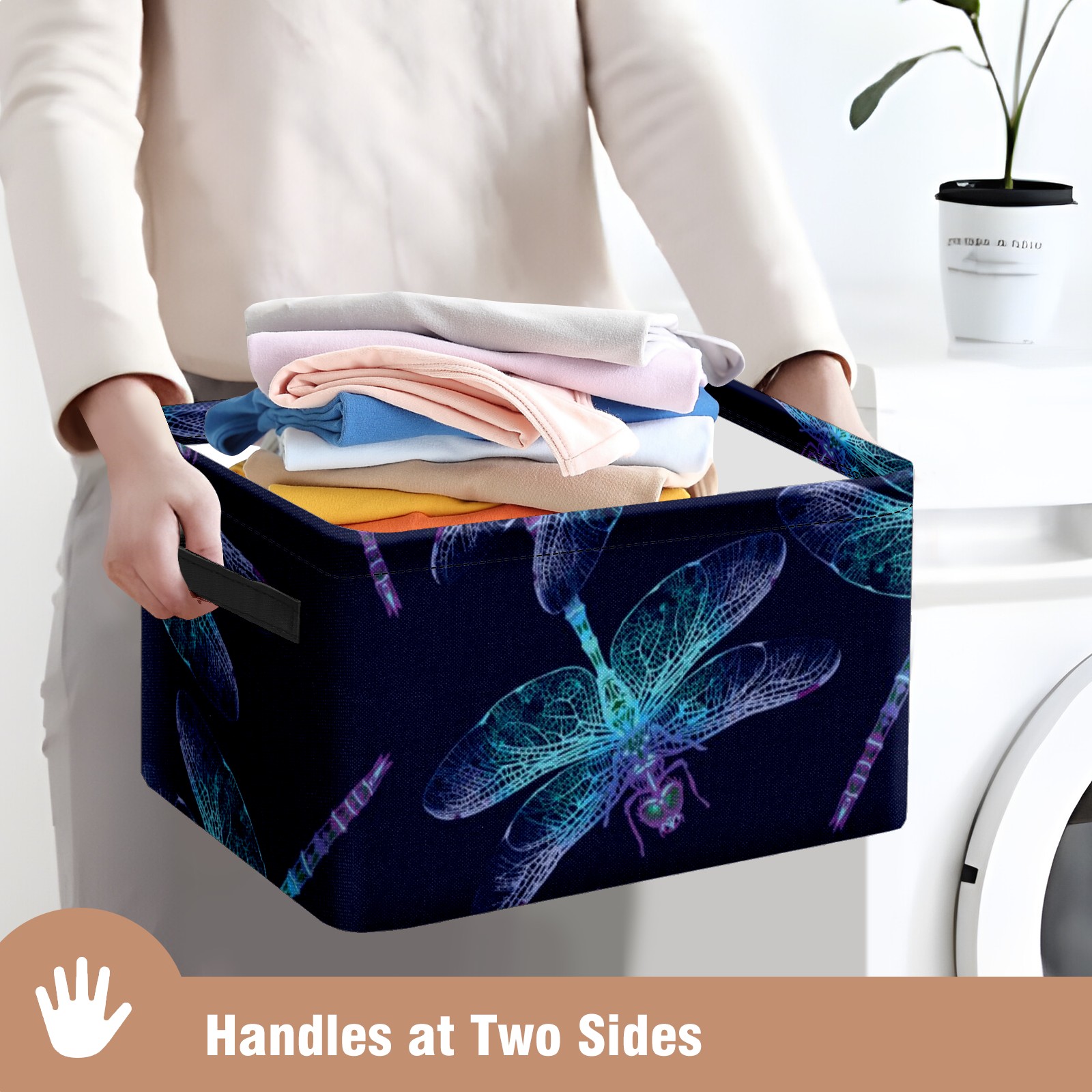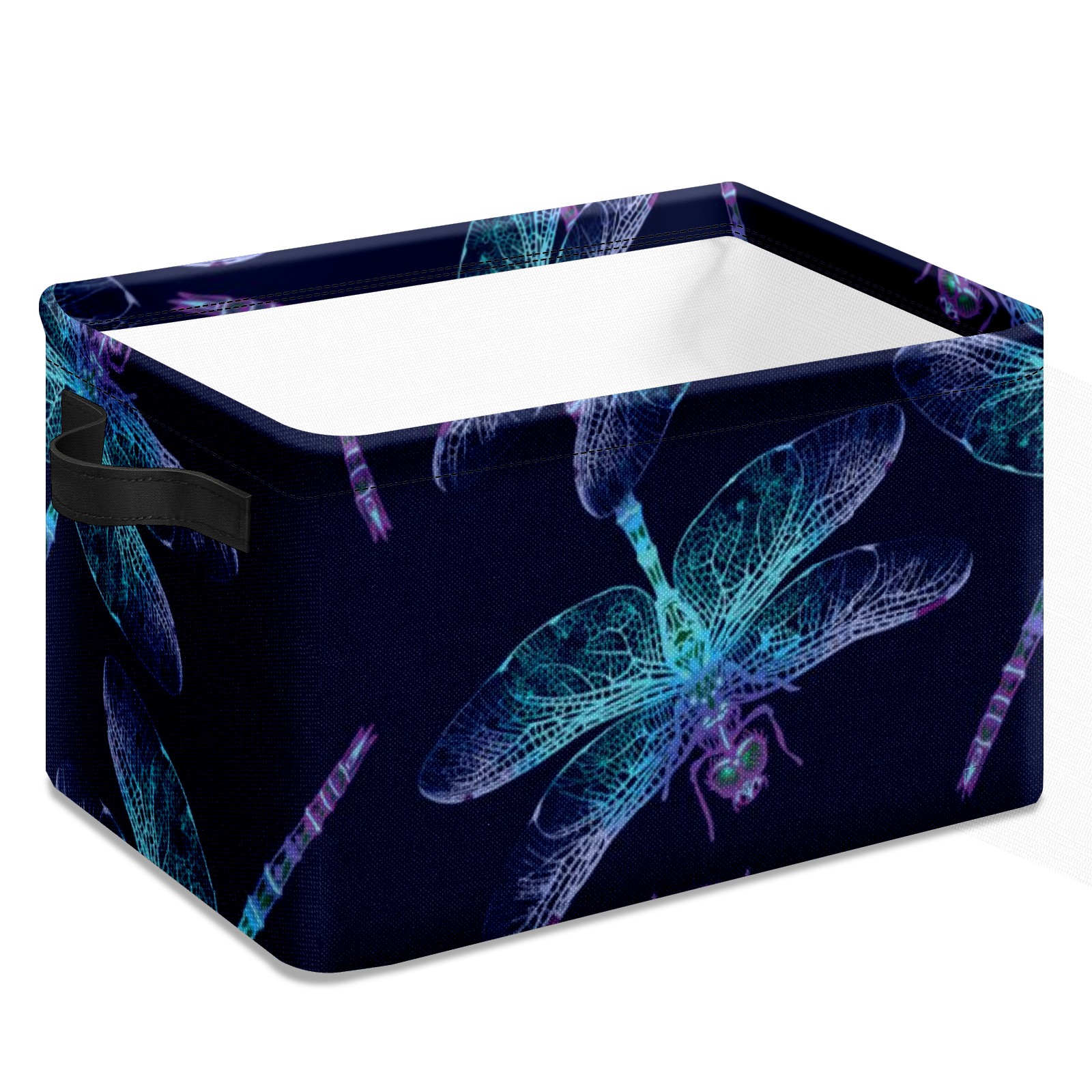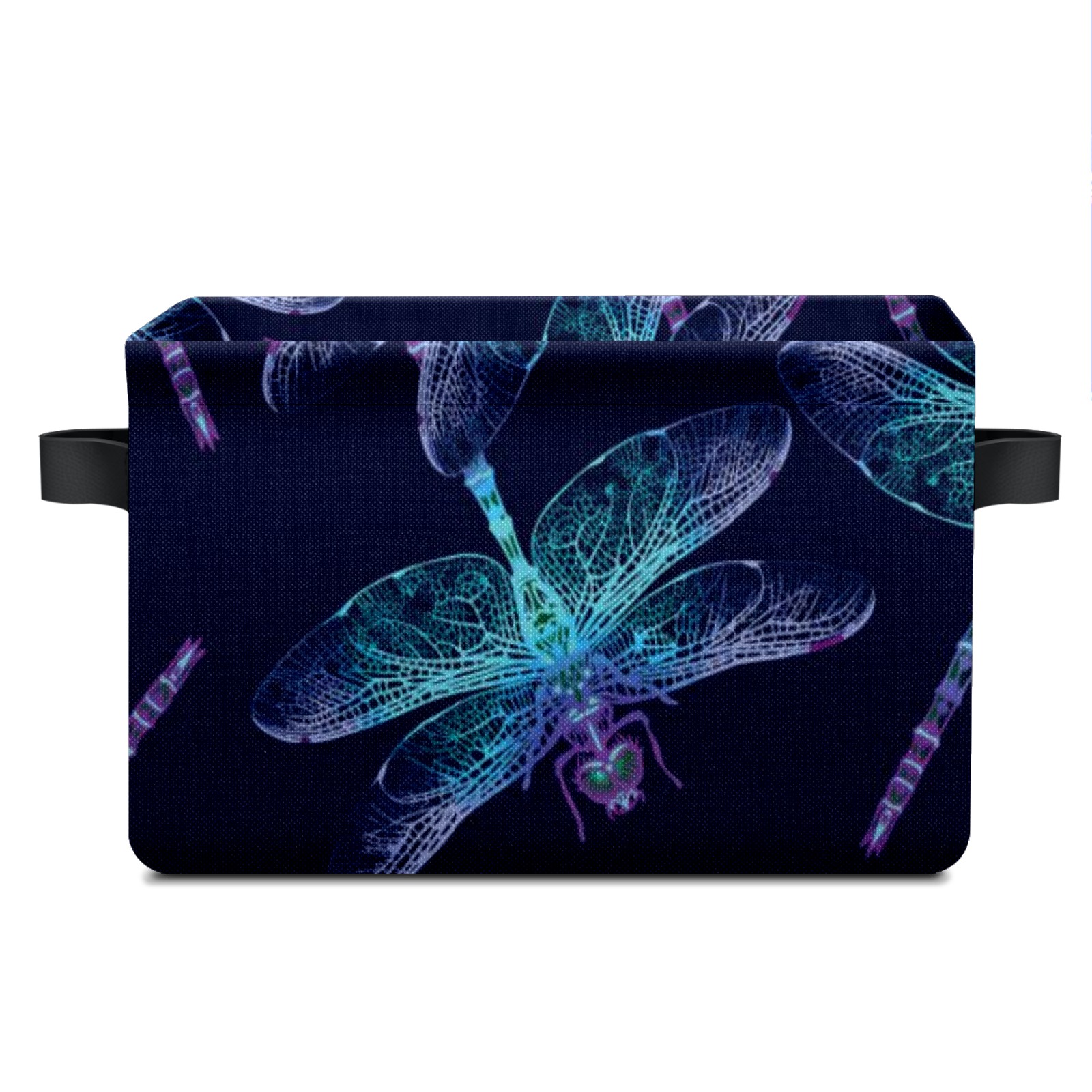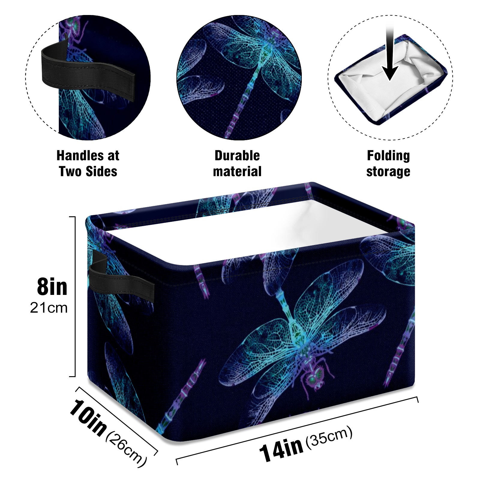 Collapsible 600D Oxford Storage Basket with Dragonflies Pattern - Metal Frame 10"x14"x8" Reinforced Handles, Multi-Purpose Organizer