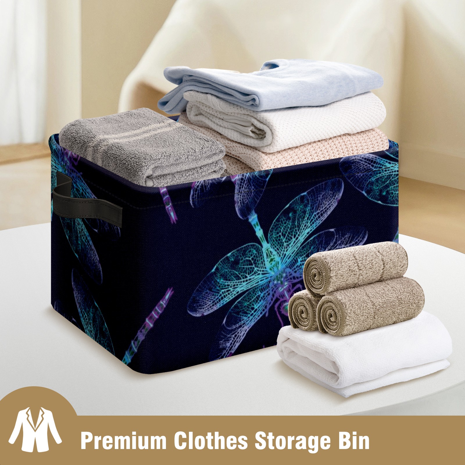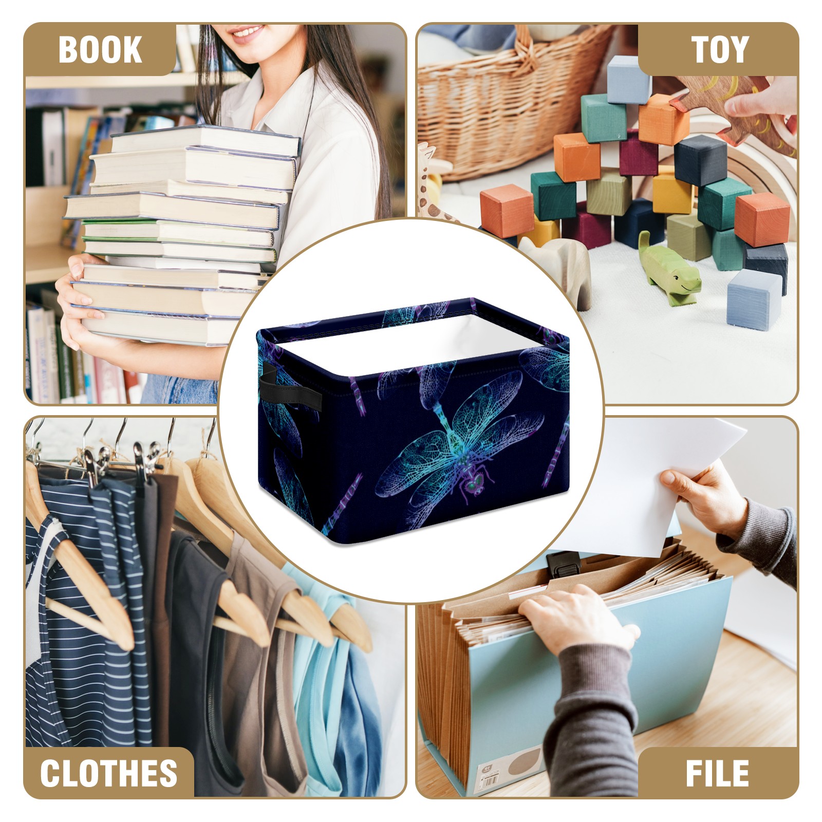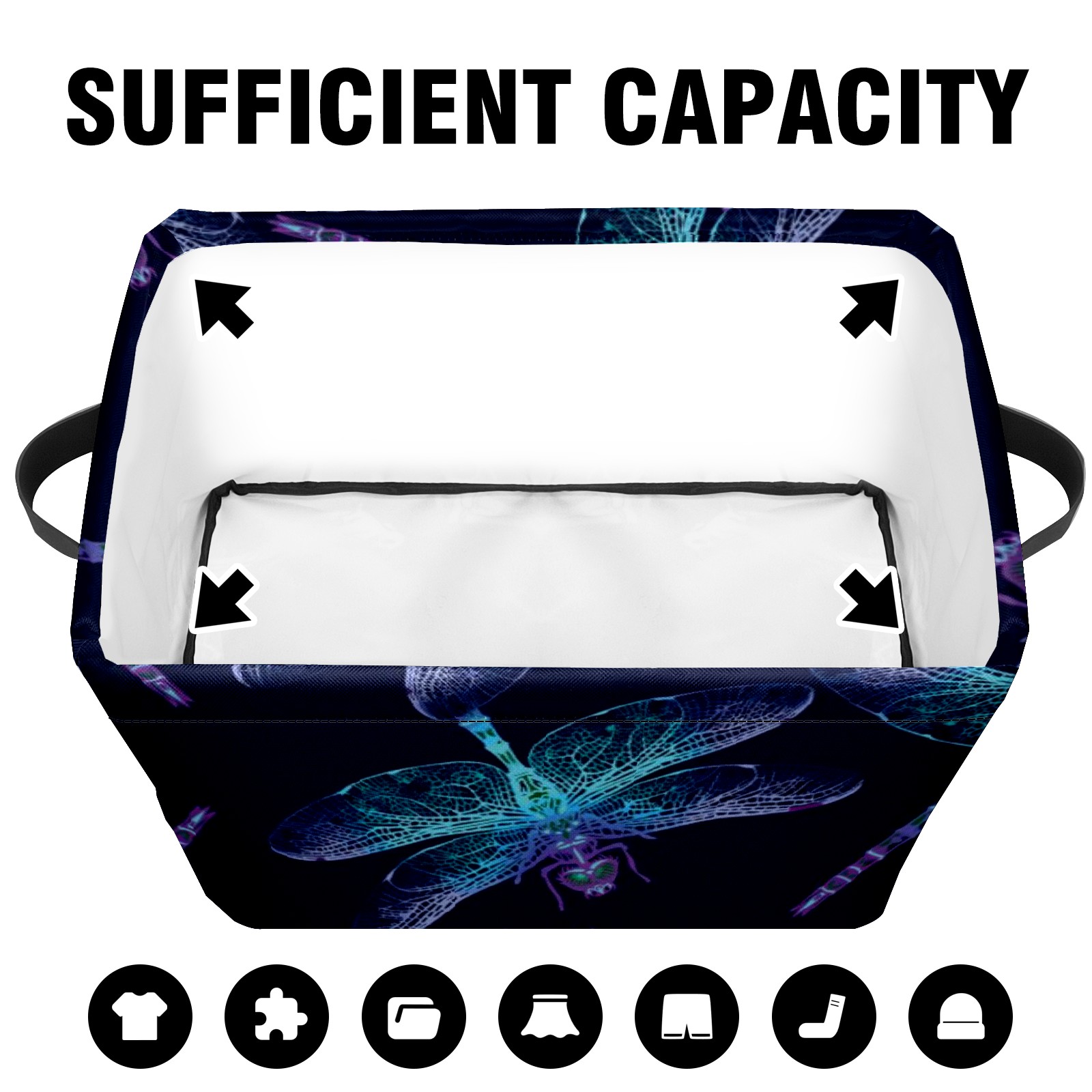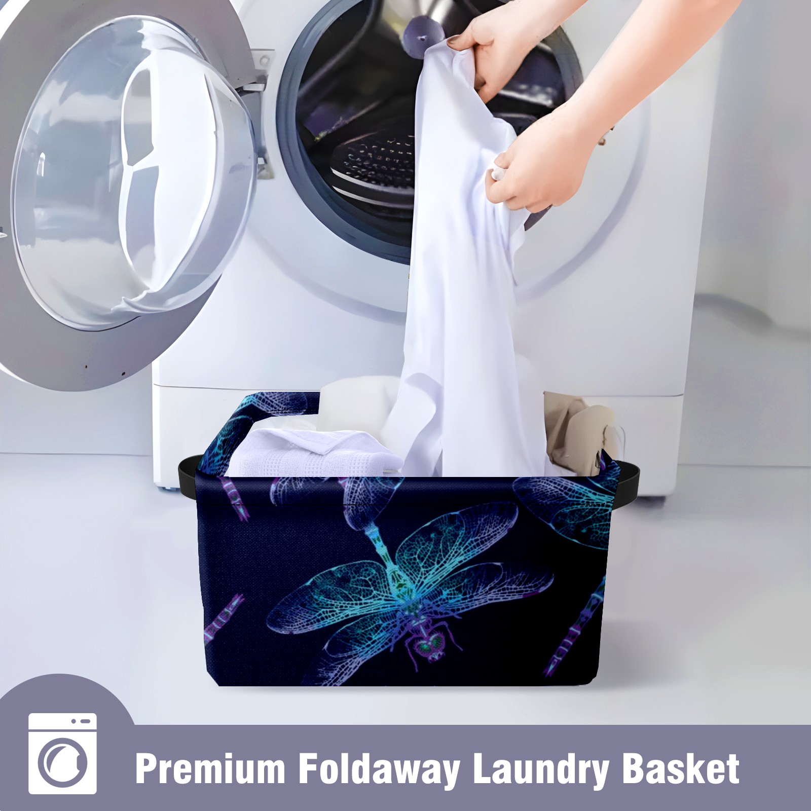 Collapsible 600D Oxford Storage Basket with Dragonflies Pattern - Metal Frame 10"x14"x8" Reinforced Handles, Multi-Purpose Organizer
