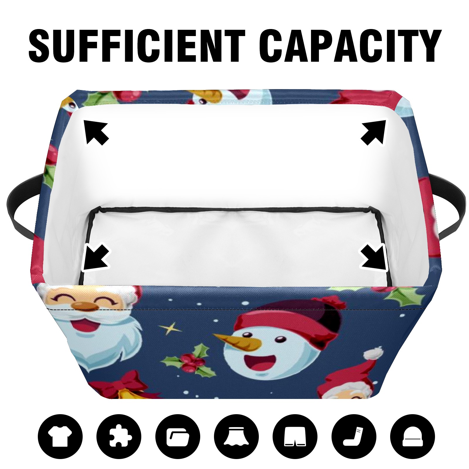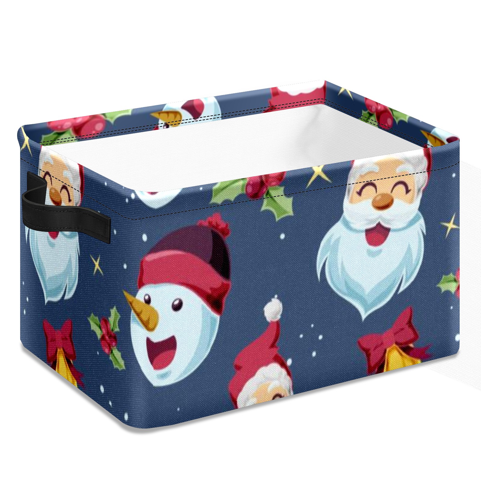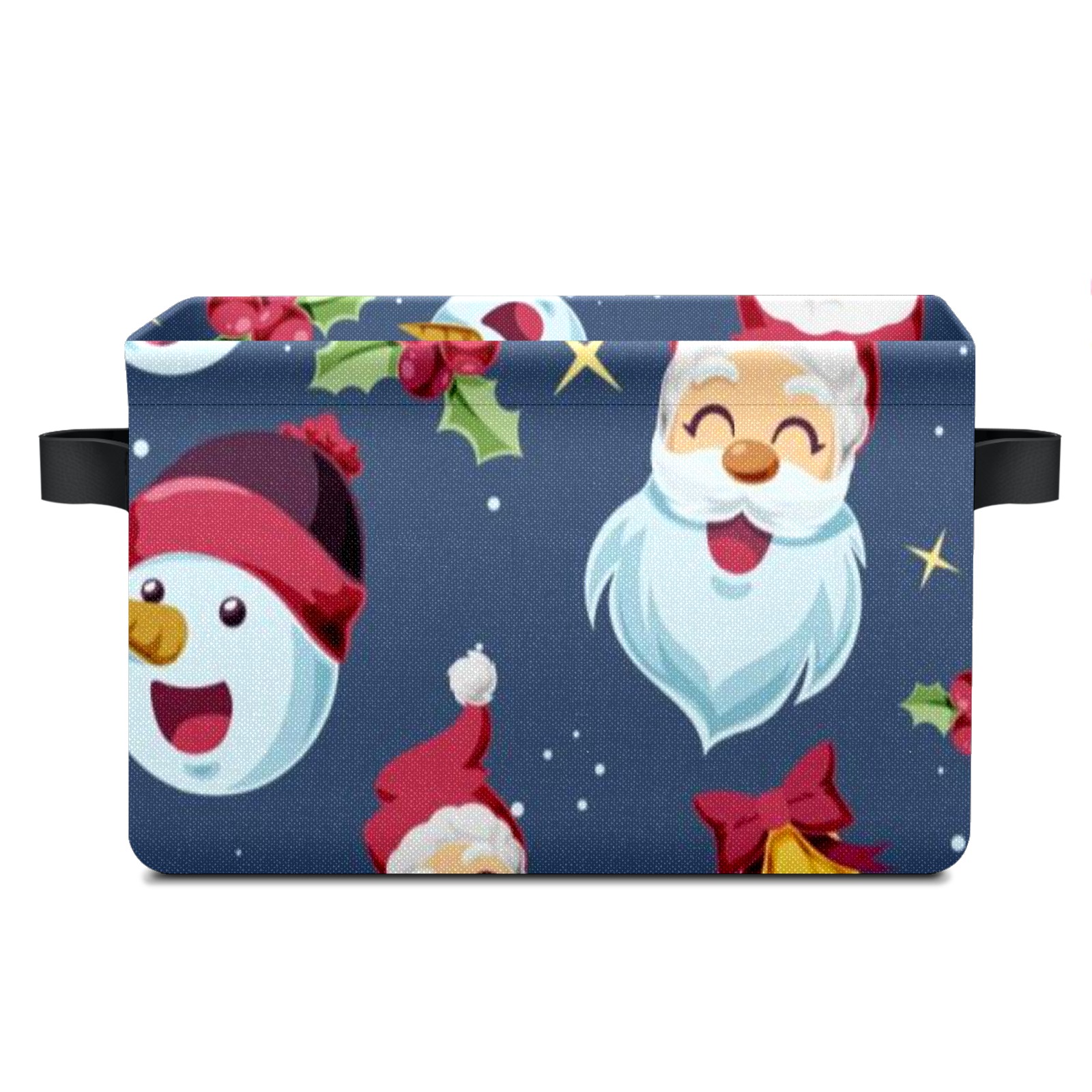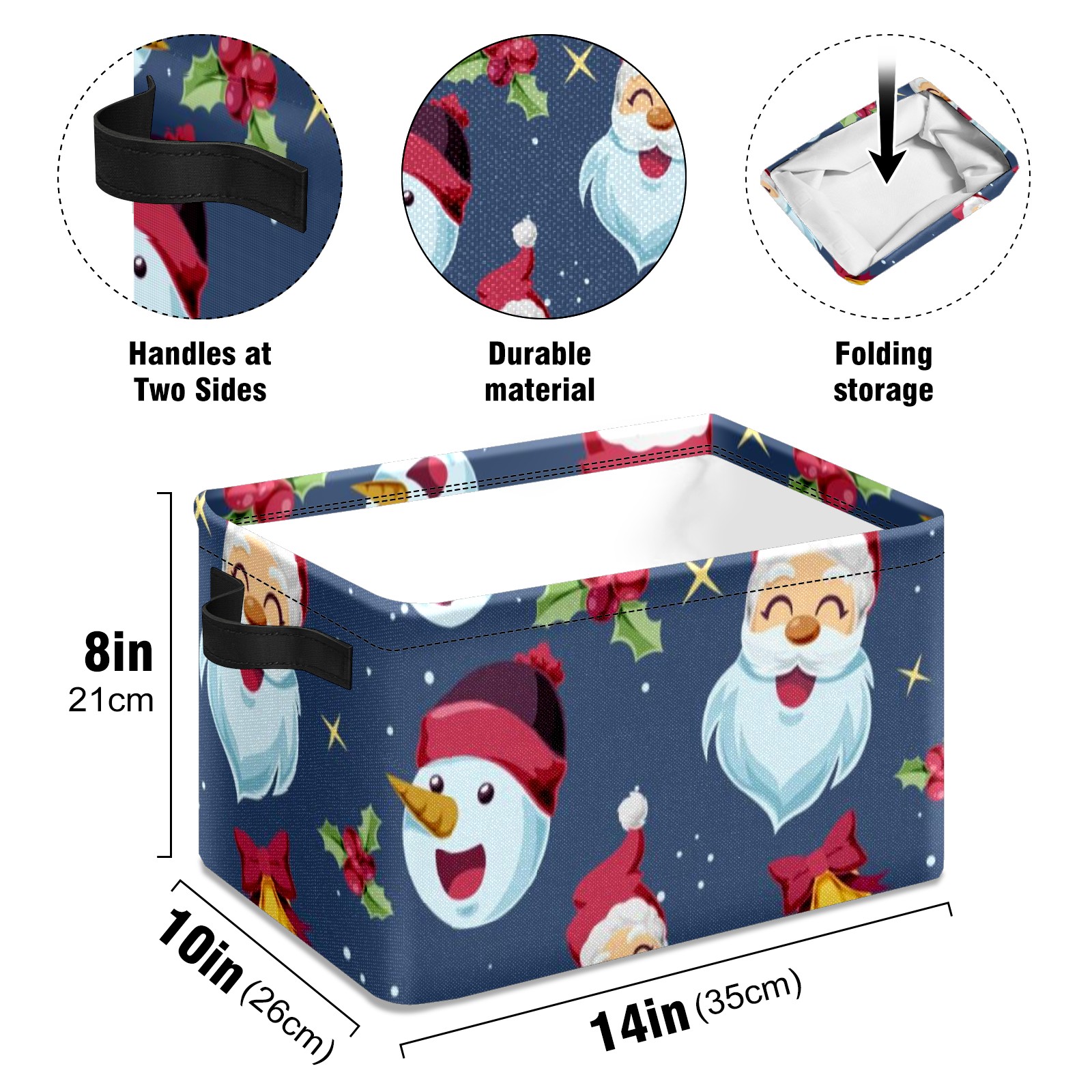 Collapsible 600D Oxford Storage Basket with Santa Claus - Metal Frame 10"x14"x8" Reinforced Handles, Multi-Purpose Organizer