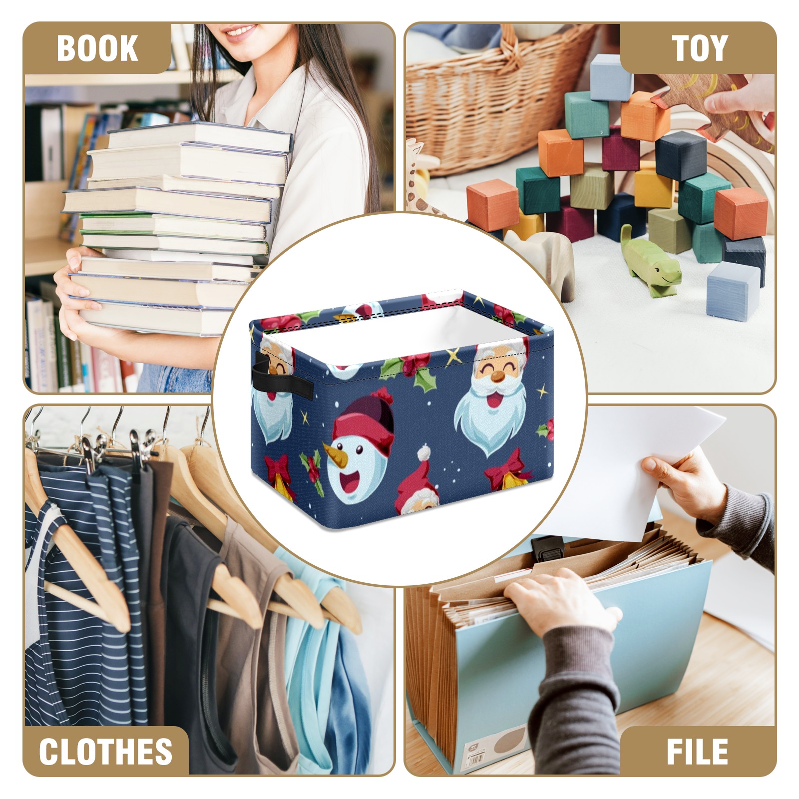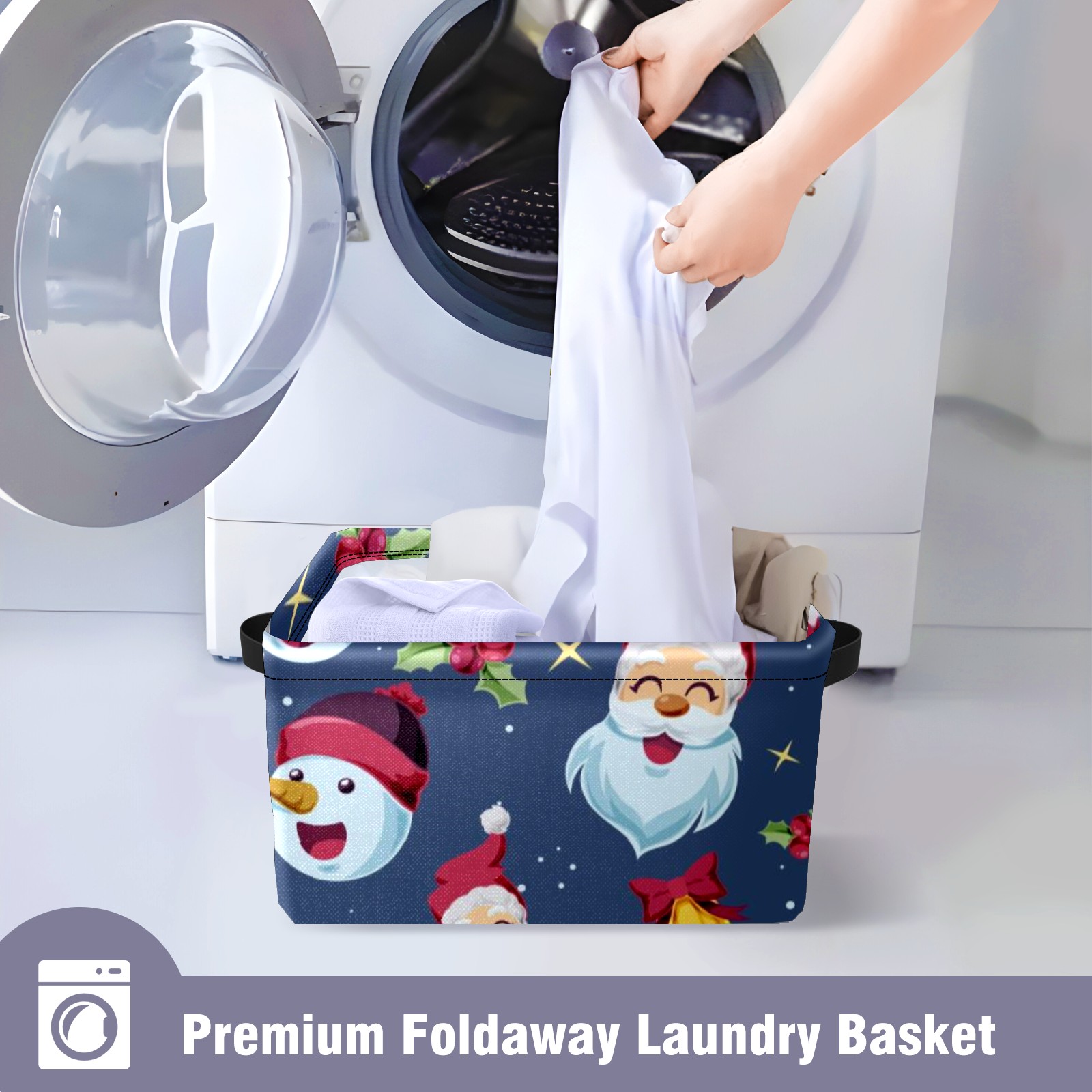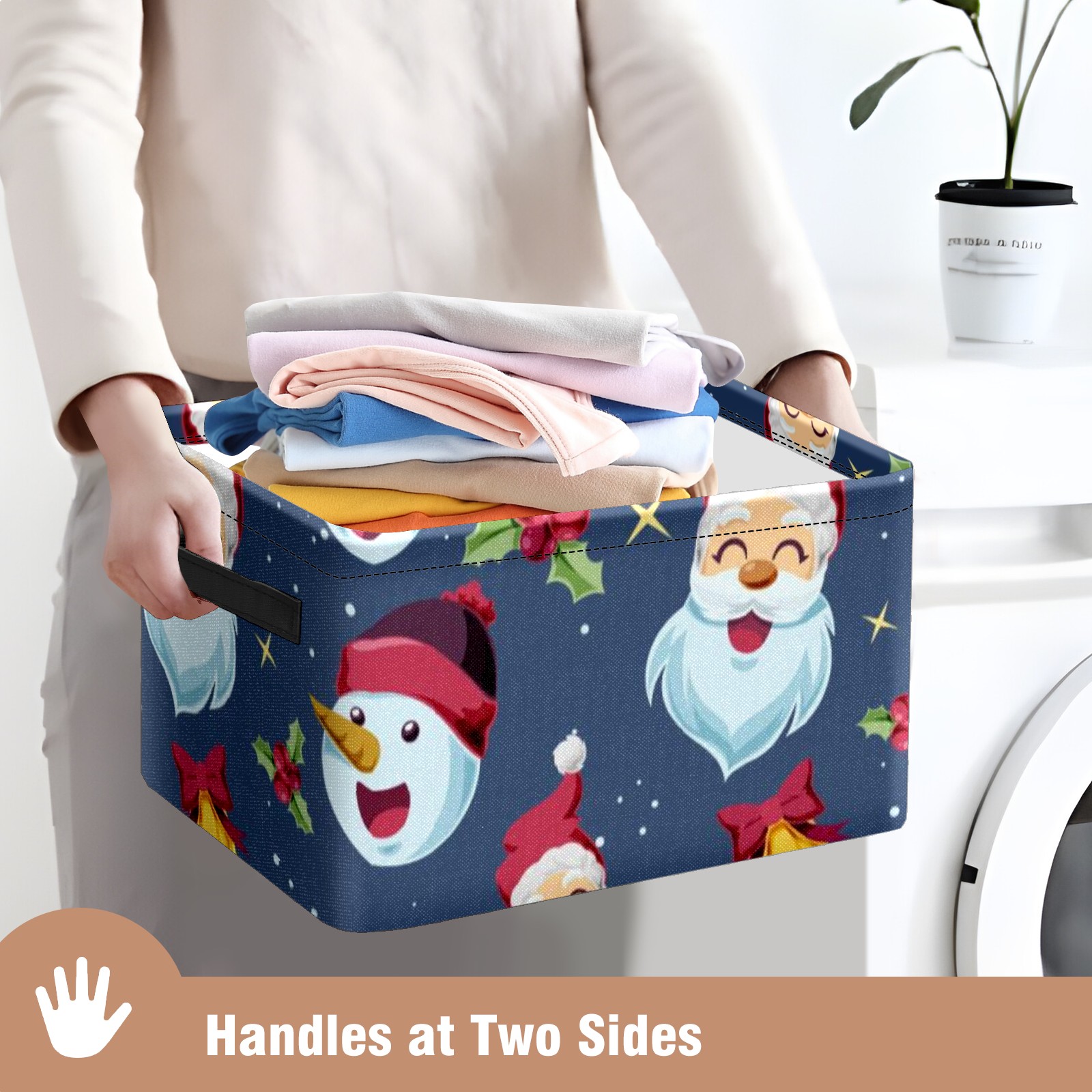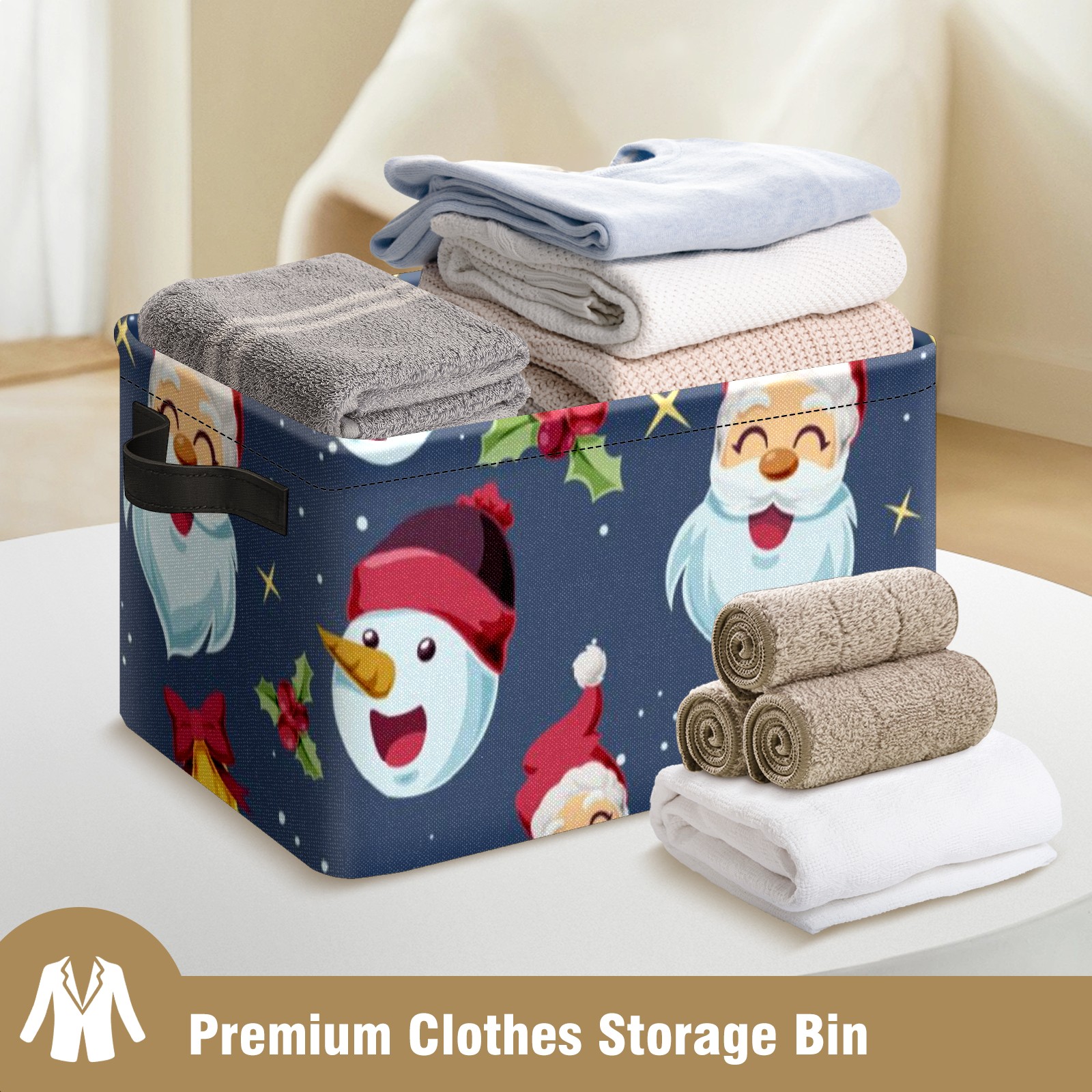 Collapsible 600D Oxford Storage Basket with Santa Claus - Metal Frame 10"x14"x8" Reinforced Handles, Multi-Purpose Organizer